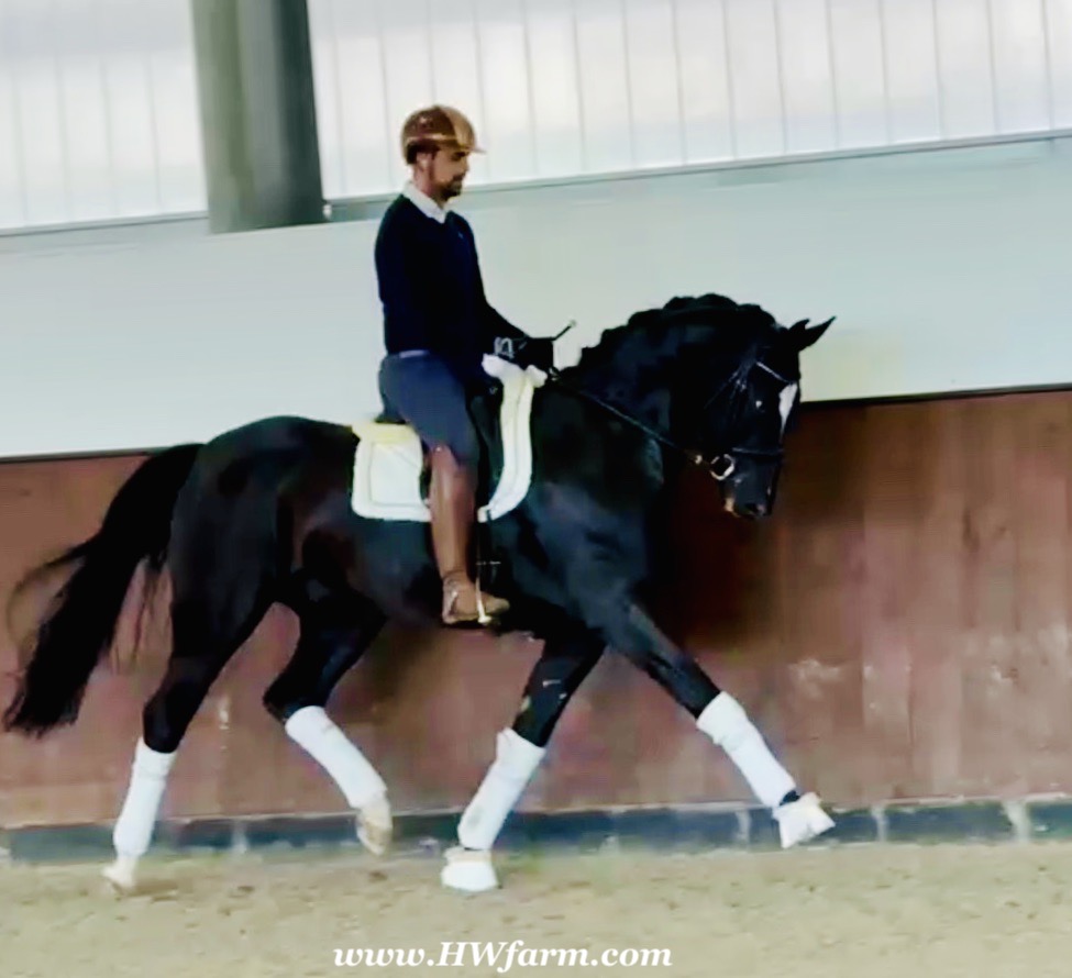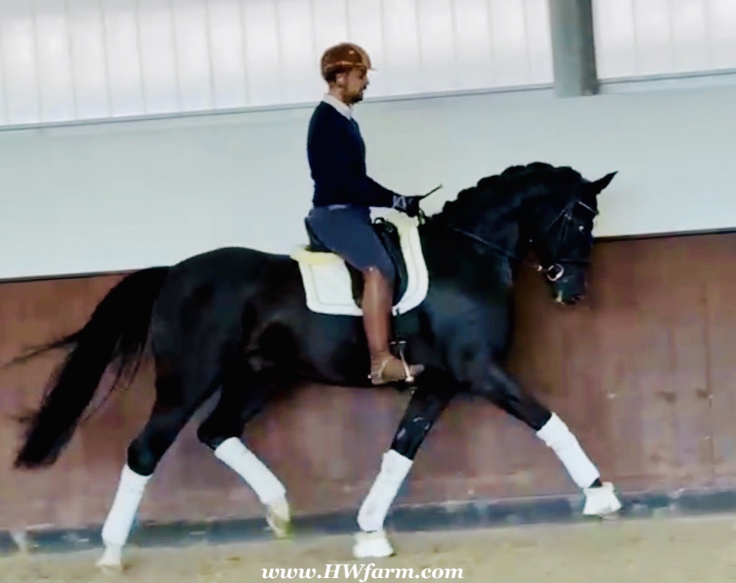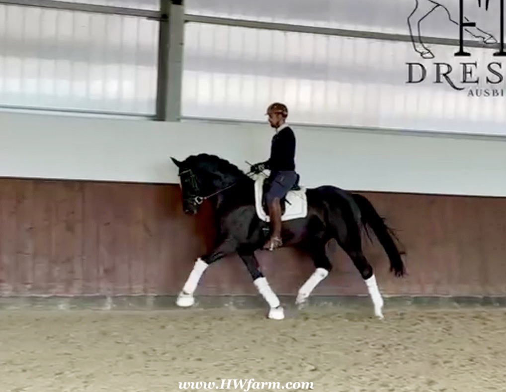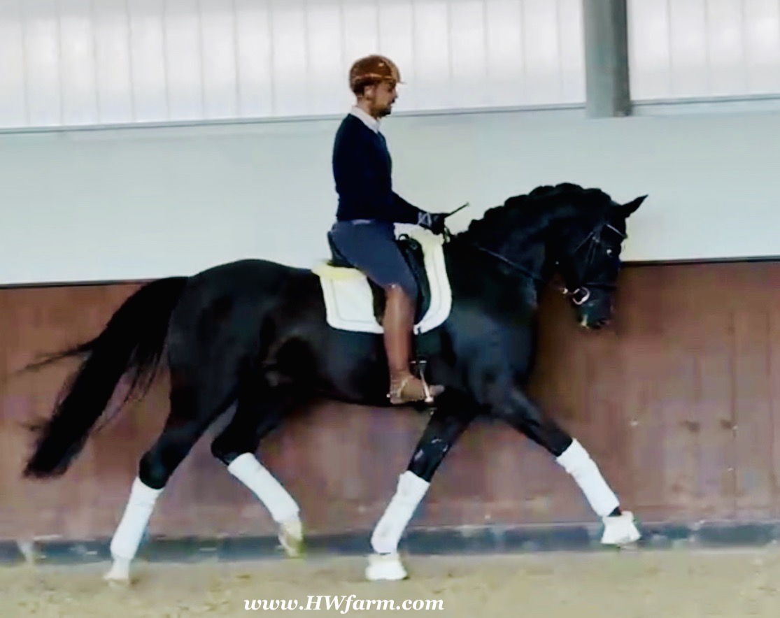 Fürst Brentano HW, black Hanoverian gelding, by Fürstbischof/Brentano II, born in 2020, standing approximately 171 cm or 16.3 hands. Fürst Brentano HW is by the remarkable stallion Fürstbischof. The breeding of Fürstbischof was awaited eagerly by the Hanoverian breeders. He was licensed in Vechta in 2011 and completed his performance test in 2012 easily. The excellent marks for trot, canter and readability confirm his special dressage talent. Fürstbischof combines the outstanding dressage blood of his sire Fürst Romancier with the performance genes of Plasisir d' Amour. Fürstbischof is a dark coated, beautiful type. When he was presented at the Oldenburger licensing, he was expressive and demonstrated very dynamic movement. He was also impressive during his performance test in Adelheidsdorf, where he performed with a special effortlessness and commendable willingness to work. He got high marks for his rideability and gaits. His descendants should be on the list! Long-legged, with a wonderful type and above-average basic gaits, you are in no way inferior to your father. 26 registered sports descendants in total and 11 successful descendants in the past data year can be recorded by the Fürstbischof. All successful daughters and sons are consistently placed high in riding horses and dressage horse tests. This inheritance brings Prince-Bishop a breeding value of 145. Fabuleux v. Fürstbischof - Contendro I from the breeding of Thomas Ahrens and owned by Finja Ahrens was able to collect series victories in riding horse tests and dressage horse tests of class A in 2020. Every start is a victory. The seven-year-old Fiesta del Sol v. Fürstbischof- Sancisco (breeder: Isabelle Schmidt, B.: Dajana Hoffmann) won several dressage competitions of class M*, placed high in M** competitions and has now arrived in class S. Here, too, she proved her talent and was already able to secure 3rd and 7th place. In addition to the highly successful sport horses, Fürstbischof has two licensed sons and sixteen high-priced auction horses. And his daughters also present themselves above average at the mare shows throughout the country. Fürstbischof - A more than successful blood alternative with rideable and head-clear descendants! From his sire, Fürst Romancier (Fürst Heinrich x Romancier), Fürstbischof carries the finest dressage blood. Fürst Romancier has already produced several licensed sons and successful sporthorses. In Fürstbischof, Fürst Romancier meets with the breeding alternative of the Grand Prix horse, Plasisir d' Amour. Furthermore, this stallion goes back to the damline of Daffy-Toban. This line has produced successful dressage and show jumping horses as well as licensed stallions. Count on Me (Cornet Obolensky), Grafentstein (Grundstein I), and also the current German champion, Fransiskus (Fidertanz) arise from this line. He gained 8 for character, 8 for ridebility, 6.67 for jumping, 8.5 for tot, 9 for canter, 7.5for walk and 7.63 for cross country at the 70 day test. HLP 2012: Dressage 147 and Jumping 82 Fürst Brentano HW's dam sire is the Hanoverian stallion of the year 2003. At the Verden stallion licensing, the chestnut stallion was awarded this prestigious title. His breeder, Dr. Max Schulz-Stellenfleth, Stellenfleth, was honored with a cheque for EURO 10.000,00 and a valuable Wohlklang-statuette. The Uelzener insurance company always generously supports this award that honors important Hanoverian stallions who have a tremendous influence on the breed. In 1983, Brentano II was born on Dr. Max Schulz-Stellenfleth's farm in Kehdingen. His dam, the Grande-daughter Glocke, descends from one of the most important mare families in Hanover, going back to the Schumann-daughter S449. The stal-lions Garibaldi I and II, Wolkenstein I and II and Beltain as well as Beauvalais, one of the internationally most successful dressage horses with Beatriz Ferrer-Salat, belong to this equine family. Recently, Beltain caused a highlight in Warendorf: Under Holga Finken, his son Belissimo M became Bundeschampion of three-year-old stallions. After having won the stallion licensing, Brentano II moved to the Celle National Stud. At his stallion performance test, he presented the best dressage performances, and with a final score of 129,97 points, he ranked second. One year later, he achieved the fourth place at the Bundeschampionate of Riding Horses. He is trained up to advanced dressage level, and he belongs to the Celle Quadrilles for years now. Since 1987, he has been stationed in Artland, first in Natbergen, later on at the Ankum insemination station. That is were Brentano II met suitable mares. The chestnut stallion is the sire of 68 state premium mares and 15 licensed stallions. In 2000, his daughter Bona Dea II left the Ratje-Niebuhr-Show as the winning mare. Together with her full sister Bona Dea, she won the Ratje-Niebuhr-Prize. Brentano II supplied totally 19 horses for elite auctions, among them the first-class horses Brentina, Brasseur P, Bandito and Bon Jovi. At the World Equestrian Games in Jerez, Brentina won the team silver medal under the American Debbie McDonald. Her fullbrother Barclay is just about to start his international career with Gonne-lien and Sven Rothenberger. In the youngster division, Bernstein and Christian Ritter are a successful equine pair. This year, Bon Jovi was especially successful: He won the Bundeschampiont-title of four-year-old horses in Warendorf. Apart from that, he is the dam's sire of the Brandenburg mare Poetin who is on every-one's lips after having won the World Breeding Championships Dressage of Young Horses and the Bundeschampionate. Brentano II is a dressage stallion with an exemplary inheritance, and his dressage breeding evaluation reaches the above-average mark of 137 points. With his successful offspring, he is one of the sons of the trademark stallion Bolero who ensured a revival of this bloodline in sport. Thus in October, Bonaparte (Heike Kemm