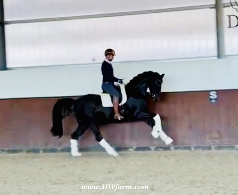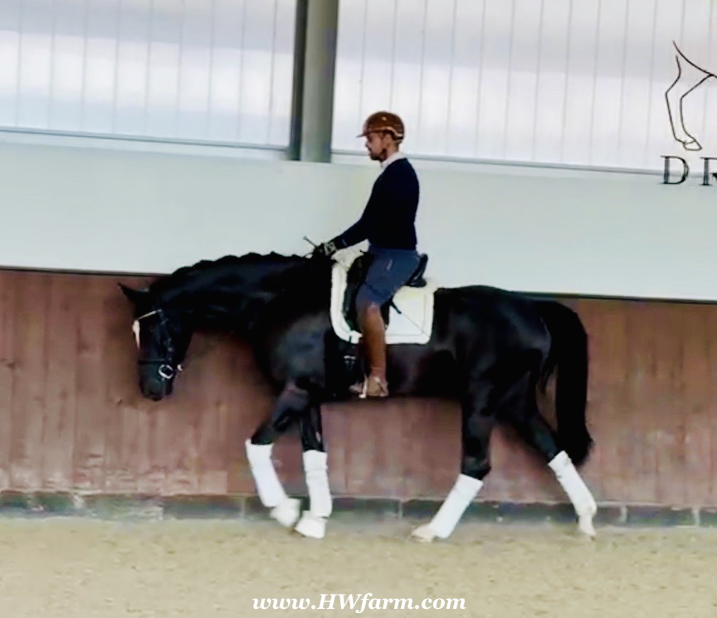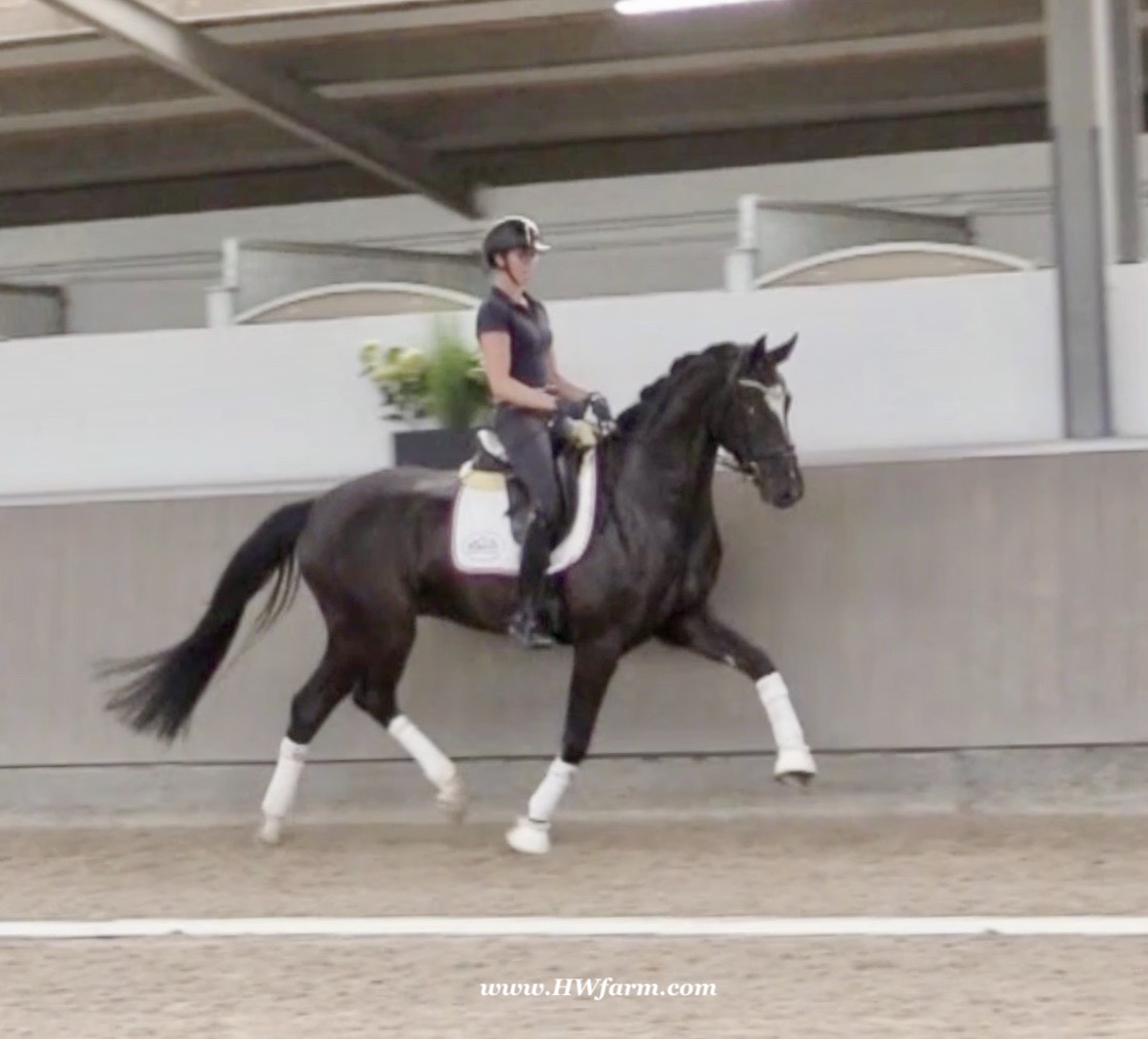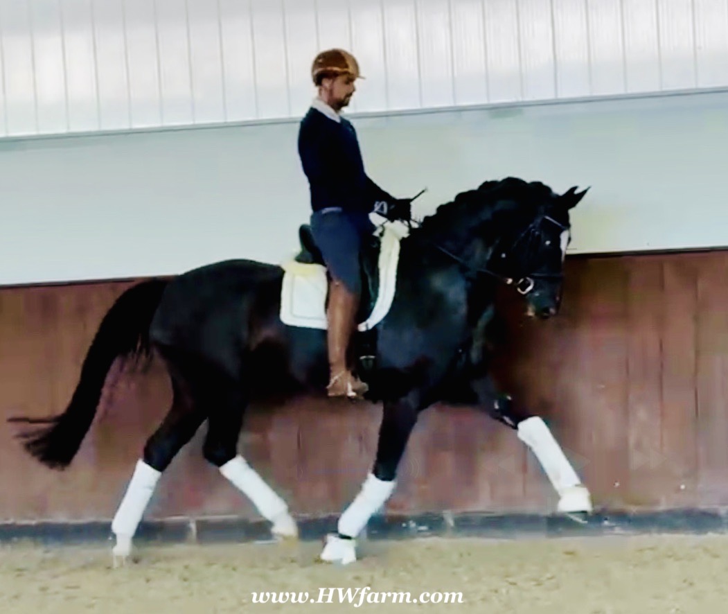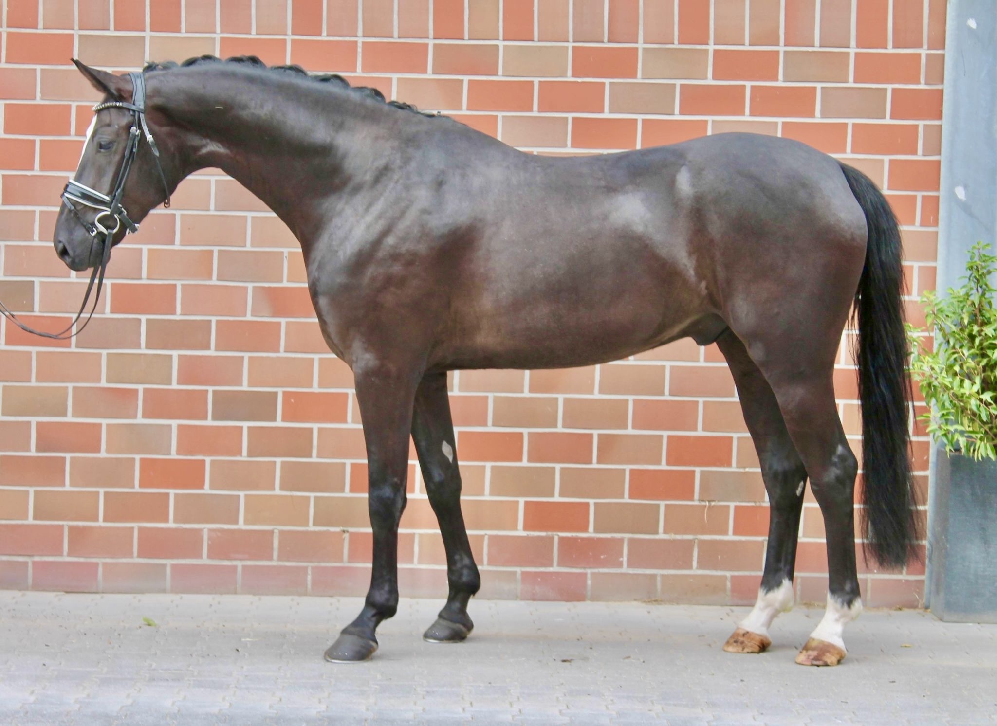 Fürst Brentano HW, black Hanoverian gelding, by Fürstbischof/Brentano II, born in 2020, standing approximately 171 cm or 16.3 hands. Fürst Brentano HW is by the remarkable stallion Fürstbischof. The breeding of Fürstbischof was awaited eagerly by the Hanoverian breeders. He was licensed in Vechta in 2011 and completed his performance test in 2012 easily. The excellent marks for trot, canter and readability confirm his special dressage talent. Fürstbischof combines the outstanding dressage blood of his sire Fürst Romancier with the performance genes of Plasisir d' Amour. Fürstbischof is a dark coated, beautiful type. When he was presented at the Oldenburger licensing, he was expressive and demonstrated very dynamic movement. He was also impressive during his performance test in Adelheidsdorf, where he performed with a special effortlessness and commendable willingness to work. He got high marks for his rideability and gaits. His descendants should be on the list! Long-legged, with a wonderful type and above-average basic gaits, you are in no way inferior to your father. 26 registered sports descendants in total and 11 successful descendants in the past data year can be recorded by the Fürstbischof. All successful daughters and sons are consistently placed high in riding horses and dressage horse tests. This inheritance brings Prince-Bishop a breeding value of 145. Fabuleux v. Fürstbischof - Contendro I from the breeding of Thomas Ahrens and owned by Finja Ahrens was able to collect series victories in riding horse tests and dressage horse tests of class A in 2020. Every start is a victory. The seven-year-old Fiesta del Sol v. Fürstbischof- Sancisco (breeder: Isabelle Schmidt, B.: Dajana Hoffmann) won several dressage competitions of class M*, placed high in M** competitions and has now arrived in class S. Here, too, she proved her talent and was already able to secure 3rd and 7th place. In addition to the highly successful sport horses, Fürstbischof has two licensed sons and sixteen high-priced auction horses. And his daughters also present themselves above average at the mare shows throughout the country. Fürstbischof - A more than successful blood alternative with rideable and head-clear descendants! From his sire, Fürst Romancier (Fürst Heinrich x Romancier), Fürstbischof carries the finest dressage blood. Fürst Romancier has already produced several licensed sons and successful sporthorses. In Fürstbischof, Fürst Romancier meets with the breeding alternative of the Grand Prix horse, Plasisir d' Amour. Furthermore, this stallion goes back to the damline of Daffy-Toban. This line has produced successful dressage and show jumping horses as well as licensed stallions. Count on Me (Cornet Obolensky), Grafentstein (Grundstein I), and also the current German champion, Fransiskus (Fidertanz) arise from this line. He gained 8 for character, 8 for ridebility, 6.67 for jumping, 8.5 for tot, 9 for canter, 7.5for walk and 7.63 for cross country at the 70 day test. HLP 2012: Dressage 147 and Jumping 82 Fürst Brentano HW's dam sire is the Hanoverian stallion of the year 2003. At the Verden stallion licensing, the chestnut stallion was awarded this prestigious title. His breeder, Dr. Max Schulz-Stellenfleth, Stellenfleth, was honored with a cheque for EURO 10.000,00 and a valuable Wohlklang-statuette. The Uelzener insurance company always generously supports this award that honors important Hanoverian stallions who have a tremendous influence on the breed. In 1983, Brentano II was born on Dr. Max Schulz-Stellenfleth's farm in Kehdingen. His dam, the Grande-daughter Glocke, descends from one of the most important mare families in Hanover, going back to the Schumann-daughter S449. The stal-lions Garibaldi I and II, Wolkenstein I and II and Beltain as well as Beauvalais, one of the internationally most successful dressage horses with Beatriz Ferrer-Salat, belong to this equine family. Recently, Beltain caused a highlight in Warendorf: Under Holga Finken, his son Belissimo M became Bundeschampion of three-year-old stallions. After having won the stallion licensing, Brentano II moved to the Celle National Stud. At his stallion performance test, he presented the best dressage performances, and with a final score of 129,97 points, he ranked second. One year later, he achieved the fourth place at the Bundeschampionate of Riding Horses. He is trained up to advanced dressage level, and he belongs to the Celle Quadrilles for years now. Since 1987, he has been stationed in Artland, first in Natbergen, later on at the Ankum insemination station. That is were Brentano II met suitable mares. The chestnut stallion is the sire of 68 state premium mares and 15 licensed stallions. In 2000, his daughter Bona Dea II left the Ratje-Niebuhr-Show as the winning mare. Together with her full sister Bona Dea, she won the Ratje-Niebuhr-Prize. Brentano II supplied totally 19 horses for elite auctions, among them the first-class horses Brentina, Brasseur P, Bandito and Bon Jovi. At the World Equestrian Games in Jerez, Brentina won the team silver medal under the American Debbie McDonald. Her fullbrother Barclay is just about to start his international career with Gonne-lien and Sven Rothenberger. In the youngster division, Bernstein and Christian Ritter are a successful equine pair. This year, Bon Jovi was especially successful: He won the Bundeschampiont-title of four-year-old horses in Warendorf. Apart from that, he is the dam's sire of the Brandenburg mare Poetin who is on every-one's lips after having won the World Breeding Championships Dressage of Young Horses and the Bundeschampionate. Brentano II is a dressage stallion with an exemplary inheritance, and his dressage breeding evaluation reaches the above-average mark of 137 points. With his successful offspring, he is one of the sons of the trademark stallion Bolero who ensured a revival of this bloodline in sport. Thus in October, Bonaparte (Heike Kemm