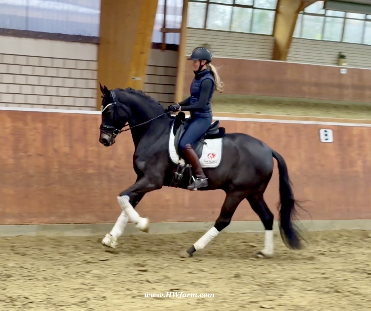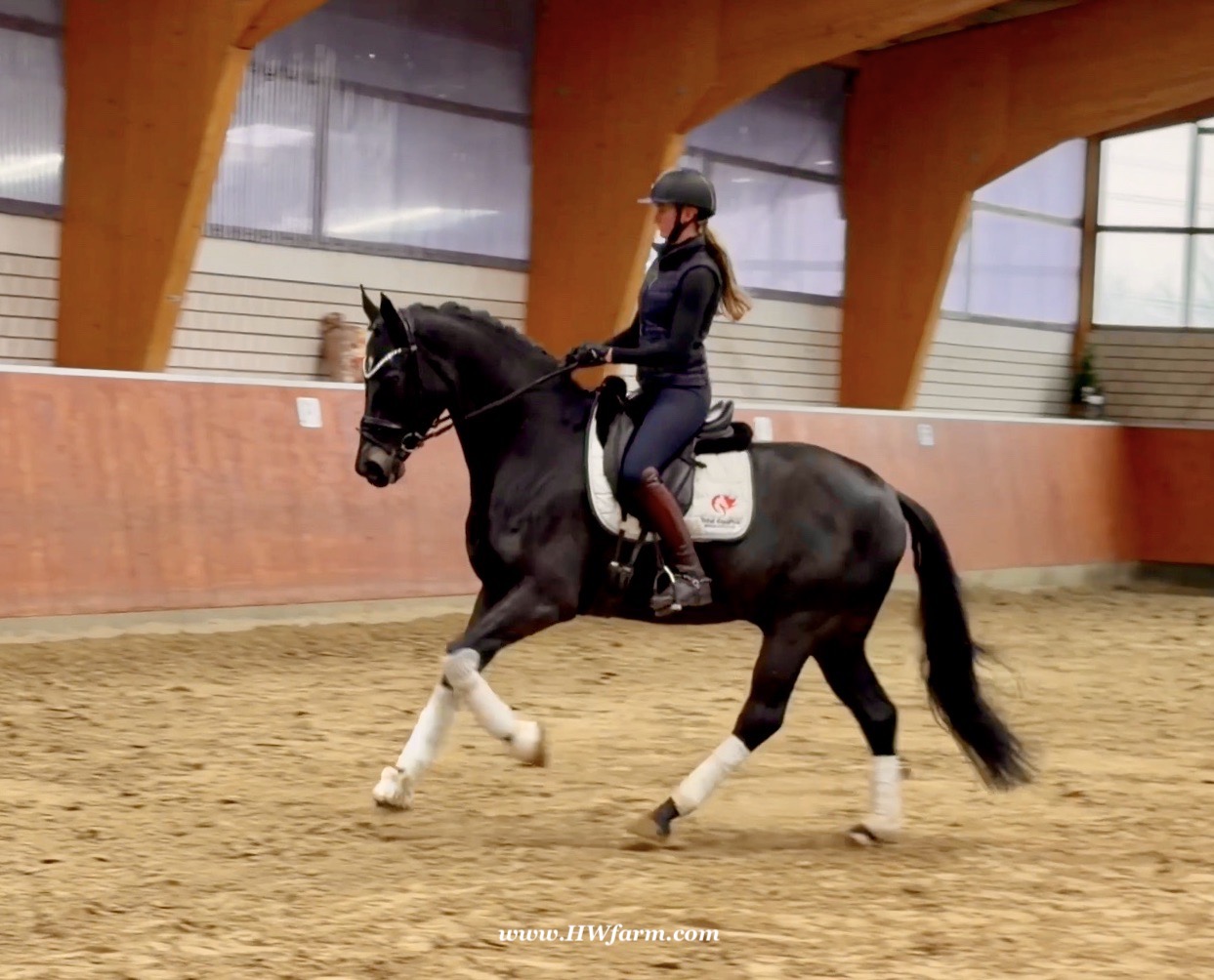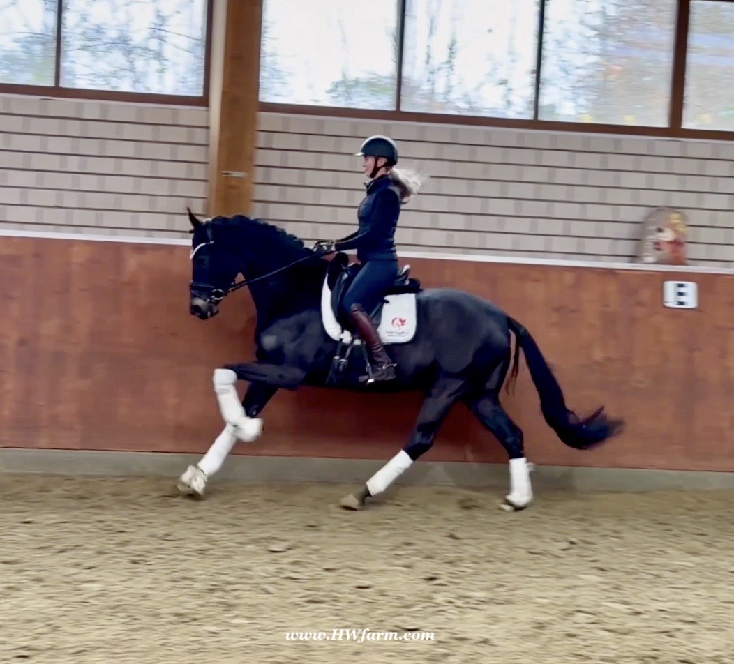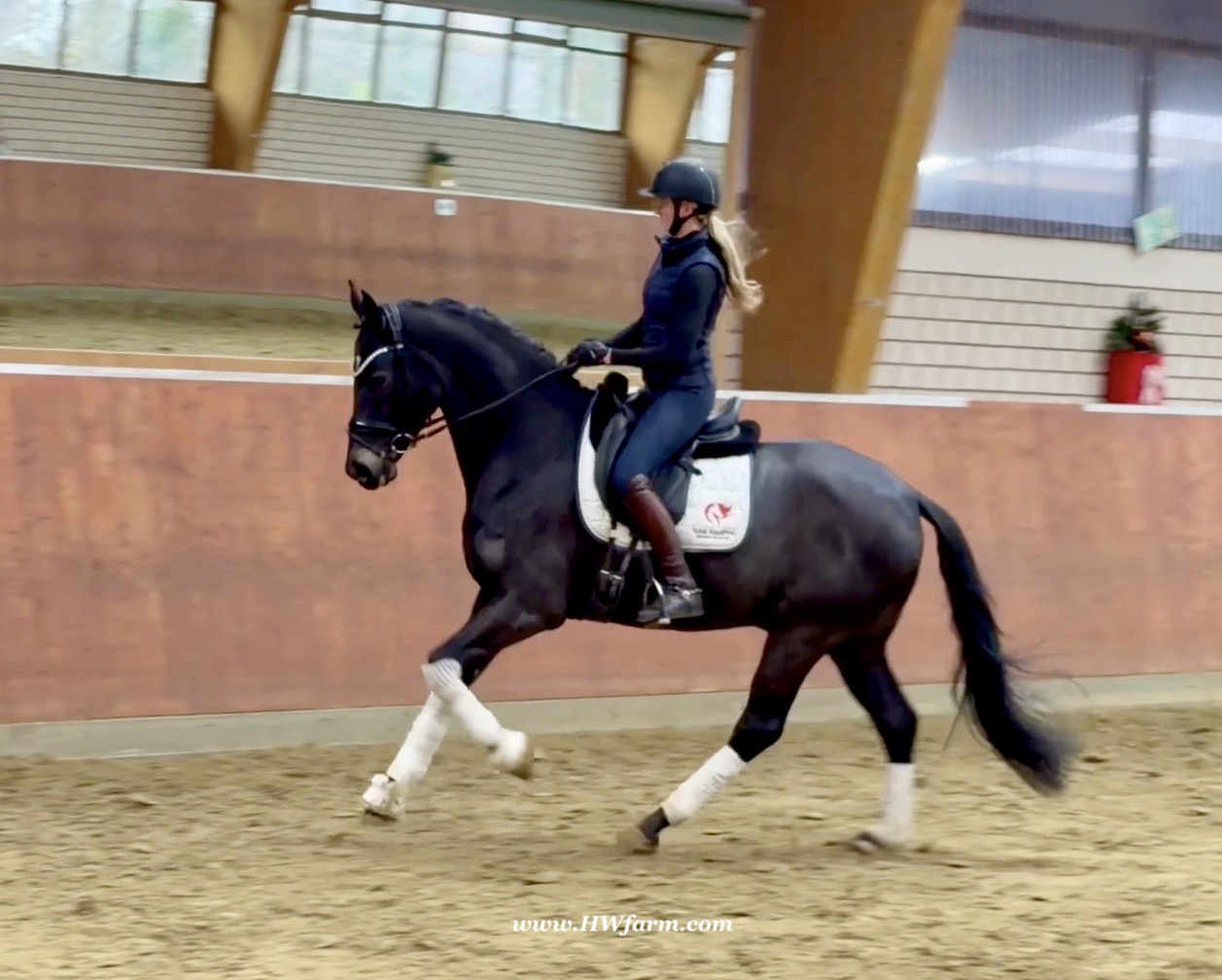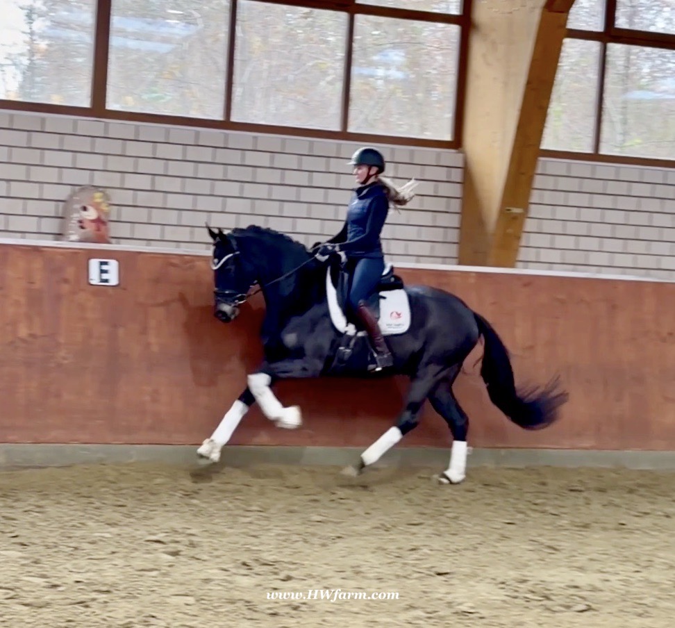 EscaHit HW, black/bay Westphalian gelding, by silver and bronze medallist at the World Championships for young dressage horses Escamillo/German national champion, World Champion of six-year-old dressage horses Sandro Hit, born in 2020, standing approximately 169 cm or 16.2 hands. EscaHit HW has an impressive pedigree and his famous sire is Escamillo, Vice World Champion of six-year-old dressage horses Bronze medal World Championship of seven-year-old horses "What an amazing performance," the judges praised Escamillo's performance in the World Championship final for seven-year-old dressage horses in their commentary, "we love this horse and see a very big future in him." Once again, Escamillo received dream scores at this prestigious meeting of the world's best young dressage horses. 9.5 for trot and perspective, 9.0 for walk and canter, 8.5 for submission - and a fantastic 91 percent and the bronze medal. The year before, Escamillo, ridden by the Spanish rider Manuel Dominguez Bernal, who rides for Helen Langehanenberg's yard, had already received scores of 9.0 and higher in the World Championship's arena, earning him the silver medal in the six-year-olds class. Breeding-wise Escamillo also puts one exclamation mark after the next behind his hereditary power. He has already produced over 30 licensed stallions, among them the Neustadt Champion Stallion Element of Crime, the Hanoverian Premium Stallion and 700,000-euro Stallion Market top price Energy, the Westphalian Reserve Champion Stallions Escaneno, Espléndido MT and Excalibur as well as our stallions Escanto PS, two-time stallion performance test record winner, Expectation PS and Escamour, the stallion performance test winner Eleven HW and the bronze medallist of the Hanoverian Championships, Estupendo. The German and Westphalian Champion Eivissa ridden by Jessica Lynn Thomas/SWE stands out amongst his first sport offspring. She received a 10 for both trot and canter and a 9.5 for rideability and conformation in Warendorf. Embolo, third in the "Westfalen-Wappen" class at the "Turnier der Sieger", achieved the sensational knockdown price of 590,000 euros, the highest price ever achieved by a riding horse at a Westphalian auction. Eyecatcher W won the Austrian Warmblood Championships for three-year-olds in Stadl-Paura/AUT. Escamillo's daughter, Exclusive, won the Herwart van der Decken Show in Verden. Escamillo began his career as premium stallion at his licensing in 2017 in Verden, passed his 14-day test in 2018 with a dressage score of 9.08 and completed his sport test in 2020 with Helen Langehanenberg with a winning score of 9.36. Ridden by the Olympic team silver medallist, he also qualified for the German Championships for young dressage horses as a five-year-old with 9.5. In 2021, with Manuel Dominguez Bernal, he won the intermediate (M) level dressage test for young horses in Haftenkamp with a score of 8.8 (also qualifier for the German Championships for six-year-olds). The same year, Escamillo was awarded the Weltmeyer Prize by the Hanoverian Association. His sire, the Westphalian and double German Champion Escolar, was placed in the final of the Burg Cup, the final of the Louisdor Prize and at the German Championships with the Olympic Champion and riding master Hubertus Schmidt/GER. They were part of the German Olympic squad. His dam Verb.Pr.St. Cassila is the full sister of the licensed stallions Romanist (advanced S* level dressage) and Romeo Niro (intermediate M** level dressage). His grand-sire Rohdiamant was German Champion in 1993 and competed at Grand Prix level with Lisa Wilcox/USA. Around 50 of his sons have been licensed. His most successful offspring include Valentina Truppa's/ITA Olympic partner Eremo del Castegno and Helen Langehanenberg's Responsible OLD. His grand-dam Chantal is the full sister of Dumont/Juliane Brunkhorst/GER and Hartwig Burfeind/GER, licensed stallion and successful in Grand Prix, and her half brother Aquavit (by Argentinus) is successful in competitions for young show jumping horses. De Niro, Landadel and Zeus also appear in the pedigree. His great-grand-dam St.Pr./El.St. Caruge is the full sister of the licensed stallion Laphroaig/Leporello and produced several state premium mares. Her full sister is no other than the German Champion Mare St.Pr./El.St. C-Dur, who produced four licensed stallions. Line of El.St. Cinderella, from which descend the five German Champion full siblings Sir Heinrich OLD, Cindy OLD, Candy OLD, Caty OLD and Casey OLD (all by Sir Donnerhall I), the Grand Prix dressage horse Radondo (by Romanov)/Ashley Holzer/USA, as well as the stallions Zymbal I and II (both by Zeus), First Class I and II (both by Furioso II), Sesostris (by Silvio I), Rubino Rosso (by Rubinstein), Castus I and II (both by Classiker), Stiefelkönig (by Silvano), Grand Marnier (by Galoubet A), Pharaoh (by Parabol), RTL (by Rubinstein), Routinier (by Rohdiamant), Solo Hit (by Sandro Hit), Get Smart (by Granulit), Fortune Hunter (by First Class I), Casanova (by Castro) and Si bon (by Sir Donnerhall I). Closely related to the famous Wendel's German Champion quintet. EscaHit HW's dam sire is the famous Sandro Hit. Sandro Hit has been one of the world's best dressage sires in the WBFSH ranking for twelve years. In 2021 he was even number one. Sandro Hit has left his lasting mark on modern dressage horse breeding with his brilliantly typed and extremely light-footed offspring. He is considered the founding stallion of our station - and line founder. At the Olympic Games in Tokyo, Showtime FRH/Dorothee Schneider and Salvino/Adrienne Lyle were on the gold and silver teams from Germany and the USA. This was the second Olympic gold for Showtime FRH, after European Championship team gold and double individual silver. Salvino was also part of the US dressage silver team at the 2018 World Equestrian Games in Tryon, USA. Also at the start in Tokyo/JPN: Sir Donnerhall II OLD/Morgan Barbançon/FRA, Sebastien/Lindsay 