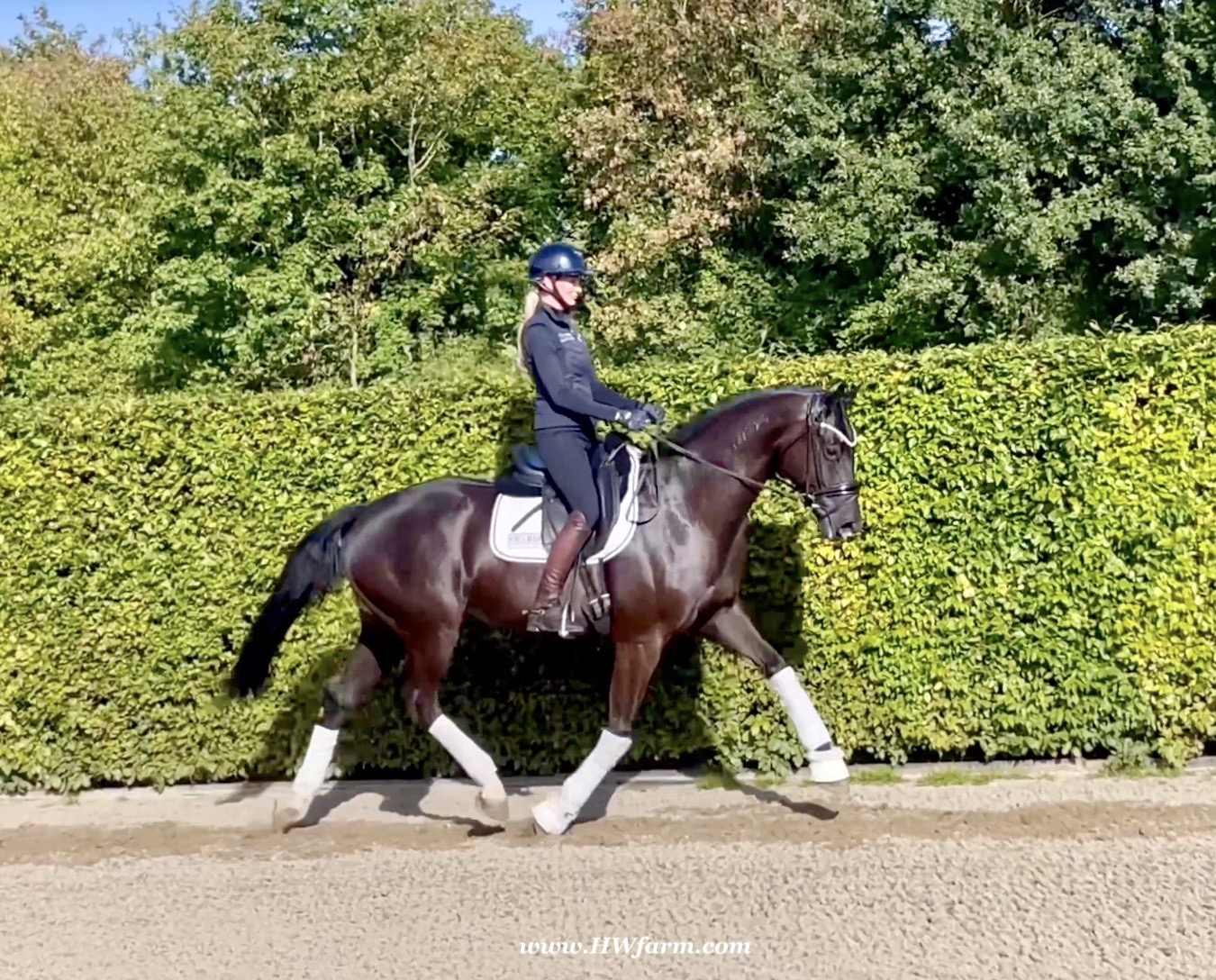 Simply Black HW, black Westphalian gelding, by Symphonic/Floresco NRW born in 2021, standing approximately 167 cm or 16.1 hands. Simply Black HW will make you swoon - incredibly beauty describes this wonderful horse. Simply Black HW is by the top star Symphonic. A glossy black horse with a radiant charisma. Award-winning crowd favorite at the Westphalian main licensing. Exceptional qualities in the basic gaits, maximum elasticity and momentum reveal a highly modern dressage offering with outstanding potential. A 30-day test with an HLP breeding value of 144 points fully met expectations. Victorious in development tests and dressage horse tests, he easily secured his ticket to the German National Championships in Warendorf. His foals captivate with their exquisite movement quality and correct conformation. Symphonic comes from the premiere crop of Sir Heinrich, one of the most important stallions in Warendorf. National Champion, two-time Vice National Champion, participant in the World Championships for Young Dressage Horses and now successful in the advanced class. In his 70-day test, he achieved the second-best dressage-oriented final score of all test horses in Germany with 8.99. He can also point to his high-caliber offspring in terms of breeding. His offspring are causing a sensation at licensing events, shows, and auctions throughout Europe. The dam's sire is the Hanoverian Windspiel As, who now resides in Australia and himself achieved success up to the advanced level in dressage. Windspiel As is by the influential stallion Weltmeyer. Grandmother Boogie Woogie T, a daughter of the magnificent Brentano II, who, with numerous S-level dressage horses, 25 licensed stallions, and 120 state premium mares, is one of the guarantors of the Hanoverian Association. Boogie Woogie T is the dam of several state premium mares in the Rhineland breeding area. Wind of Change by Windspiel and Seraphina W are worth mentioning here. Symphonic comes from the Hanoverian mare line of Noprara. In addition to numerous outstanding sport horses, the line also produced the licensed stallions Libori by Léspoir, Laurent by Lauries Crusador, Mr Bojangles by Benetton Dream, and Wonderful by Weltmeyer. Symphonic: Heritability with the very best genetics Simply Black HW's dam is by the legendary Floresco NRW. Achievement: Premium stallion, noted for his pedigree and performance Achievements: Won the Pavo Cup for five-year-olds in Holland and the five-year-old division at the World Championships Details: Passed his 30-day test at Zweibrücken with a score of 10 for walk. Floresco NRW is a Westphalian Stallion Standing 171cm ~ 16.3 hands, born 1998, also known as 95314, FLORESCO born in Germany. Sired by Florestan I (1986) out of the mare Rosella (1992) from the Westf Stamm 333, ... family. Bred by LANGHORST KONRAD in Germany. Competing in international competitions from 30-01-2015 to 09-01-2016 up to Dressage World Cup Qualifier level with the following riders Yessin RAHMOUNI. He is a Stallion Licensed with the following Studbooks: Swedish Warmblood (SWB), Westfalian. We currently have Photos (3) for this horse. Produced in total 96 offsprings of which 33 have competed in sport up to Dressage: 16-CDI2*-Int I, Eventing: 2-CIC2*, Showjumping: 1-CSI2* 1.45m, Showjumping: 14-CSI2* 1.45m. Please note our summary for this horse may be incomplete as there may be other offspring and competition results that are missing from our records. Simply Black HW is an extremely fancy gentleman and as pretty as a horse can get. Beauty, elasticity, and suspension outline this stunning creature. Three rhythmic, big, expressive gaits - that will blow any and all competition out of the park. He is fabulous to ride and has international potential. Super nice to sit and light in the bridle he is the horse, we all wish we had! Simply Black HW, equipped with phenomenal competition genes, is a horse of unbelievable quality and super fancy gentleman, who knows how to impress, due to his type, movement and work ethic. This stunning horse, has it all. A super nice, chiseled head, big stallion neck (he's a gelding!), if he blinks with his beautiful kind eye, you'll fall in love at first sight. He is a dream come true. He loves to please his handler and rider and is a fast learner. Simply Black HW eagerly works under saddle and always gives 100%, a truly sane, top performance horse. This one is breathtaking to watch in the dressage arena and with his quick, far reaching hind leg, passage and piaffe will come naturally to him. He is supple, has a ton of air time and just floats above the ground. With his free shoulder and huge grundschwung, he swings nicely through his back. His hooves barley touch the ground. This extremely talented gentleman has international potential. He is a very sweet boy with great ride ability and he makes a long lasting impression on whom ever sees him. Easy to handle and loves personal grooming time and puts his head right in your lap, striving for attention and searching for treats. Perfect Junior or Amateur's horse and absolutely, the fanciest quality for a professional as well! Best personality, gaits, looks and temperament, he is truly the "full luxury package". With this horse, you will be the star in FEI classes and at clinics, the judges and onlookers will remember him where ever he goes. His bloodlines are very much sought after and he's definitely one for the big ring. He is used to go in the hot walker, loves his shower and solarium time. Stands for the farrier, loads and appreciates grooming time. He's a super cool horse - all you can ask for and more! This boy will enable you to fulfill your dreams with all his sensational abilities. The goal of HW Farm is, to find highly talented young horses in Germany for riders in the USA and all over the world. Simply Black HW is a phenomenal dressage gelding. X-rays on file! US $30,000 to $50,000 - check out his video clip!!! Please e-mail Irene@HWfarm.com Or text 239-772