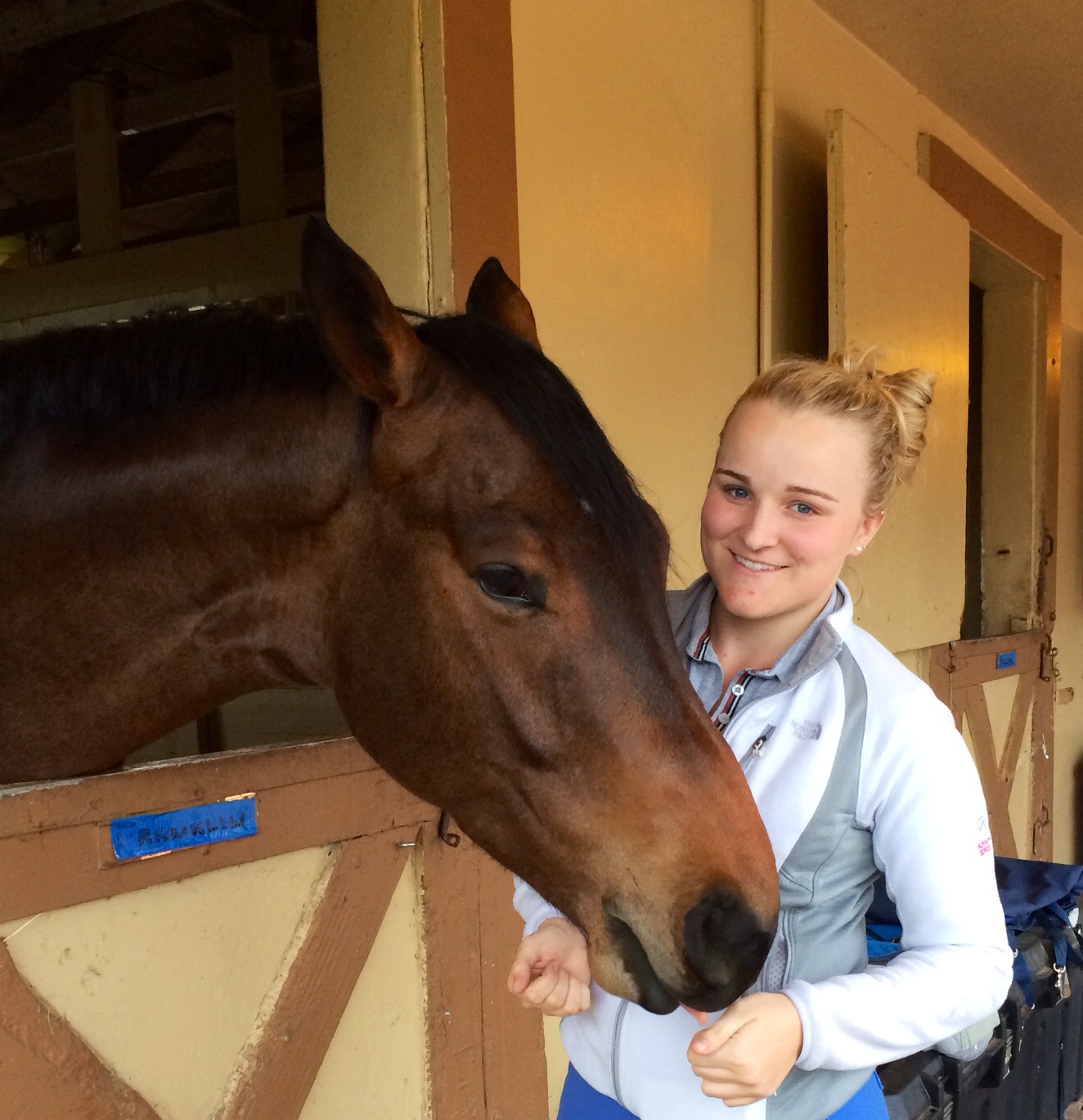 HW and his new owner, he's now at her barn, arrived in the US. She