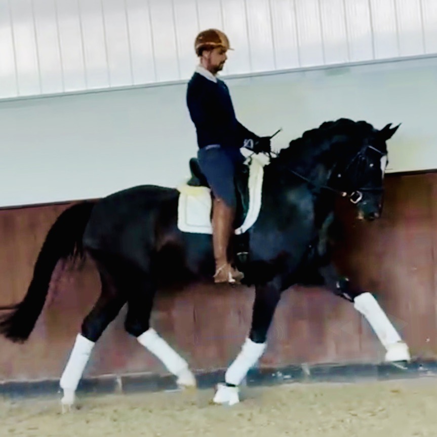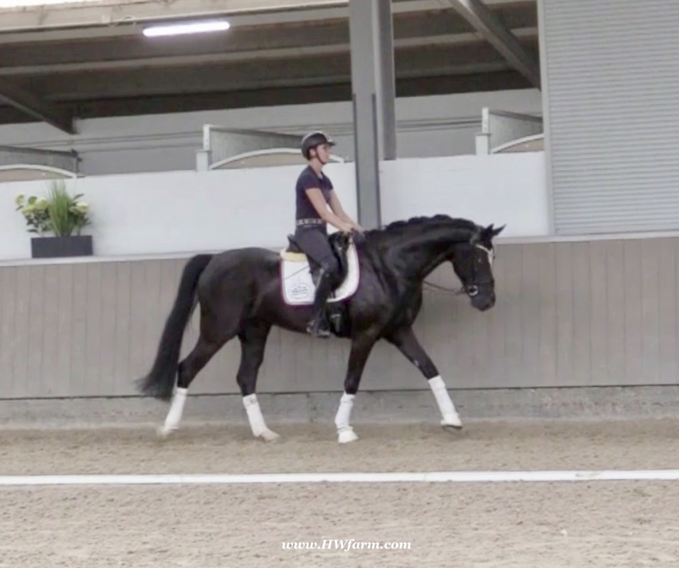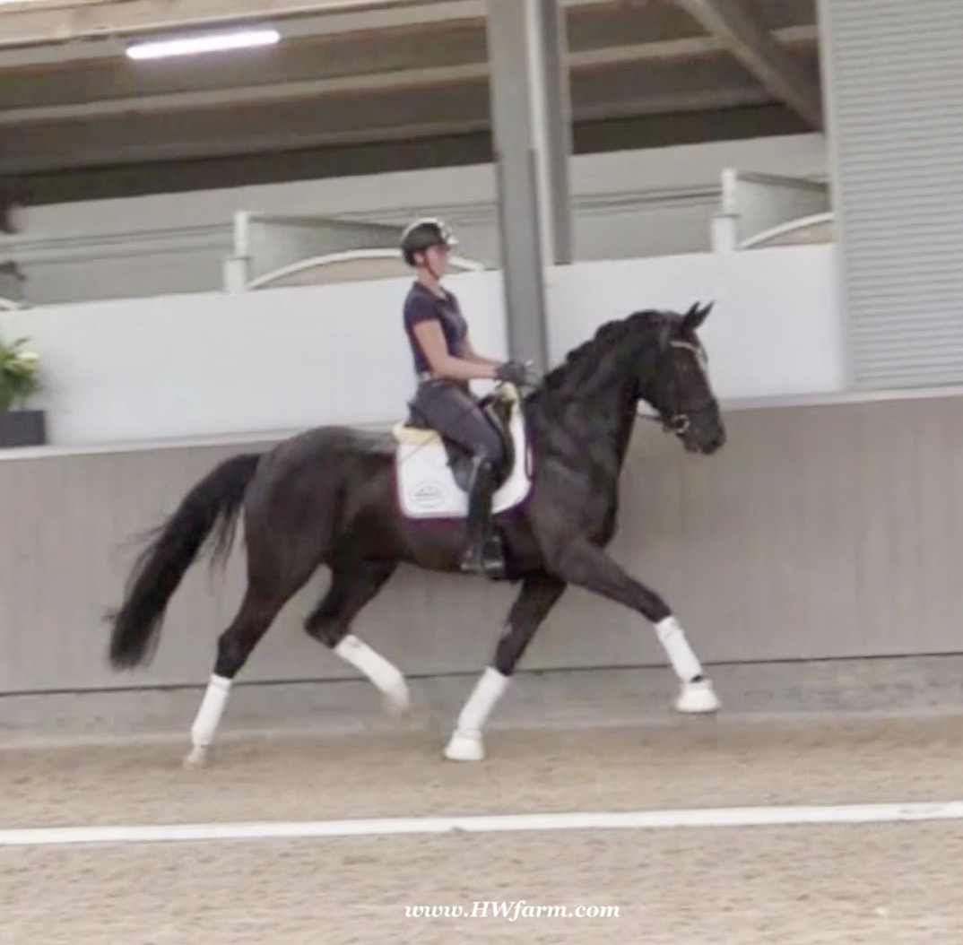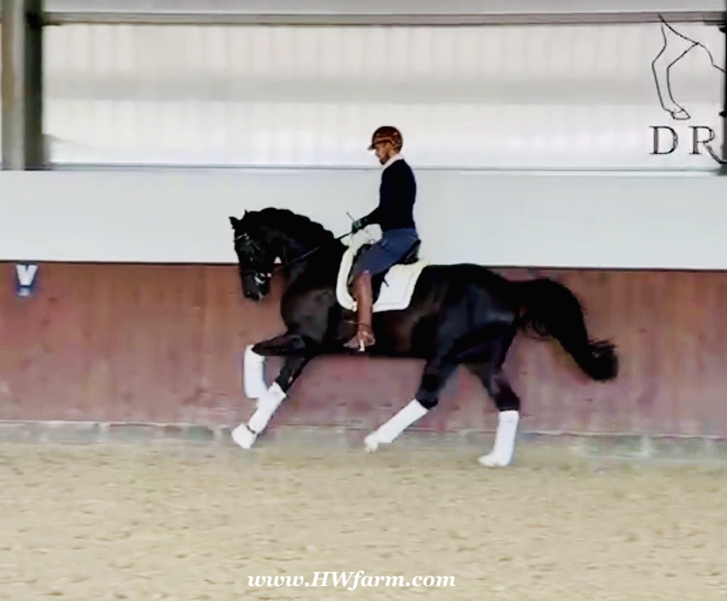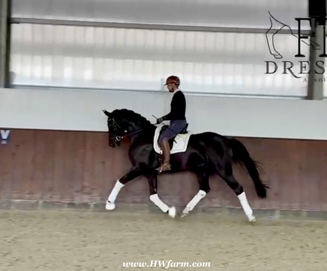 Fürst Brentano HW, black Hanoverian gelding, by Fürstbischof/Brentano II, born in 2020, standing approximately 171 cm or 16.3 hands. Fürst Brentano HW is by the remarkable stallion Fürstbischof. The breeding of Fürstbischof was awaited eagerly by the Hanoverian breeders. He was licensed in Vechta in 2011 and completed his performance test in 2012 easily. The excellent marks for trot, canter and readability confirm his special dressage talent. Fürstbischof combines the outstanding dressage blood of his sire Fürst Romancier with the performance genes of Plasisir d' Amour. Fürstbischof is a dark coated, beautiful type. When he was presented at the Oldenburger licensing, he was expressive and demonstrated very dynamic movement. He was also impressive during his performance test in Adelheidsdorf, where he performed with a special effortlessness and commendable willingness to work. He got high marks for his rideability and gaits. His descendants should be on the list! Long-legged, with a wonderful type and above-average basic gaits, you are in no way inferior to your father. 26 registered sports descendants in total and 11 successful descendants in the past data year can be recorded by the Fürstbischof. All successful daughters and sons are consistently placed high in riding horses and dressage horse tests. This inheritance brings Prince-Bishop a breeding value of 145. Fabuleux v. Fürstbischof - Contendro I from the breeding of Thomas Ahrens and owned by Finja Ahrens was able to collect series victories in riding horse tests and dressage horse tests of class A in 2020. Every start is a victory. The seven-year-old Fiesta del Sol v. Fürstbischof- Sancisco (breeder: Isabelle Schmidt, B.: Dajana Hoffmann) won several dressage competitions of class M*, placed high in M** competitions and has now arrived in class S. Here, too, she proved her talent and was already able to secure 3rd and 7th place. In addition to the highly successful sport horses, Fürstbischof has two licensed sons and sixteen high-priced auction horses. And his daughters also present themselves above average at the mare shows throughout the country. Fürstbischof - A more than successful blood alternative with rideable and head-clear descendants! From his sire, Fürst Romancier (Fürst Heinrich x Romancier), Fürstbischof carries the finest dressage blood. Fürst Romancier has already produced several licensed sons and successful sporthorses. In Fürstbischof, Fürst Romancier meets with the breeding alternative of the Grand Prix horse, Plasisir d' Amour. Furthermore, this stallion goes back to the damline of Daffy-Toban. This line has produced successful dressage and show jumping horses as well as licensed stallions. Count on Me (Cornet Obolensky), Grafentstein (Grundstein I), and also the current German champion, Fransiskus (Fidertanz) arise from this line. He gained 8 for character, 8 for ridebility, 6.67 for jumping, 8.5 for tot, 9 for canter, 7.5for walk and 7.63 for cross country at the 70 day test. HLP 2012: Dressage 147 and Jumping 82 Fürst Brentano HW's dam sire is the Hanoverian stallion of the year 2003. At the Verden stallion licensing, the chestnut stallion was awarded this prestigious title. His breeder, Dr. Max Schulz-Stellenfleth, Stellenfleth, was honored with a cheque for EURO 10.000,00 and a valuable Wohlklang-statuette. The Uelzener insurance company always generously supports this award that honors important Hanoverian stallions who have a tremendous influence on the breed. In 1983, Brentano II was born on Dr. Max Schulz-Stellenfleth's farm in Kehdingen. His dam, the Grande-daughter Glocke, descends from one of the most important mare families in Hanover, going back to the Schumann-daughter S449. The stal-lions Garibaldi I and II, Wolkenstein I and II and Beltain as well as Beauvalais, one of the internationally most successful dressage horses with Beatriz Ferrer-Salat, belong to this equine family. Recently, Beltain caused a highlight in Warendorf: Under Holga Finken, his son Belissimo M became Bundeschampion of three-year-old stallions. After having won the stallion licensing, Brentano II moved to the Celle National Stud. At his stallion performance test, he presented the best dressage performances, and with a final score of 129,97 points, he ranked second. One year later, he achieved the fourth place at the Bundeschampionate of Riding Horses. He is trained up to advanced dressage level, and he belongs to the Celle Quadrilles for years now. Since 1987, he has been stationed in Artland, first in Natbergen, later on at the Ankum insemination station. That is were Brentano II met suitable mares. The chestnut stallion is the sire of 68 state premium mares and 15 licensed stallions. In 2000, his daughter Bona Dea II left the Ratje-Niebuhr-Show as the winning mare. Together with her full sister Bona Dea, she won the Ratje-Niebuhr-Prize. Brentano II supplied totally 19 horses for elite auctions, among them the first-class horses Brentina, Brasseur P, Bandito and Bon Jovi. At the World Equestrian Games in Jerez, Brentina won the team silver medal under the American Debbie McDonald. Her fullbrother Barclay is just about to start his international career with Gonne-lien and Sven Rothenberger. In the youngster division, Bernstein and Christian Ritter are a successful equine pair. This year, Bon Jovi was especially successful: He won the Bundeschampiont-title of four-year-old horses in Warendorf. Apart from that, he is the dam's sire of the Brandenburg mare Poetin who is on every-one's lips after having won the World Breeding Championships Dressage of Young Horses and the Bundeschampionate. Brentano II is a dressage stallion with an exemplary inheritance, and his dressage breeding evaluation reaches the above-average mark of 137 points. With his successful offspring, he is one of the sons of the trademark stallion Bolero who ensured a revival of this bloodline in sport. Thus in October, Bonaparte (Heike Kemm