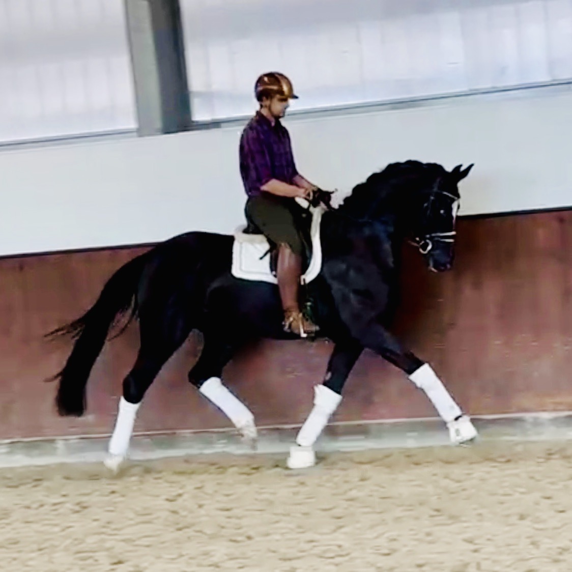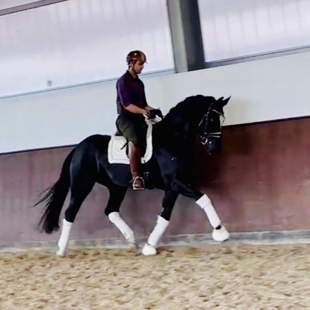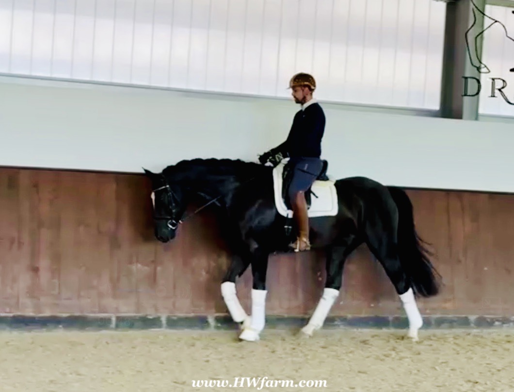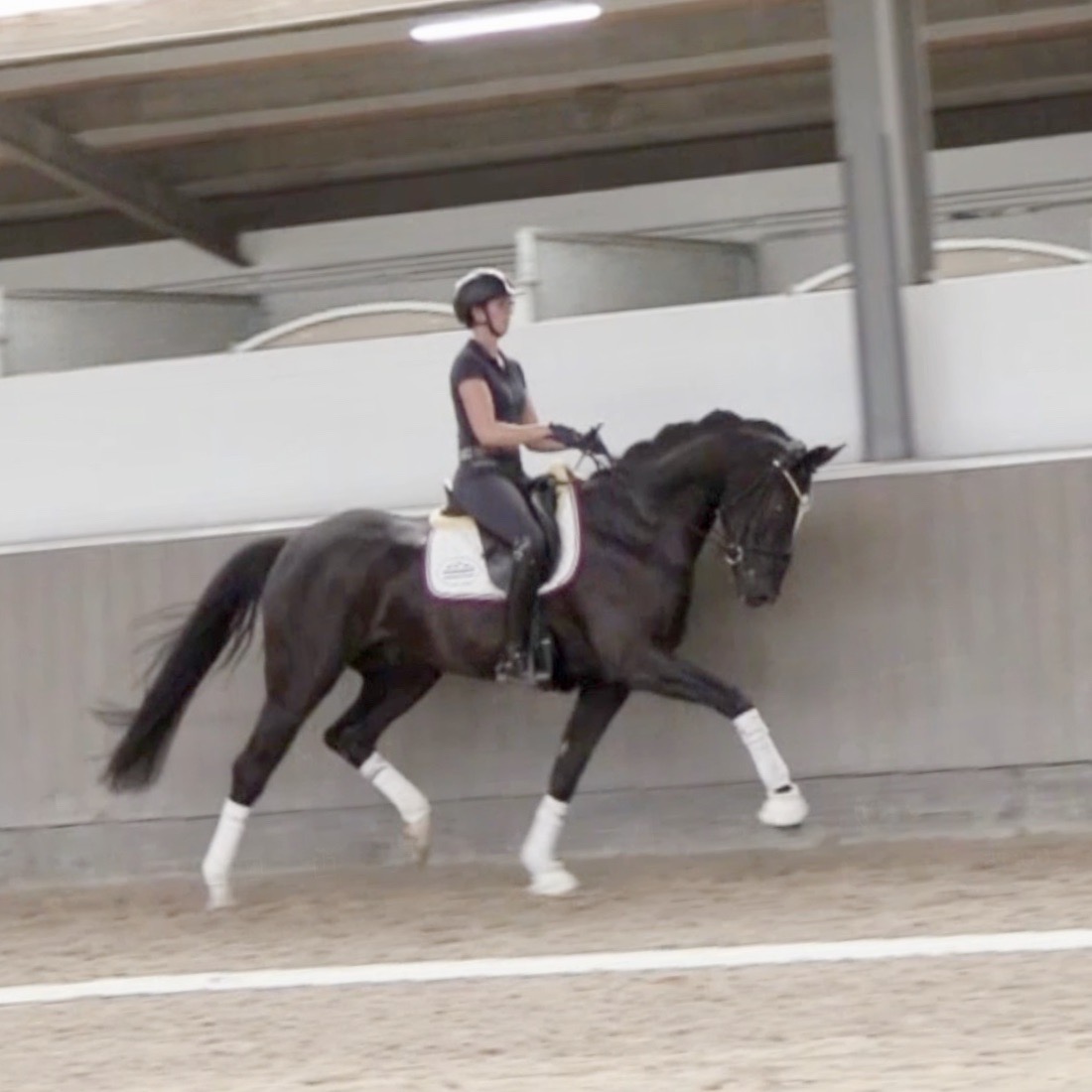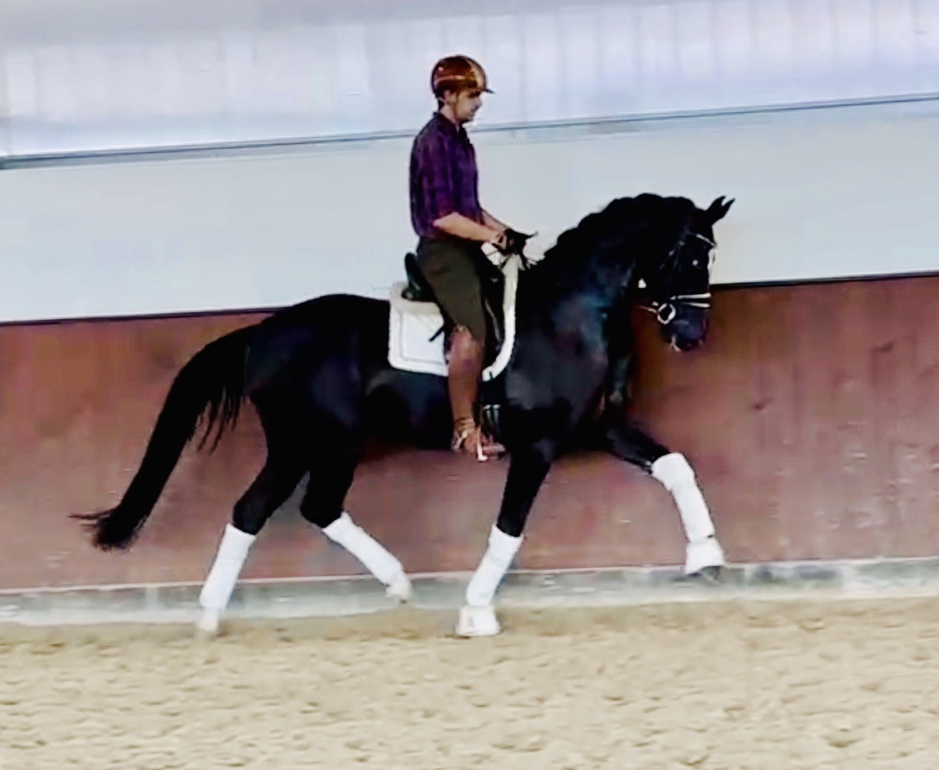 Fürst Brentano HW, black Hanoverian gelding, by Fürstbischof/Brentano II, born in 2020, standing approximately 171 cm or 16.3 hands. Fürst Brentano HW is by the remarkable stallion Fürstbischof. The breeding of Fürstbischof was awaited eagerly by the Hanoverian breeders. He was licensed in Vechta in 2011 and completed his performance test in 2012 easily. The excellent marks for trot, canter and readability confirm his special dressage talent. Fürstbischof combines the outstanding dressage blood of his sire Fürst Romancier with the performance genes of Plasisir d' Amour. Fürstbischof is a dark coated, beautiful type. When he was presented at the Oldenburger licensing, he was expressive and demonstrated very dynamic movement. He was also impressive during his performance test in Adelheidsdorf, where he performed with a special effortlessness and commendable willingness to work. He got high marks for his rideability and gaits. His descendants should be on the list! Long-legged, with a wonderful type and above-average basic gaits, you are in no way inferior to your father. 26 registered sports descendants in total and 11 successful descendants in the past data year can be recorded by the Fürstbischof. All successful daughters and sons are consistently placed high in riding horses and dressage horse tests. This inheritance brings Prince-Bishop a breeding value of 145. Fabuleux v. Fürstbischof - Contendro I from the breeding of Thomas Ahrens and owned by Finja Ahrens was able to collect series victories in riding horse tests and dressage horse tests of class A in 2020. Every start is a victory. The seven-year-old Fiesta del Sol v. Fürstbischof- Sancisco (breeder: Isabelle Schmidt, B.: Dajana Hoffmann) won several dressage competitions of class M*, placed high in M** competitions and has now arrived in class S. Here, too, she proved her talent and was already able to secure 3rd and 7th place. In addition to the highly successful sport horses, Fürstbischof has two licensed sons and sixteen high-priced auction horses. And his daughters also present themselves above average at the mare shows throughout the country. Fürstbischof - A more than successful blood alternative with rideable and head-clear descendants! From his sire, Fürst Romancier (Fürst Heinrich x Romancier), Fürstbischof carries the finest dressage blood. Fürst Romancier has already produced several licensed sons and successful sporthorses. In Fürstbischof, Fürst Romancier meets with the breeding alternative of the Grand Prix horse, Plasisir d' Amour. Furthermore, this stallion goes back to the damline of Daffy-Toban. This line has produced successful dressage and show jumping horses as well as licensed stallions. Count on Me (Cornet Obolensky), Grafentstein (Grundstein I), and also the current German champion, Fransiskus (Fidertanz) arise from this line. He gained 8 for character, 8 for ridebility, 6.67 for jumping, 8.5 for tot, 9 for canter, 7.5for walk and 7.63 for cross country at the 70 day test. HLP 2012: Dressage 147 and Jumping 82 Fürst Brentano HW's dam sire is the Hanoverian stallion of the year 2003. At the Verden stallion licensing, the chestnut stallion was awarded this prestigious title. His breeder, Dr. Max Schulz-Stellenfleth, Stellenfleth, was honored with a cheque for EURO 10.000,00 and a valuable Wohlklang-statuette. The Uelzener insurance company always generously supports this award that honors important Hanoverian stallions who have a tremendous influence on the breed. In 1983, Brentano II was born on Dr. Max Schulz-Stellenfleth's farm in Kehdingen. His dam, the Grande-daughter Glocke, descends from one of the most important mare families in Hanover, going back to the Schumann-daughter S449. The stal-lions Garibaldi I and II, Wolkenstein I and II and Beltain as well as Beauvalais, one of the internationally most successful dressage horses with Beatriz Ferrer-Salat, belong to this equine family. Recently, Beltain caused a highlight in Warendorf: Under Holga Finken, his son Belissimo M became Bundeschampion of three-year-old stallions. After having won the stallion licensing, Brentano II moved to the Celle National Stud. At his stallion performance test, he presented the best dressage performances, and with a final score of 129,97 points, he ranked second. One year later, he achieved the fourth place at the Bundeschampionate of Riding Horses. He is trained up to advanced dressage level, and he belongs to the Celle Quadrilles for years now. Since 1987, he has been stationed in Artland, first in Natbergen, later on at the Ankum insemination station. That is were Brentano II met suitable mares. The chestnut stallion is the sire of 68 state premium mares and 15 licensed stallions. In 2000, his daughter Bona Dea II left the Ratje-Niebuhr-Show as the winning mare. Together with her full sister Bona Dea, she won the Ratje-Niebuhr-Prize. Brentano II supplied totally 19 horses for elite auctions, among them the first-class horses Brentina, Brasseur P, Bandito and Bon Jovi. At the World Equestrian Games in Jerez, Brentina won the team silver medal under the American Debbie McDonald. Her fullbrother Barclay is just about to start his international career with Gonne-lien and Sven Rothenberger. In the youngster division, Bernstein and Christian Ritter are a successful equine pair. This year, Bon Jovi was especially successful: He won the Bundeschampiont-title of four-year-old horses in Warendorf. Apart from that, he is the dam's sire of the Brandenburg mare Poetin who is on every-one's lips after having won the World Breeding Championships Dressage of Young Horses and the Bundeschampionate. Brentano II is a dressage stallion with an exemplary inheritance, and his dressage breeding evaluation reaches the above-average mark of 137 points. With his successful offspring, he is one of the sons of the trademark stallion Bolero who ensured a revival of this bloodline in sport. Thus in October, Bonaparte (Heike Kemm
