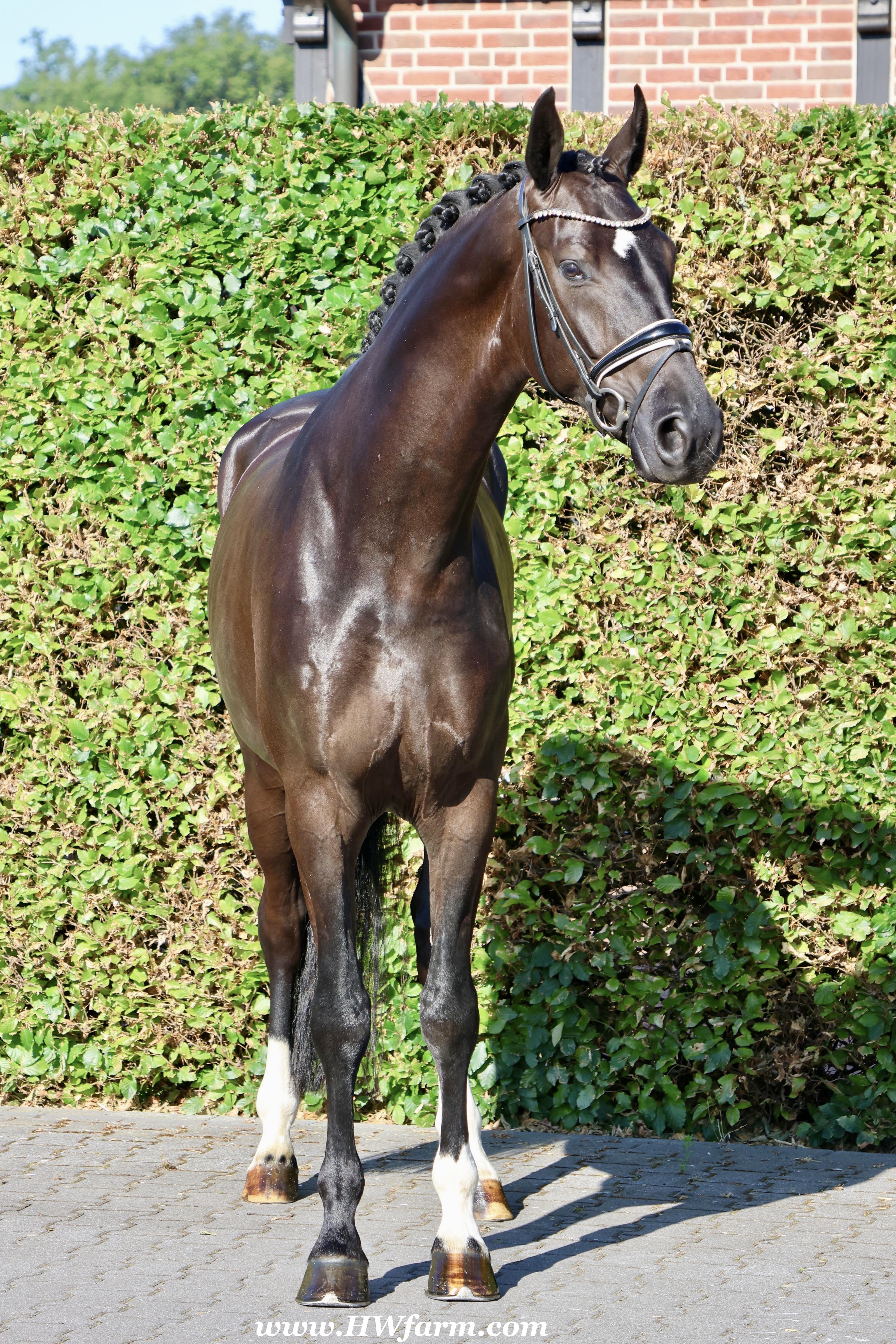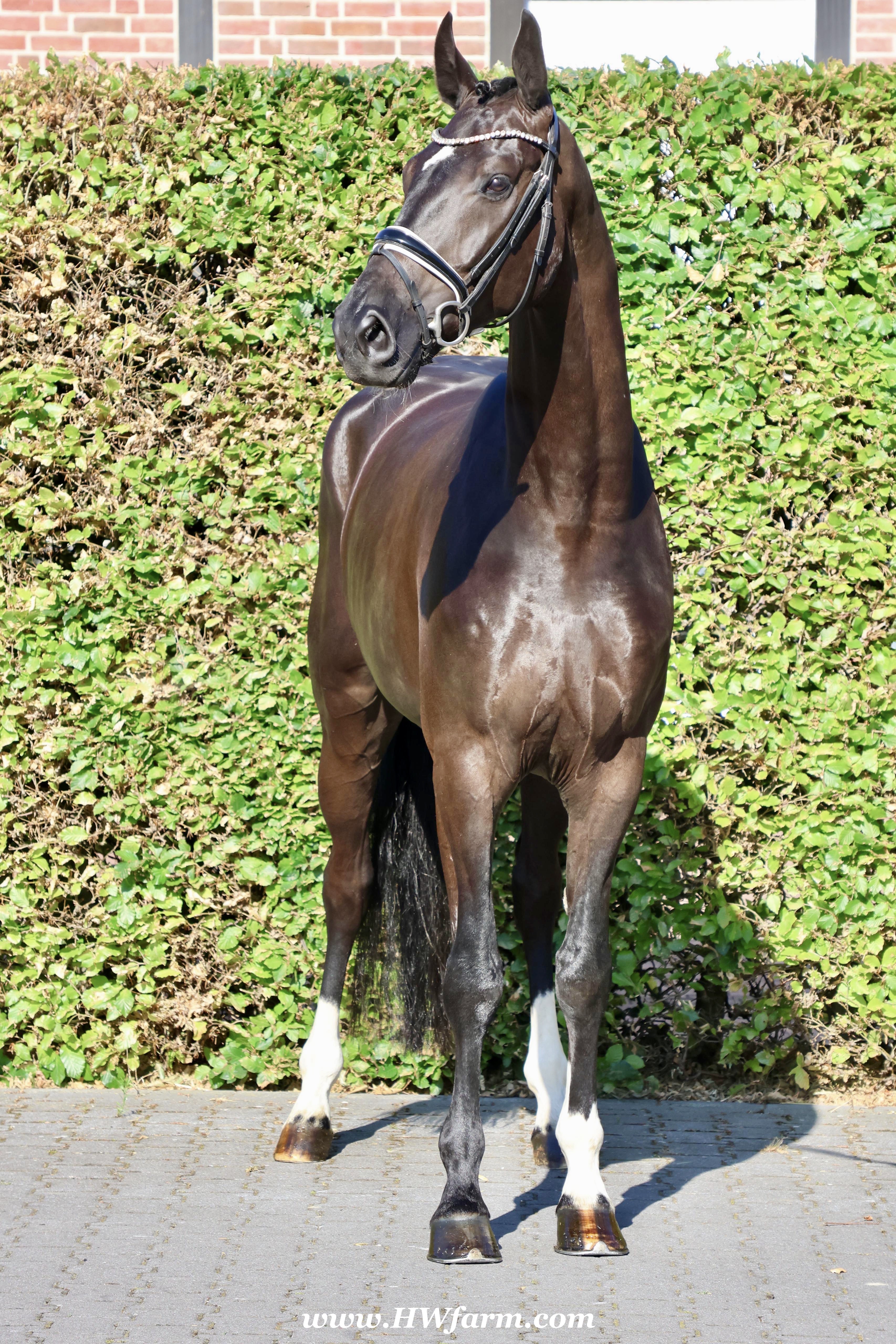 SuperMan HW, black Westphalian gelding, by So Unique/Ehrenstolz, born in 2020, standing approximately 174 cm or 17 hands. SuperMan HW, by So Unique Premium son of triple World Champion, Sezuan Winner of the Danish Warmblood 35-days stallion performance test 2018 Winner of the Bundeschampionate for 3yo stallions 2018 Premium Stallion in Danish Warmblood 2018 Won the Westfalia Championat 2018 Premium Stallion in Verden 2017. With So Unique his name says it all - not only in terms of his sporting career, but also in his hereditary performance. The Hanoverian and Danish premium stallion, Verden stallion market top price, stallion performance test winner, German Champion and champion of the first edition of the final of four-year-olds at the World Championships for Young Dressage Horses in 2019 in Ermelo/NED transmits his own special aura to his foals. His foals also impress with a lot of power, strong backs, the desired freedom of the shoulders and an exceptional, calm character. In 2020, So Unique won the qualifier for the German Championships for five-year-old dressage horses with Eva Möller. For all three paces, submission and overall impression, he received the fantastic score of 9.0. In the final, he could not quite match this performance and finished tenth with an overall score of 8.1 (walk: 9.5). So Unique was selected to represent Germany at the World Championships for young dressage horses, which had to be cancelled due to the coronavirus pandemic. His sire Sezuan was World Champion of the five, six and seven-year-old dressage horses and belongs, without a doubt, to the most demanded dressage stallions of the present. With his rider Dorothee Schneider, he won international competitions up to Inter I. Since then, he has been trained up to Grand Prix level with Patrik Kittel/SWE. On the breeding scene, the Danish Champion Stallion, record stallion performance test winner and Danish Dressage Champion also dominates all events. He sired our two-time record stallion performance test winner, Sezuan's Donnerhall, the Vice World Champion and German Champion of young dressage horses, Secret, the bronze medallist at the World Championships for Young Dressage Horses, Queenparks Wendy with Andreas Helgstrand/DEN, and our Oldenburg Reserve Champion Stallion So Perfect, to name just a few highlights. The dam St.Pr.St. Daiquiri, herself a winner in tests for young horses, is a half-sister of the licensed stallions St. Petersburg (by Sandro Bedo) and Quaterbend Ymas (by Quaterback), of the mare Doris Day K (by De Niro), who produced the licensed stallion Sir Stanislaus (by Sandro Hit), who was successful up to Inter I, of the mare Dynasty (by De Niro), who produced the licensed stallion Scolari (by Sandro Hit) and a stallion by Bonifatius, and of the mare Daylight (by De Niro), who produced the licensed stallion Flanell (by Fidertanz) and Fats Domino (by Fidertanz)/Fabienne Müller-Lütkemeier, victorious at Grand Prix level. Daiquri also produced Havanna II (by Hotline), who was placed up to Inter I. Daiquiri's sisters' daughters produced the licensed stallions Le Vivaldi I and II (both by Vivaldi) and Quattroporte (by Quantensprung). His dam's sire Donnerhall counts as one of the most important line founders of current times. He was double World Champion with Karin Rehbein, has produced over 120 licensed stallions and over 275 state premium mares and the lifetime earnings of his progeny amount to over 3.22 million euros. Also in the third generation, the Celle stud's Weltmeyer is a foundation stallion of special quality, who has significantly marked this stallion with regard to his impressive charisma. Weltmeyer was Vice German Champion, winner of his licensing and stallion performance test as well as DLG champion. Amongst his over 100 licensed sons appear several licensing winners, German Champions and stallion performance test winners. His great-grand-dam Geranie has produced the two licensed stallions Aleman (by Akzent II) and Worldman (by Weltmeyer). Her daughter Avignon (by Akzent II) has produced the licensed stallions Belfort G (by Brentano II) and Regazotti (by Rohdiamant), as well as St.Pr.St. Gardenia (by Grafenburg), who in turn produced Rhodes Scolar (by Rohdiamant, who was internationally successful up to Inter I. Through her daughter Pikobella (by Prestige Pilot), Geranie is the grand-dam of the stallion quartet Balance of Power, Barclay I and II (all by Belissimo M) and Fengari (by Fürstenball). Geranie also produced St.Pr.St. Weltina (by Weltmeyer), who produced the 2008 World Champion of young dressage horses, Dramatic (by Don Frederico)/Jana Freund, and bred to Rousseau, the licensed stallion Fürst Rousseau. SuperMan HW's dam sire is by Ehrenstolz. Born in 2003, EHRENSTOLZ completed his 30-day aptitude test in 2006 in Münster-Handorf with above-average scores in rideability (8.88), character (8.63), and trot (8.88). He was a candidate at the 31st NRW Elite Spring Auction, winner of the "Westfalen Wappen" (Westphalia Coat of Arms), and participated twice in the Federal Championships. EHRENSTOLZ has placed highly up to advanced level. His breeding value for young horse classes was calculated at 131. His breeding value for competitive dressage, in turn, is 126, with offspring that have competed up to advanced (S) level.EHRENSTOLZ's daughters, in particular, continually attract attention. They excel at broodmare tests and elite shows. With the mare Offenbarung, he achieved the top price at the 42nd NRW Elite Auction for €140,000. A total of six of his daughters have already received the State Premium. He also produced a licensed son, Ehrensache. SuperMan HW himself, is a breathtaking horse of definite Champion quality, equipped with absolutely phenomenal gaits, presenting himself with wonderful self-carriage. 100% ride-ability and a super character His stallion type (he is a gelding!!) will mesmerize everybody alike. He is a horse who casts his spell on every single person, a 