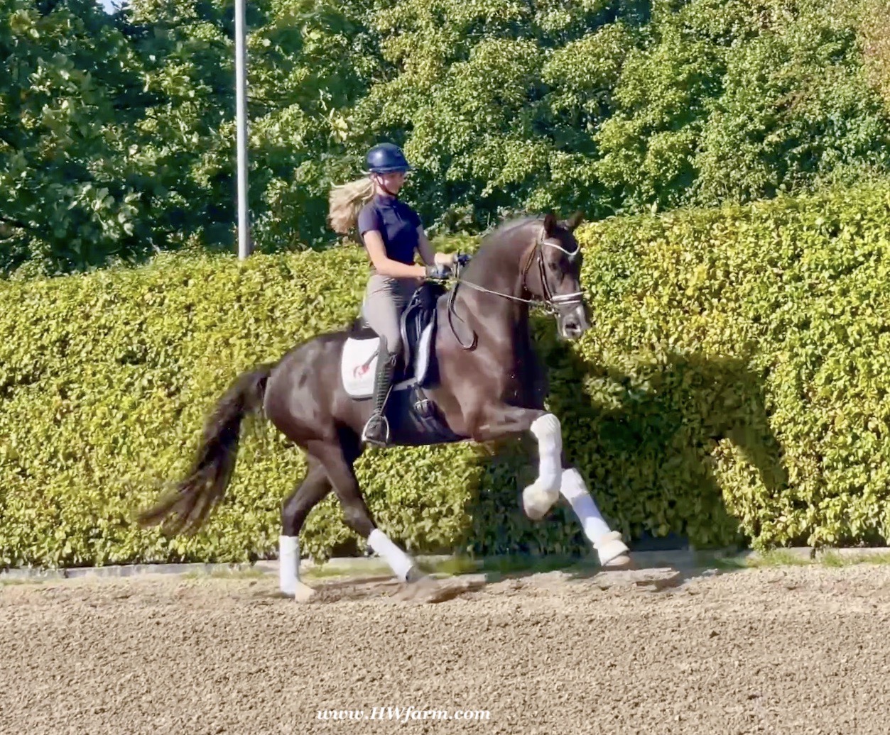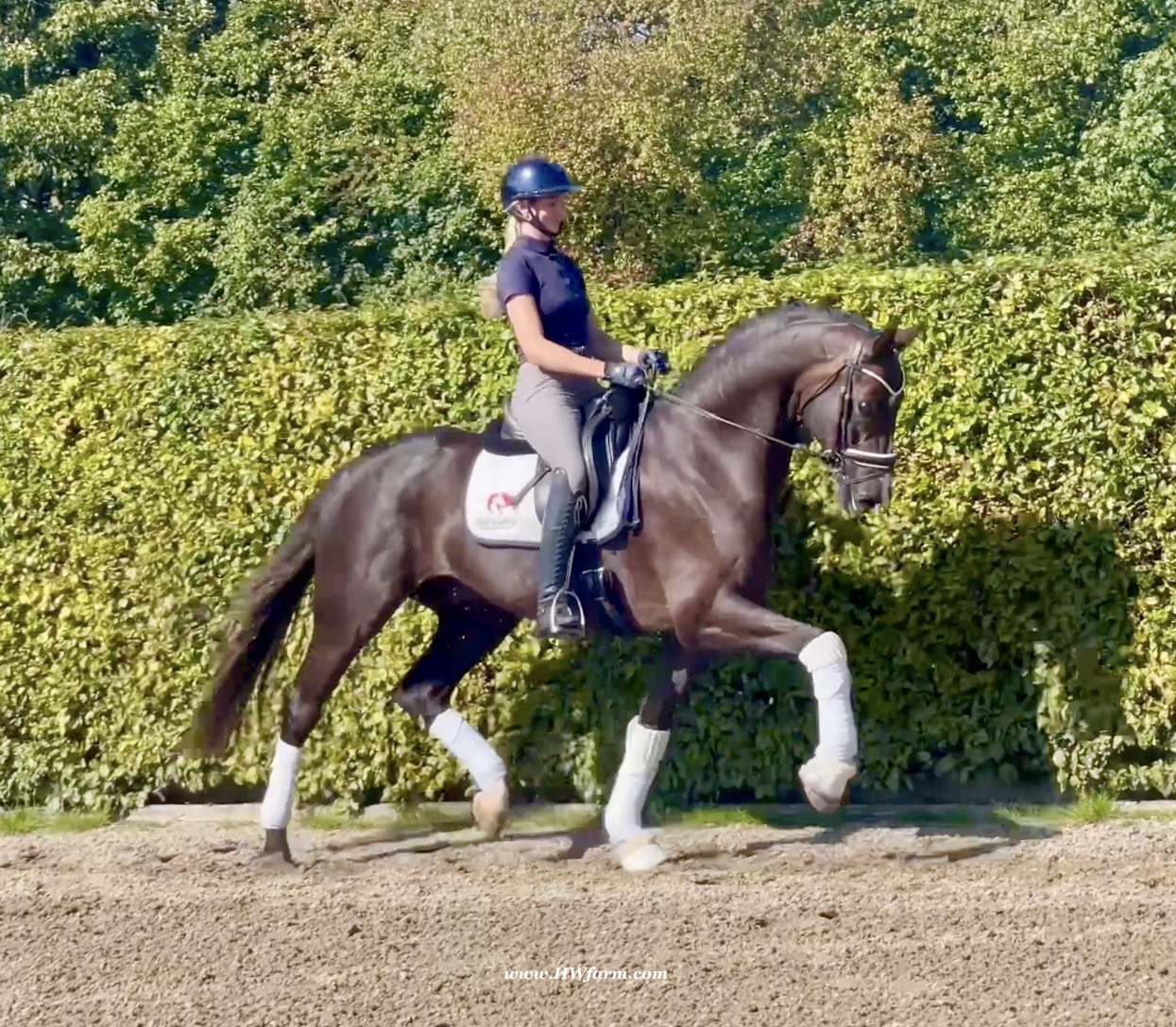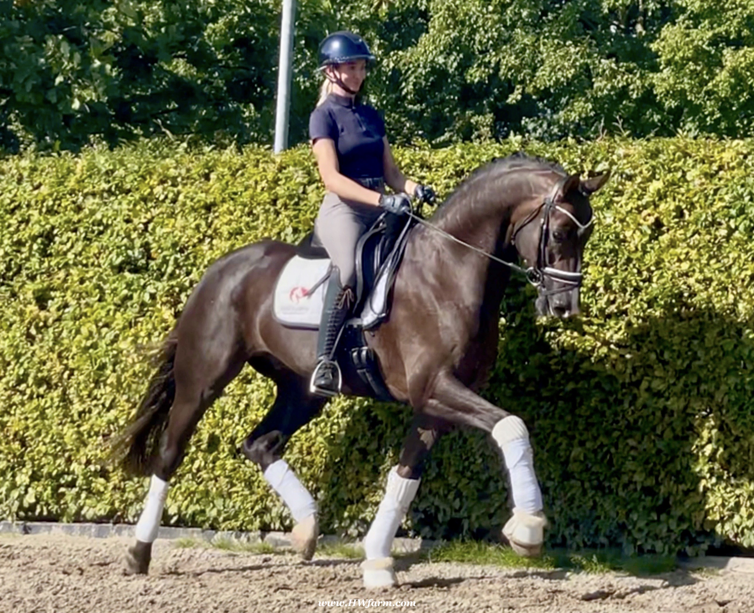 | Bon Excellent HW, liver chestnut Oldenburg gelding by Bonds/Quaterback, born in 2021, standing approximately 170 cm or 16.2 hands. Bon Excellent HW has an amazing gene pool, his sire is Bonds, a highly celebrated champion of the licensing in Vechta. Majestic occurrence, ultramodern type brilliance, outstanding movements, perfectly formed self-hold - Bonds surpassed the high-quality Oldenburger crop up in Vechta by a mile and was hailed as a champion stallion frenetically. The sire Benicio became 2011, Anna Sophie Fiebelkorn terrific scores for dressage horses Bundeschampion: 10.0 for the trot and the step 9.5 for overall impression and 9.0 for the canter. The 30-day test in Schlieckau he finished with ten times the maximum score 10.0. The dressage score yielded 9.88 and was thus even higher than the record rating of his sire Belissimo M NRW. Meanwhile, he could celebrate successes to Inter Series II. 2015, three of his sons licensed, including a further premium stallion. The grandsire Sir Donnerhall I has long been considered trademark stallion of modern dressage horse breeding. The granddam St.Pr.St. Rhea Silva 2003 was Brilliant Ring Mare. Her son "Forever You" is in M ** - successful dressage. Great-grandfather is the legendary Rubinstein. Bon Excellent HW's dam is by the phenomenal Bundeschampion Quaterback. A stallion that seems like he could only come from another planet - with his light-footed, brilliant movement and perfect cadence, all eyes become riveted on Quaterback when he appears. He was the radiant Bundeschampion of the three-year-old riding horses in 2006 with the highest scores for his trot and canter. The test riders in Warendorf even gave him this dream score of 10.0. Prior to this test, he had won several tests for young riding horses. He was also the winner of his 30-day test with a final score of 9.14 in dressage, an 8.43 for jumping and an overall score of 8.88. As if it were not enough to have unbelievably dynamic movement, he was also blessed with an outstanding type. Quaterback comes from one of the most successful mare lines of modern day. His dam Passionata is a half-sister of the unforgettable World Champion and double Bundeschampion, Poetin. Her full brothers Samba Hit I to IV put on convincing presentations at the Bundeschampionate. Samba Hit I was also a finalist in the 2006 Nürnberg Burgpokal and the sire of Samba's Diamond who became the Champion Stallion of the licensing in Berlin-Brandenburg and Sachsen-Anhalt that same year. Quarterback's successful advanced (S) level sire Quaterman also participated in several Bundeschampionats and is deemed one of the best sires for passing on good movements in the new German States. The grand-sire Quando-Quando took 15th place at the World Championships in Aachen in 2006 under Kristy Oatley-Nist. With a pedigree geared for performance from all sides and from the famous Neustädter P family, all doors are open for Quaterback. Quaterback in the end excelled as a performance producer, which his HEK-breed value of 155 and a fourth place in the WBFSH-ranking for dressage horse-producers reflect. From 87 descendants with successes at the S-level, 19 already reached the Grand Prix-level. His oldest descedants are only 13 years of age, in other words, many are not yet ma-ture enough for Grand Prix-classes. Ten-year-old Quantaz out of a Hohenstein dam, is most successful. Quantaz had the talent to get to Isabell Werth. In 2020, they participated in six Grand Prix-classes, and won them all. Quaterback sired no less than 72 licensed sons in Germany and has 532 daughters registered as broodmares, no less than 145 of them are state premium. His most successful offspring are Quantaz (Isabell Werth), Quater Back Junior (Nicolas Wagner), Quatermain (Marina Mattsson), Quotenkönig (Theresa Friesdorf), Quantum Vis MW (Dorothee Schneider), Quebec and Quantum (Ulrike Prunthaller), Pathetique (Dorothee Schneider), Touchdown (Patrik Kittel), Queensland (Kristin Biermann), Quam Libet (Lisa-Marie Klossinger), Qatar (Berill Szoke Toth), Mister-C (Dorothee Schneider), Quaterboy (Estelle Wettstein), Quentano (Emile Faurie), Quadroneur, Quincy, Quintus, Quaterback I, Quater Figlio, Qredit Hilltop, Quaterbold du Payrol, and many many more. He passes his big and fleet-footed movement to his offspring, and therefore has produced a lot of foal champions and auction foals. One of them was sold for 120.000 euros at a Hanoverian auction. Quaterback was ranked 47th in the 2017 WBFSH Dressage Sire rankings, 22nd in 2018 and in 2019 he made an impressive jump to the #5 spot as a top sire of the world! In 2019 he sired two Grand Prix horses, one for Dorothee Schneider and one for Isabell Werth. In 2012, Quaterback was the sire of the Vice-Bundeschampion. Quaterback sired no less than 72 licensed sons in Germany and has 532 daughters registered as broodmares, no less than 145 of them are state premium. Bon Excellent HW is the definition of a modern dressage superstar, captivating audiences with movement blessed with extreme elasticity, profound suspension, and incredible air time. This elegant gelding showcases a powerful, free shoulder paired with a super active hind leg-the foundation of a true Grand Prix powerhouse. Beyond his athletic talent, Bon Excellent HW is breathtakingly beautiful, featuring a beautifully set 'stallion neck,' a chiseled head, and a heart of gold. Smart, willing, and striving for perfection every day, this young gentleman is a certain FEI candidate. Don't simply look for potential; buy the established su-perstar. Secure Bon Excellent HW now and step directly into the winners' circle at the Young Horse Championships or the BundesChampionships. X-rays on file! US $80,000 to $150,000 - check out his video clip!!! Please e-mail Irene@HWfarm.com Or text 239-772-7722 for Irene, managing member, HorseSales LLC We take pride in answering every e-mail right away (at least at the same day) and to return each call. If you don't get a re