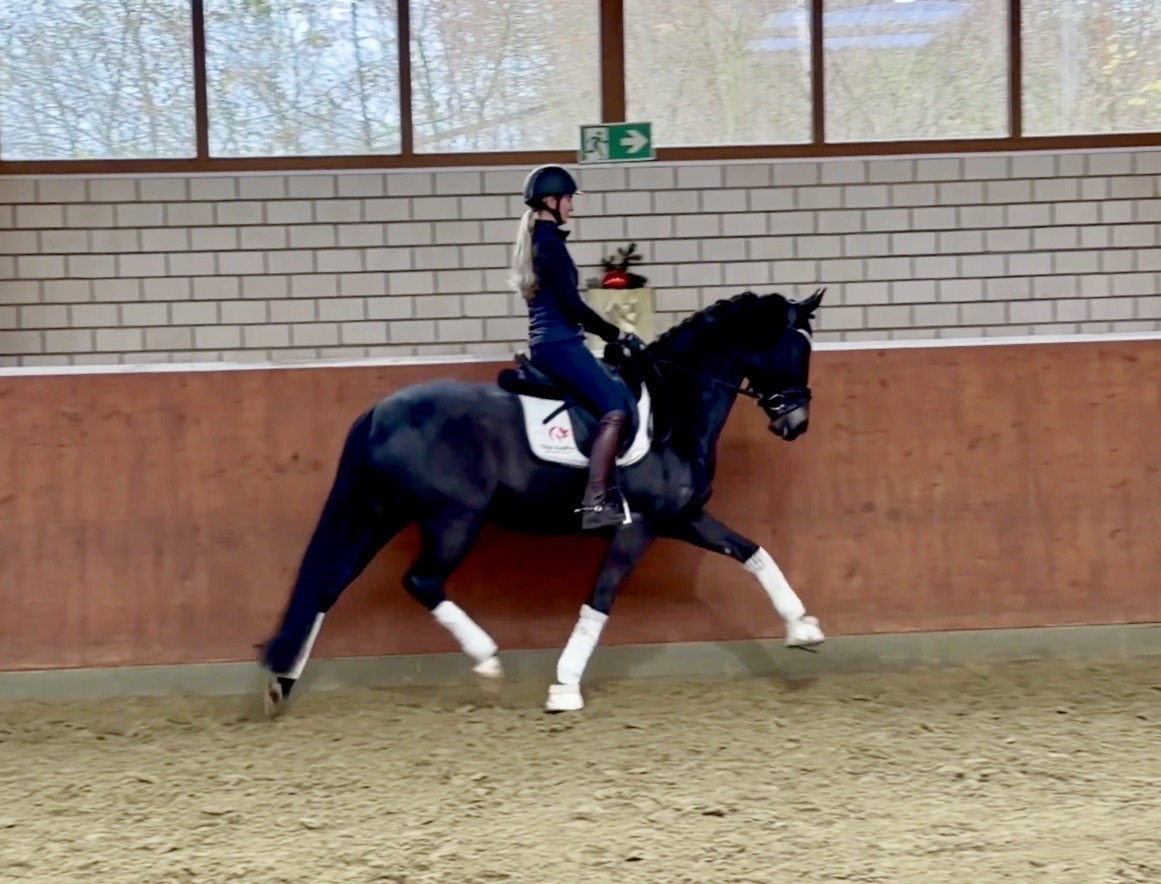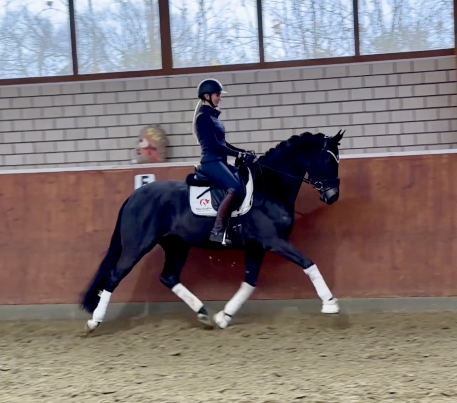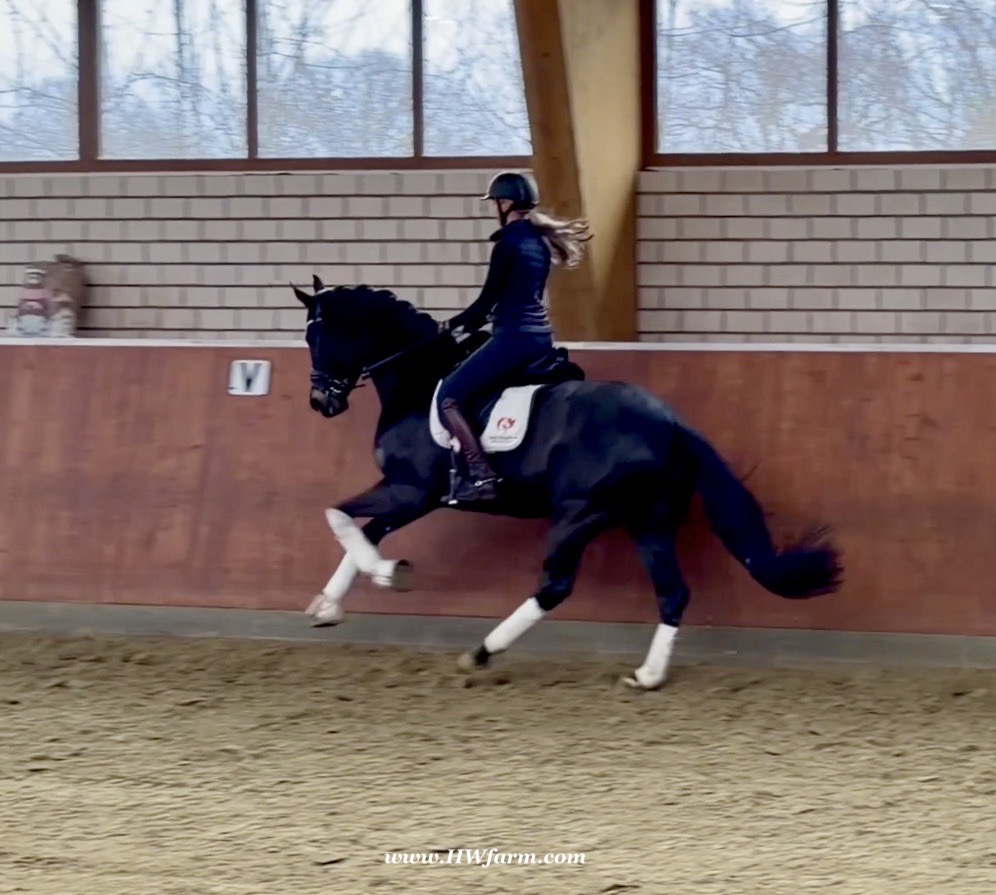 EscaHit HW, black/bay Westphalian gelding, by silver and bronze medallist at the World Championships for young dressage horses Escamillo/German national champion, World Champion of six-year-old dressage horses Sandro Hit, born in 2020, standing approximately 169 cm or 16.2 hands. EscaHit HW has an impressive pedigree and his famous sire is Escamillo, Vice World Champion of six-year-old dressage horses Bronze medal World Championship of seven-year-old horses "What an amazing performance," the judges praised Escamillo's performance in the World Championship final for seven-year-old dressage horses in their commentary, "we love this horse and see a very big future in him." Once again, Escamillo received dream scores at this prestigious meeting of the world's best young dressage horses. 9.5 for trot and perspective, 9.0 for walk and canter, 8.5 for submission - and a fantastic 91 percent and the bronze medal. The year before, Escamillo, ridden by the Spanish rider Manuel Dominguez Bernal, who rides for Helen Langehanenberg's yard, had already received scores of 9.0 and higher in the World Championship's arena, earning him the silver medal in the six-year-olds class. Breeding-wise Escamillo also puts one exclamation mark after the next behind his hereditary power. He has already produced over 30 licensed stallions, among them the Neustadt Champion Stallion Element of Crime, the Hanoverian Premium Stallion and 700,000-euro Stallion Market top price Energy, the Westphalian Reserve Champion Stallions Escaneno, Espléndido MT and Excalibur as well as our stallions Escanto PS, two-time stallion performance test record winner, Expectation PS and Escamour, the stallion performance test winner Eleven HW and the bronze medallist of the Hanoverian Championships, Estupendo. The German and Westphalian Champion Eivissa ridden by Jessica Lynn Thomas/SWE stands out amongst his first sport offspring. She received a 10 for both trot and canter and a 9.5 for rideability and conformation in Warendorf. Embolo, third in the "Westfalen-Wappen" class at the "Turnier der Sieger", achieved the sensational knockdown price of 590,000 euros, the highest price ever achieved by a riding horse at a Westphalian auction. Eyecatcher W won the Austrian Warmblood Championships for three-year-olds in Stadl-Paura/AUT. Escamillo's daughter, Exclusive, won the Herwart van der Decken Show in Verden. Escamillo began his career as premium stallion at his licensing in 2017 in Verden, passed his 14-day test in 2018 with a dressage score of 9.08 and completed his sport test in 2020 with Helen Langehanenberg with a winning score of 9.36. Ridden by the Olympic team silver medallist, he also qualified for the German Championships for young dressage horses as a five-year-old with 9.5. In 2021, with Manuel Dominguez Bernal, he won the intermediate (M) level dressage test for young horses in Haftenkamp with a score of 8.8 (also qualifier for the German Championships for six-year-olds). The same year, Escamillo was awarded the Weltmeyer Prize by the Hanoverian Association. His sire, the Westphalian and double German Champion Escolar, was placed in the final of the Burg Cup, the final of the Louisdor Prize and at the German Championships with the Olympic Champion and riding master Hubertus Schmidt/GER. They were part of the German Olympic squad. His dam Verb.Pr.St. Cassila is the full sister of the licensed stallions Romanist (advanced S* level dressage) and Romeo Niro (intermediate M** level dressage). His grand-sire Rohdiamant was German Champion in 1993 and competed at Grand Prix level with Lisa Wilcox/USA. Around 50 of his sons have been licensed. His most successful offspring include Valentina Truppa's/ITA Olympic partner Eremo del Castegno and Helen Langehanenberg's Responsible OLD. His grand-dam Chantal is the full sister of Dumont/Juliane Brunkhorst/GER and Hartwig Burfeind/GER, licensed stallion and successful in Grand Prix, and her half brother Aquavit (by Argentinus) is successful in competitions for young show jumping horses. De Niro, Landadel and Zeus also appear in the pedigree. His great-grand-dam St.Pr./El.St. Caruge is the full sister of the licensed stallion Laphroaig/Leporello and produced several state premium mares. Her full sister is no other than the German Champion Mare St.Pr./El.St. C-Dur, who produced four licensed stallions. Line of El.St. Cinderella, from which descend the five German Champion full siblings Sir Heinrich OLD, Cindy OLD, Candy OLD, Caty OLD and Casey OLD (all by Sir Donnerhall I), the Grand Prix dressage horse Radondo (by Romanov)/Ashley Holzer/USA, as well as the stallions Zymbal I and II (both by Zeus), First Class I and II (both by Furioso II), Sesostris (by Silvio I), Rubino Rosso (by Rubinstein), Castus I and II (both by Classiker), Stiefelkönig (by Silvano), Grand Marnier (by Galoubet A), Pharaoh (by Parabol), RTL (by Rubinstein), Routinier (by Rohdiamant), Solo Hit (by Sandro Hit), Get Smart (by Granulit), Fortune Hunter (by First Class I), Casanova (by Castro) and Si bon (by Sir Donnerhall I). Closely related to the famous Wendel's German Champion quintet. EscaHit HW's dam sire is the famous Sandro Hit. Sandro Hit has been one of the world's best dressage sires in the WBFSH ranking for twelve years. In 2021 he was even number one. Sandro Hit has left his lasting mark on modern dressage horse breeding with his brilliantly typed and extremely light-footed offspring. He is considered the founding stallion of our station - and line founder. At the Olympic Games in Tokyo, Showtime FRH/Dorothee Schneider and Salvino/Adrienne Lyle were on the gold and silver teams from Germany and the USA. This was the second Olympic gold for Showtime FRH, after European Championship team gold and double individual silver. Salvino was also part of the US dressage silver team at the 2018 World Equestrian Games in Tryon, USA. Also at the start in Tokyo/JPN: Sir Donnerhall II OLD/Morgan Barbançon/FRA, Sebastien/Lindsay 