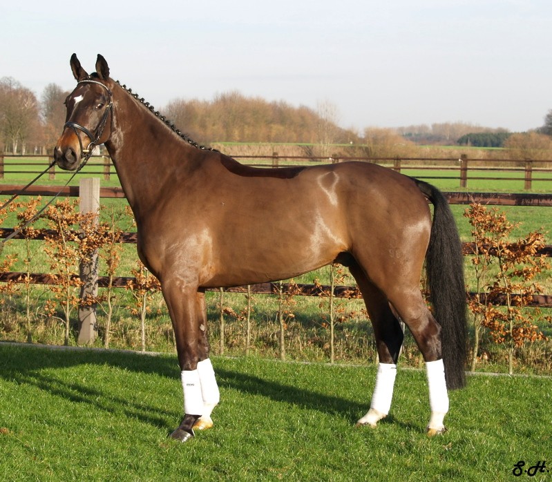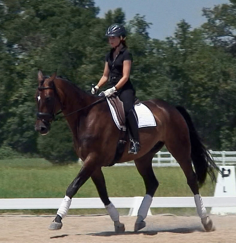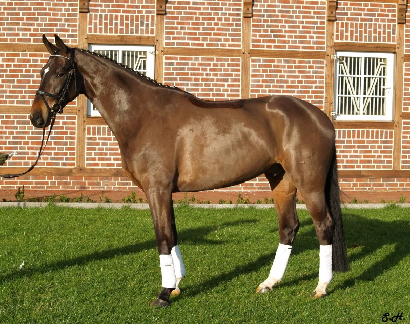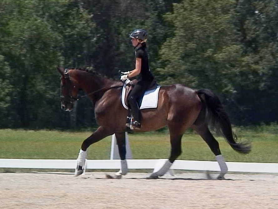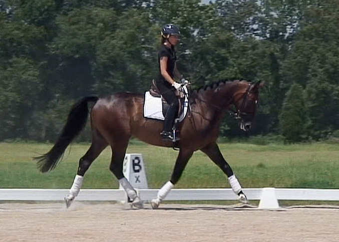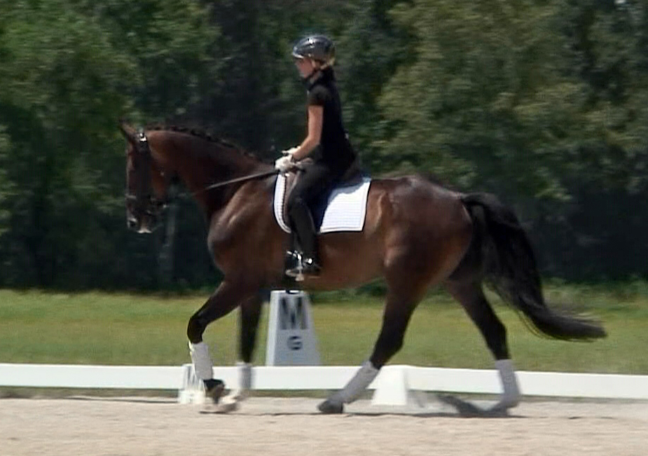 Darling HW is a dark bay Oldenburger gelding by Davignon II/Grand Ferdinand II, born in 2002 and is approximately 16.3 hands. IMPORTED, now in Darling HW can proudly look back on solid Hanoverian bloodlines with the famous Donnerhall, Pik Pube and Grande to name just a few. His sire Davignon II is a modern stallion with a dark jacket and a glamorous face. His body type, ride ability, basic gaits , temperament and character are the most spectacular attributes of Davignon II. Darling HW’s grandfather Donnerhall is well known for his high sport level and his excellent descendants - is surely the most important dressage stallion in the last years. The combination of Donnerhall with mares of Pik Bube - is nearly a guarantee for horses with extra class and high talent. Davignon II is a very special stallion for breeders and a high talented sport horse, so Darling HW has all the ingredients for a successful carrier. Darling HW may go all the way up the levels, be a star in FEI classes and draw attention to himself with his spectacular looks and movement. He has a very good work ethic combined with three very competitive gaits. His trot has a wonderful swinging quality that is not often found in horses this young. It is comfortable to sit, while remaining scopey and forward. He can pursue a dressage carrier, he jumps and would also be a good 3 day eventer. He is an energetic (but not hot), forward moving and fun horse for every day fun. Steady in the bit, with a phenomenal rhythm as well as balance and outstanding gaits will give you the feeling that you are sitting on clouds. He is really easy to sit because he swings through his whole body including the back and will not bounce you around in the saddle. He is a solid First Level horse right