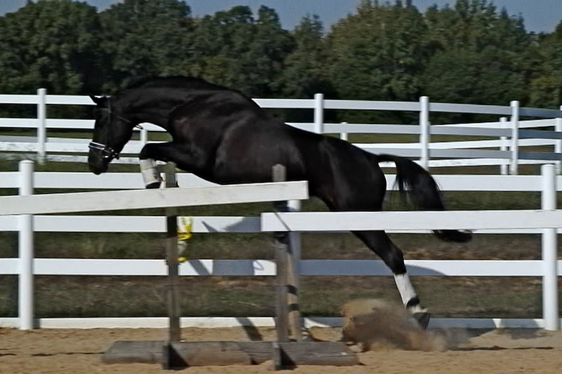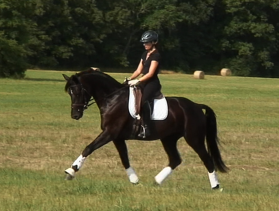 professionals alike. Hacks even out in the fields and through the woods confidently. She is a super nice girl, learning really fast and is as sweet as can be! Can you imagine how fast she will be at PSG or further? She can go out and show Training Level already and she will be a super asset to any breeding program now through embryo transfer or later, after a successful show career. With her free shoulder and uphill movement, she is fun to ride and to show off. Her daily work is a blast and she wants to please her rider and is a complete puppy dog in the barn. Buy this girl now and take her out and show her to the judges and the audience, clinics should be a blast with her, as well as every horse show. So don’t wait, or somebody else might snatch her up. Here