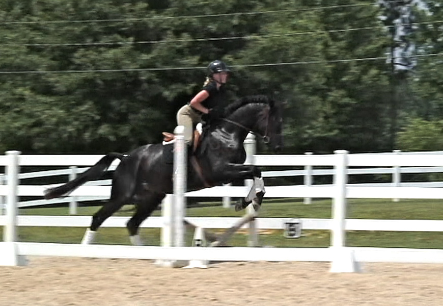 are some comments from her trainer Amanda Baily: This is far and away the easiest young horse I have ever worked with. She is ready for training level right now. Easy on the bit. Nice big suspended swinging trot. Relaxed walk with plenty of overstride. Her canter has good balance and an uphill tendency. Hannah is a dream to work with. Super reliable undersaddle and on the ground. Comes out happy and ready to work. Never mareish in her behavior. Learns quickly and eagerly. Really wants to please her person. She is very tuned into her rider/handler. She is confident in the arena and out in the open fields or in the woods. No spook, buck, rear, bolt or balk. As uncomplicated as they come. She has the potential to move all the way up the levels. Also a very good Young Horse candidate.
