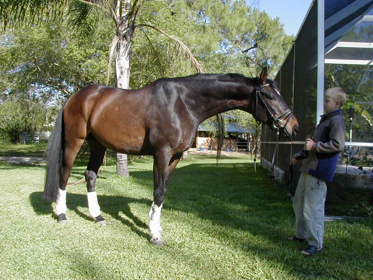 12, 1999), imported, dark bay Hanoverian Gelding by Amerigo Vespucci. He is
