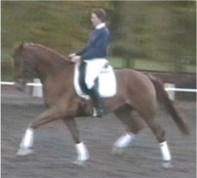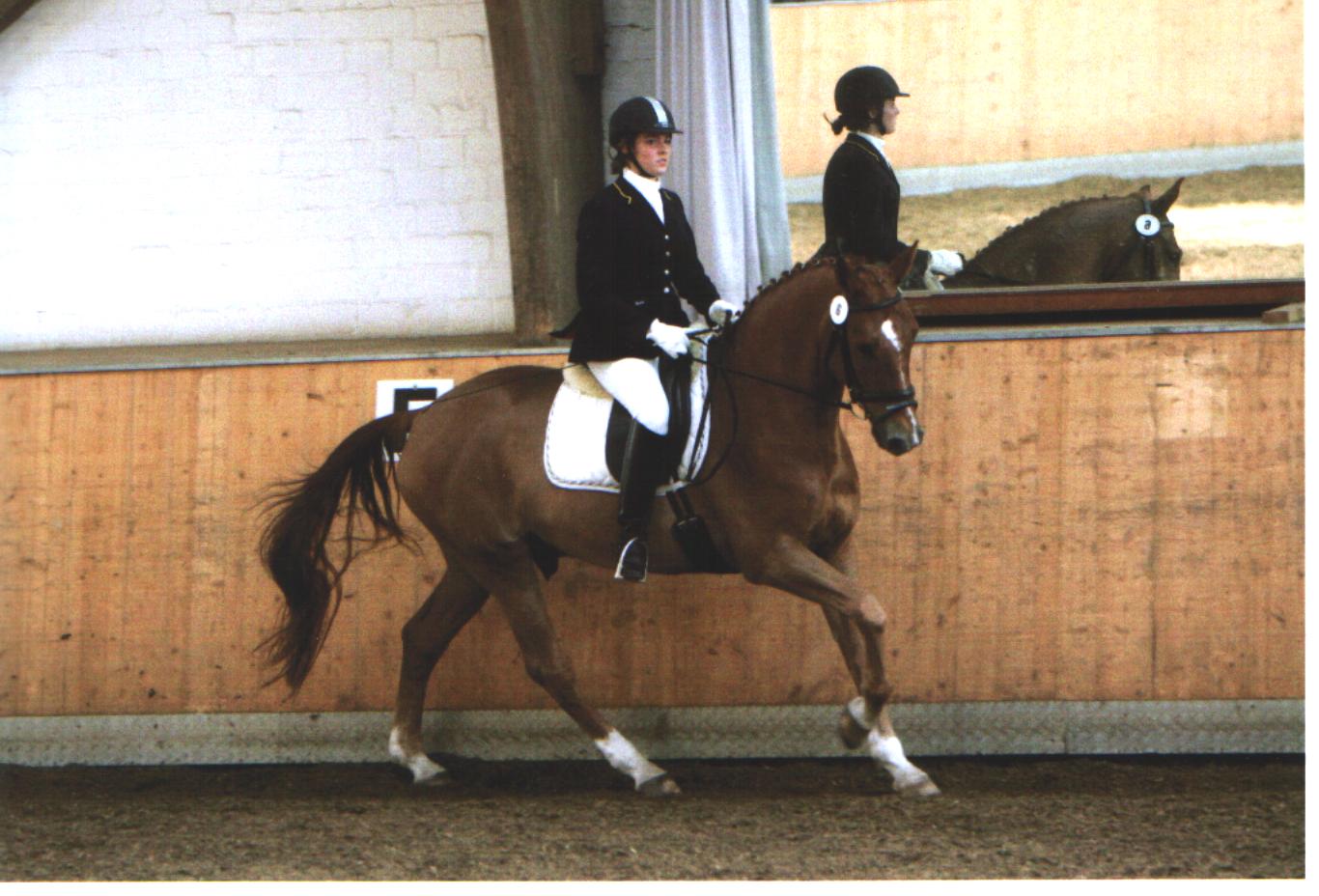 Amicelli, chestnut Hanoverian gelding by Akatschi, born 1999. This