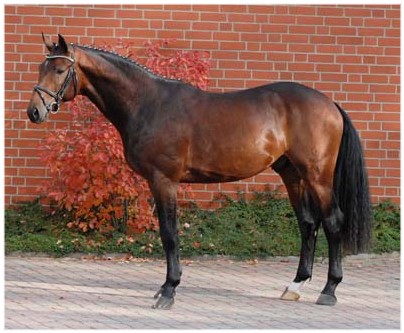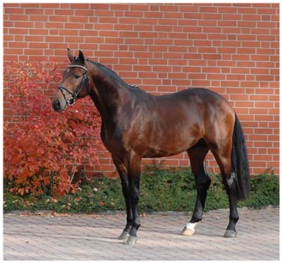 Bel Ami, bay Oldenburg gelding by Björsells Briar 899 / Arpeggio / Pablo / Zymbal / der Löwe xx, born in 2006, standing approximately 16.2 hands. Bel Ami is by the very famous Briar. Briar has always been a