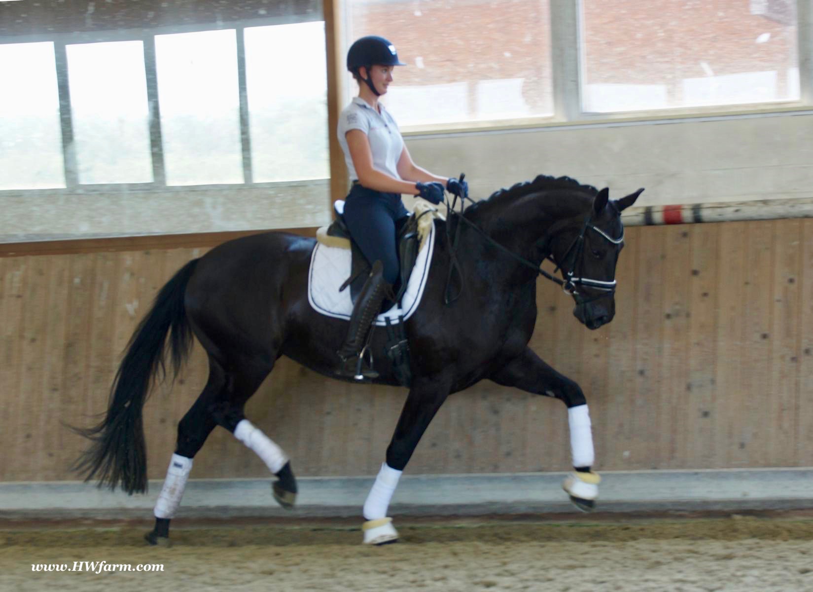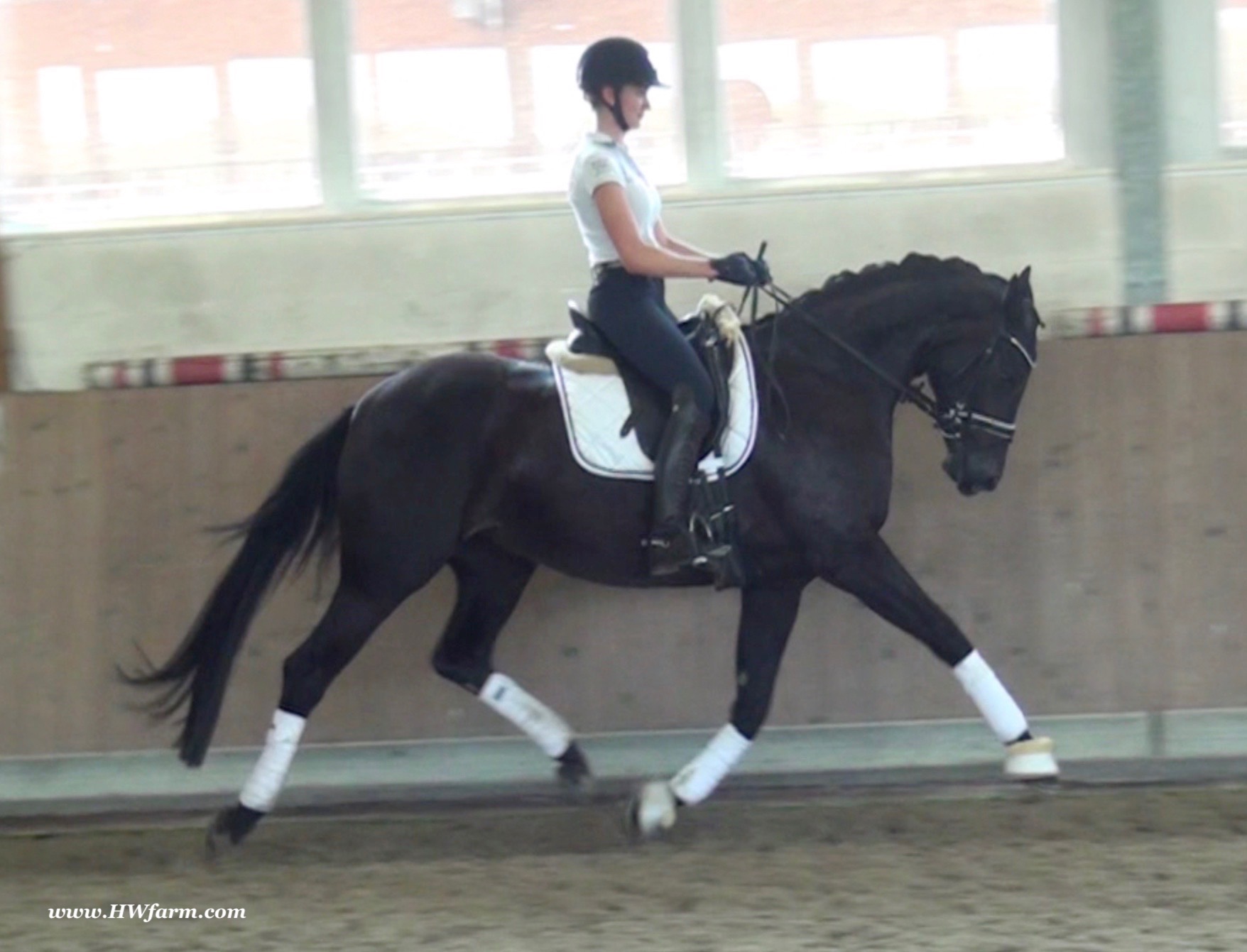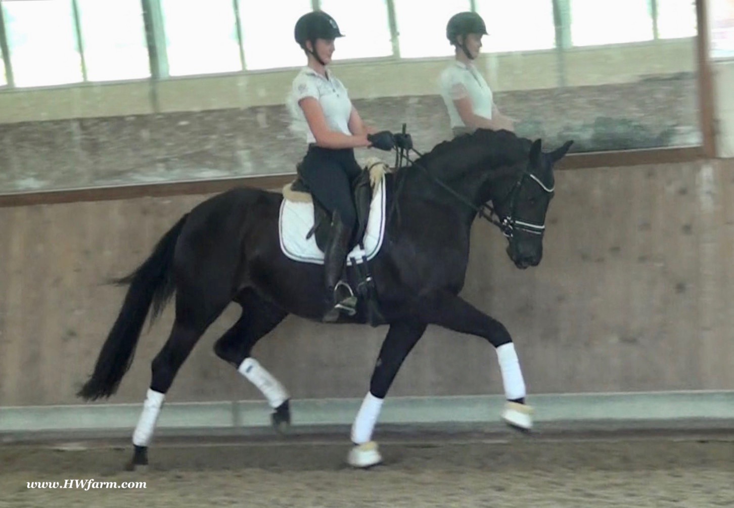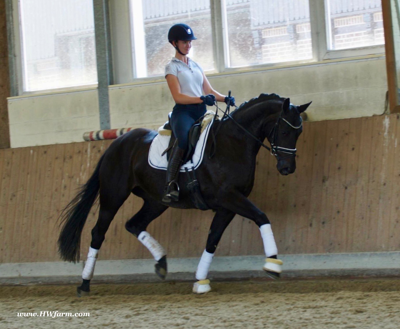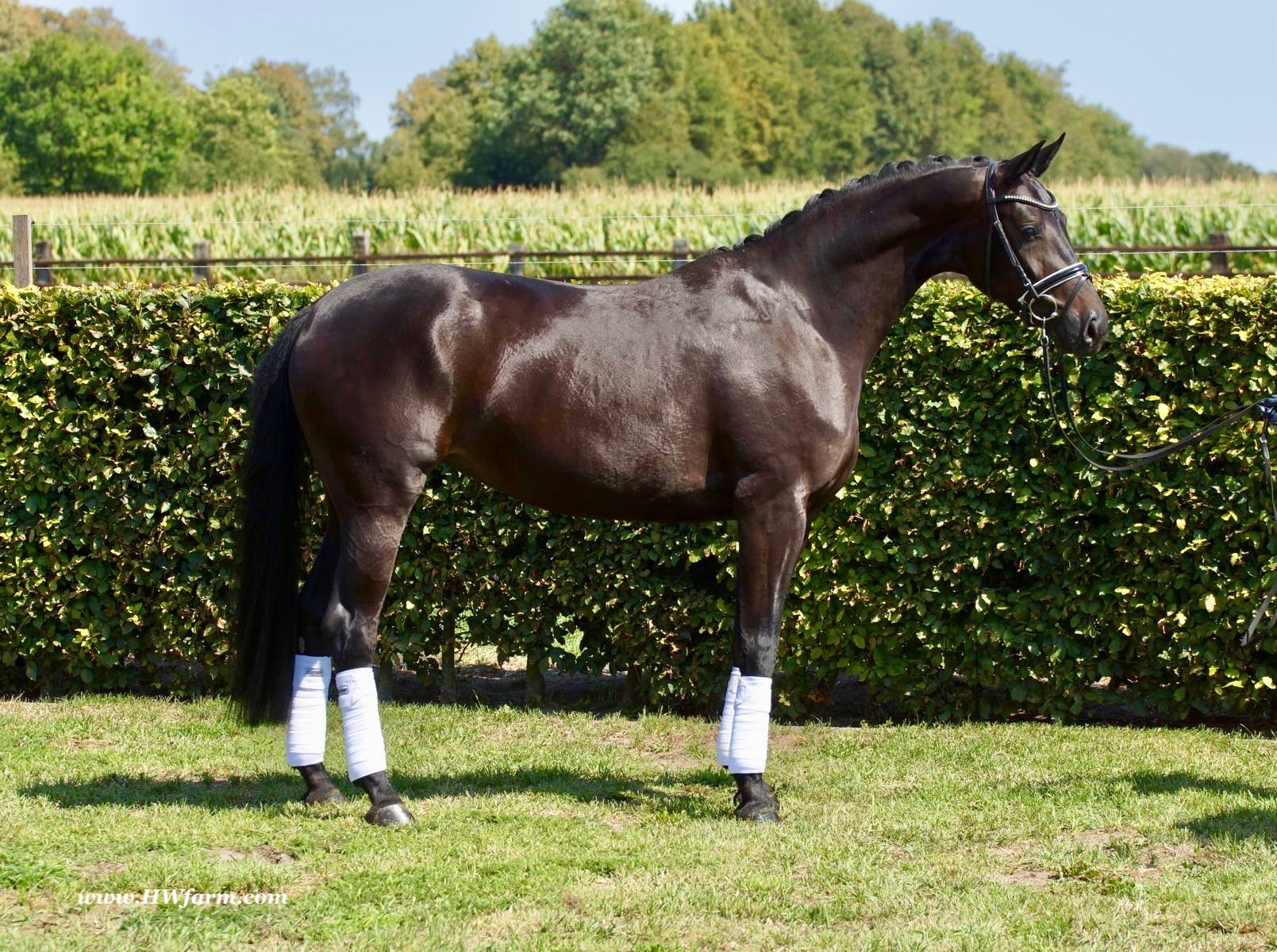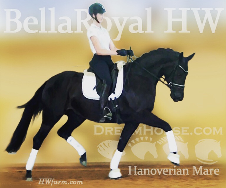 training: BellaRoyal HW's dam sire is the world famous Sir Donnerhall. Sire of World Champions, Winners of the Bundeschampionship, price record setters and licensing champions. Sir Donnerhall has long since stepped out of the shadow of his incredible sire Sandro Hit and has claimed a place among the world's best dressage sires. He has produced 6 German National Champions: In 2013, Cindy OLD (4 yo mares/geldings), in 2014, Special Diva OLD (3 yo mares/geldings) and Sir Heinrich (6 yo), in 2016, Smirnoff (5 yo) and in 2017, Candy OLD (4 yo mares/geldings). In 2018, Caty OLD (4 yo mares/geldings) made the historical record perfect, as she is already the fourth Sir Donnerhall descendant out of St.Pr.St. C'est bon to win gold in Warendorf. Her full-sister Candy OLD also won the bronze medal at the World Championships for Young Horses (5 yo). Sa Coeur became double World Champion and price highlight of the P.S.I. Auction, selling for 2.31 million euros. He is just one of numerous auction top prices. Sir Donnerhall's offspring have long since conquered the Grand Prix arenas. Sai Baba Plus/Boaventura Freire/POR was placed in several World Cups and took part in the European Championships in 2017 in Gothenburg/SWE. Galliani Biolley/Katrien Verreet/BEL was placed in Nations Cup competitions, Semper Fidelis/Catherine Haddad Staller/USA, Sir Caramello/Ashley Holzer/USA and Sir Donato/Anders Dahl/DEN etc. are also internationally successful. He has produced 97 licensed stallions, including numerous champion and premium stallions as well as Sir Olli, bronze medallist at the World Championships for Young Horses. Out of the 193 state premium mares, the Oldenburg Champion Mare Candy OLD stands out. Furthermore, the winning stallions Bonds, Feinrich and For Romance I, the Westphalian Champion Fürst Magic, the German Vice Champion Lilliano OLD, the German Champion Revenant and the Oldenburg Champion Mare, German Champion and P.S.I. price highlight Fasine OLD also descend from Sir Donnerhall's dam line. Sir Donnerhall was 2nd Reserve Champion at the Oldenburg licensing in 2003, winner of his stallion performance test and awarded the Ia main premium in 2005 and German Champion and Vice World Champion (5 yo) in 2006. He is now trained to advanced level. Due to the high breeding demands, he was no longer competed. His sire Sandro Hit, World Champion and German Champion, very quickly made a name for himself as a foundation stallion in dressage horse breeding. His dam St.Pr.St. Contenance also produced his full brother, Sir Donnerhall II, licensed stallion and World Cup finalist with Morgan Barbancon/ESP, and Stratege/Cora Jacobs, also successful in Grand-Prix. His dam sire is the sire of the century Donnerhall. one of the surest bets among German dressage horse producers click here to see successful Descendants BellaRoyal HW herself, is an extremely fancy lady. Beauty, elasticity, and suspension outline this stunning creature. Three rhythmic, big, expressive gaits - that will blow any and all competition out of the park. She is fabulous and easy to ride, super nice to sit and light in the bridle. Ideal for a AA, young rider, or professional alike, everybody wants fun! BellaRoyal HW, equipped with phenomenal competition genes, is a horse of amazing quality and super fancy mover who knows to impress due to her type and work ethic. This stunning horse has it all, pretty head, big stallion neck (even as a girl!), a total dream come true. Her hooves barley touch the ground. She loves to please her handler and rider and is a fast learner. This lady eagerly works under saddle and does an excellent job, with her free shoulder and huge suspension, she swings nicely through her back. She is breathtaking to watch in the dressage arena and with her quick, far reaching hind leg, passage and piaffe will come naturally to her. BellaRoyal HW is supple and has a ton of air time. This extremely talented mare has true FEI potential. With her great ride ability, she makes a lasting impression on whom ever sees her. She loves her personal grooming time and puts her head right in your lap, striving for attention and searching for treats. With this horse, you will be the star in FEI classes and at clinics, the judges and onlookers will remember her where ever she goes. Her bloodlines are very much sought after, she is your ticket to the top! BellaRoyal HW is used to go in the hot walker, loves her shower and solarium time. Stands for the farrier, loads and appreciates grooming time. She is a superb Young Horse Candidate, just what the judges are looking for and will make her way up the levels. X-rays on file! check out her video clip!!! Please contact Irene: Irene@HWfarm.com 239-772-7722 (ask for Irene, managing member of HorseSales LLC) We take pride in answering every e-mail right away (at least at the same day) and to return each call. If you don't get a reply - please try again, our spam filter might have gotten in the way?!