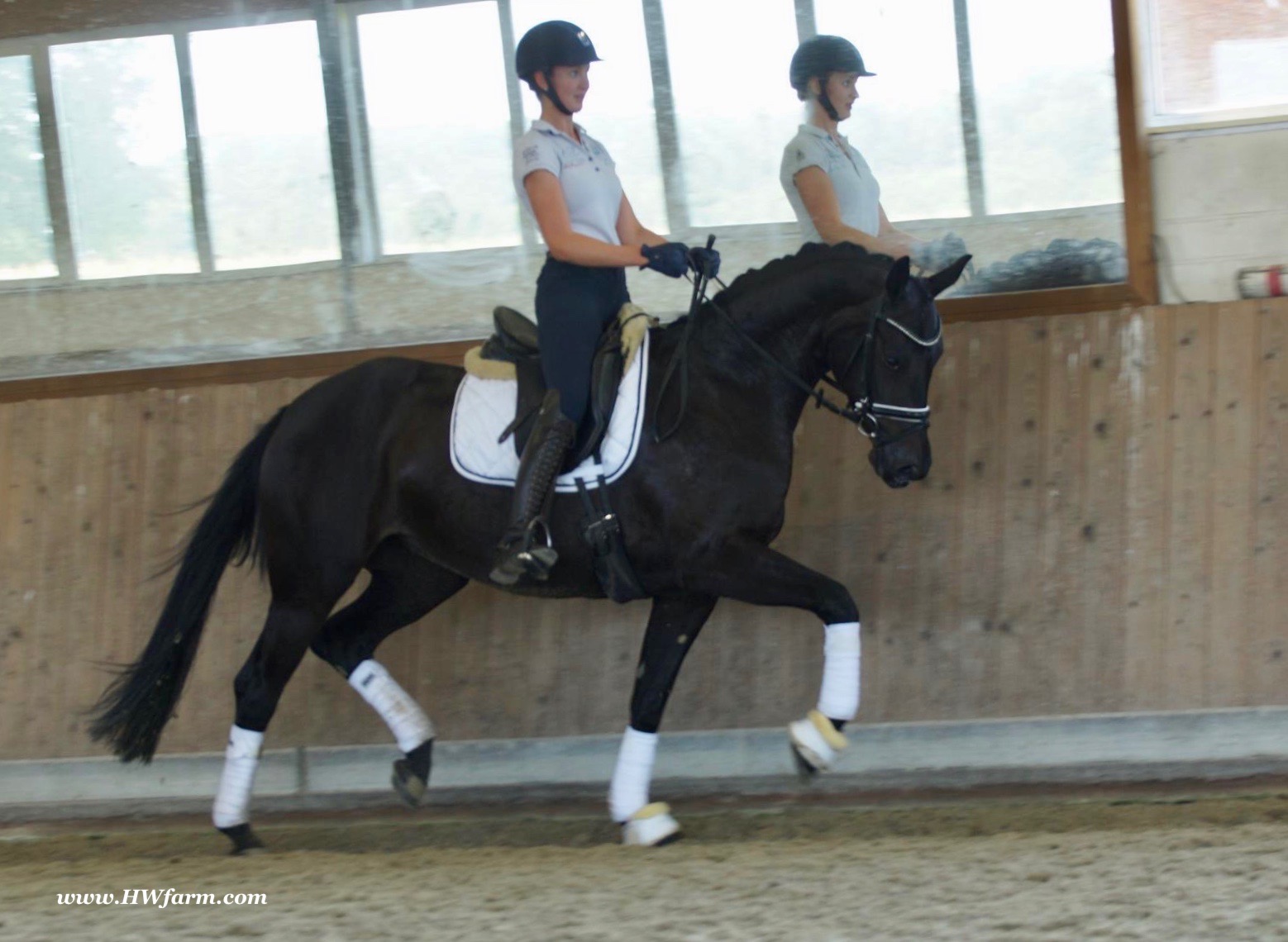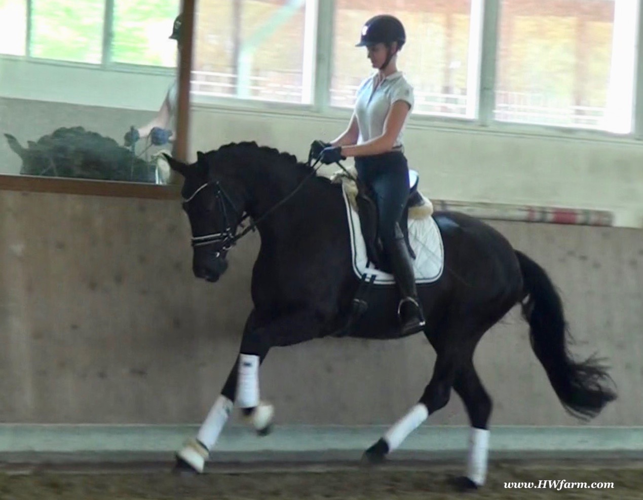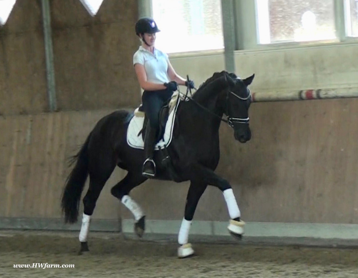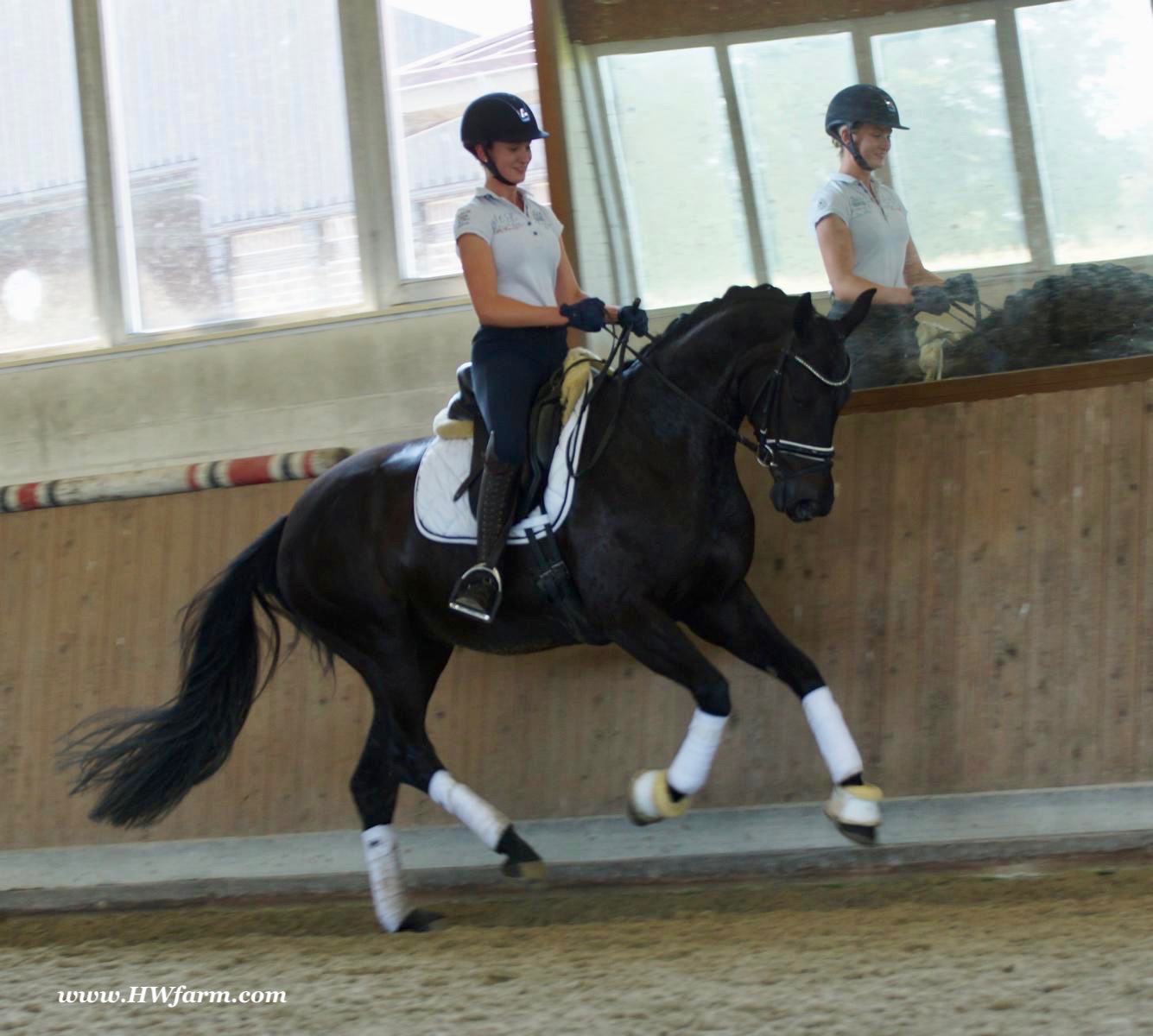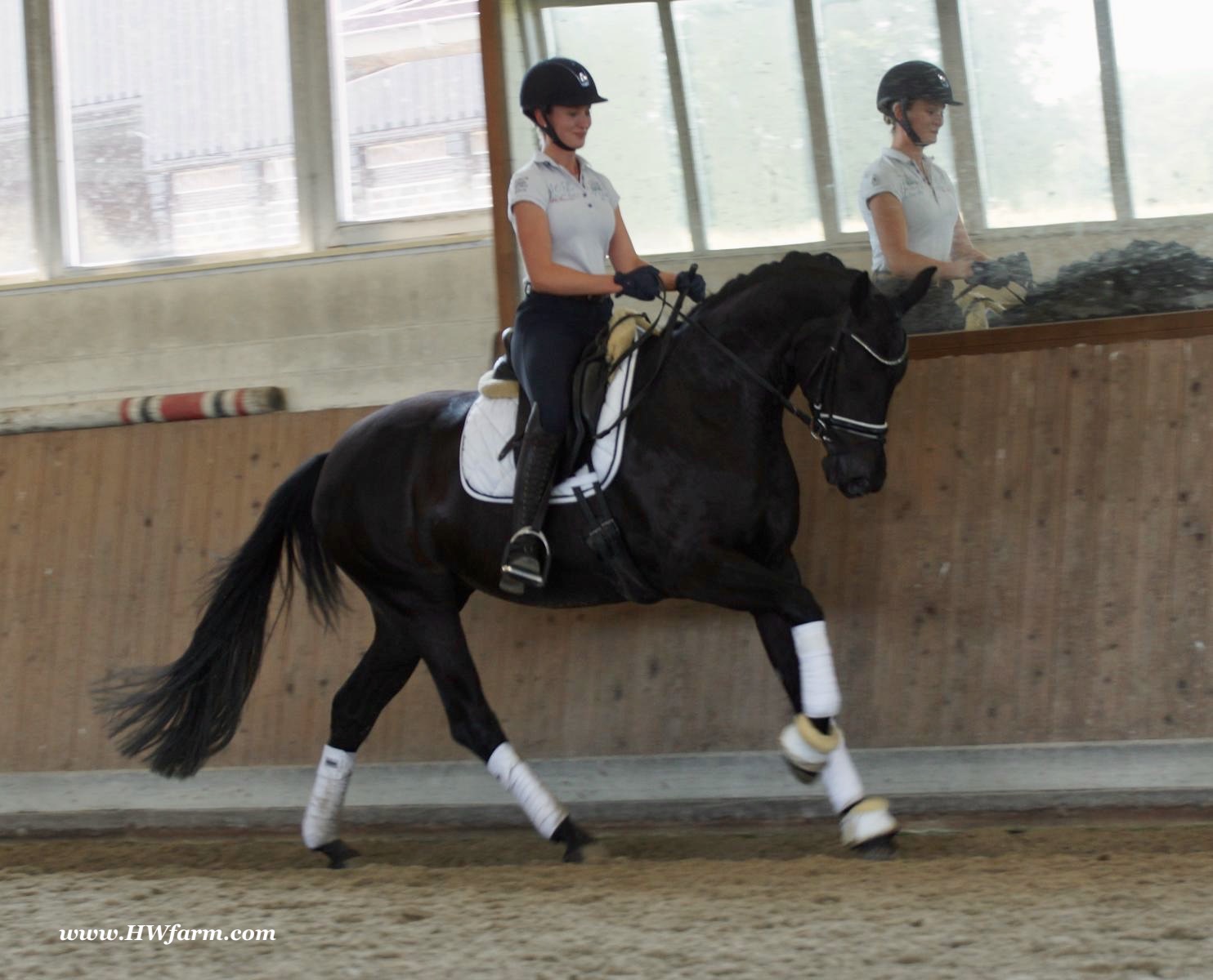 training: BellaRoyal HW's dam sire is the world famous Sir Donnerhall. Sire of World Champions, Winners of the Bundeschampionship, price record setters and licensing champions. Sir Donnerhall has long since stepped out of the shadow of his incredible sire Sandro Hit and has claimed a place among the world's best dressage sires. He has produced 6 German National Champions: In 2013, Cindy OLD (4 yo mares/geldings), in 2014, Special Diva OLD (3 yo mares/geldings) and Sir Heinrich (6 yo), in 2016, Smirnoff (5 yo) and in 2017, Candy OLD (4 yo mares/geldings). In 2018, Caty OLD (4 yo mares/geldings) made the historical record perfect, as she is already the fourth Sir Donnerhall descendant out of St.Pr.St. C'est bon to win gold in Warendorf. Her full-sister Candy OLD also won the bronze medal at the World Championships for Young Horses (5 yo). Sa Coeur became double World Champion and price highlight of the P.S.I. Auction, selling for 2.31 million euros. He is just one of numerous auction top prices. Sir Donnerhall's offspring have long since conquered the Grand Prix arenas. Sai Baba Plus/Boaventura Freire/POR was placed in several World Cups and took part in the European Championships in 2017 in Gothenburg/SWE. Galliani Biolley/Katrien Verreet/BEL was placed in Nations Cup competitions, Semper Fidelis/Catherine Haddad Staller/USA, Sir Caramello/Ashley Holzer/USA and Sir Donato/Anders Dahl/DEN etc. are also internationally successful. He has produced 97 licensed stallions, including numerous champion and premium stallions as well as Sir Olli, bronze medallist at the World Championships for Young Horses. Out of the 193 state premium mares, the Oldenburg Champion Mare Candy OLD stands out. Furthermore, the winning stallions Bonds, Feinrich and For Romance I, the Westphalian Champion Fürst Magic, the German Vice Champion Lilliano OLD, the German Champion Revenant and the Oldenburg Champion Mare, German Champion and P.S.I. price highlight Fasine OLD also descend from Sir Donnerhall's dam line. Sir Donnerhall was 2nd Reserve Champion at the Oldenburg licensing in 2003, winner of his stallion performance test and awarded the Ia main premium in 2005 and German Champion and Vice World Champion (5 yo) in 2006. He is now trained to advanced level. Due to the high breeding demands, he was no longer competed. His sire Sandro Hit, World Champion and German Champion, very quickly made a name for himself as a foundation stallion in dressage horse breeding. His dam St.Pr.St. Contenance also produced his full brother, Sir Donnerhall II, licensed stallion and World Cup finalist with Morgan Barbancon/ESP, and Stratege/Cora Jacobs, also successful in Grand-Prix. His dam sire is the sire of the century Donnerhall. one of the surest bets among German dressage horse producers click here to see successful Descendants BellaRoyal HW herself, is an extremely fancy lady. Beauty, elasticity, and suspension outline this stunning creature. Three rhythmic, big, expressive gaits - that will blow any and all competition out of the park. She is fabulous and easy to ride, super nice to sit and light in the bridle. Ideal for a AA, young rider, or professional alike, everybody wants fun! BellaRoyal HW, equipped with phenomenal competition genes, is a horse of amazing quality and super fancy mover who knows to impress due to her type and work ethic. This stunning horse has it all, pretty head, big stallion neck (even as a girl!), a total dream come true. Her hooves barley touch the ground. She loves to please her handler and rider and is a fast learner. This lady eagerly works under saddle and does an excellent job, with her free shoulder and huge suspension, she swings nicely through her back. She is breathtaking to watch in the dressage arena and with her quick, far reaching hind leg, passage and piaffe will come naturally to her. BellaRoyal HW is supple and has a ton of air time. This extremely talented mare has true FEI potential. With her great ride ability, she makes a lasting impression on whom ever sees her. She loves her personal grooming time and puts her head right in your lap, striving for attention and searching for treats. With this horse, you will be the star in FEI classes and at clinics, the judges and onlookers will remember her where ever she goes. Her bloodlines are very much sought after, she is your ticket to the top! BellaRoyal HW is used to go in the hot walker, loves her shower and solarium time. Stands for the farrier, loads and appreciates grooming time. She is a superb Young Horse Candidate, just what the judges are looking for and will make her way up the levels. X-rays on file! check out her video clip!!! Please contact Irene: Irene@HWfarm.com 239-772-7722 (ask for Irene, managing member of HorseSales LLC) We take pride in answering every e-mail right away (at least at the same day) and to return each call. If you don't get a reply - please try again, our spam filter might have gotten in the way?!