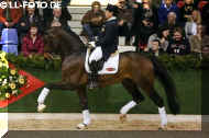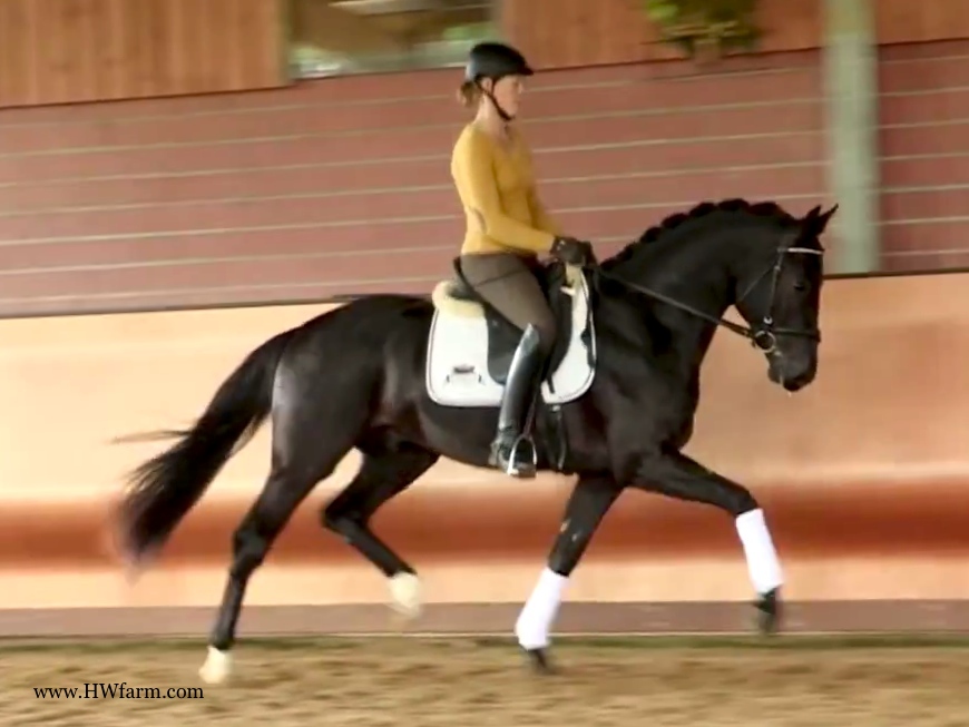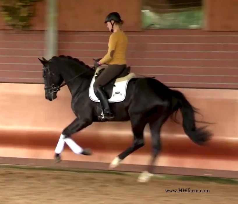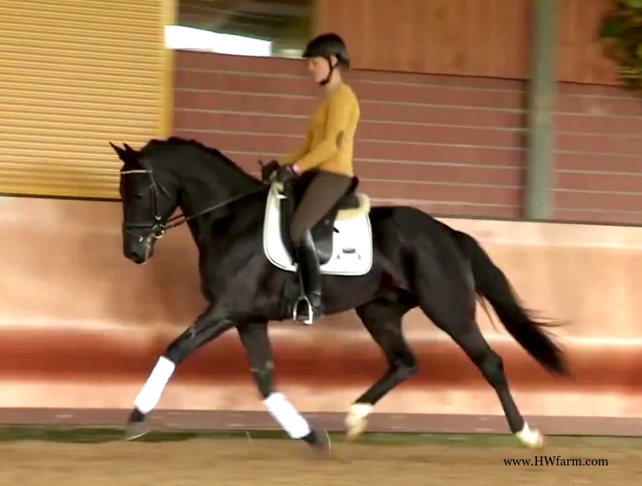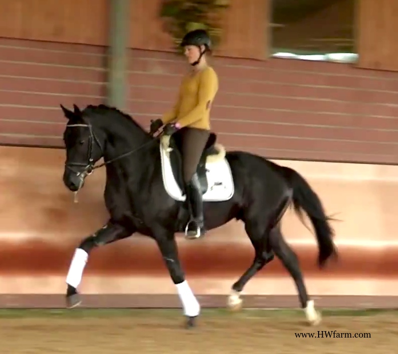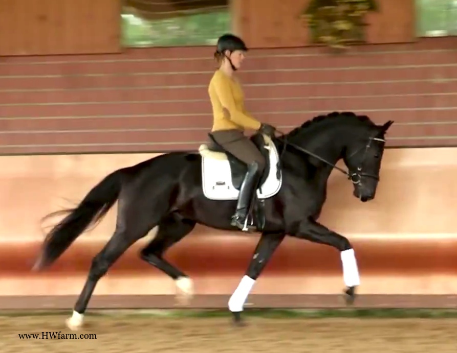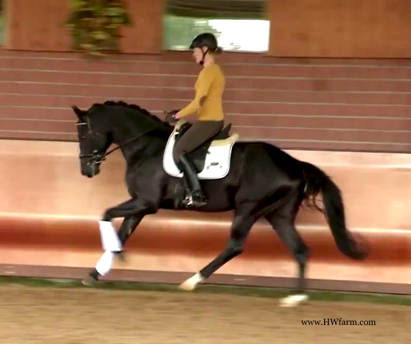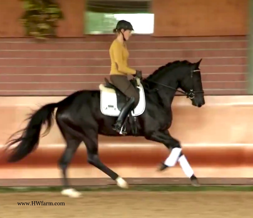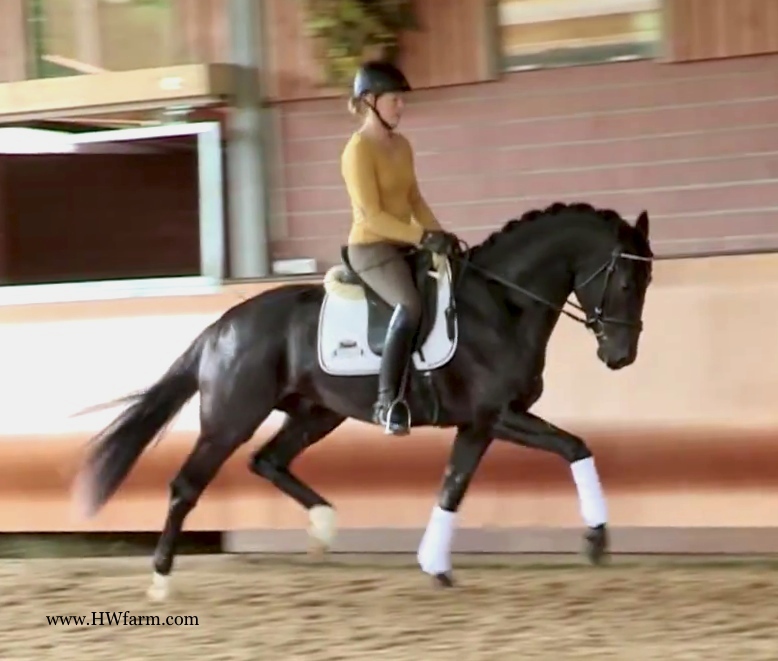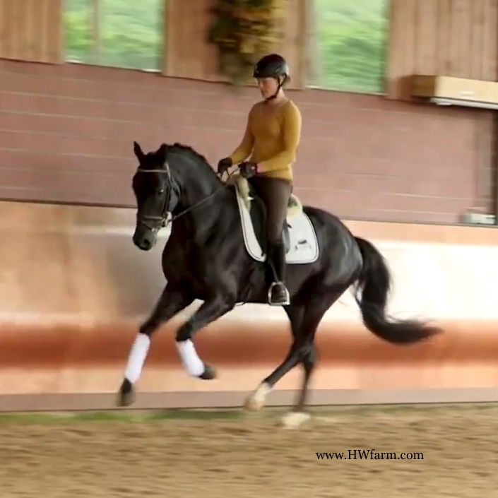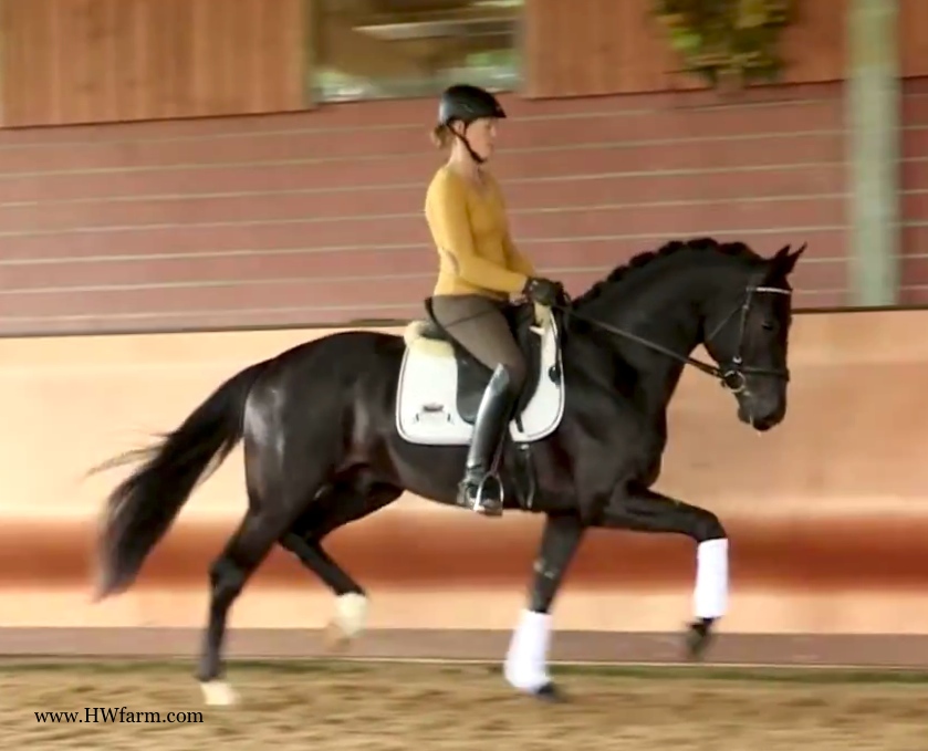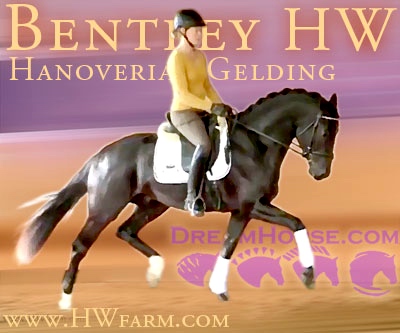 (produced by Bentley HW’s grand dam) Bentley HW is an extremely fancy gentleman. Beauty, elasticity, and suspension outline this stunning creature. Three rhythmic, big, expressive gaits - that will blow any and all competition out of the park. He is fabulous to ride. Super nice to sit and light in the bridle he is the horse we all wish we had! Bentley HW, equipped with phenomenal competition genes, is a horse of unbelievable quality and super fancy mover who knows to impress due to his type, movement and work ethic. This stunning horse has it all. He has a super nice, chiseled head, big stallion neck (he's a gelding!), if he blinks with his beautiful kind eye, you'll fall in love at first sight. He is a dream come true. This horse has cat like movement, he's as elastic as they get. His hooves barley touch the ground. He loves to please his handler and rider and is a fast learner. He eagerly works under saddle and loves his job. He is breathtaking to watch in the dressage arena and with his quick, far reaching hind leg, passage and piaffe will come naturally to him. He is supple and has a ton of air time. He just floats above the ground. With his free shoulder and huge grundschwung, he swings nicely through his back. This extremely talented gentleman has international potential. He is a very sweet boy with great ride ability and he makes a lasting impression on whom ever sees him. He is easy to handle and loves his personal grooming time and puts his head right in your lap, striving for attention and searching for treats. Perfect Junior or Amateur's horse and absolutely fancy enough and the right quality for a professional as well! You just can't beat his personality, gaits, looks and temperament. With this horse, you will be the star in FEI classes and at clinics, the judges and onlookers will remember him where ever he goes. His bloodlines are very much sought after and he's definitely one for the big ring. This boy will go far in the dressage ring, he is your ticket to the top! Buy him now and show him yourself in the Young Horse Championships or take him to the Bundes Championships. He is used to go in the hot walker, loves his shower and solarium time. Stands for the farrier, loads and appreciates grooming time. He's an über cool horse - all you looked for and more! X-rays on file! Please contact Irene: Irene@HWfarm.com 239-772-7722 (ask for Irene, managing member of Horse Sales LLC) We take pride in answering every e-mail right away (at least at the same day) and to return each call. If you don't get a reply - please try again, our spam filter might have gotten in the way?!