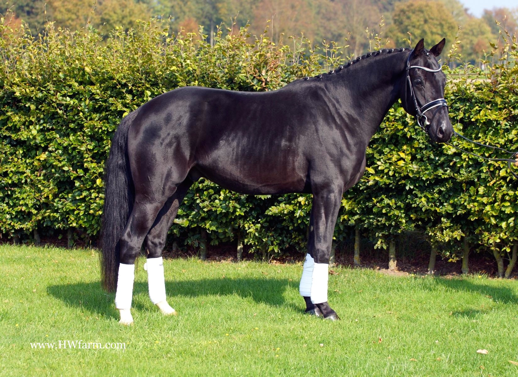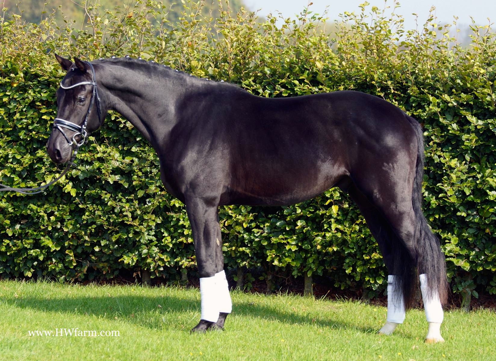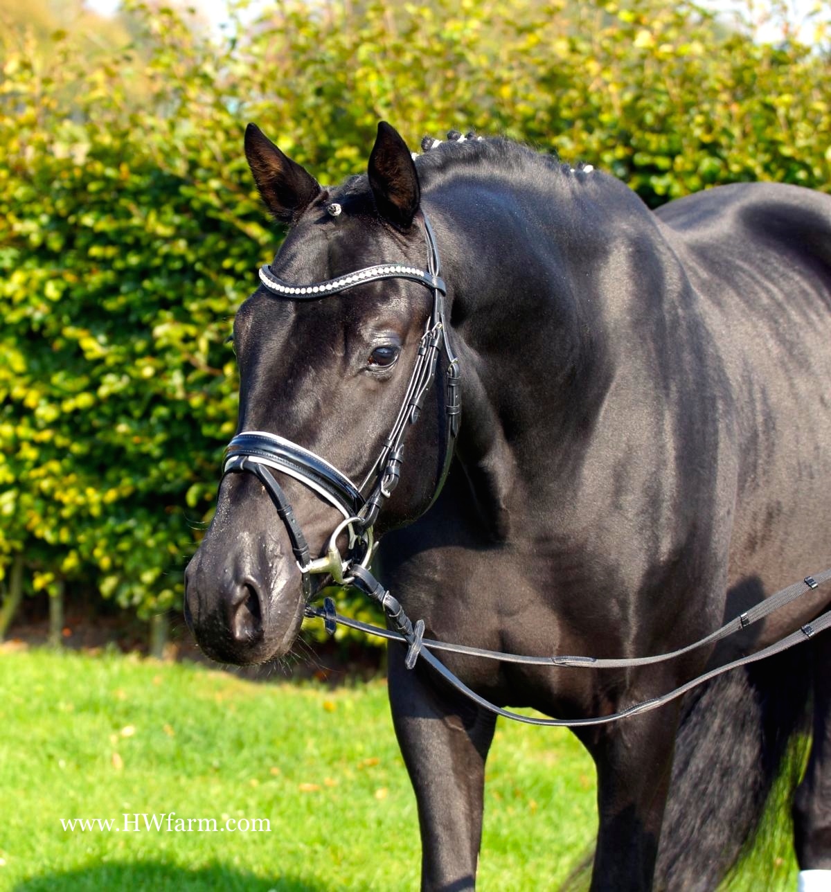 Bentley HW, black Rhineland gelding, by Boston/Quaterback, born in 2011, standing approximately 164 cm or 16.1 hands. Bentley HW, incredibly beautiful describes this wonderful horse. His sire is Boston, a stunning, elegant stallion, with exceptional movement and conformation combined with a very trainable attitude. He himself can look back at many victories and ribbons in the hands and training of Matthias Bouten and Isabell Werth. In addition, his foals collect gold and sell for top prices at auctions, including high price foals and more. Boston was champion stallion in England. After a fantastic 30 day test in Germany, he belongs now to the future hopes of dressage queen Isabelle Werth, she said: Boston is a stallion with outstanding attributes. He shows willingness to learn even the hardest tricks. His sire Jazz, is one of the most successful stallions of the current time and belongs to the Olympia team with Tinke Bartels. His son Parzival is Adelinde Cornelissen's team horse. Grand sire Cocktail, was internationally successful with Anky van Grunsven in the saddle. Bentley HW's dam SPS Quintera is by the Bundeschampion Quaterback. A stallion that seems like he could only come from another planet - with his light-footed, brilliant movement and perfect cadence, all eyes become riveted on Quaterback when he appears. He was the radiant Bundeschampion of the three year old riding horses in 2006 with the highest scores for his trot and canter. The test riders in Warendorf even gave him this dream score of 10.0. Prior to this test, he had won several tests for young riding horses. He was also the winner of his 30-day test with a final score of 9.14 in dressage, an 8.43 for jumping and an overall score of 8.88. As if it were not enough to have unbelievably dynamic movement, he was also blessed with an outstanding type. Quaterback comes from one of the most successful mare lines of modern day. His dam Passionata is a half-sister of the unforgettable World Champion and double Bundeschampion, Poetin. Her full brothers Samba Hit I to IV put on convincing presentations at the Bundeschampionate. Samba Hit I was also a finalist in the 2006 Nürnberg Burgpokal and the sire of Samba's Diamond who became the Champion Stallion of the licensing in Berlin-Brandenburg and Sachsen-Anhalt that same year. Quaterback's successful advanced (S) level sire Quaterman also participated in several Bundeschampionats and is deemed one of the best sires for passing on good movements in the new German States. The grandsire Quando-Quando took 15th place at the World Championships in Aachen in 2006 under Kristy Oatley-Nist. With a pedigree geared for performance from all sides and from the famous Neustädter P family, all doors are open for Quaterback. He passes his big and fleet-footed movement to his offspring, and therefore has produced a lot of foal champions and auction foals. One of them was sold for 120.000 euros at a Hanoverian auction. In 2012, Quaterback was the sire of a Vice-Bundeschampion. 43 sons of Quaterback are already licensed, including the 2009 and 2010 young stallion champions in Neustadt/Dosse. In addition, Quaterback has produced several premium stallions at almost all German licensings. SPS Quintera, Bentley HW's dam's dam is the famous SPS Reine Freude, she produced also the sensational, stallion of the century: Fidertanz. Fidertanz set early standards as NRW Champion Stallion, stallion performance test winner, Vice Bundeschampion, main premium winner and winner up to Inter I. A class of it's own! Fidertanz can only surpass himself - and so he did again impressively in 2013. As the only sire he presented even two Bundeschampions named Fürst Fohlenhof and QC Flamboyant. Just a few stallions have succeeded in doing this sensation in the past 40 years of history of these unofficial German Championships for young horses. Previously, Fidertanz presented three Olden-burg Champions (Fiderbach, Fantango and QC Flamboyant) as well as two mares in the Brillantring at the Elite Mare Show. The acclaimed NRW Champion Stallion set early standards: In 2005 he passed his 30-day test in Neustadt/D. and became Vice Bundeschampion in Warendorf (test rider score: 9.5). In 2006 he rose to be the Oldenburg Main Premium Winner with emphasis on dressage in recognition of his outstanding first foal crop. In 2007 Fidertanz round off his performance record with the qualifying for the Bundeschampionat. In the meantime, there are several placings up to Grand Prix level on his account.The beautiful Fidertanz inherits his great character and his extraordinary movements.Over 40 sons of Fidertanz are licensed, thereunder the Bundeschampion and Hanoverian Vice Champion Franziskus, the NRW Champion Stallion and Bundeschampionat competitor Flanagan as well as Feuerspiel, selling for 330,000 Euro as price highlight at the Verdener stallion market. Fürstentanz, Fiederhit OLD, Fiderstar and Fairytale placed in the finals of the Bundeschampionat. The last-mentioned Fairytale with his rider Isabel Bache have been selected to compete for the German team at the 2011' WC for five-year old dressage horses in Verden. One year later, this pair placed fourth at the Bundeschampionat.Also Fidertanz' daughters are a tribute to their father, especially the Oldenburg Champion Mare Fifty-Fifty, who was already Champion Mare at the German Foal Championship in Lienen and is now at Rothenberger's dressage stable for further training. Florencia became ZfdP Champion Mare, Fider's Tanzmarie and Fashion Girl were both 2. Reserve Champions in Münster-Handorf and Filipa K 2. Reserve Champion in Wickrath. The mare For your best was 1. Westphalian Reserve Champion and placed fifth at the Bundeschampionat. In 2013, Fantara reached with a group of the best ten the final ring at the German Elite Mare Championship.Fidertanz offspring reach top prices at auctions: The 2013' Hanoverian Champion Friemel went to customers from Brazil for a bit of 200,000 Euro. Firef