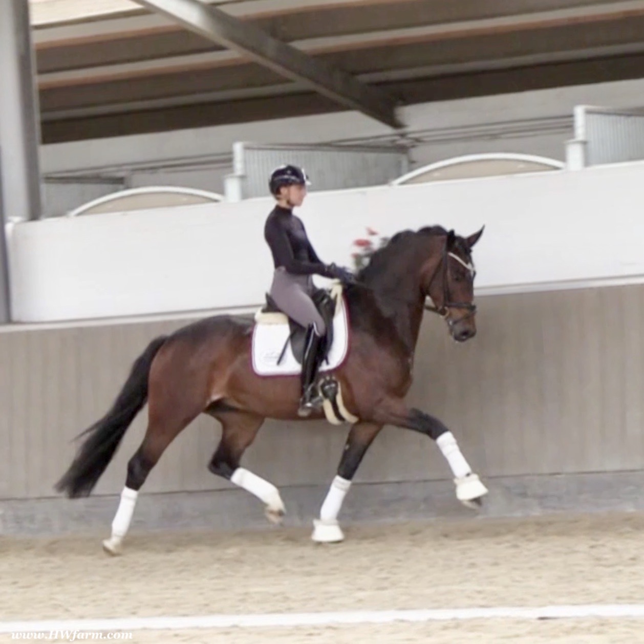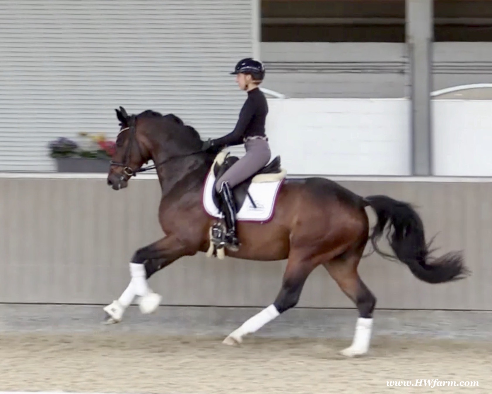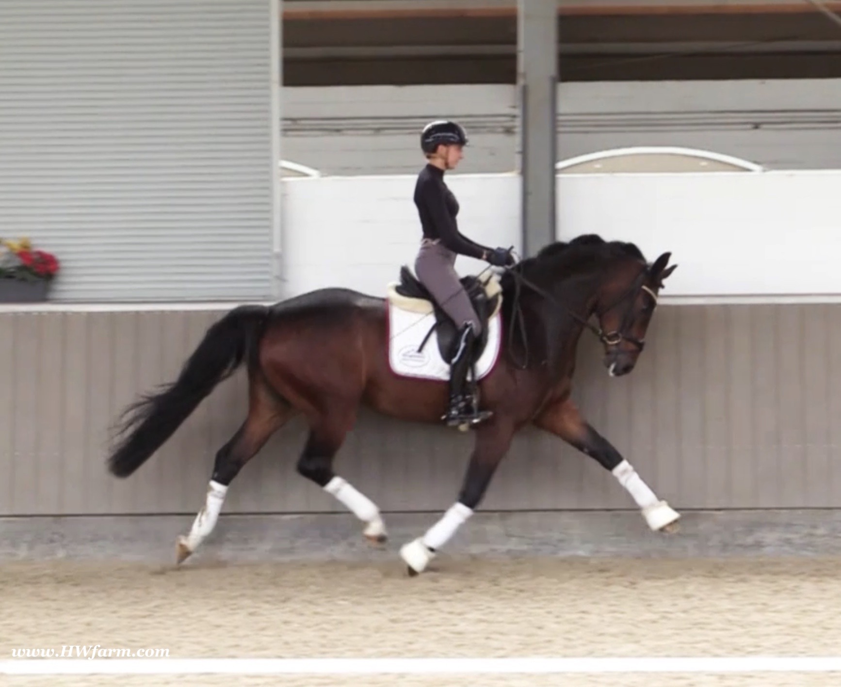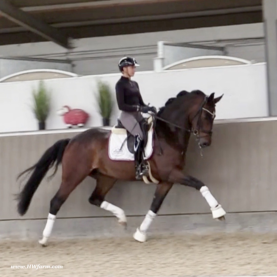 | Bestseller HW bay Oldenburg gelding, by Benefit/Fidertanz, born in 2019, standing approximately 167 cm or 16.2 hands. Bestseller HW's sire is the breathtaking and successful Benefit. Benefit is the epitome of the modern dressage stallion; elegant and light-footed, with a beautiful type and fantastic movement. He has a particularly good front, with a free, open shoulder and a good head-neck connection. Benefits sire is Belantis, a son of grand prix stallion, Bundeschampion, and performance test winner Benetton Dream. Benetton Dream scored a 10.0 for his walk at the Bundeschampionat, in addition to 9.5 for trot and canter. Belantis was reserve champion at the World Breeding Championships as a six-year-old, taking home the silver medal behind Sezuan. As a five-year-old, Belantis had already finished 4th at the World Championships on 9.2. Belantis is now competing at international small tour under Isabell Werth, scoring +73% at PSG. From his first three crops, Belantis has produced five licensed sons. Belantis is from a strong mare line; the 'P' line has produced stars such as Quaterback, Poetin, Quindale, and Don Royal. Directly from the damline are licensed stallions Quadroneur I & II (by Quaterback), Sommerhit, the full brother of Belantis' grand dam (by Sandro Hit), and Debut (by Direx). He is always uphill and elastic, with much cadence and an active hindleg. He won the National Championships in Prussendorf in 2012, and was the champion of his performance test, scoring 10.0 for rideability from the test rider. Damline - Benefit's dam, Sam, jumped up to 1.35m level, and her sire Sir Tender is a son of Sion, whose sire Sultan is the third sire of Johnson and also sired Geoff Billington's great jumper It's Otto. Sir Tender's damsire Contender is a versatile and hugely successful stallion, whose son Contendro I has sired Olympic-level horses in all three disciplines. Benefit's mare-line has also produced the Oldenburg-licensed and premium stallion Higher Heights (by Catoki), and some promising sport horses. Oldenburg Breeding News in 2017: Benefit, Champion of the 2017 Oldenburg Stallion Licensing! The grey Benefit (by Belantis x Sir Tender) was named champion of the 2017 Oldenburg Stallion Licensing in Vechta, Germany, on Saturday 18 November 2017. The licensing committee approved 21 colts out of a collection of 37 dressage bred stallions. Seven stallions received premium status. The 2017 Oldenburg Stallion Licensing was certainly an interesting one with a big collection of wonderful young sport horses. The majority of the colts were "very talented sport horses" or "good geldings" as a figure of speech. A true stunner offering the complete package was lacking this year, but there were many impressive colts that ticked the boxes either on a conformation level, or in one or two gaits. Benefit (by Belantis x Sir Tender x Welton x Figaro), bred and owned by Angelika Krause, was probably the most beautiful stallions presented in Vechta in years. The nobility in his face, his cresty neck and his outstanding shoulder freedom made him an undoubted, succulent 10 in front. His hind legs were still baby, not really showing the strength and push one hoped to see in a champion. Both on the lunge and in freedom, this colt moved with much expression in front but could convince slightly more behind. In canter he lacked a bit of suppleness and with every presentation this typy dark grey colt ground his teeth. He had a good walk. At auction this colt sold for 600,000 euro to Antonia Ax:son Johnson of Lovsta Stutteri in Sweden. This is the third time in recent years that the Oldenburg society decided on a grey stallion as the champion to infuse more variety in the black and brown dominated stallion world. In the past Fairbanks and De Martino were grey champion but neither of these resonated with the breeders. Fairbanks did not get the attention of the breeders a champion normally gets and is now standing in the U.S.A De Martino hardly bred at all and has now passed away. Oldenburg breeding director Dr. Wolfgang Schulze-Schleppinhoff praised the DNA unicity of this Belantis colt, as its pedigree is free from the traditional (over)used Oldenburg bloodlines alongside the stallion's basic gaits. "Even in the last round he showed a very good and relaxed walk," Schulze-Schleppinghoff remarked. 2018 news: Benefit, High Scorer of 2018 Schlieckau 14-Day Stallion Performance Test. The 2017 Oldenburg licensing champion Benefit became the high scoring stallion at the 14-day Stallion Performance Testing which was held in Schlieckau on 4 - 17 April 2018. A large group of 33 stallions participated in this testing for 3 and 4-year old, yet four dropped out. The Swedish owned Benefit was the high scoring stallion with a total of 8.40 points. He got 9.5 for character, 8.5 for trot and canter, 9 for walk, 8.5 for rideability, 7.5 for free jumping and 8.75 from the guest judge rider. His total for dressage was 8.66 and for show jumping 7.83 points. Benefit (by Belantis x Sir Tender x Welton x Figaro) is bred by Angelika Krause and the grey stallion sold for 600,000 euro to Ax:son Johnson at the auction following the Oldenburg licensing. Bestseller HW's dam sire is the stallion of the year 2021: Fidertanz. A class of it's own! Fidertanz can only surpass himself - and so he does impressively again and again. The 2013' Bundeschampion of young dressage horses, named QC Flamboyant OLD, placed again just ahead of Fideralala in the final in 2014 and, in the meantime, he made his debut at advanced (S) class under Isabell Werth. The licensed stallion Fürst Fohlenhof took the gold and silver medal at the Bundeschampionat 2013 and 2014 in the class for young riding horses. Fandango OLD and the multiple Oldenburg Champion Fiderbach OLD succeeded in the Warendorf finals four young dressage horses. Flanell was placed with the best in the final of the Hanoverian Championship for three-year old stallions. At the Oldenburg Championship, Fide