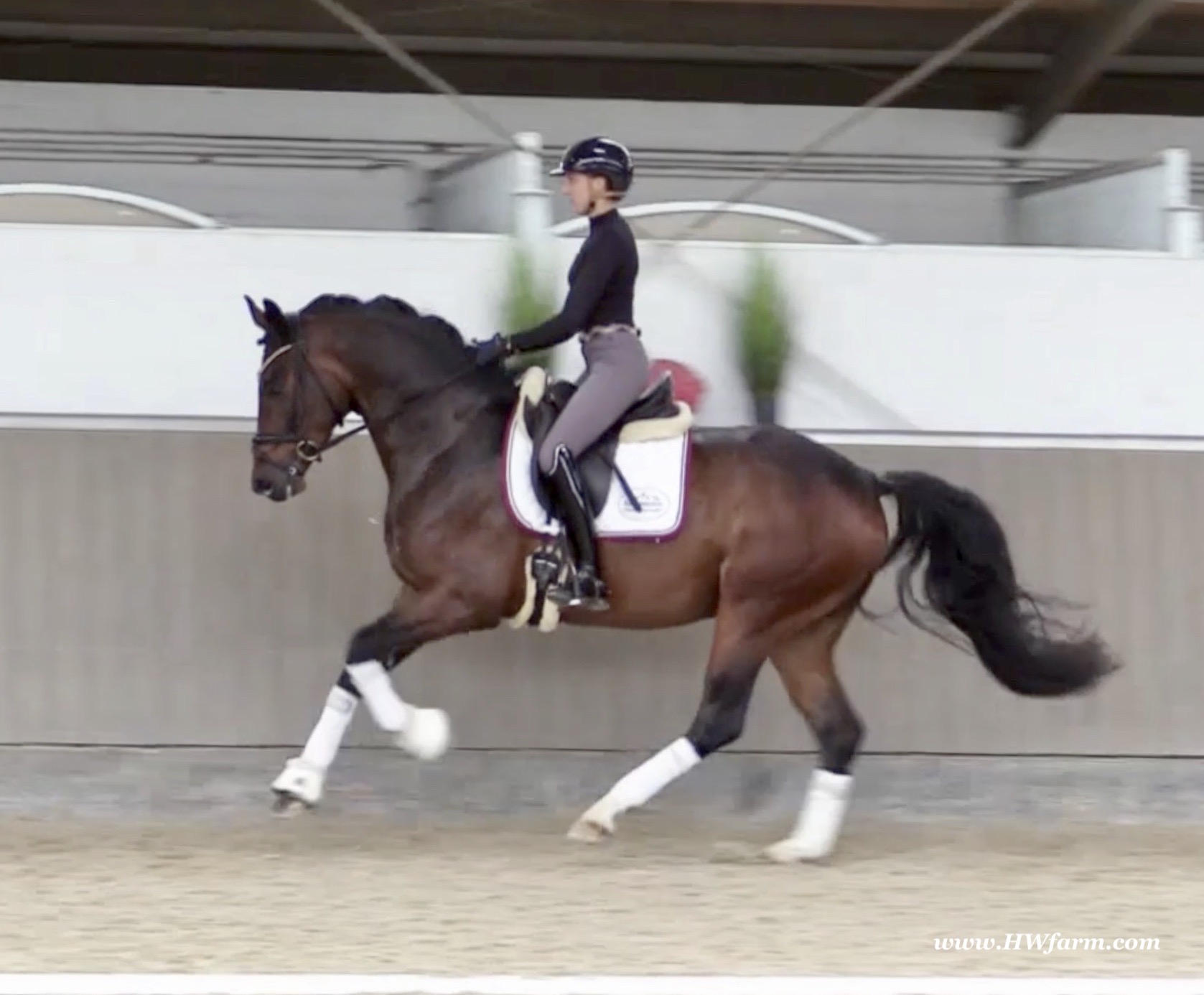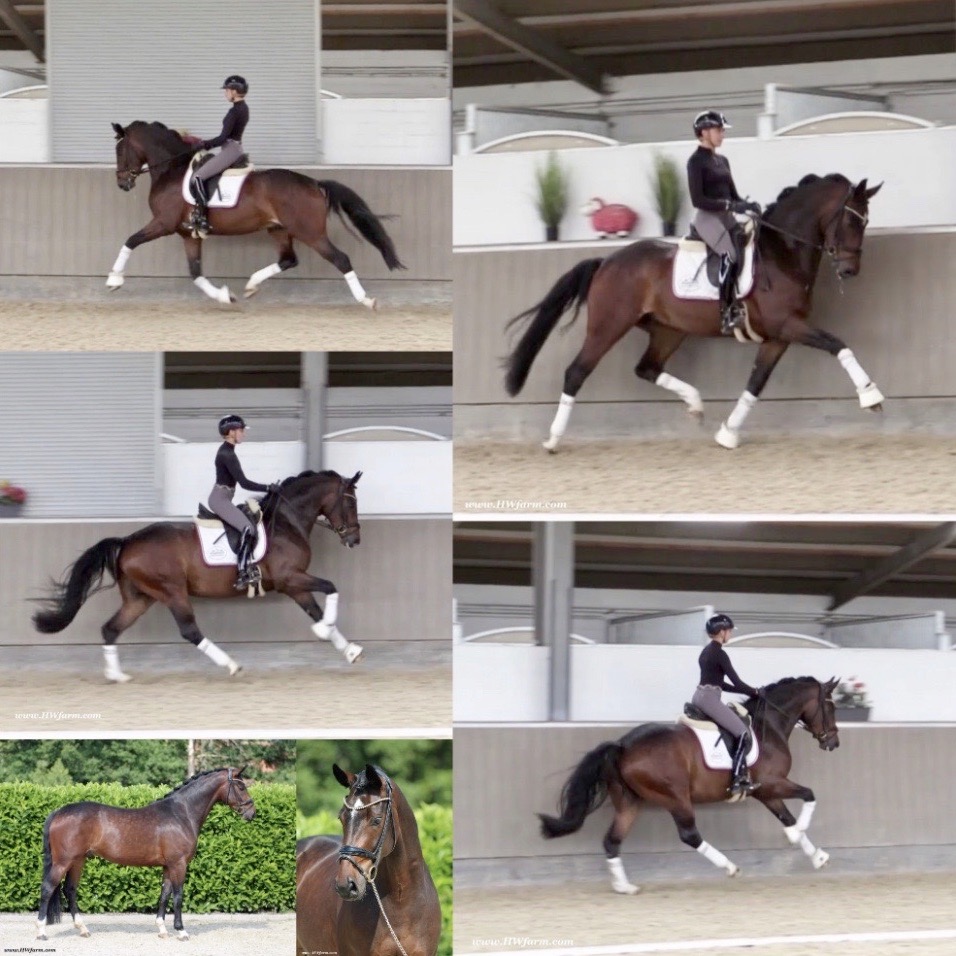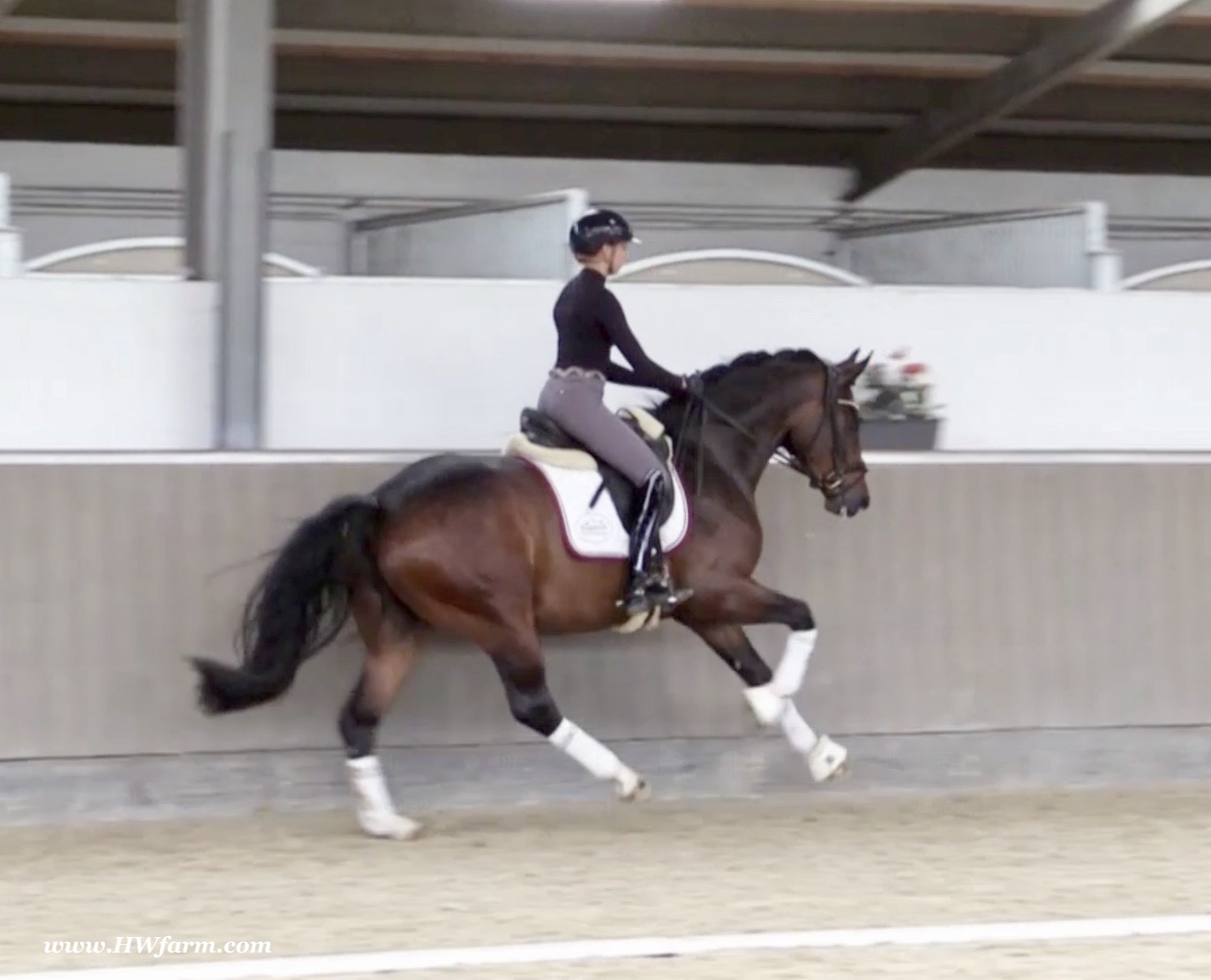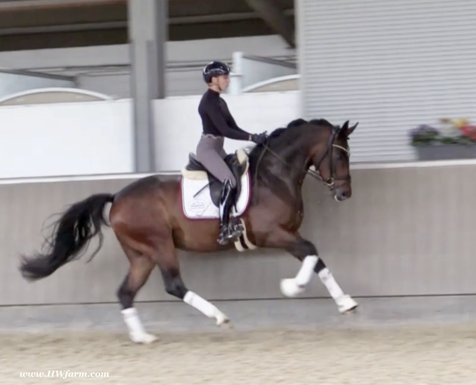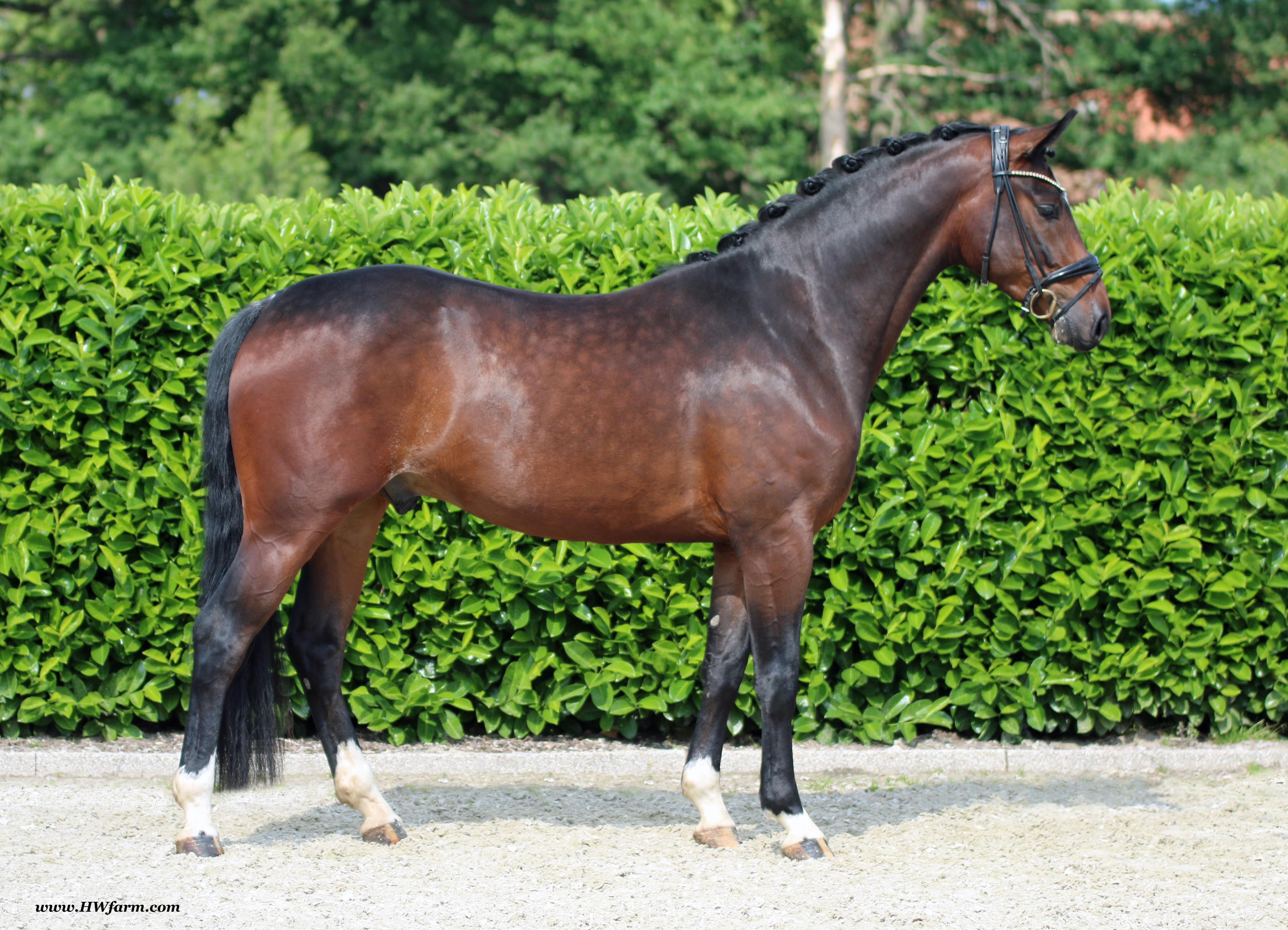 | Bestseller HW bay Oldenburg gelding, by Benefit/Fidertanz, born in 2019, standing approximately 167 cm or 16.2 hands. Bestseller HW's sire is the breathtaking and successful Benefit. Benefit is the epitome of the modern dressage stallion; elegant and light-footed, with a beautiful type and fantastic movement. He has a particularly good front, with a free, open shoulder and a good head-neck connection. Benefits sire is Belantis, a son of grand prix stallion, Bundeschampion, and performance test winner Benetton Dream. Benetton Dream scored a 10.0 for his walk at the Bundeschampionat, in addition to 9.5 for trot and canter. Belantis was reserve champion at the World Breeding Championships as a six-year-old, taking home the silver medal behind Sezuan. As a five-year-old, Belantis had already finished 4th at the World Championships on 9.2. Belantis is now competing at international small tour under Isabell Werth, scoring +73% at PSG. From his first three crops, Belantis has produced five licensed sons. Belantis is from a strong mare line; the 'P' line has produced stars such as Quaterback, Poetin, Quindale, and Don Royal. Directly from the damline are licensed stallions Quadroneur I & II (by Quaterback), Sommerhit, the full brother of Belantis' grand dam (by Sandro Hit), and Debut (by Direx). He is always uphill and elastic, with much cadence and an active hindleg. He won the National Championships in Prussendorf in 2012, and was the champion of his performance test, scoring 10.0 for rideability from the test rider. Damline - Benefit's dam, Sam, jumped up to 1.35m level, and her sire Sir Tender is a son of Sion, whose sire Sultan is the third sire of Johnson and also sired Geoff Billington's great jumper It's Otto. Sir Tender's damsire Contender is a versatile and hugely successful stallion, whose son Contendro I has sired Olympic-level horses in all three disciplines. Benefit's mare-line has also produced the Oldenburg-licensed and premium stallion Higher Heights (by Catoki), and some promising sport horses. Oldenburg Breeding News in 2017: Benefit, Champion of the 2017 Oldenburg Stallion Licensing! The grey Benefit (by Belantis x Sir Tender) was named champion of the 2017 Oldenburg Stallion Licensing in Vechta, Germany, on Saturday 18 November 2017. The licensing committee approved 21 colts out of a collection of 37 dressage bred stallions. Seven stallions received premium status. The 2017 Oldenburg Stallion Licensing was certainly an interesting one with a big collection of wonderful young sport horses. The majority of the colts were "very talented sport horses" or "good geldings" as a figure of speech. A true stunner offering the complete package was lacking this year, but there were many impressive colts that ticked the boxes either on a conformation level, or in one or two gaits. Benefit (by Belantis x Sir Tender x Welton x Figaro), bred and owned by Angelika Krause, was probably the most beautiful stallions presented in Vechta in years. The nobility in his face, his cresty neck and his outstanding shoulder freedom made him an undoubted, succulent 10 in front. His hind legs were still baby, not really showing the strength and push one hoped to see in a champion. Both on the lunge and in freedom, this colt moved with much expression in front but could convince slightly more behind. In canter he lacked a bit of suppleness and with every presentation this typy dark grey colt ground his teeth. He had a good walk. At auction this colt sold for 600,000 euro to Antonia Ax:son Johnson of Lovsta Stutteri in Sweden. This is the third time in recent years that the Oldenburg society decided on a grey stallion as the champion to infuse more variety in the black and brown dominated stallion world. In the past Fairbanks and De Martino were grey champion but neither of these resonated with the breeders. Fairbanks did not get the attention of the breeders a champion normally gets and is now standing in the U.S.A De Martino hardly bred at all and has now passed away. Oldenburg breeding director Dr. Wolfgang Schulze-Schleppinhoff praised the DNA unicity of this Belantis colt, as its pedigree is free from the traditional (over)used Oldenburg bloodlines alongside the stallion's basic gaits. "Even in the last round he showed a very good and relaxed walk," Schulze-Schleppinghoff remarked. 2018 news: Benefit, High Scorer of 2018 Schlieckau 14-Day Stallion Performance Test. The 2017 Oldenburg licensing champion Benefit became the high scoring stallion at the 14-day Stallion Performance Testing which was held in Schlieckau on 4 - 17 April 2018. A large group of 33 stallions participated in this testing for 3 and 4-year old, yet four dropped out. The Swedish owned Benefit was the high scoring stallion with a total of 8.40 points. He got 9.5 for character, 8.5 for trot and canter, 9 for walk, 8.5 for rideability, 7.5 for free jumping and 8.75 from the guest judge rider. His total for dressage was 8.66 and for show jumping 7.83 points. Benefit (by Belantis x Sir Tender x Welton x Figaro) is bred by Angelika Krause and the grey stallion sold for 600,000 euro to Ax:son Johnson at the auction following the Oldenburg licensing. Bestseller HW's dam sire is the stallion of the year 2021: Fidertanz. A class of it's own! Fidertanz can only surpass himself - and so he does impressively again and again. The 2013' Bundeschampion of young dressage horses, named QC Flamboyant OLD, placed again just ahead of Fideralala in the final in 2014 and, in the meantime, he made his debut at advanced (S) class under Isabell Werth. The licensed stallion Fürst Fohlenhof took the gold and silver medal at the Bundeschampionat 2013 and 2014 in the class for young riding horses. Fandango OLD and the multiple Oldenburg Champion Fiderbach OLD succeeded in the Warendorf finals four young dressage horses. Flanell was placed with the best in the final of the Hanoverian Championship for three-year old stallions. At the Oldenburg Championship, Fide