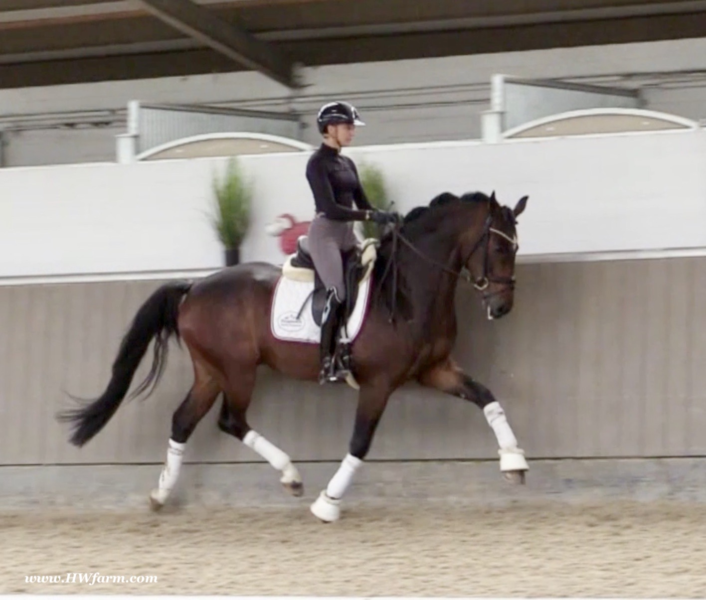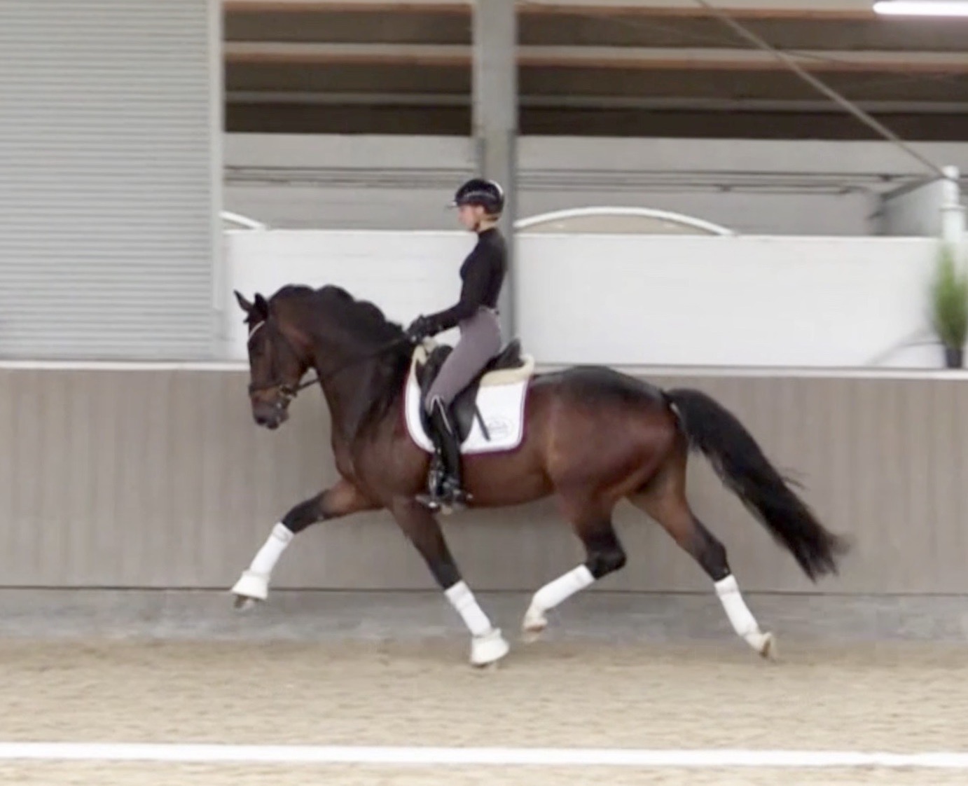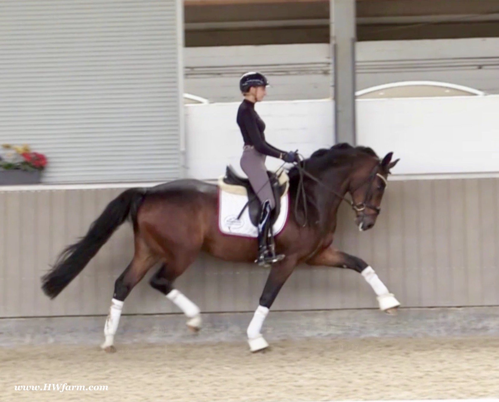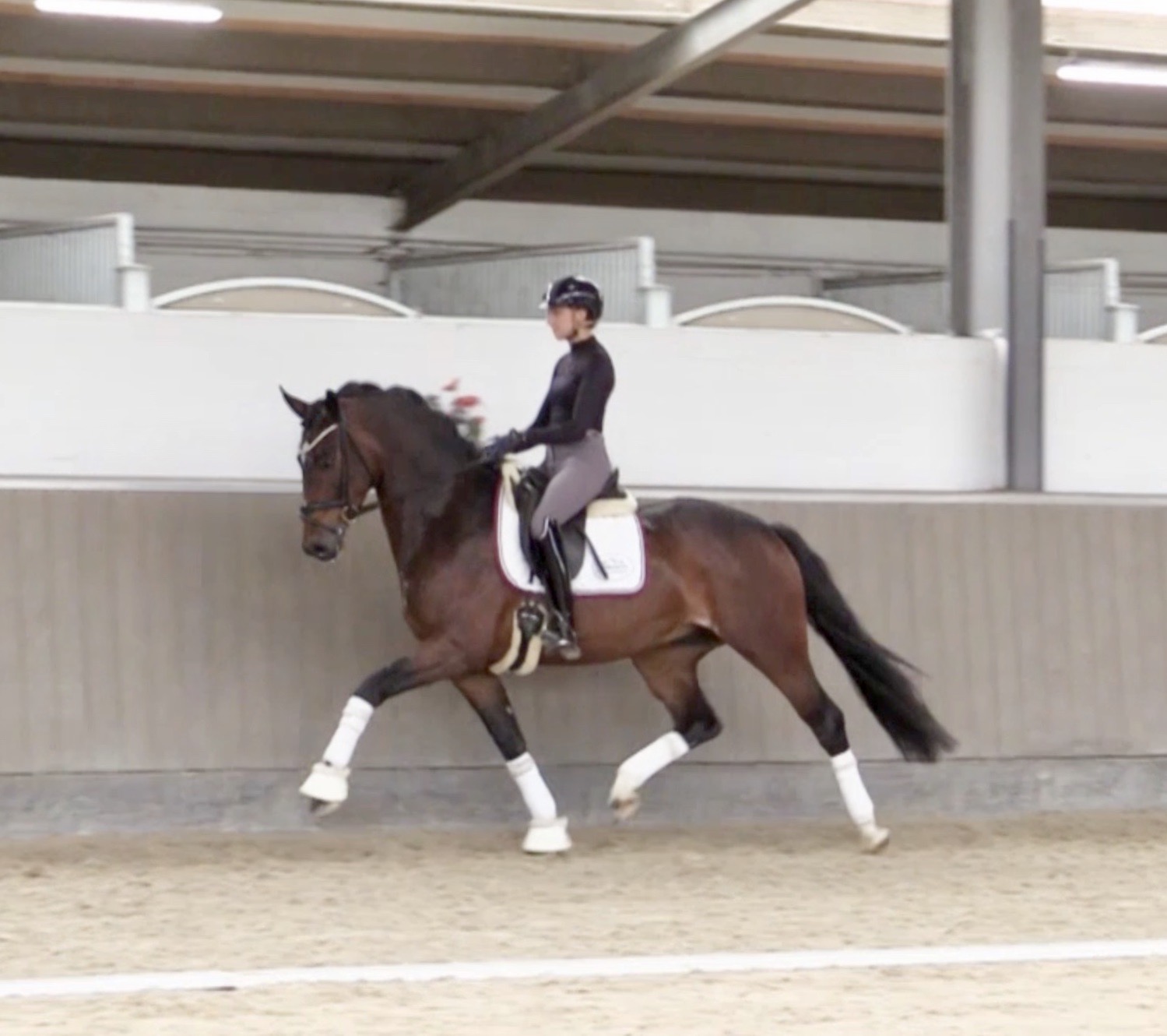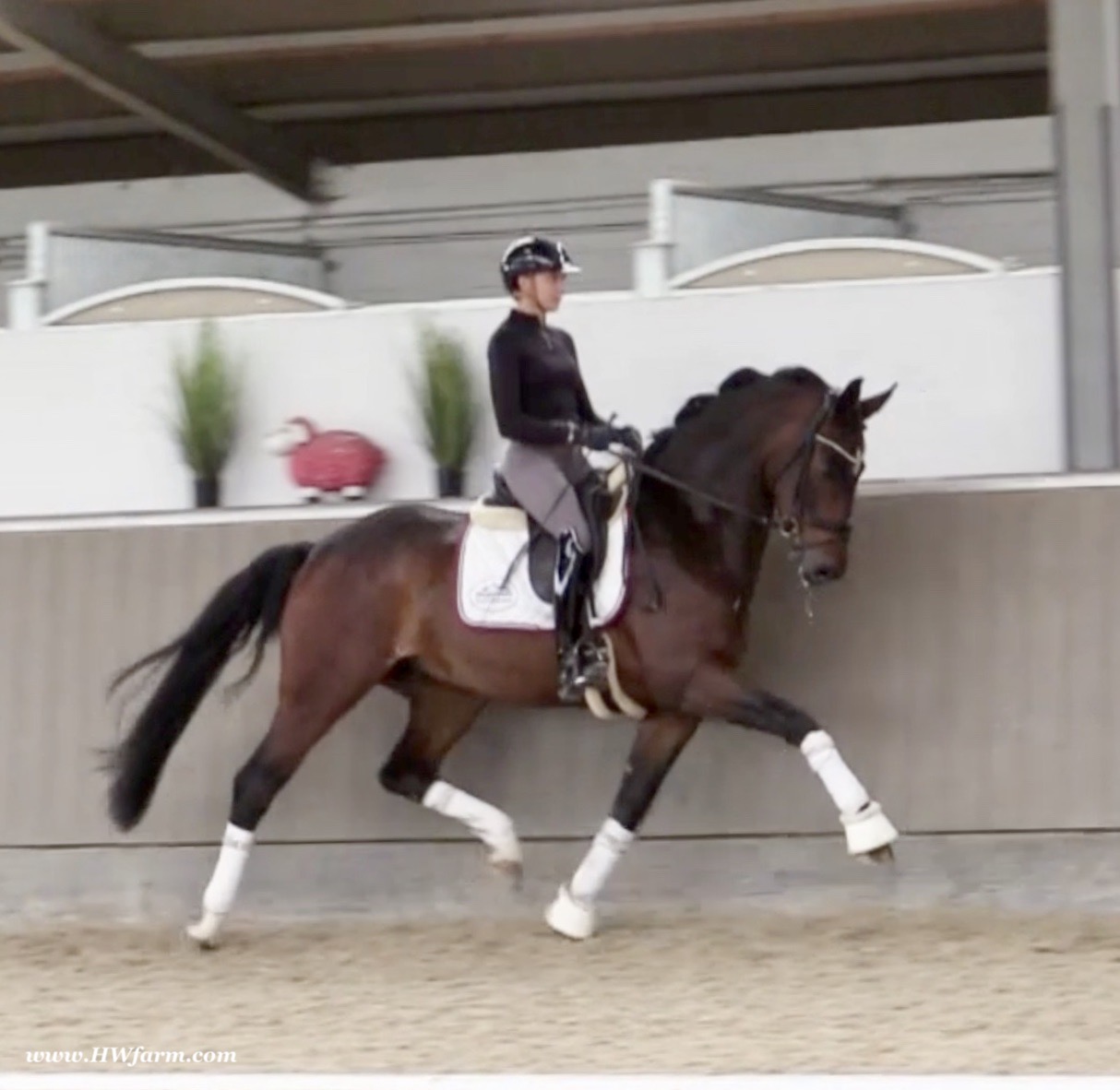 | Bestseller HW bay Oldenburg gelding, by Benefit/Fidertanz, born in 2019, standing approximately 167 cm or 16.2 hands. Bestseller HW's sire is the breathtaking and successful Benefit. Benefit is the epitome of the modern dressage stallion; elegant and light-footed, with a beautiful type and fantastic movement. He has a particularly good front, with a free, open shoulder and a good head-neck connection. Benefits sire is Belantis, a son of grand prix stallion, Bundeschampion, and performance test winner Benetton Dream. Benetton Dream scored a 10.0 for his walk at the Bundeschampionat, in addition to 9.5 for trot and canter. Belantis was reserve champion at the World Breeding Championships as a six-year-old, taking home the silver medal behind Sezuan. As a five-year-old, Belantis had already finished 4th at the World Championships on 9.2. Belantis is now competing at international small tour under Isabell Werth, scoring +73% at PSG. From his first three crops, Belantis has produced five licensed sons. Belantis is from a strong mare line; the 'P' line has produced stars such as Quaterback, Poetin, Quindale, and Don Royal. Directly from the damline are licensed stallions Quadroneur I & II (by Quaterback), Sommerhit, the full brother of Belantis' grand dam (by Sandro Hit), and Debut (by Direx). He is always uphill and elastic, with much cadence and an active hindleg. He won the National Championships in Prussendorf in 2012, and was the champion of his performance test, scoring 10.0 for rideability from the test rider. Damline - Benefit's dam, Sam, jumped up to 1.35m level, and her sire Sir Tender is a son of Sion, whose sire Sultan is the third sire of Johnson and also sired Geoff Billington's great jumper It's Otto. Sir Tender's damsire Contender is a versatile and hugely successful stallion, whose son Contendro I has sired Olympic-level horses in all three disciplines. Benefit's mare-line has also produced the Oldenburg-licensed and premium stallion Higher Heights (by Catoki), and some promising sport horses. Oldenburg Breeding News in 2017: Benefit, Champion of the 2017 Oldenburg Stallion Licensing! The grey Benefit (by Belantis x Sir Tender) was named champion of the 2017 Oldenburg Stallion Licensing in Vechta, Germany, on Saturday 18 November 2017. The licensing committee approved 21 colts out of a collection of 37 dressage bred stallions. Seven stallions received premium status. The 2017 Oldenburg Stallion Licensing was certainly an interesting one with a big collection of wonderful young sport horses. The majority of the colts were "very talented sport horses" or "good geldings" as a figure of speech. A true stunner offering the complete package was lacking this year, but there were many impressive colts that ticked the boxes either on a conformation level, or in one or two gaits. Benefit (by Belantis x Sir Tender x Welton x Figaro), bred and owned by Angelika Krause, was probably the most beautiful stallions presented in Vechta in years. The nobility in his face, his cresty neck and his outstanding shoulder freedom made him an undoubted, succulent 10 in front. His hind legs were still baby, not really showing the strength and push one hoped to see in a champion. Both on the lunge and in freedom, this colt moved with much expression in front but could convince slightly more behind. In canter he lacked a bit of suppleness and with every presentation this typy dark grey colt ground his teeth. He had a good walk. At auction this colt sold for 600,000 euro to Antonia Ax:son Johnson of Lovsta Stutteri in Sweden. This is the third time in recent years that the Oldenburg society decided on a grey stallion as the champion to infuse more variety in the black and brown dominated stallion world. In the past Fairbanks and De Martino were grey champion but neither of these resonated with the breeders. Fairbanks did not get the attention of the breeders a champion normally gets and is now standing in the U.S.A De Martino hardly bred at all and has now passed away. Oldenburg breeding director Dr. Wolfgang Schulze-Schleppinhoff praised the DNA unicity of this Belantis colt, as its pedigree is free from the traditional (over)used Oldenburg bloodlines alongside the stallion's basic gaits. "Even in the last round he showed a very good and relaxed walk," Schulze-Schleppinghoff remarked. 2018 news: Benefit, High Scorer of 2018 Schlieckau 14-Day Stallion Performance Test. The 2017 Oldenburg licensing champion Benefit became the high scoring stallion at the 14-day Stallion Performance Testing which was held in Schlieckau on 4 - 17 April 2018. A large group of 33 stallions participated in this testing for 3 and 4-year old, yet four dropped out. The Swedish owned Benefit was the high scoring stallion with a total of 8.40 points. He got 9.5 for character, 8.5 for trot and canter, 9 for walk, 8.5 for rideability, 7.5 for free jumping and 8.75 from the guest judge rider. His total for dressage was 8.66 and for show jumping 7.83 points. Benefit (by Belantis x Sir Tender x Welton x Figaro) is bred by Angelika Krause and the grey stallion sold for 600,000 euro to Ax:son Johnson at the auction following the Oldenburg licensing. Bestseller HW's dam sire is the stallion of the year 2021: Fidertanz. A class of it's own! Fidertanz can only surpass himself - and so he does impressively again and again. The 2013' Bundeschampion of young dressage horses, named QC Flamboyant OLD, placed again just ahead of Fideralala in the final in 2014 and, in the meantime, he made his debut at advanced (S) class under Isabell Werth. The licensed stallion Fürst Fohlenhof took the gold and silver medal at the Bundeschampionat 2013 and 2014 in the class for young riding horses. Fandango OLD and the multiple Oldenburg Champion Fiderbach OLD succeeded in the Warendorf finals four young dressage horses. Flanell was placed with the best in the final of the Hanoverian Championship for three-year old stallions. At the Oldenburg Championship, Fide