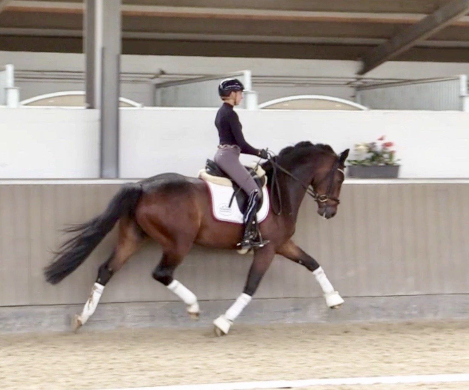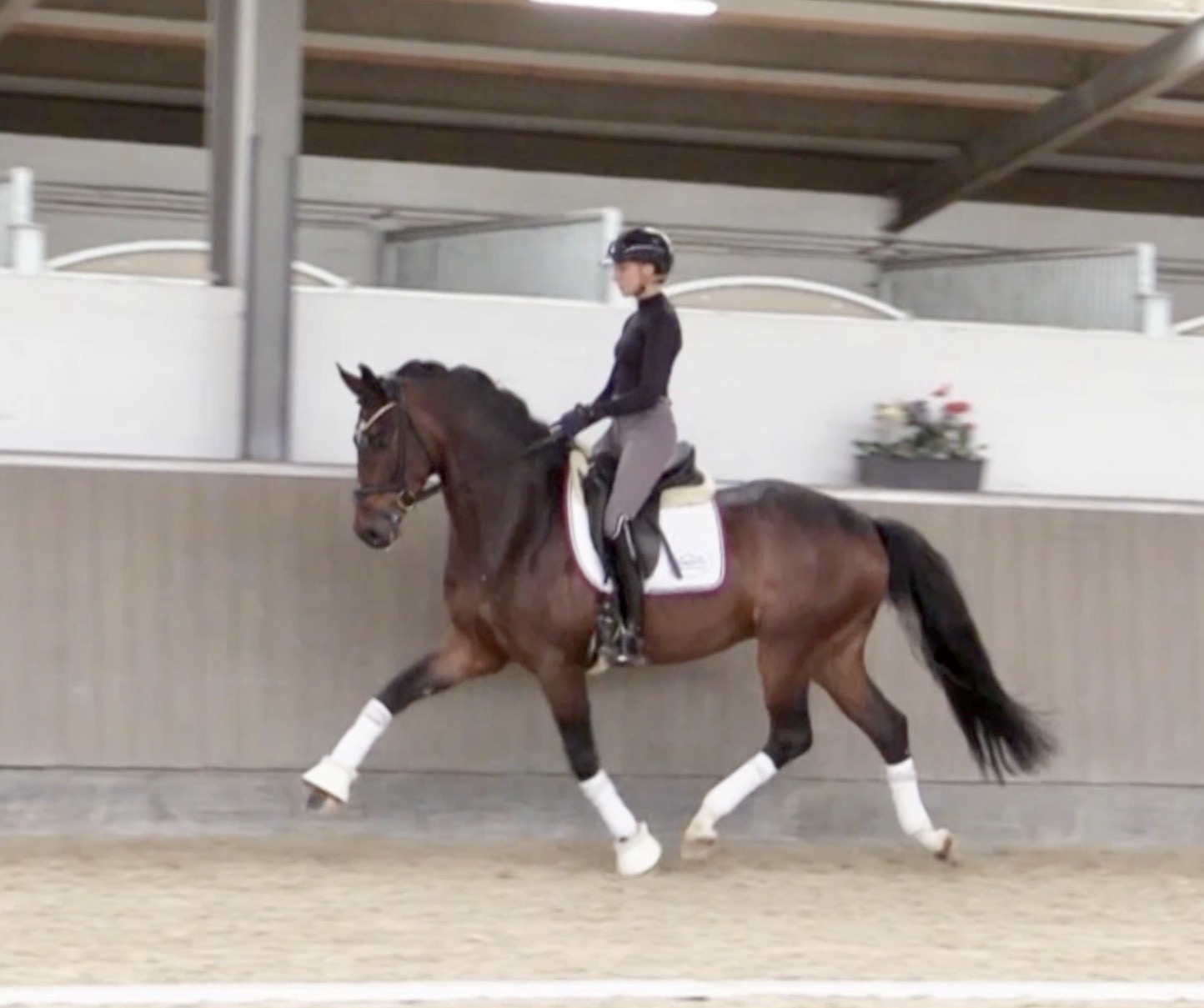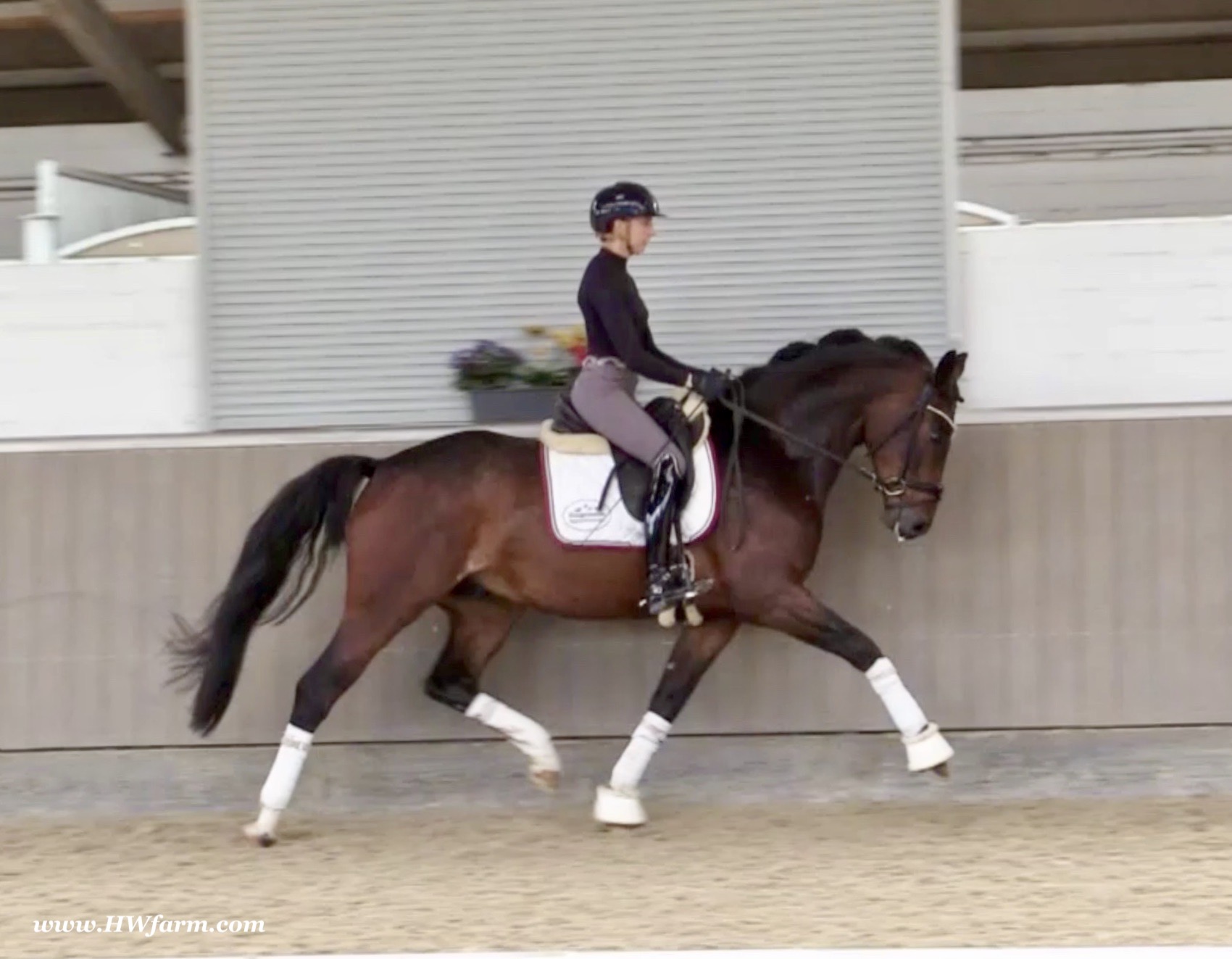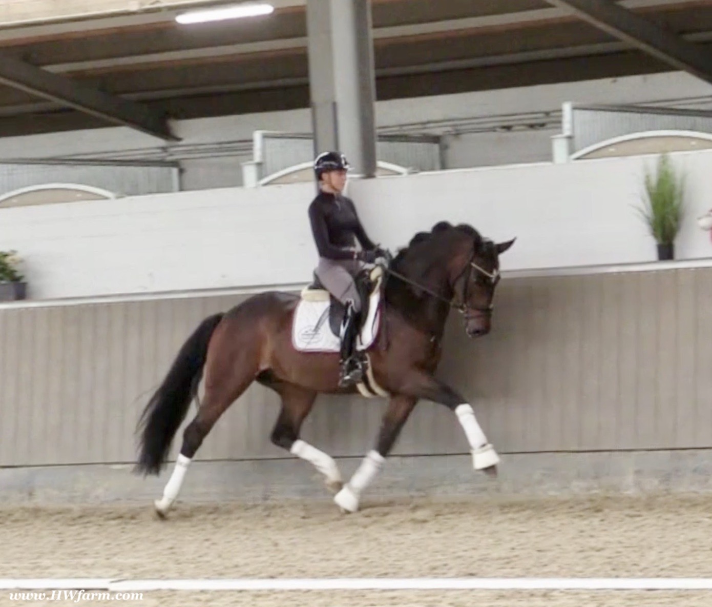 | Bestseller HW bay Oldenburg gelding, by Benefit/Fidertanz, born in 2019, standing approximately 167 cm or 16.2 hands. Bestseller HW's sire is the breathtaking and successful Benefit. Benefit is the epitome of the modern dressage stallion; elegant and light-footed, with a beautiful type and fantastic movement. He has a particularly good front, with a free, open shoulder and a good head-neck connection. Benefits sire is Belantis, a son of grand prix stallion, Bundeschampion, and performance test winner Benetton Dream. Benetton Dream scored a 10.0 for his walk at the Bundeschampionat, in addition to 9.5 for trot and canter. Belantis was reserve champion at the World Breeding Championships as a six-year-old, taking home the silver medal behind Sezuan. As a five-year-old, Belantis had already finished 4th at the World Championships on 9.2. Belantis is now competing at international small tour under Isabell Werth, scoring +73% at PSG. From his first three crops, Belantis has produced five licensed sons. Belantis is from a strong mare line; the 'P' line has produced stars such as Quaterback, Poetin, Quindale, and Don Royal. Directly from the damline are licensed stallions Quadroneur I & II (by Quaterback), Sommerhit, the full brother of Belantis' grand dam (by Sandro Hit), and Debut (by Direx). He is always uphill and elastic, with much cadence and an active hindleg. He won the National Championships in Prussendorf in 2012, and was the champion of his performance test, scoring 10.0 for rideability from the test rider. Damline - Benefit's dam, Sam, jumped up to 1.35m level, and her sire Sir Tender is a son of Sion, whose sire Sultan is the third sire of Johnson and also sired Geoff Billington's great jumper It's Otto. Sir Tender's damsire Contender is a versatile and hugely successful stallion, whose son Contendro I has sired Olympic-level horses in all three disciplines. Benefit's mare-line has also produced the Oldenburg-licensed and premium stallion Higher Heights (by Catoki), and some promising sport horses. Oldenburg Breeding News in 2017: Benefit, Champion of the 2017 Oldenburg Stallion Licensing! The grey Benefit (by Belantis x Sir Tender) was named champion of the 2017 Oldenburg Stallion Licensing in Vechta, Germany, on Saturday 18 November 2017. The licensing committee approved 21 colts out of a collection of 37 dressage bred stallions. Seven stallions received premium status. The 2017 Oldenburg Stallion Licensing was certainly an interesting one with a big collection of wonderful young sport horses. The majority of the colts were "very talented sport horses" or "good geldings" as a figure of speech. A true stunner offering the complete package was lacking this year, but there were many impressive colts that ticked the boxes either on a conformation level, or in one or two gaits. Benefit (by Belantis x Sir Tender x Welton x Figaro), bred and owned by Angelika Krause, was probably the most beautiful stallions presented in Vechta in years. The nobility in his face, his cresty neck and his outstanding shoulder freedom made him an undoubted, succulent 10 in front. His hind legs were still baby, not really showing the strength and push one hoped to see in a champion. Both on the lunge and in freedom, this colt moved with much expression in front but could convince slightly more behind. In canter he lacked a bit of suppleness and with every presentation this typy dark grey colt ground his teeth. He had a good walk. At auction this colt sold for 600,000 euro to Antonia Ax:son Johnson of Lovsta Stutteri in Sweden. This is the third time in recent years that the Oldenburg society decided on a grey stallion as the champion to infuse more variety in the black and brown dominated stallion world. In the past Fairbanks and De Martino were grey champion but neither of these resonated with the breeders. Fairbanks did not get the attention of the breeders a champion normally gets and is now standing in the U.S.A De Martino hardly bred at all and has now passed away. Oldenburg breeding director Dr. Wolfgang Schulze-Schleppinhoff praised the DNA unicity of this Belantis colt, as its pedigree is free from the traditional (over)used Oldenburg bloodlines alongside the stallion's basic gaits. "Even in the last round he showed a very good and relaxed walk," Schulze-Schleppinghoff remarked. 2018 news: Benefit, High Scorer of 2018 Schlieckau 14-Day Stallion Performance Test. The 2017 Oldenburg licensing champion Benefit became the high scoring stallion at the 14-day Stallion Performance Testing which was held in Schlieckau on 4 - 17 April 2018. A large group of 33 stallions participated in this testing for 3 and 4-year old, yet four dropped out. The Swedish owned Benefit was the high scoring stallion with a total of 8.40 points. He got 9.5 for character, 8.5 for trot and canter, 9 for walk, 8.5 for rideability, 7.5 for free jumping and 8.75 from the guest judge rider. His total for dressage was 8.66 and for show jumping 7.83 points. Benefit (by Belantis x Sir Tender x Welton x Figaro) is bred by Angelika Krause and the grey stallion sold for 600,000 euro to Ax:son Johnson at the auction following the Oldenburg licensing. Bestseller HW's dam sire is the stallion of the year 2021: Fidertanz. A class of it's own! Fidertanz can only surpass himself - and so he does impressively again and again. The 2013' Bundeschampion of young dressage horses, named QC Flamboyant OLD, placed again just ahead of Fideralala in the final in 2014 and, in the meantime, he made his debut at advanced (S) class under Isabell Werth. The licensed stallion Fürst Fohlenhof took the gold and silver medal at the Bundeschampionat 2013 and 2014 in the class for young riding horses. Fandango OLD and the multiple Oldenburg Champion Fiderbach OLD succeeded in the Warendorf finals four young dressage horses. Flanell was placed with the best in the final of the Hanoverian Championship for three-year old stallions. At the Oldenburg Championship, Fide