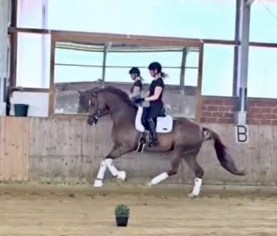 Bond HW, chestnut Hanoverian gelding by Bonds/Fürstenball, born in 2020, standing approximately 171 cm or 16.3 hands. Bond HW has an amazing gene pool, his sire is Bonds, a highly celebrated champion of the licensing in Vechta. Majestic occurrence, ultramodern type brilliance, outstanding movements, perfectly formed self-hold - Bonds surpassed the high-quality Oldenburger crop up in Vechta by a mile and was hailed as a champion stallion frenetically. The sire Benicio became 2011, Anna Sophie Fiebelkorn terrific scores for dressage horses Bundeschampion: 10.0 for the trot and the step 9.5 for overall impression and 9.0 for the canter. The 30-day test in Schlieckau he finished with ten times the maximum score 10.0. The dressage score yielded 9.88 and was thus even higher than the record rating of his sire Belissimo M NRW. Meanwhile, he could celebrate successes to Inter Series II. 2015, three of his sons licensed, including a further premium stallion. The grandsire Sir Donnerhall I has long been considered trademark stallion of modern dressage horse breeding. The granddam St.Pr.St. Rhea Silva 2003 was Brilliant Ring Mare. Her son "Forever You" is in M ** - successful dressage. Great-grandfather is the legendary Rubinstein. Bond HW's dam sire is the stunning Fürstenball, who produces world-class horses, from foal shows to the Olympic arena. Fürstenball's offspring are always among the best. Hardly any stallion can offer such continuity in hereditary performance. He has produced 90 licensed stallions, around 170 premium mares and over 80 horses successful at advanced (S) level, led by Heiline's Danciera/Carina Cassøe Krüth/DEN, placed fourth by team and seventh individually at the Olympics, as well as five German Champions, amongst them Feine Bella, who was also unbeatable in the Westphalian Championships and at her mare show, and numerous fantastic auction horses, such as Fürst Bayram OLD/Frederic Wandres, 1.7 million Euro price sensation of the P.S.I. Auction 2021, reigning Oldenburg Regional Champion and eleventh at the German Championships for young dressage horses. Torveslettens Fifty-Fifty/Ekaterina Podlytkina/RUS, Friesen Ball/Andrea Timpe/GER, Filigrano Marone/Thomas Wagner/GER, placed eleventh in the Louisdor Prize final, Four Seasons FRH/Alexa Westendarp/GER, double European Young Riders Championship gold medallist, and First Class/Maike Mende/GER, winner of the Oldenburg Derby Dressage Cup, have already established themselves at Grand Prix level. Frau Holle was silver medallist at the German Young Riders Championship with Jana Schrödter and competed in the Burg Cup final. ZINQ Farlana FH won the bronze medal at the German Junior Championships with Lucie-Anouk Baumgürtel and won the International Tour in Le Mans/FRA. Fürst Sinclair/Elke Philipp/GER was placed fourth at the para-equestrian dressage World Championships in Tryon/USA and at the European Championships in Rotterdam/NED. Fürstenball has produced 90 licensed stallions, including Fürsten-Look/Isabel Freese/NOR: our Champion Stallion and German Champion, who came third in the Burg Cup, Fürst Zonik PS: our Champion Stallion, Fürst Fabrice: Champion Stallion placed third at the Regional Championships, Follow Me OLD: Oldenburg Champion Stallion, Regional Champion and victorious at advanced (S) level, First No Nonsense R: Reserve Champion, Facilone/Marcus Hermes: Hanoverian Champion, participant at the World Championships for young dressage horses and successful at Inter I level, Faradai OLD: Regional Champion and placed at advanced (S) level, Fürst Oliver: Hanoverian Champion and placed at the German Championships, and Fürst Magic: Westphalian Champion and victorious at Inter I level. Fürstenball also produced Fior (German and Regional Champion as well as finalist at the World Championships for young dressage horses), Festina PS (German Champion and Vice Regional Champion), Feingefühl (German and Regional Champion and Hanoverian Reserve Champion Mare), Fiesta Danza OLD (Oldenburg Champion Mare, silver and bronze medallist at the German Championships and double Regional Champion), Fürstano B (DSP Vice Youngster Champion 7-9y.o.), Fausto (Oldenburg Vice Champion), Francisco (Vice Baden-Württemberg Champion), Fürst Knight EDI and Freddie Murcury (bronze medallists at the Westphalian Championships), Fine Lady (Hanoverian Champion Mare), Fünf Sterne (Oldenburg Champion Mare and Regional Champion), Flora de Mariposa OLD (Reserve Champion Mare, Regional Champion and German Vice Champion), as well as Fiesta la Cita (second Reserve Champion Mare in Westphalia), and Felice (second Reserve Champion Mare of the Franz-Strahl-Schäfer Show in Baden-Württemberg). Fürstenball was the price highlight at the Vechta foal auction in 2006, with a knock-down price of 110,000 euros, champion stallion at the Oldenburg licensing in 2008, winner of his stallion performance test in 2009 with a dressage index of 154.98 (16 marks of 9.0 or higher and a 10 for rideability), winner of the Oldenburg main premium in 2010, German Champion with an overall score of 9.4 (10 for walk) and Oldenburg Regional Champion (5y.o.) with Ines Westendarp in 2011, placed at the World Championships for Young Horses (6y.o.) in 2012, victorious up to Prix St. Georges and VTV dressage stallion in 2013, number one of the FN breeding valuation in 2015, Danish Elite Stallion in Herning/DEN in 2017 and "Stallion of the Year" in Herning/DEN in 2018. His sire Fürst Heinrich was Champion Stallion in 2001, winner of the main premium in 2002, World Champion of five-year-old dressage horses in 2003, and has produced over 50 licensed stallions. Over 70 of his offspring are successful at advanced (S) and Grand Prix level. Fürstenball's half brothers Harmony's Desiderio (by Dimaggio)/Susan Pape/GBR and Winehouse (by Wynton) were both approved for breeding, his half brother Bello Oriente (by Belissimo M) competed internationally in Grand Prix and Mount St. John VIP (by