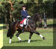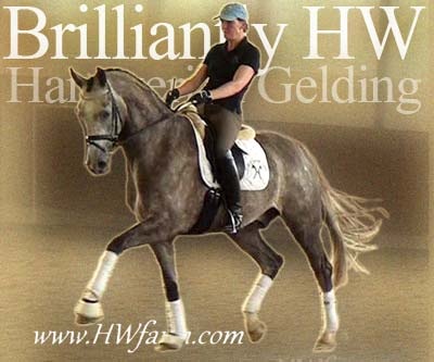 Brilliantly HW, gray Hanoverian gelding by Ballettmeister/Westerland, born in 2008, standing approximately 172 cm or 16.3 hands. Brilliantly HW already scored up to 76% in Dressage Horse classes (A-level), he loves to show! Brilliantly HW, a young super star, flashy, fancy and oh so pretty! His sire Ballettmeister won the dressage portion of his performance test with a score of 146.42. This is not surprising, since he is a son of Brentano II, noted sire of dressage excellence. We also think of Brentina and Debbie Mc Donald if it comes to Brentano blood, it's proven to work perfectly in breeding and competitions. Brentano II has sired the fabulous Olympian, Brentina, and her full brother, Barclay. Ballettmeister is out of a full sister to the also-excellent dressage sire, Wokentanz, who has a sire production index of 157 for dressage, with a 97% heritability. You will find no better genetics for dressage production than the combination found in this talented young stallion. Ballettmeister is by the Hanoverian stallion of the year 2003, Brentano II. The Celle state stud stallion Brentano II is the Hanoverian stallion of the year 2003. At the Verden stallion licensing, the chestnut stallion was awarded this prestigious title. His breeder, Dr. Max Schulz-Stellenfleth, Stellenfleth, was honored with a check for EURO 10,000.00 and a valuable Wohlklang-statuette. The Uelzener insurance company always generously supports this award that honors important Hanoverian stallions who have a tremendous influence on the breed. In 1983, Brentano II was born on Dr. Max Schulz-Stellenfleth's farm in Kehdingen. His dam, the Grande-daughter Glocke, descends from one of the most important mare families in Hanover, going back to the Schumann-daughter S449. The stallions Garibaldi I and II, Wolkenstein I and II and Beltain as well as Beauvalais, one of the internationally most successful dressage horses with Beatriz Ferrer-Salat, belong to this equine family. Recently, Beltain caused a sensation in Warendorf: Under Holga Finken, his son Belissimo M became federal champion of three-year-old stallions. After having won the stallion licensing, Brentano II moved to the Celle National Stud. At his stallion performance test, he presented the best dressage performances, and with a final score of 129,97, he ranked second. One year later, he achieved the fourth place at the Federal Championships of the German Riding Horse. He is trained up to advanced dressage level, and he has been belonging to the Celle Quadrilles for years now. Since 1987, he has been stationed in Artland, first in Natbergen, later on at the Ankum insemination station. That is were Brentano II met suitable mares. The chestnut stallion is the sire of 68 state premium mares and 15 licensed stallions. In 2000, his daughter Bona Dea II left the Ratje-Niebuhr-Show as the winning mare. Together with her full sister Bona Dea, she won the Ratje-Niebuhr-Prize. Brentano II supplied totally 19 horses for elite auctions, among them the first-class horses Brentina, Brasseur P, Bandito and Bon Jovi. At the World Equestrian Games in Jerez, Brentina won the team bronze medal under the American Debbie McDonald. Her right brother Barclay is just about to start his international career with Gonnelien and Sven Rothenberger. In the youngster division, Bernstein and Christian Ritter are a successful and important equine pair. This year, Bon Jovi was especially successful: He won the federal championship title of four-year-old horses in Warendorf. Apart from that, he is the dam's sire of the Brandenburg mare Poetin who is on everyone's lips after having won the World Breeding Championships Dressage of Young Horses and the Federal Championships. Brentano II is a dressage stallion with an exemplary inheritance, and his dressage breeding evaluation reaches the above-average mark of 137 points. With his successful offspring, he is one of the sons of the trademark stallion Bolero who ensured a revival of this bloodline in sport. Thus in October, Bonaparte (Heike Kemmer) was awarded the most successful dressage horse of the world.