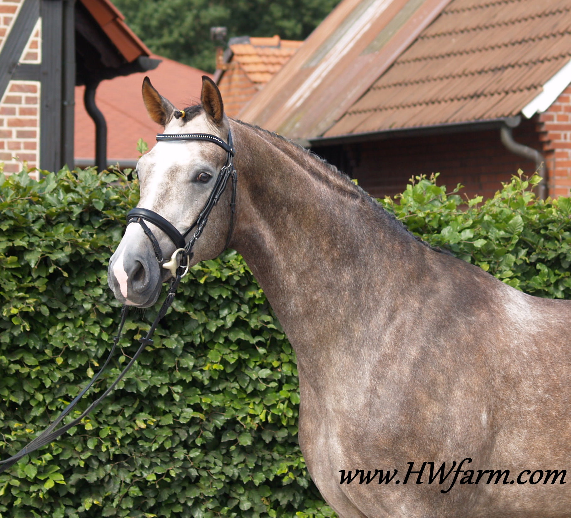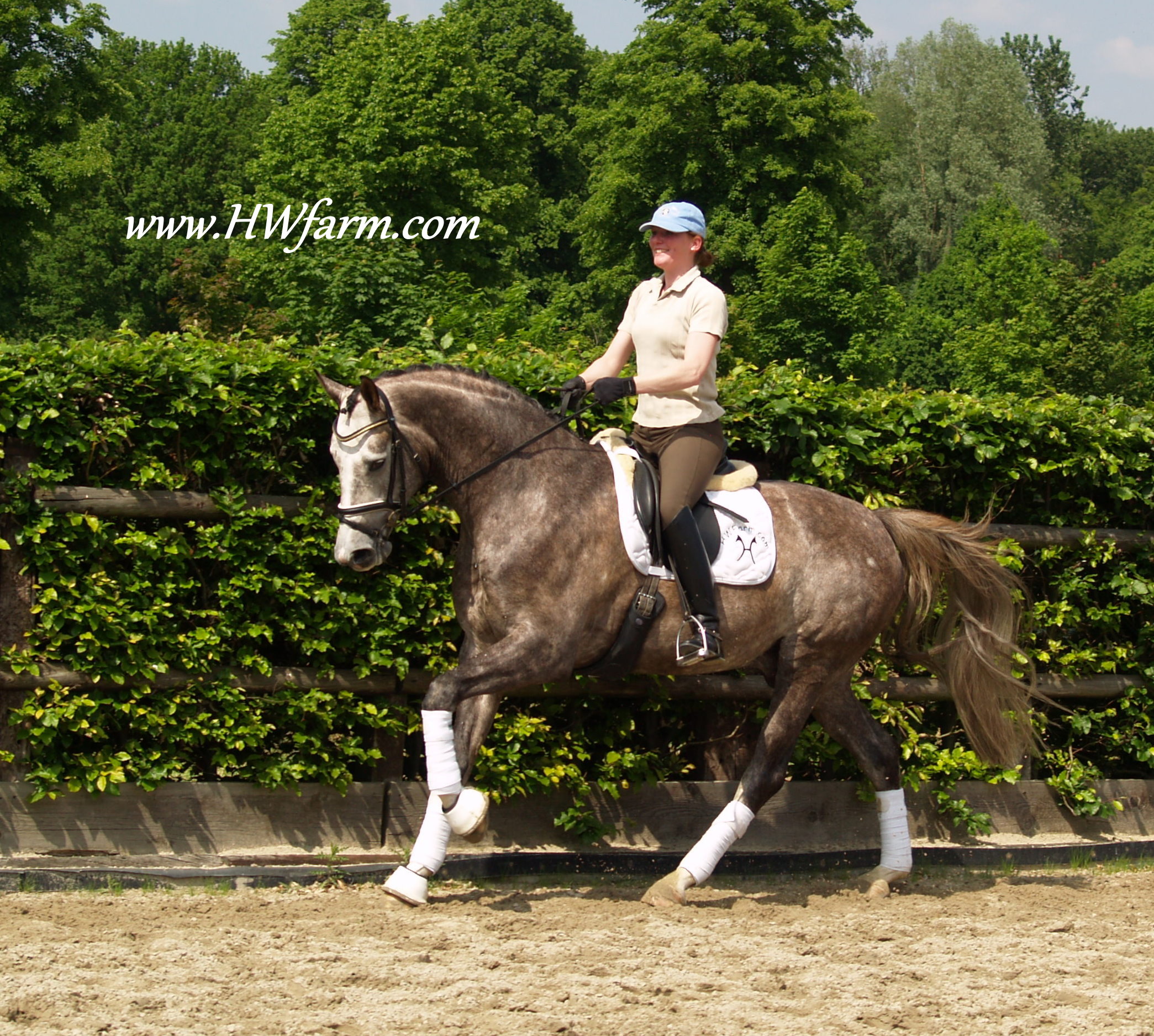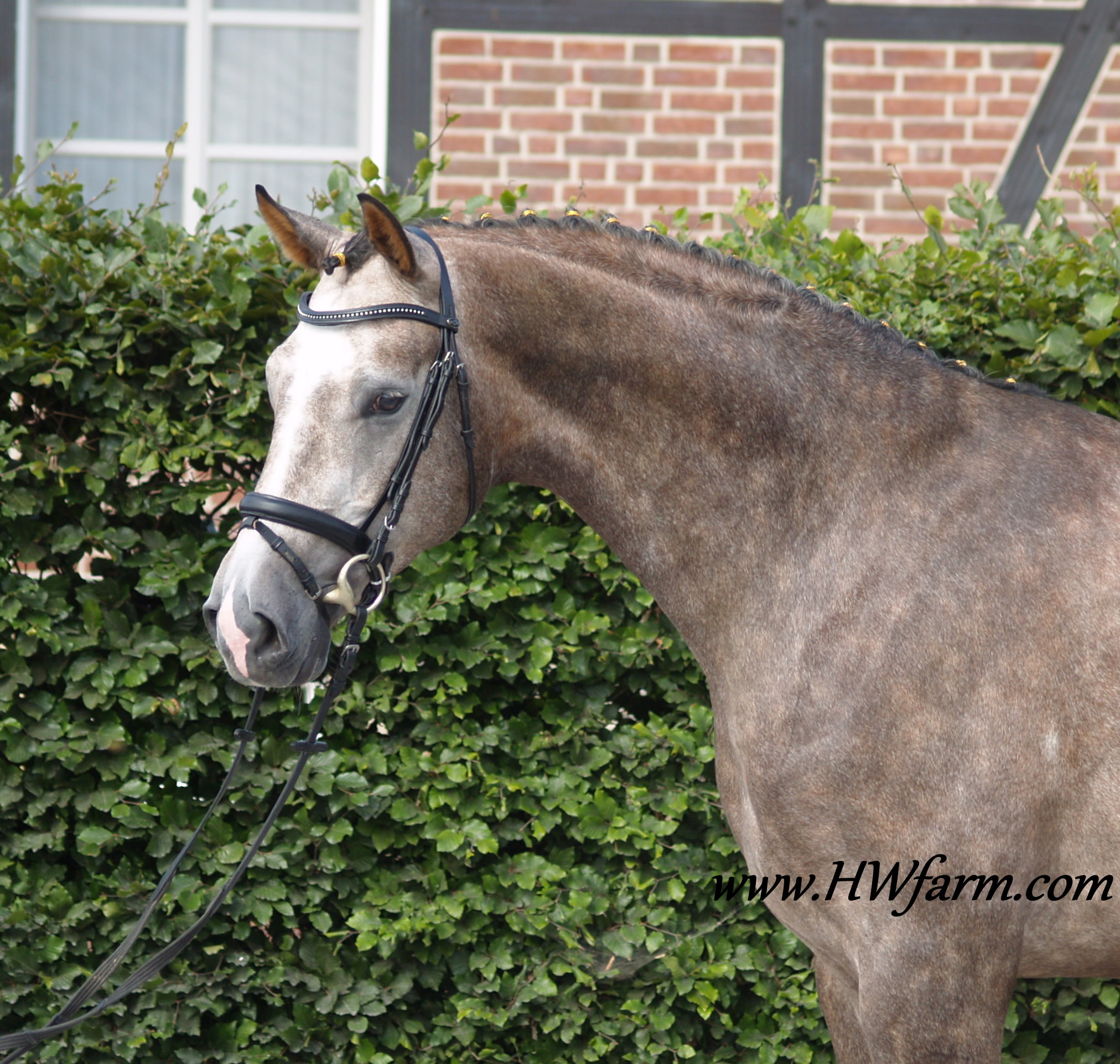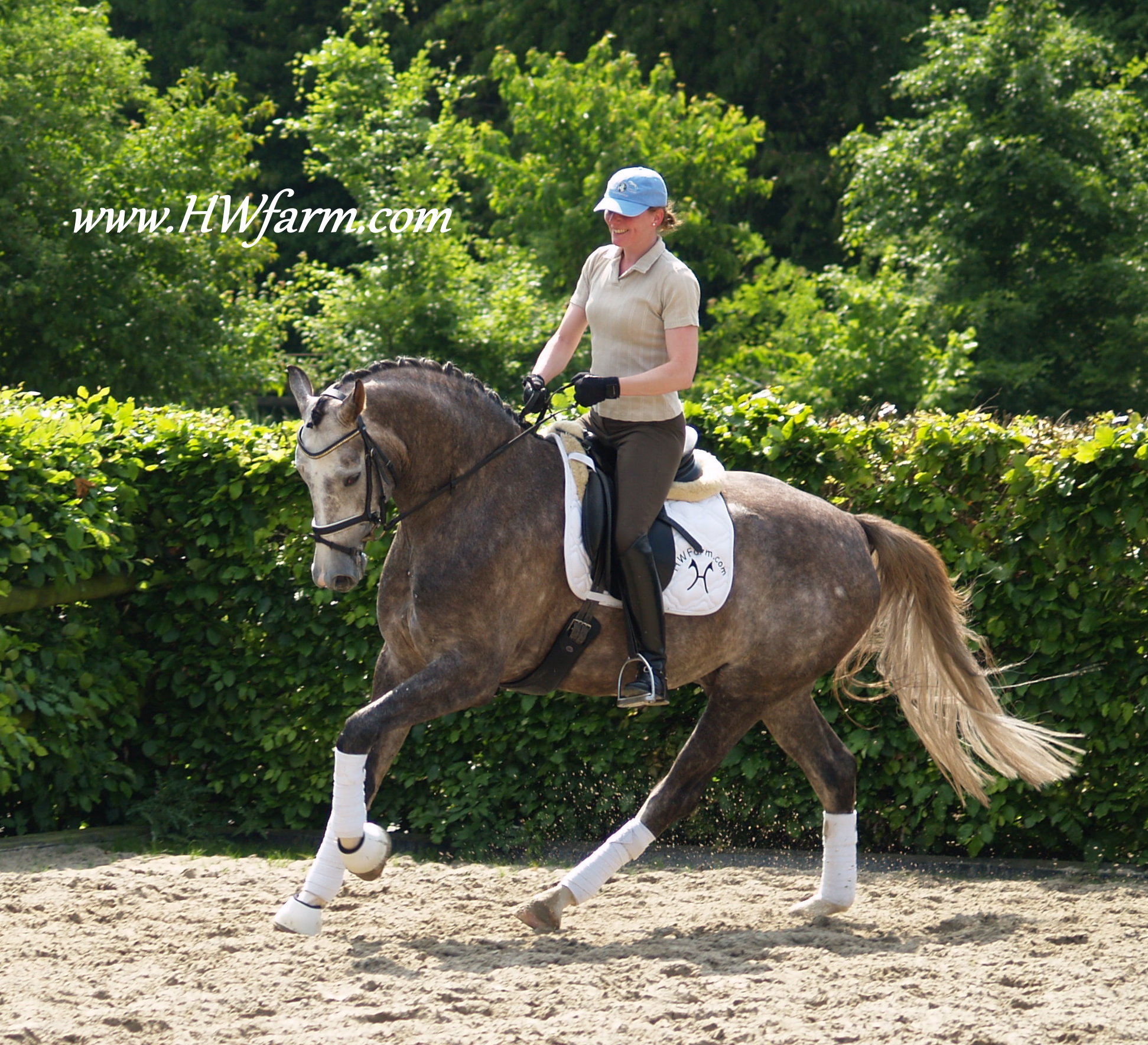 Brilliantly HW is out of a Westerland dam. You'll find more information about the bloodlines on the stallion site. Brilliantly HW, an absolute dream horse! Very noble gray eye catcher, his fur shimmers in all kinds of gray and bronze colors and with his black forelock; he for sure catches the attention of the audience. This horse will blow everybody away with his freedom in the shoulders and a very strong motor and active hind leg. We love his elegant movement and his modern built, there are many reasons to look forward to a bright future in the highest levels of dressage with this young gentleman. He has definitely three above average gaits, all clear and already well balanced with a good rhythm. Victory at 1st Level, solid at 2nd, training 3rd, many ribbons against huge competitions, successfully shown. He is a dream for every rider, fun every day, over and over again. Well behaved at the show grounds, a huge love all around. Brilliantly HW is a horse that does what he is asked to do. Nothing seems too much for him and he always gives 100% and more. He has super nerves and perfect ride ability. Friendly and sane in the barn and under saddle, he is a magnet for everybody alike. Vivienne Wiederhold (age 20) saw him in Germany and she is still begging to have him imported for her, his color, attitude, character, just everything about him is mesmerizing. If she'd have more time (she is in college and has a job), he'd already be here! He has tons of airtime and hang time, floats above the ground and is a teddy bear that loves to cuddle and have his own person to take care of him. He has the energy to do it all, but he is relaxed enough to concentrate and be safe and reliable. With Brilliantly HW, there is no limit to any level, he will compete in the big ring and he will be a phenomenal FEI horse. Judges will love and remember him with his fancy color, you can be sure to attract the attention. He is very elastic and a fast learner, he works with schwung and ease. He'll make the perfect horse for everybody alike, for a young rider, an adult amateur, a professional (professionals want sane horses too!!!) or even an older person looking for the perfect young horse for the future, without sacrificing the super gaits and the ability to go all the way to the top with a future FEI horse. This horse is a true diamond in the rough, he loves to learn, is easy to sit and light in the hand. He is a safe horse, especially for his age and gets even ridden without the fuzz of longing first. He works as well inside the covered arena as he does in the outside arena. After his workout, he gets to go with long reins around the barn and loves it. Brilliantly is used to go in the hot walker, loves his solarium time and grooming is his favorite! He stands for the farrier, loads and bathing is fun for him too. Super uncomplicated, a truly rare find. X-rays on file. Please contact Irene: Irene@HWfarm.com 239-772-7722 (ask for Irene, managing member of Horse Sales LLC) We take pride in answering every e-mail right away (at least at the same day) and to return each call. If you don't get a reply - please try again, our spam filter might have gotten in the way?!