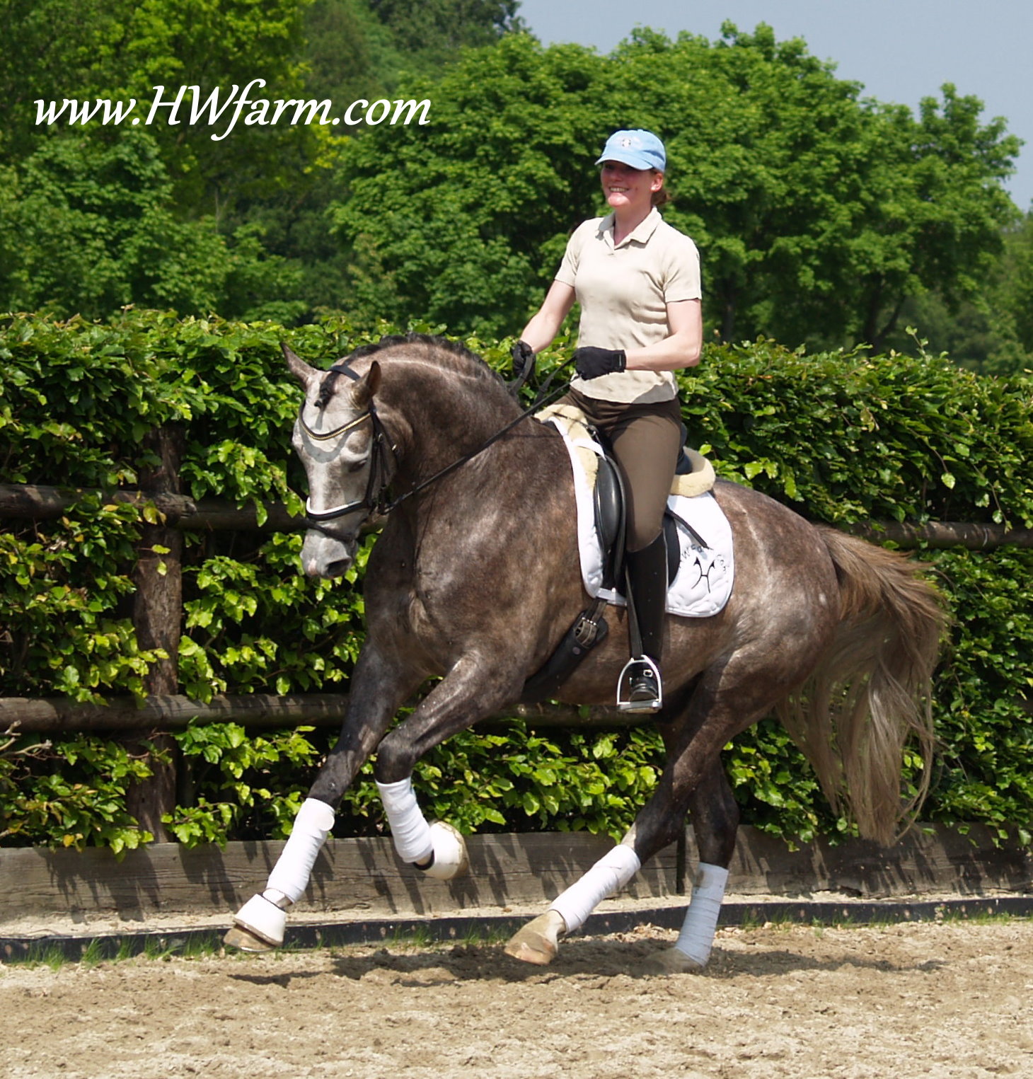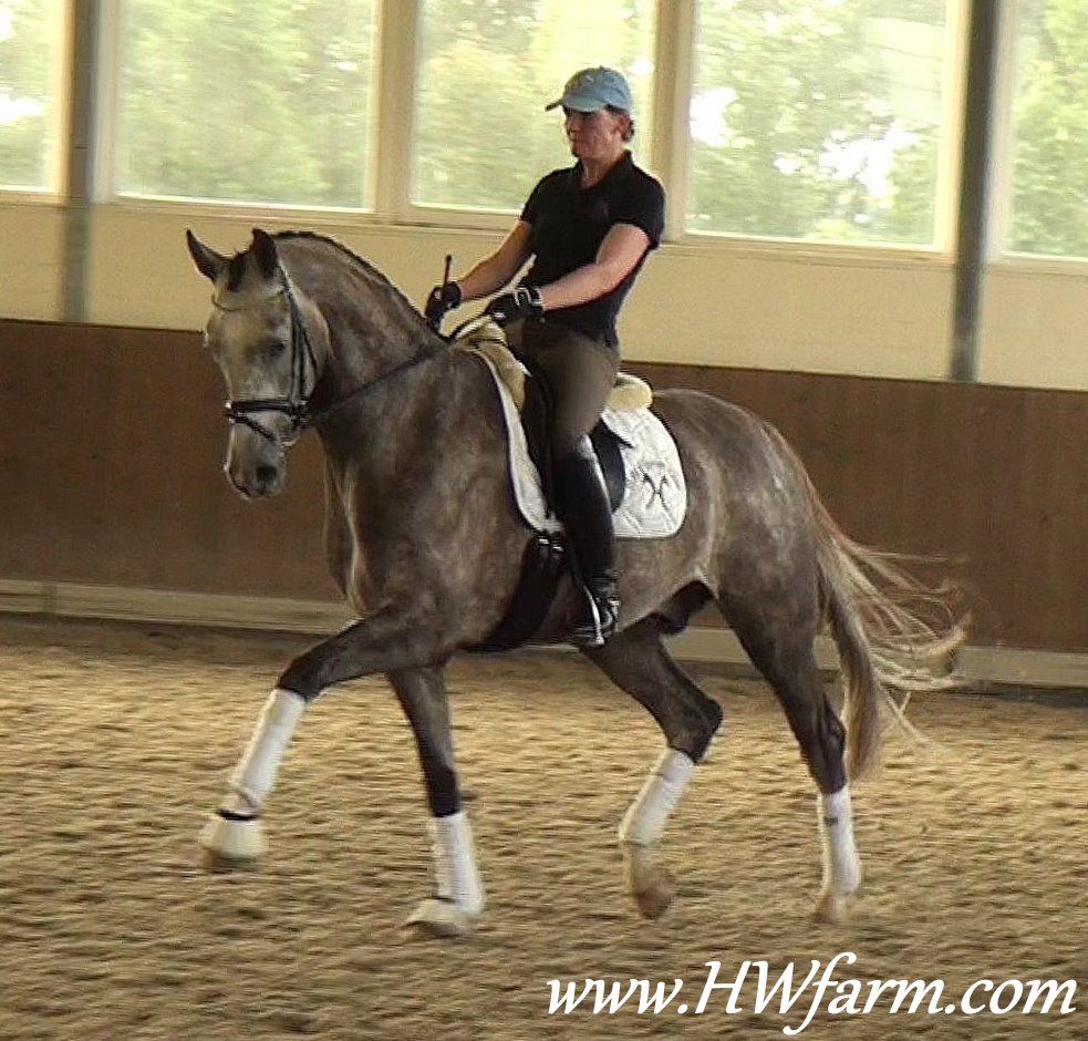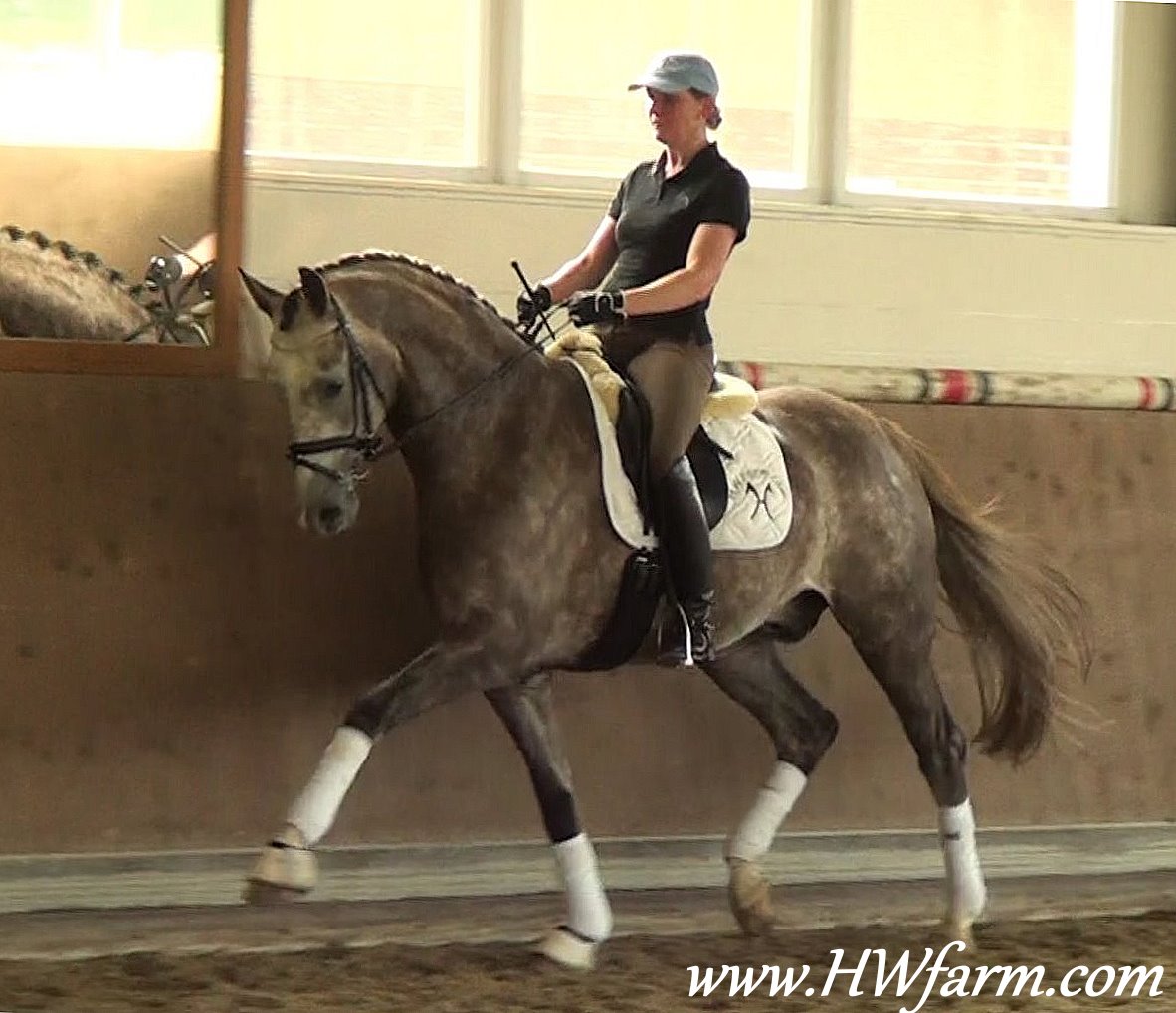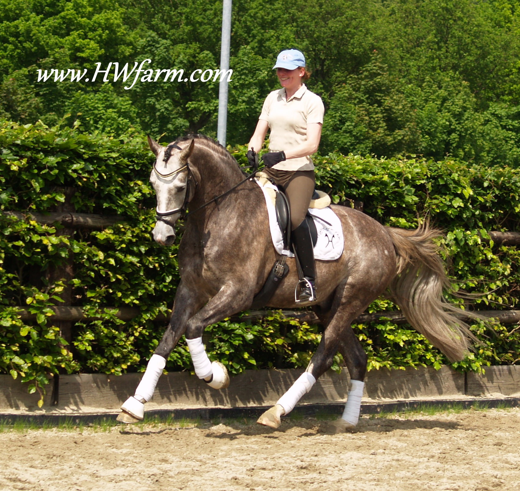Brilliantly HW is out of a Westerland dam. You'll find more information about the bloodlines on the stallion site. Brilliantly HW, an absolute dream horse! Very noble gray eye catcher, his fur shimmers in all kinds of gray and bronze colors and with his black forelock; he for sure catches the attention of the audience. This horse will blow everybody away with his freedom in the shoulders and a very strong motor and active hind leg. We love his elegant movement and his modern built, there are many reasons to look forward to a bright future in the highest levels of dressage with this young gentleman. He has definitely three above average gaits, all clear and already well balanced with a good rhythm. Victory at 1st Level, solid at 2nd, training 3rd, many ribbons against huge competitions, successfully shown. He is a dream for every rider, fun every day, over and over again. Well behaved at the show grounds, a huge love all around. Brilliantly HW is a horse that does what he is asked to do. Nothing seems too much for him and he always gives 100% and more. He has super nerves and perfect ride ability. Friendly and sane in the barn and under saddle, he is a magnet for everybody alike. Vivienne Wiederhold (age 20) saw him in Germany and she is still begging to have him imported for her, his color, attitude, character, just everything about him is mesmerizing. If she'd have more time (she is in college and has a job), he'd already be here! He has tons of airtime and hang time, floats above the ground and is a teddy bear that loves to cuddle and have his own person to take care of him. He has the energy to do it all, but he is relaxed enough to concentrate and be safe and reliable. With Brilliantly HW, there is no limit to any level, he will compete in the big ring and he will be a phenomenal FEI horse. Judges will love and remember him with his fancy color, you can be sure to attract the attention. He is very elastic and a fast learner, he works with schwung and ease. He'll make the perfect horse for everybody alike, for a young rider, an adult amateur, a professional (professionals want sane horses too!!!) or even an older person looking for the perfect young horse for the future, without sacrificing the super gaits and the ability to go all the way to the top with a future FEI horse. This horse is a true diamond in the rough, he loves to learn, is easy to sit and light in the hand. He is a safe horse, especially for his age and gets even ridden without the fuzz of longing first. He works as well inside the covered arena as he does in the outside arena. After his workout, he gets to go with long reins around the barn and loves it. Brilliantly is used to go in the hot walker, loves his solarium time and grooming is his favorite! He stands for the farrier, loads and bathing is fun for him too. Super uncomplicated, a truly rare find. X-rays on file. Please contact Irene: Irene@HWfarm.com 239-772-7722 (ask for Irene, managing member of Horse Sales LLC) We take pride in answering every e-mail right away (at least at the same day) and to return each call. If you don't get a reply - please try again, our spam filter might have gotten in the way?!