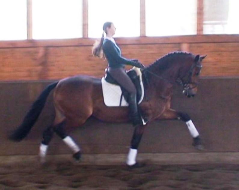 Carrabbas, bay Hanoverian stallion by Cardenio/Capitol II, born 2008, standing approximately 16.1 ½ hands. Carrabas, outstanding young stallion by the sire