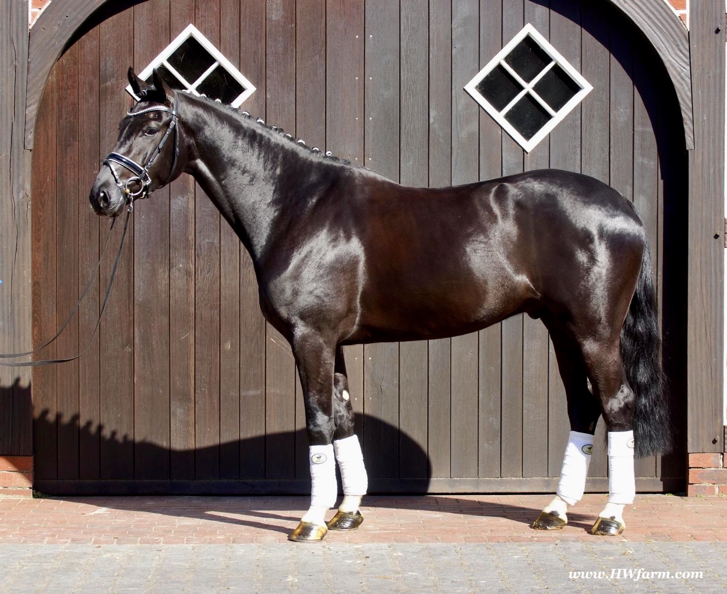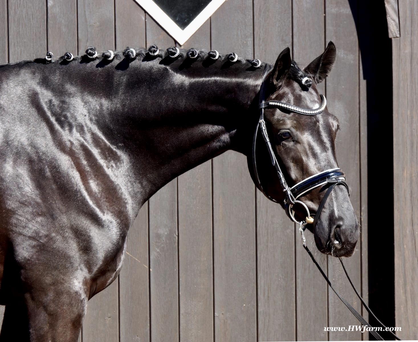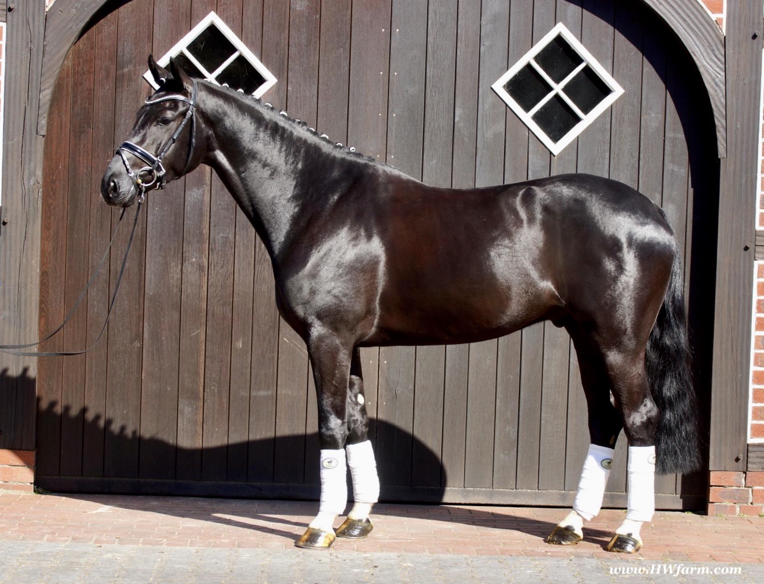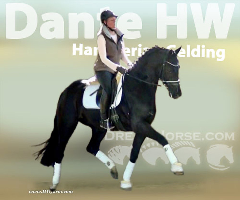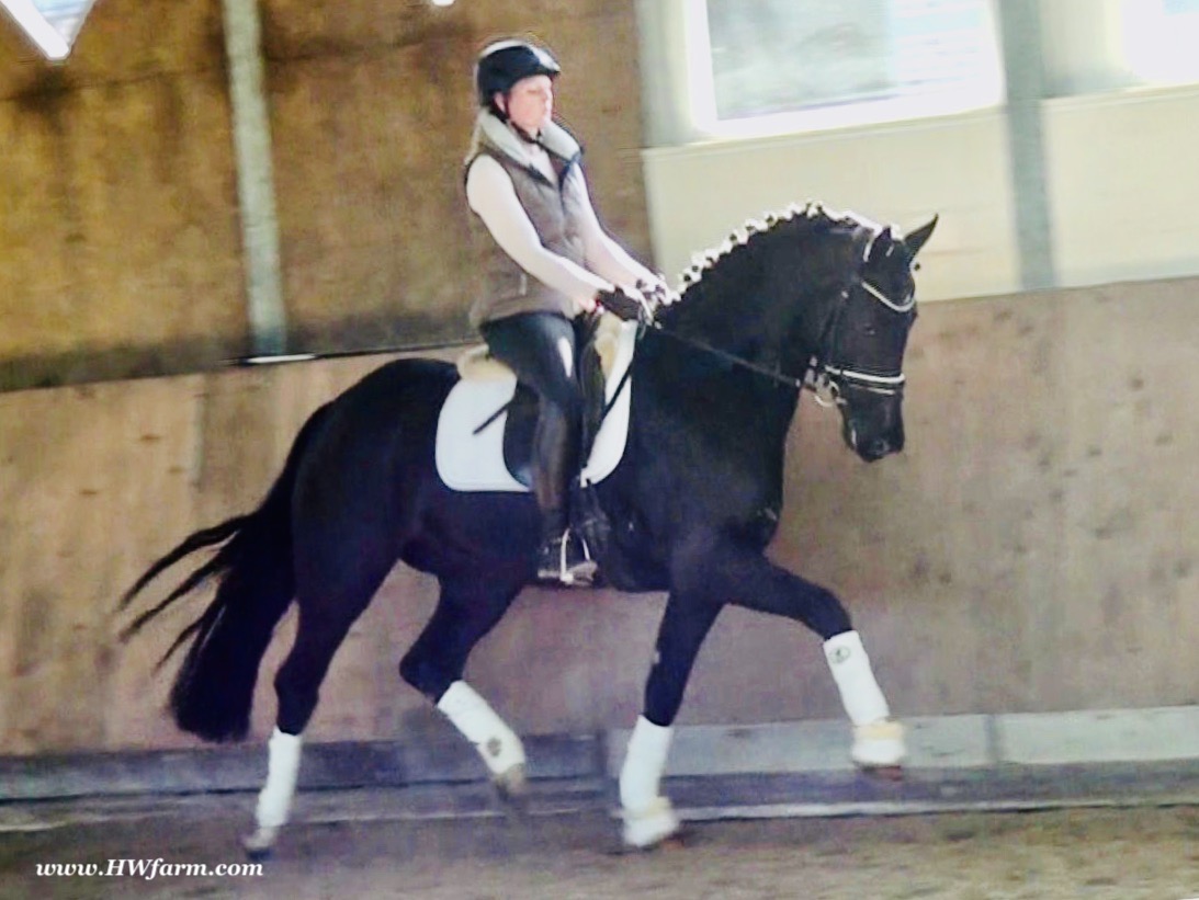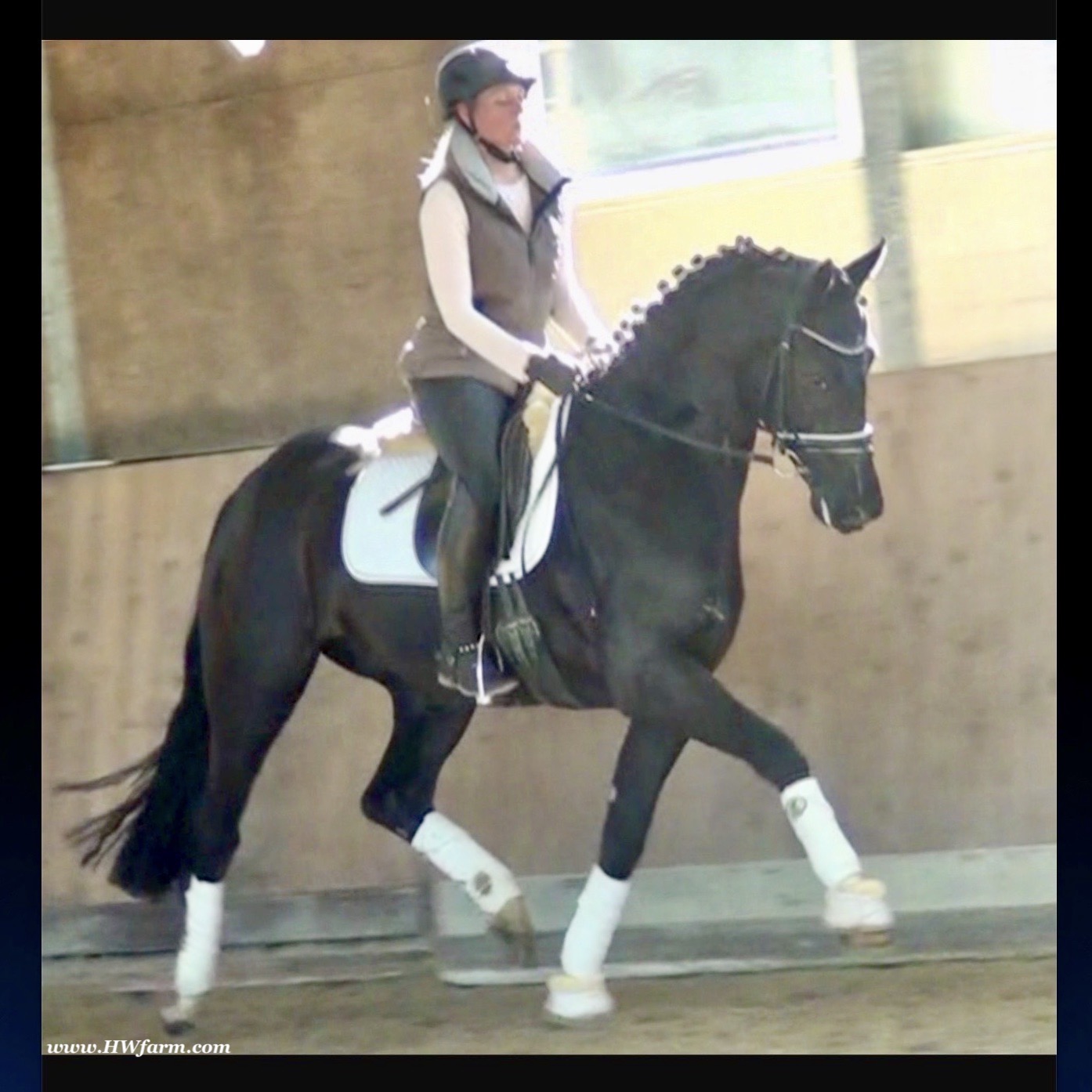 Dante HW, black Westphalian gelding by Dante Weltino/Don Lauredo, born in 2016, standing approximately 167 cm or 16.2 hands. Dante HW was sired by Dante Weltino. All of the characteristics that distinguish a top sire have been united in Dante Weltino. This fabulous mover, the 1st Reserve Champion of the 2009 Oldenburg licensing in Vechta, fulfilled his performance requirements in 2012 by winning the qualifier for the Bundeschampionate in the class for five-year old dressage horses with an outstanding score of 8.3. He then repeated this feat in 2013 by winning the Bremen qualifier for the six-year old dressage horses, but with an even better score of 8.6. Dante Weltino and his rider Therese Nilshagen helped the Swedish team take bronze at the 2017 European Championships in Göteburg and also placed fourth in the individual. In 2018, the duo placed 4th with the Sweidsh team and tenth in the individual at the World Championship in Tyron, USA. In 2019 they went on to help the Swedish Team win bronze at the FEI European Championship in Rotterdam. The Hanoverian Verband approved the sparkling black stallion for breeding in 2012. Since then Dante Weltino's first foals arrived, and everyone has been talking about them. A son named De Supreme won the 2nd Lodbergen Foal Championships and was the most expensive colt at the Vechta Elite Foal Auction. Dante Ferro, the 2011 Lodbergen Champion, was sold as the gavel was knocked-down in Vechta for 29,000 Euros. Another Dante Weltino son named Damenball was sold for 20,000 euros. In 2019 is daughter Atterupgaards Lady Hamilton was named Danish Warmblood Mare of the Year. His sire, Danone I, has won ribbons up to level Intermediate I. Four of his sons were licensed including the second most expensive premium stallion of the Hanoverian licensing who sold for 320,000 euros and the stallion performance test winner, Dankeschön. The dam's sire, Welt Hit II, was listed among the top ten in the 2011 WBFSH's list of the world's best dressage stallions. The granddam, Verb.Pr.St. Riconess, is the dam of the show jumping Bundeschampion and winner of the Badenia Prize, Lumos (by Lordanos) and the Olympic participant St.Pr.A. Riwera OLD (by Welt Hit II). The great granddam Ricarda is the dam of the Oldenburg Champion Mare, St.Pr./El.St. Riconda (by Contender). This is the successful line of Richilda. Dante HW's bloodlines go back to the big names, Danone, De Niro, as well as Donnerhall and Weltmeyer, so many to name, all the good old, strong competition lines, highly sought after in today's sport horses. Dante HW himself, is just like ordered: Amazing looks, movement, talent, he's the total package. He will catch your attention with his beauty and elegance. He is a true eye candy, smart and willing to please. He has three fantastic, rhythmic gaits, with stellar cadence. Dante HW is already working solid at 2nd level, with super steady, always uphill movement. This boy is super impresses with his stunning, free shoulder, sensational trot movement, uphill canter and swings always nicely through his body, with a soft back and an active hindleg. His walk is always rhythmic, no matter if collected or extended walk. Everybody will love this one, the judges and the audience alike will be excited to see him. Dante HW is willing to learn daily, very sweet and with his super work ethic and attitude, a horse that fascinates his rider as well as trainer, every day of the year. He is so much fun! This is a horse, with a very big heart. He's looking for his life partner to go out, have fun and compete. He's just a sweetheart. Dante HW is suitable for an amateur, young rider or professional alike to continue his training and go on from there. He gets along well with other horses, loves human attention, wants to be in your pockets all the time and thrives for his personal grooming time. Loads and bathes, goes in the hot walker and is pleasant all around as well as a super partner. He is ready to go to his new owner and impress with his looks and potential for the upper level. This boy will go his way up the levels with ease and fun, hopefully you will be the one guiding him there. Dante HW will enable you to fulfill your dreams with all his sensational abilities, he will collect all ribbons with ease, high point and more, here we come. The goal of HW Farm is, to offer highly talented young horses in Germany for riders in the USA and all over the world. This young star will go far in the dressage ring, he is your ticket to the top, as well as a superb Young Horse Candidate. X-rays on file! Please inquire for price, check out his video clip!!! Please contact Irene: Irene@HWfarm.com 239-772-7722 (ask for Irene, managing member of HorseSales LLC) We take pride in answering every e-mail right away (at least at the same day) and to return each call. If you don't get a reply - please try again, our spam filter might have gotten in the way?!