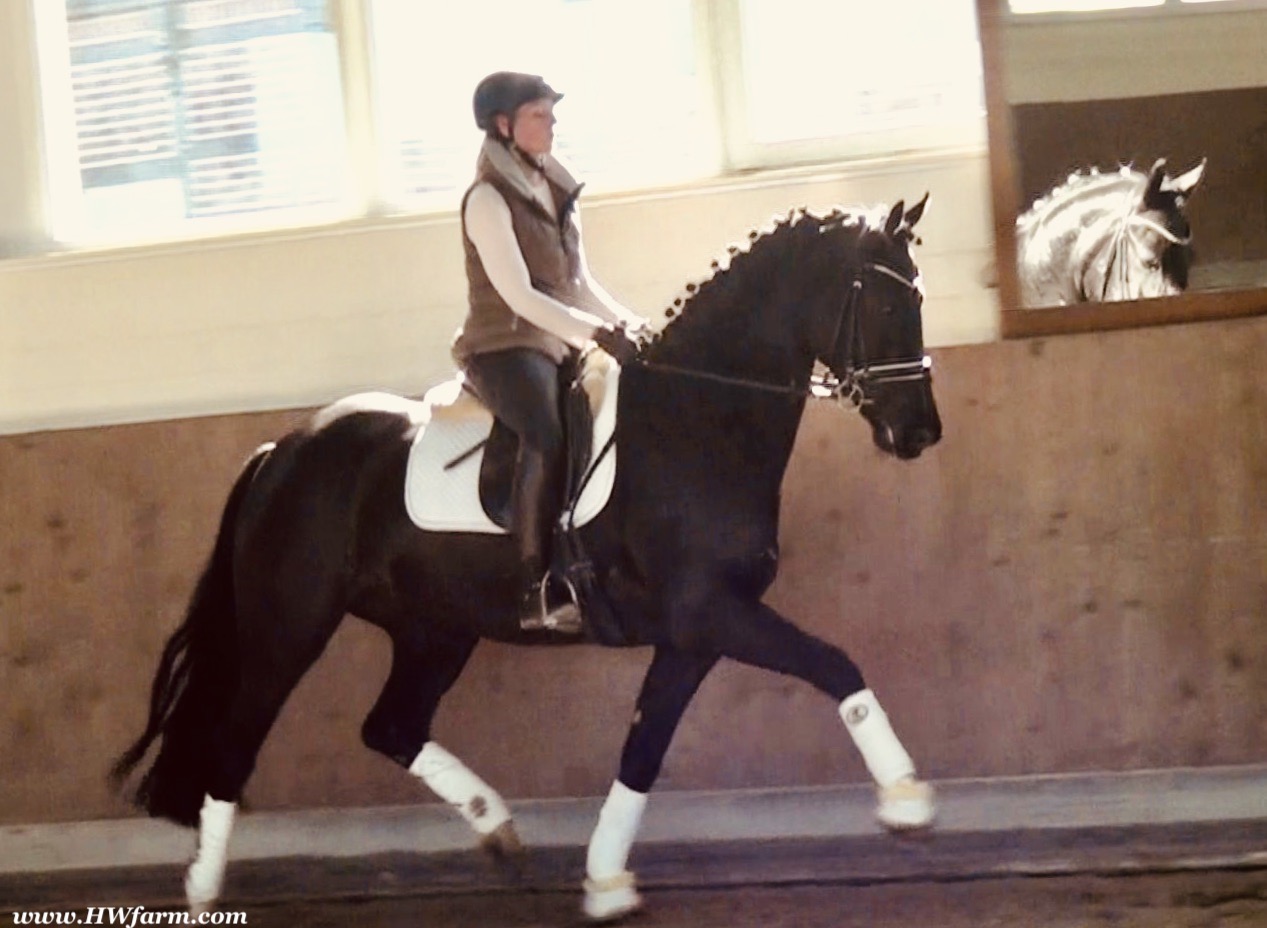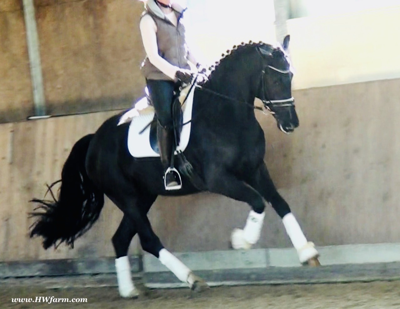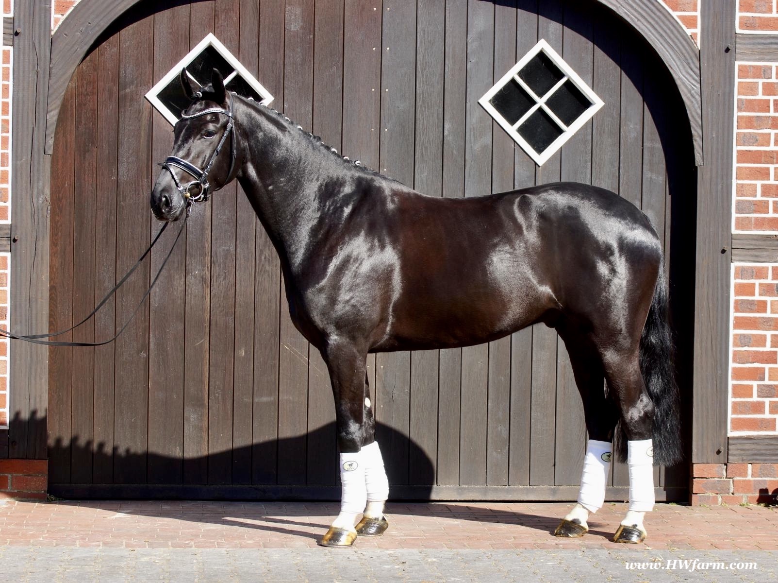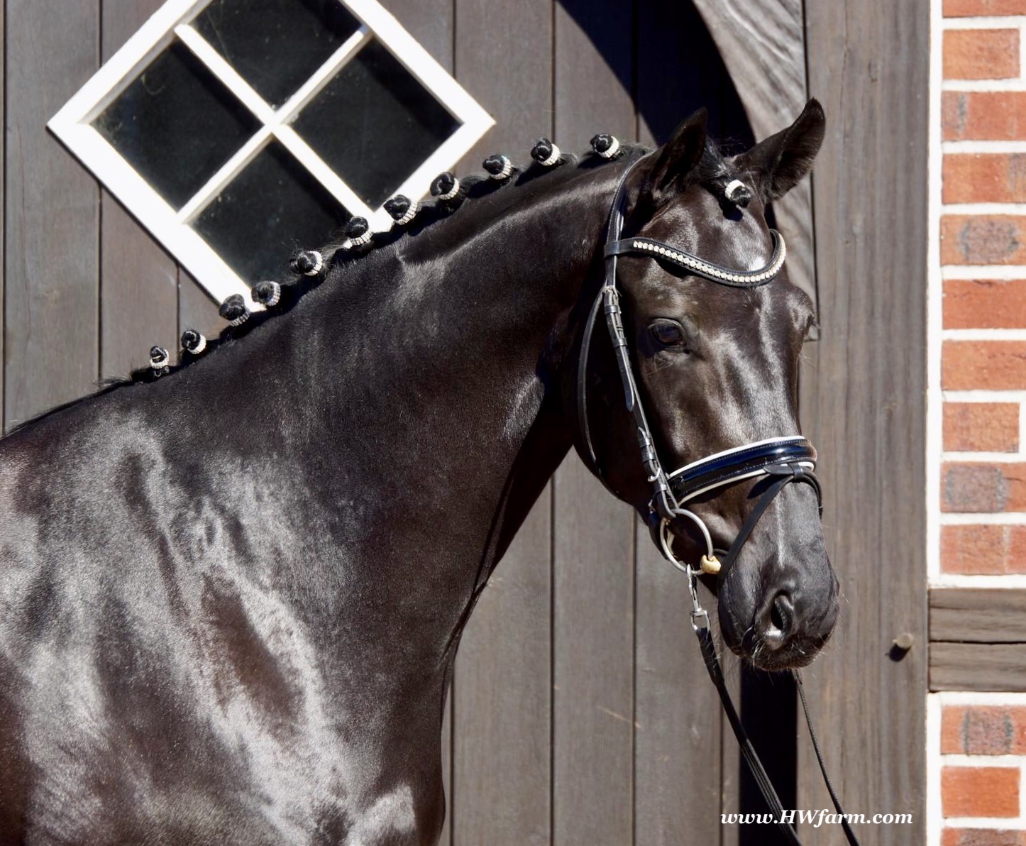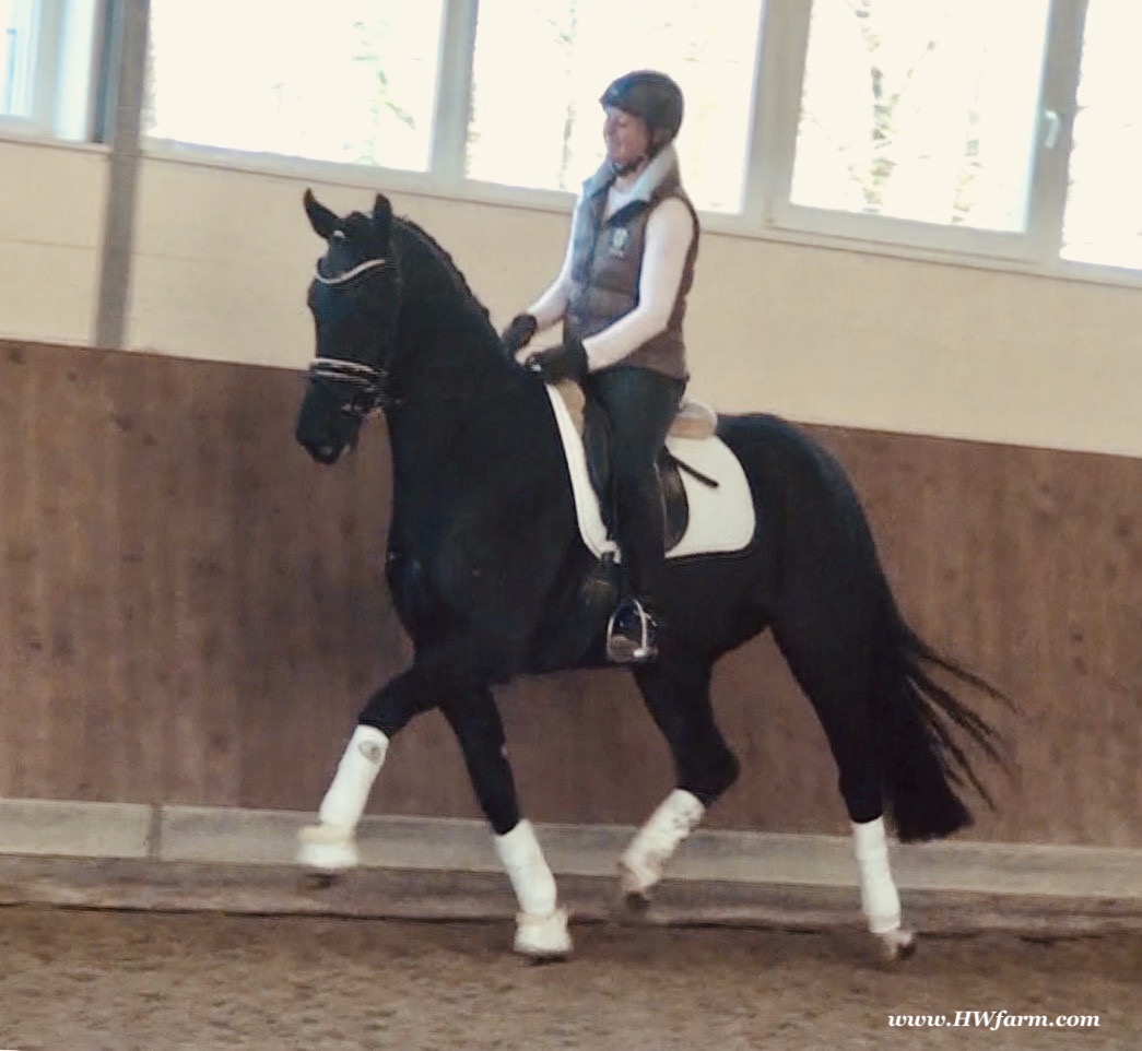 Dante HW, black Westphalian gelding by Dante Weltino/Don Lauredo, born in 2016, standing approximately 167 cm or 16.2 hands. Dante HW was sired by Dante Weltino. All of the characteristics that distinguish a top sire have been united in Dante Weltino. This fabulous mover, the 1st Reserve Champion of the 2009 Oldenburg licensing in Vechta, fulfilled his performance requirements in 2012 by winning the qualifier for the Bundeschampionate in the class for five-year old dressage horses with an outstanding score of 8.3. He then repeated this feat in 2013 by winning the Bremen qualifier for the six-year old dressage horses, but with an even better score of 8.6. Dante Weltino and his rider Therese Nilshagen helped the Swedish team take bronze at the 2017 European Championships in Göteburg and also placed fourth in the individual. In 2018, the duo placed 4th with the Sweidsh team and tenth in the individual at the World Championship in Tyron, USA. In 2019 they went on to help the Swedish Team win bronze at the FEI European Championship in Rotterdam. The Hanoverian Verband approved the sparkling black stallion for breeding in 2012. Since then Dante Weltino's first foals arrived, and everyone has been talking about them. A son named De Supreme won the 2nd Lodbergen Foal Championships and was the most expensive colt at the Vechta Elite Foal Auction. Dante Ferro, the 2011 Lodbergen Champion, was sold as the gavel was knocked-down in Vechta for 29,000 Euros. Another Dante Weltino son named Damenball was sold for 20,000 euros. In 2019 is daughter Atterupgaards Lady Hamilton was named Danish Warmblood Mare of the Year. His sire, Danone I, has won ribbons up to level Intermediate I. Four of his sons were licensed including the second most expensive premium stallion of the Hanoverian licensing who sold for 320,000 euros and the stallion performance test winner, Dankeschön. The dam's sire, Welt Hit II, was listed among the top ten in the 2011 WBFSH's list of the world's best dressage stallions. The granddam, Verb.Pr.St. Riconess, is the dam of the show jumping Bundeschampion and winner of the Badenia Prize, Lumos (by Lordanos) and the Olympic participant St.Pr.A. Riwera OLD (by Welt Hit II). The great granddam Ricarda is the dam of the Oldenburg Champion Mare, St.Pr./El.St. Riconda (by Contender). This is the successful line of Richilda. Dante HW's bloodlines go back to the big names, Danone, De Niro, as well as Donnerhall and Weltmeyer, so many to name, all the good old, strong competition lines, highly sought after in today's sport horses. Dante HW himself, is just like ordered: Amazing looks, movement, talent, he's the total package. He will catch your attention with his beauty and elegance. He is a true eye candy, smart and willing to please. He has three fantastic, rhythmic gaits, with stellar cadence. Dante HW is already working solid at 2nd level, with super steady, always uphill movement. This boy is super impresses with his stunning, free shoulder, sensational trot movement, uphill canter and swings always nicely through his body, with a soft back and an active hindleg. His walk is always rhythmic, no matter if collected or extended walk. Everybody will love this one, the judges and the audience alike will be excited to see him. Dante HW is willing to learn daily, very sweet and with his super work ethic and attitude, a horse that fascinates his rider as well as trainer, every day of the year. He is so much fun! This is a horse, with a very big heart. He's looking for his life partner to go out, have fun and compete. He's just a sweetheart. Dante HW is suitable for an amateur, young rider or professional alike to continue his training and go on from there. He gets along well with other horses, loves human attention, wants to be in your pockets all the time and thrives for his personal grooming time. Loads and bathes, goes in the hot walker and is pleasant all around as well as a super partner. He is ready to go to his new owner and impress with his looks and potential for the upper level. This boy will go his way up the levels with ease and fun, hopefully you will be the one guiding him there. Dante HW will enable you to fulfill your dreams with all his sensational abilities, he will collect all ribbons with ease, high point and more, here we come. The goal of HW Farm is, to offer highly talented young horses in Germany for riders in the USA and all over the world. This young star will go far in the dressage ring, he is your ticket to the top, as well as a superb Young Horse Candidate. X-rays on file! Please inquire for price, check out his video clip!!! Please contact Irene: Irene@HWfarm.com 239-772-7722 (ask for Irene, managing member of HorseSales LLC) We take pride in answering every e-mail right away (at least at the same day) and to return each call. If you don't get a reply - please try again, our spam filter might have gotten in the way?!