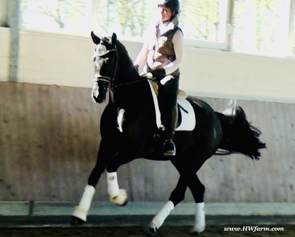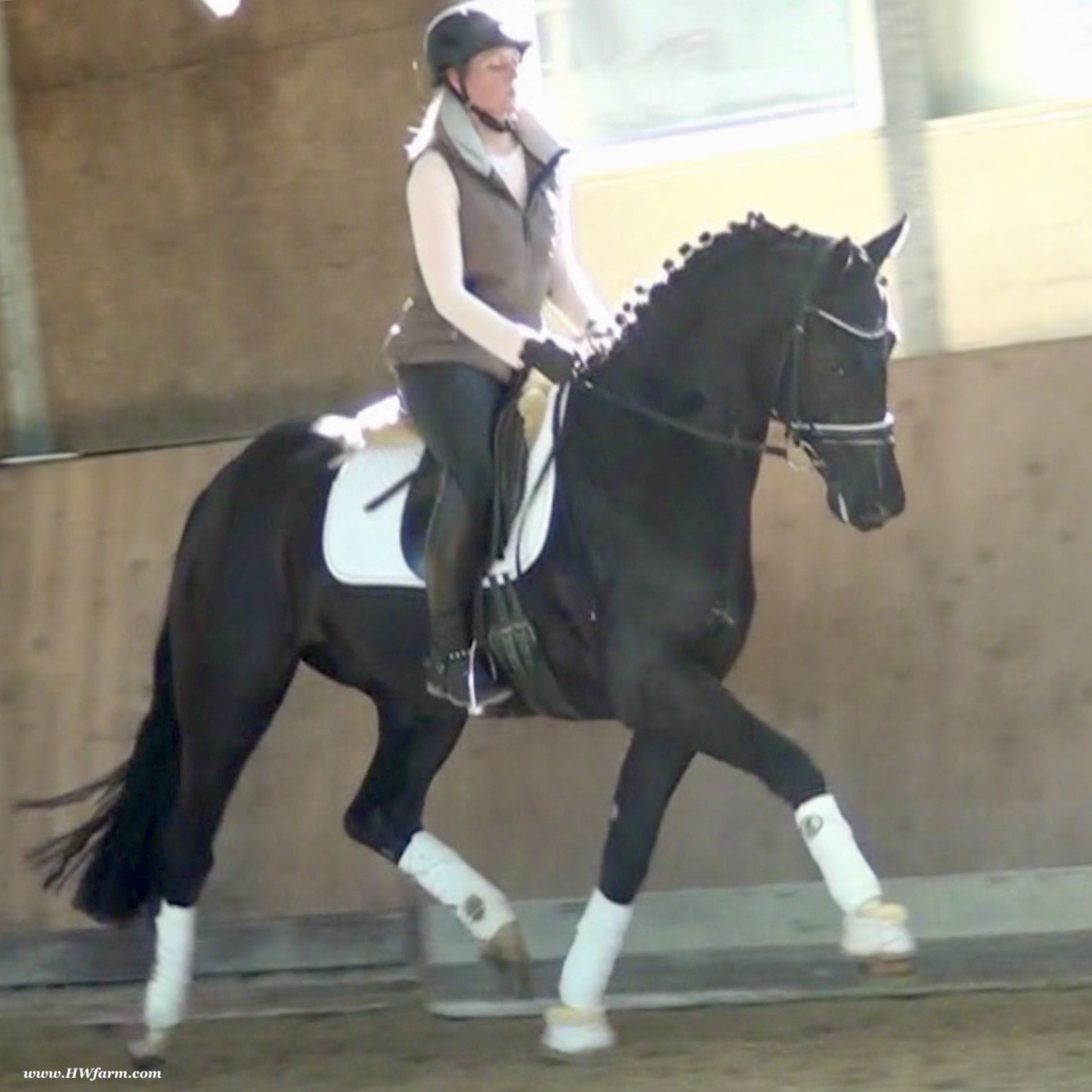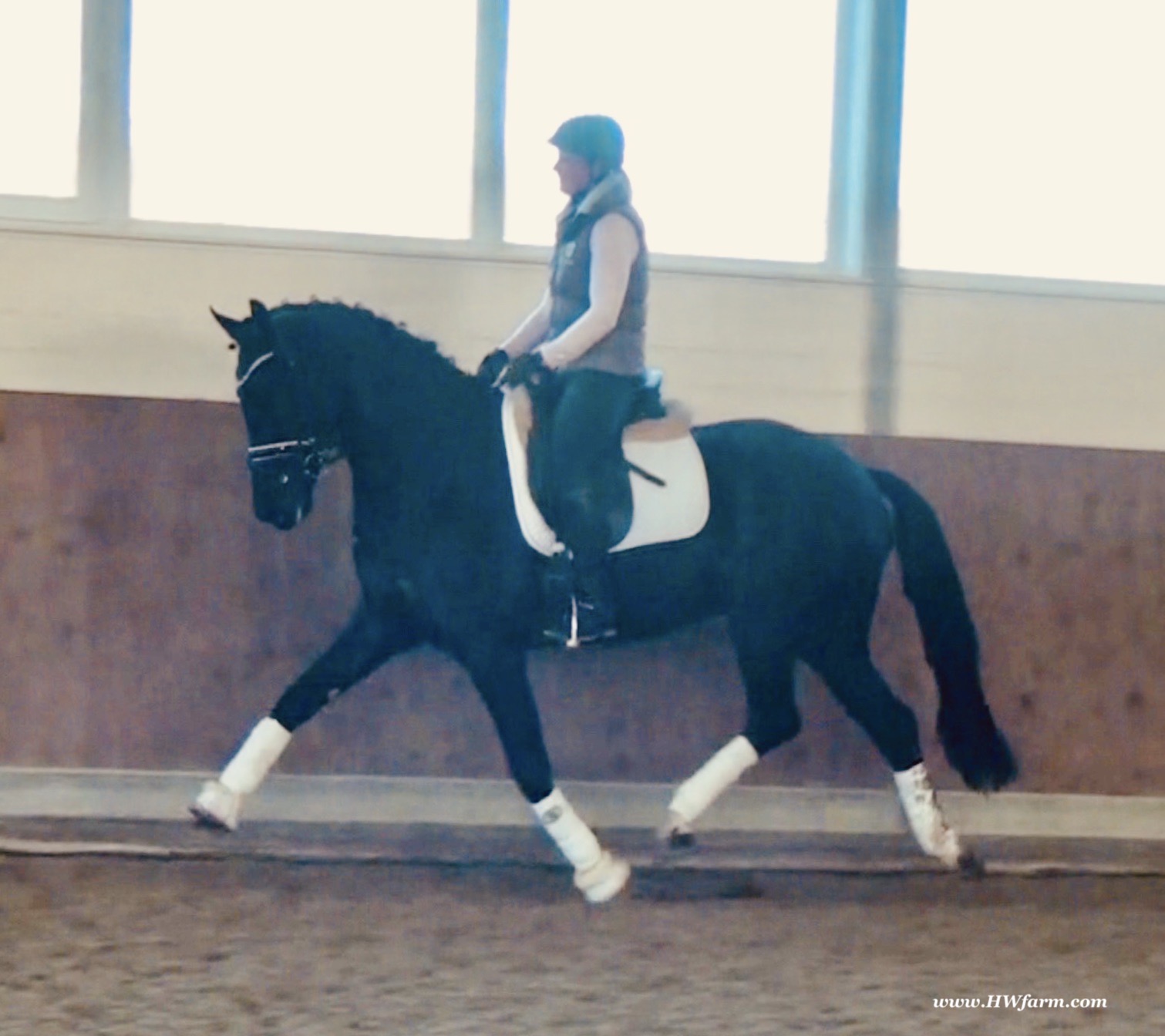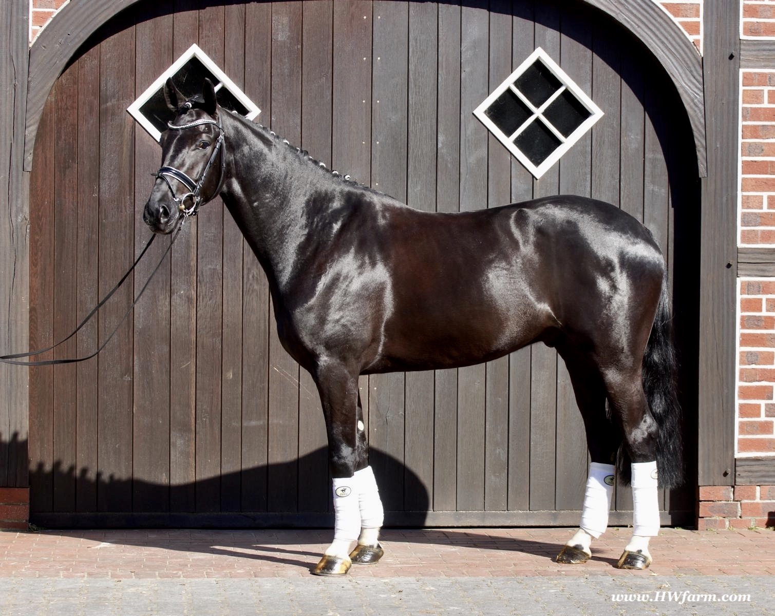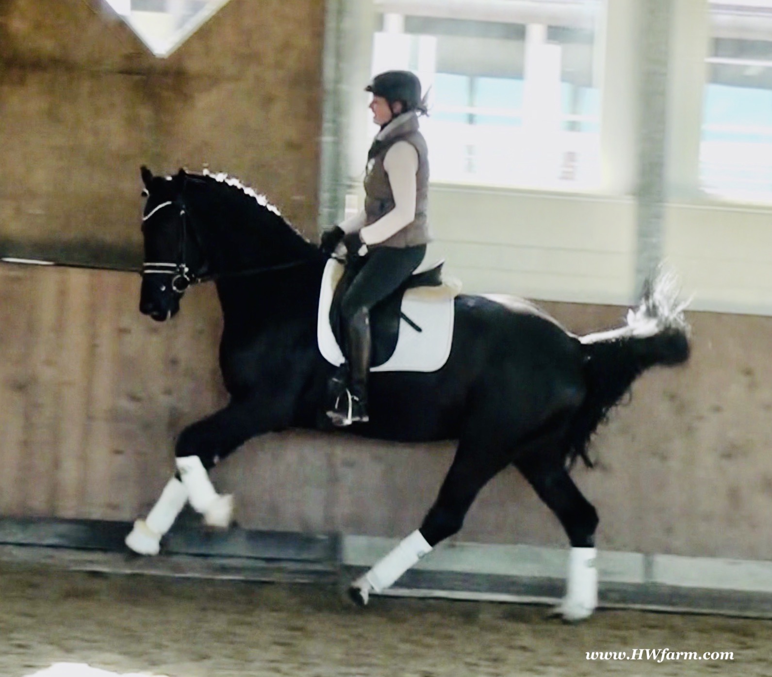 Dante HW, black Westphalian gelding by Dante Weltino/Don Lauredo, born in 2016, standing approximately 167 cm or 16.2 hands. Dante HW was sired by Dante Weltino. All of the characteristics that distinguish a top sire have been united in Dante Weltino. This fabulous mover, the 1st Reserve Champion of the 2009 Oldenburg licensing in Vechta, fulfilled his performance requirements in 2012 by winning the qualifier for the Bundeschampionate in the class for five-year old dressage horses with an outstanding score of 8.3. He then repeated this feat in 2013 by winning the Bremen qualifier for the six-year old dressage horses, but with an even better score of 8.6. Dante Weltino and his rider Therese Nilshagen helped the Swedish team take bronze at the 2017 European Championships in Göteburg and also placed fourth in the individual. In 2018, the duo placed 4th with the Sweidsh team and tenth in the individual at the World Championship in Tyron, USA. In 2019 they went on to help the Swedish Team win bronze at the FEI European Championship in Rotterdam. The Hanoverian Verband approved the sparkling black stallion for breeding in 2012. Since then Dante Weltino's first foals arrived, and everyone has been talking about them. A son named De Supreme won the 2nd Lodbergen Foal Championships and was the most expensive colt at the Vechta Elite Foal Auction. Dante Ferro, the 2011 Lodbergen Champion, was sold as the gavel was knocked-down in Vechta for 29,000 Euros. Another Dante Weltino son named Damenball was sold for 20,000 euros. In 2019 is daughter Atterupgaards Lady Hamilton was named Danish Warmblood Mare of the Year. His sire, Danone I, has won ribbons up to level Intermediate I. Four of his sons were licensed including the second most expensive premium stallion of the Hanoverian licensing who sold for 320,000 euros and the stallion performance test winner, Dankeschön. The dam's sire, Welt Hit II, was listed among the top ten in the 2011 WBFSH's list of the world's best dressage stallions. The granddam, Verb.Pr.St. Riconess, is the dam of the show jumping Bundeschampion and winner of the Badenia Prize, Lumos (by Lordanos) and the Olympic participant St.Pr.A. Riwera OLD (by Welt Hit II). The great granddam Ricarda is the dam of the Oldenburg Champion Mare, St.Pr./El.St. Riconda (by Contender). This is the successful line of Richilda. Dante HW's bloodlines go back to the big names, Danone, De Niro, as well as Donnerhall and Weltmeyer, so many to name, all the good old, strong competition lines, highly sought after in today's sport horses. Dante HW himself, is just like ordered: Amazing looks, movement, talent, he's the total package. He will catch your attention with his beauty and elegance. He is a true eye candy, smart and willing to please. He has three fantastic, rhythmic gaits, with stellar cadence. Dante HW is already working solid at 2nd level, with super steady, always uphill movement. This boy is super impresses with his stunning, free shoulder, sensational trot movement, uphill canter and swings always nicely through his body, with a soft back and an active hindleg. His walk is always rhythmic, no matter if collected or extended walk. Everybody will love this one, the judges and the audience alike will be excited to see him. Dante HW is willing to learn daily, very sweet and with his super work ethic and attitude, a horse that fascinates his rider as well as trainer, every day of the year. He is so much fun! This is a horse, with a very big heart. He's looking for his life partner to go out, have fun and compete. He's just a sweetheart. Dante HW is suitable for an amateur, young rider or professional alike to continue his training and go on from there. He gets along well with other horses, loves human attention, wants to be in your pockets all the time and thrives for his personal grooming time. Loads and bathes, goes in the hot walker and is pleasant all around as well as a super partner. He is ready to go to his new owner and impress with his looks and potential for the upper level. This boy will go his way up the levels with ease and fun, hopefully you will be the one guiding him there. Dante HW will enable you to fulfill your dreams with all his sensational abilities, he will collect all ribbons with ease, high point and more, here we come. The goal of HW Farm is, to offer highly talented young horses in Germany for riders in the USA and all over the world. This young star will go far in the dressage ring, he is your ticket to the top, as well as a superb Young Horse Candidate. X-rays on file! Please inquire for price, check out his video clip!!! Please contact Irene: Irene@HWfarm.com 239-772-7722 (ask for Irene, managing member of HorseSales LLC) We take pride in answering every e-mail right away (at least at the same day) and to return each call. If you don't get a reply - please try again, our spam filter might have gotten in the way?!