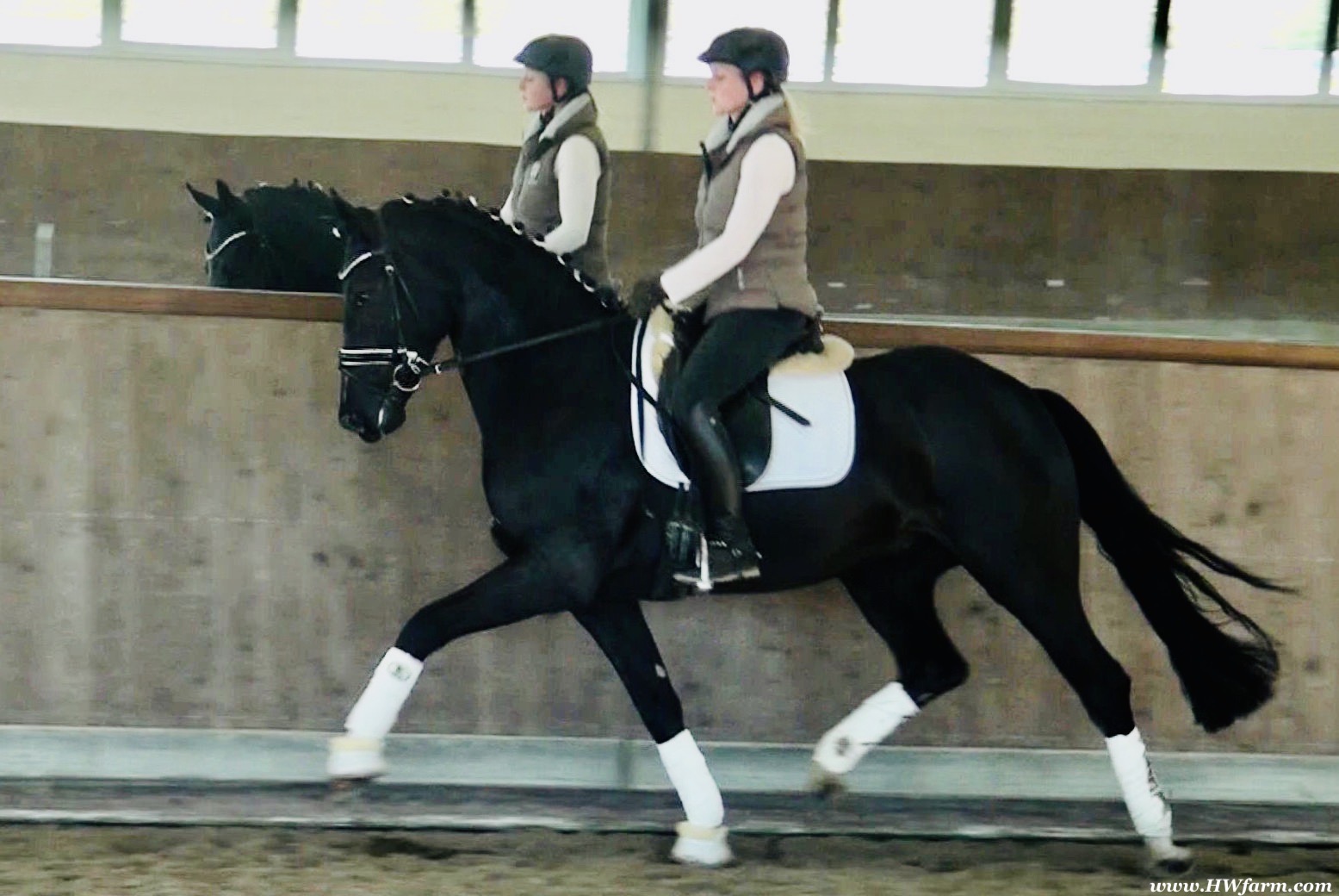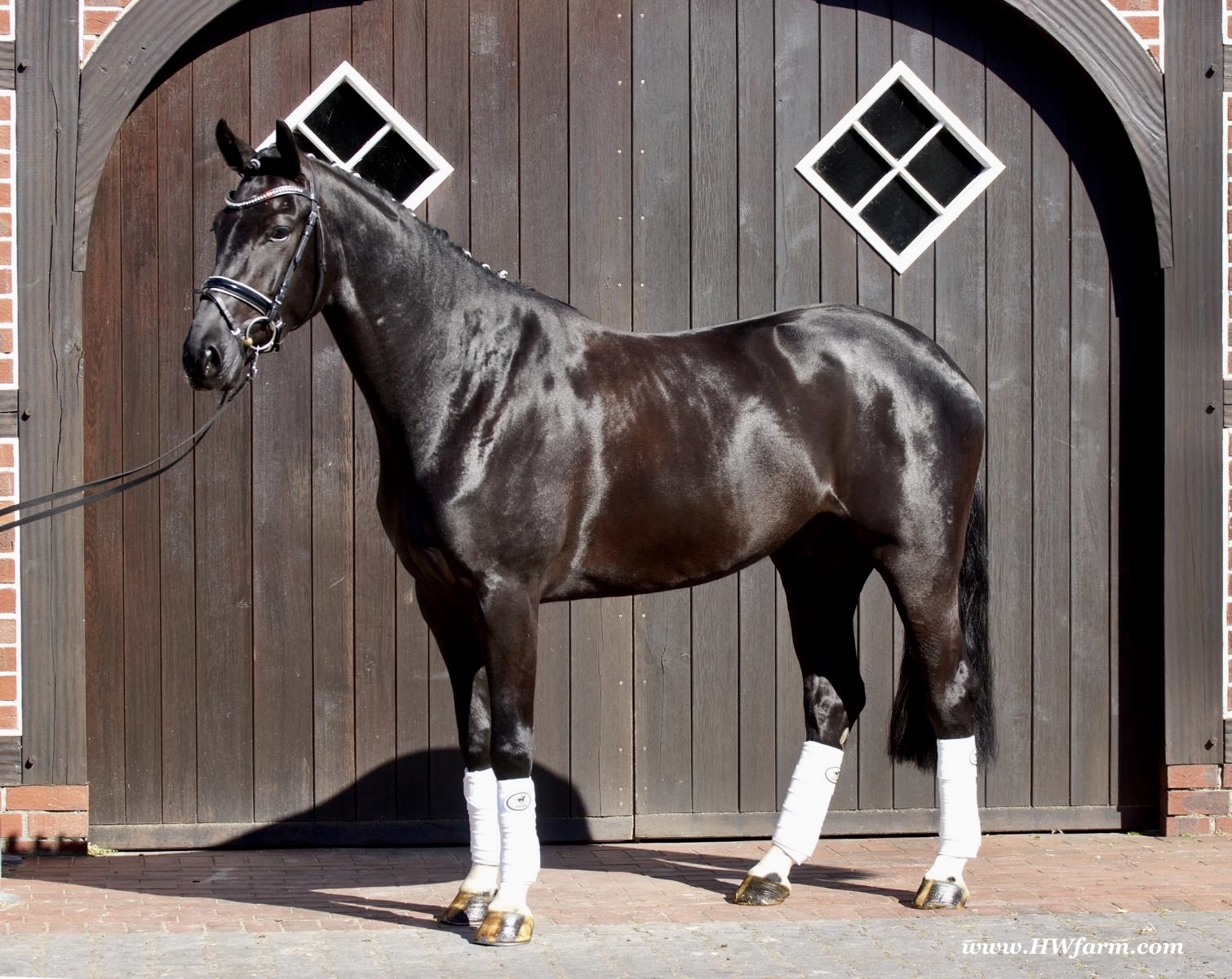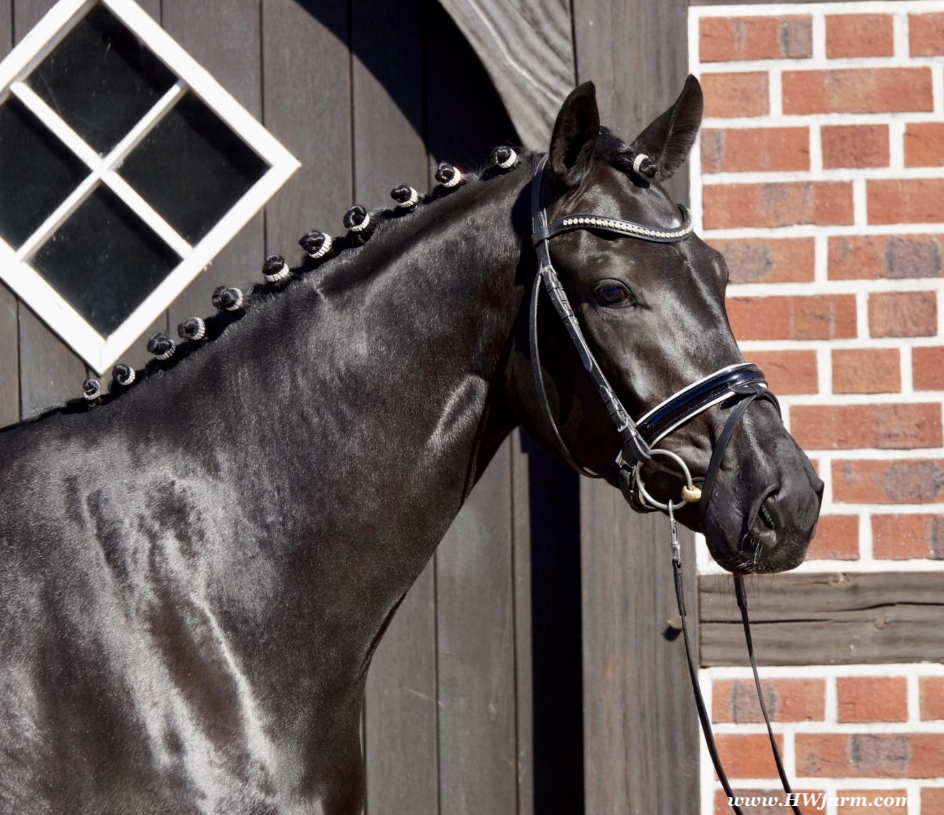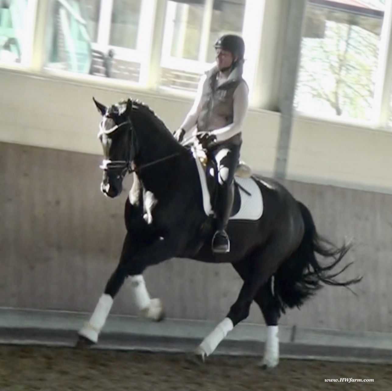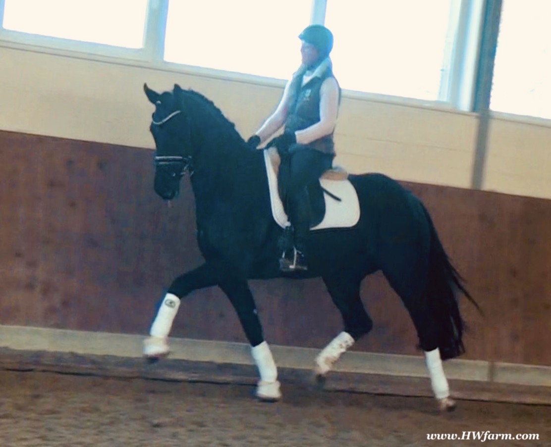 Dante HW, black Westphalian gelding by Dante Weltino/Don Lauredo, born in 2016, standing approximately 167 cm or 16.2 hands. Dante HW was sired by Dante Weltino. All of the characteristics that distinguish a top sire have been united in Dante Weltino. This fabulous mover, the 1st Reserve Champion of the 2009 Oldenburg licensing in Vechta, fulfilled his performance requirements in 2012 by winning the qualifier for the Bundeschampionate in the class for five-year old dressage horses with an outstanding score of 8.3. He then repeated this feat in 2013 by winning the Bremen qualifier for the six-year old dressage horses, but with an even better score of 8.6. Dante Weltino and his rider Therese Nilshagen helped the Swedish team take bronze at the 2017 European Championships in Göteburg and also placed fourth in the individual. In 2018, the duo placed 4th with the Sweidsh team and tenth in the individual at the World Championship in Tyron, USA. In 2019 they went on to help the Swedish Team win bronze at the FEI European Championship in Rotterdam. The Hanoverian Verband approved the sparkling black stallion for breeding in 2012. Since then Dante Weltino's first foals arrived, and everyone has been talking about them. A son named De Supreme won the 2nd Lodbergen Foal Championships and was the most expensive colt at the Vechta Elite Foal Auction. Dante Ferro, the 2011 Lodbergen Champion, was sold as the gavel was knocked-down in Vechta for 29,000 Euros. Another Dante Weltino son named Damenball was sold for 20,000 euros. In 2019 is daughter Atterupgaards Lady Hamilton was named Danish Warmblood Mare of the Year. His sire, Danone I, has won ribbons up to level Intermediate I. Four of his sons were licensed including the second most expensive premium stallion of the Hanoverian licensing who sold for 320,000 euros and the stallion performance test winner, Dankeschön. The dam's sire, Welt Hit II, was listed among the top ten in the 2011 WBFSH's list of the world's best dressage stallions. The granddam, Verb.Pr.St. Riconess, is the dam of the show jumping Bundeschampion and winner of the Badenia Prize, Lumos (by Lordanos) and the Olympic participant St.Pr.A. Riwera OLD (by Welt Hit II). The great granddam Ricarda is the dam of the Oldenburg Champion Mare, St.Pr./El.St. Riconda (by Contender). This is the successful line of Richilda. Dante HW's bloodlines go back to the big names, Danone, De Niro, as well as Donnerhall and Weltmeyer, so many to name, all the good old, strong competition lines, highly sought after in today's sport horses. Dante HW himself, is just like ordered: Amazing looks, movement, talent, he's the total package. He will catch your attention with his beauty and elegance. He is a true eye candy, smart and willing to please. He has three fantastic, rhythmic gaits, with stellar cadence. Dante HW is already working solid at 2nd level, with super steady, always uphill movement. This boy is super impresses with his stunning, free shoulder, sensational trot movement, uphill canter and swings always nicely through his body, with a soft back and an active hindleg. His walk is always rhythmic, no matter if collected or extended walk. Everybody will love this one, the judges and the audience alike will be excited to see him. Dante HW is willing to learn daily, very sweet and with his super work ethic and attitude, a horse that fascinates his rider as well as trainer, every day of the year. He is so much fun! This is a horse, with a very big heart. He's looking for his life partner to go out, have fun and compete. He's just a sweetheart. Dante HW is suitable for an amateur, young rider or professional alike to continue his training and go on from there. He gets along well with other horses, loves human attention, wants to be in your pockets all the time and thrives for his personal grooming time. Loads and bathes, goes in the hot walker and is pleasant all around as well as a super partner. He is ready to go to his new owner and impress with his looks and potential for the upper level. This boy will go his way up the levels with ease and fun, hopefully you will be the one guiding him there. Dante HW will enable you to fulfill your dreams with all his sensational abilities, he will collect all ribbons with ease, high point and more, here we come. The goal of HW Farm is, to offer highly talented young horses in Germany for riders in the USA and all over the world. This young star will go far in the dressage ring, he is your ticket to the top, as well as a superb Young Horse Candidate. X-rays on file! Please inquire for price, check out his video clip!!! Please contact Irene: Irene@HWfarm.com 239-772-7722 (ask for Irene, managing member of HorseSales LLC) We take pride in answering every e-mail right away (at least at the same day) and to return each call. If you don't get a reply - please try again, our spam filter might have gotten in the way?!