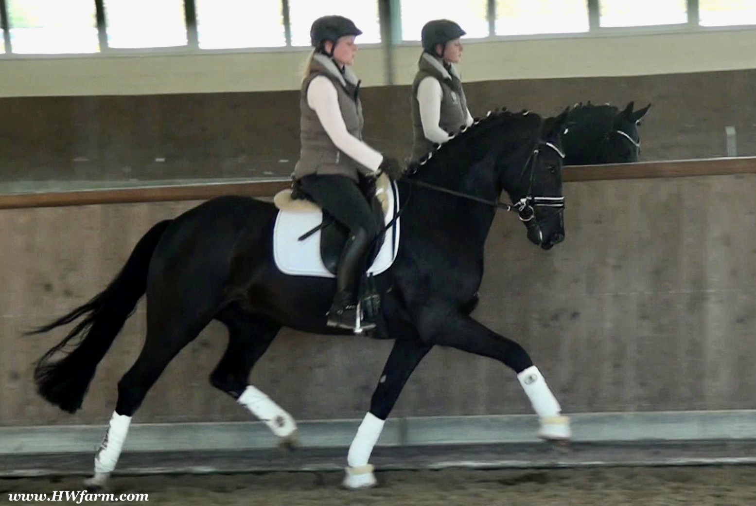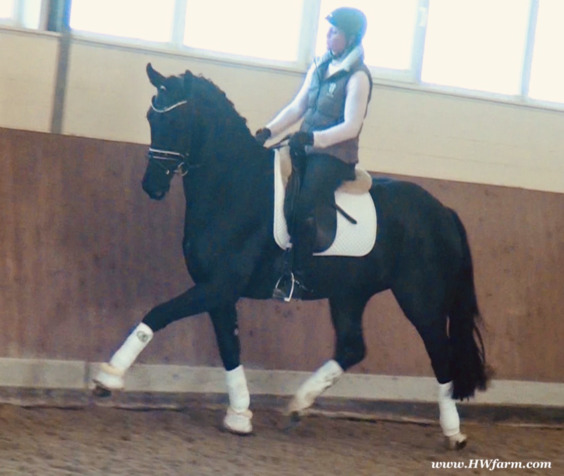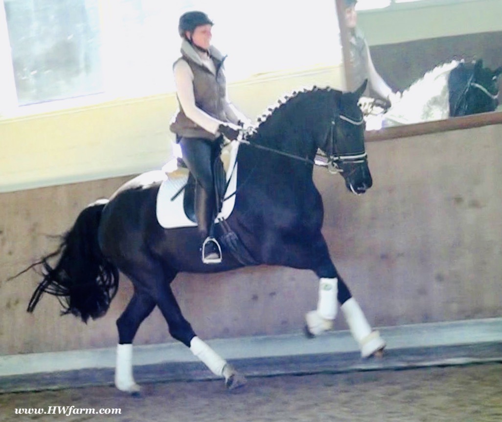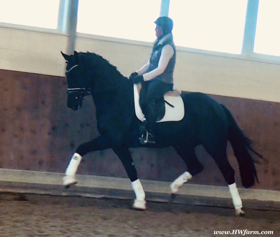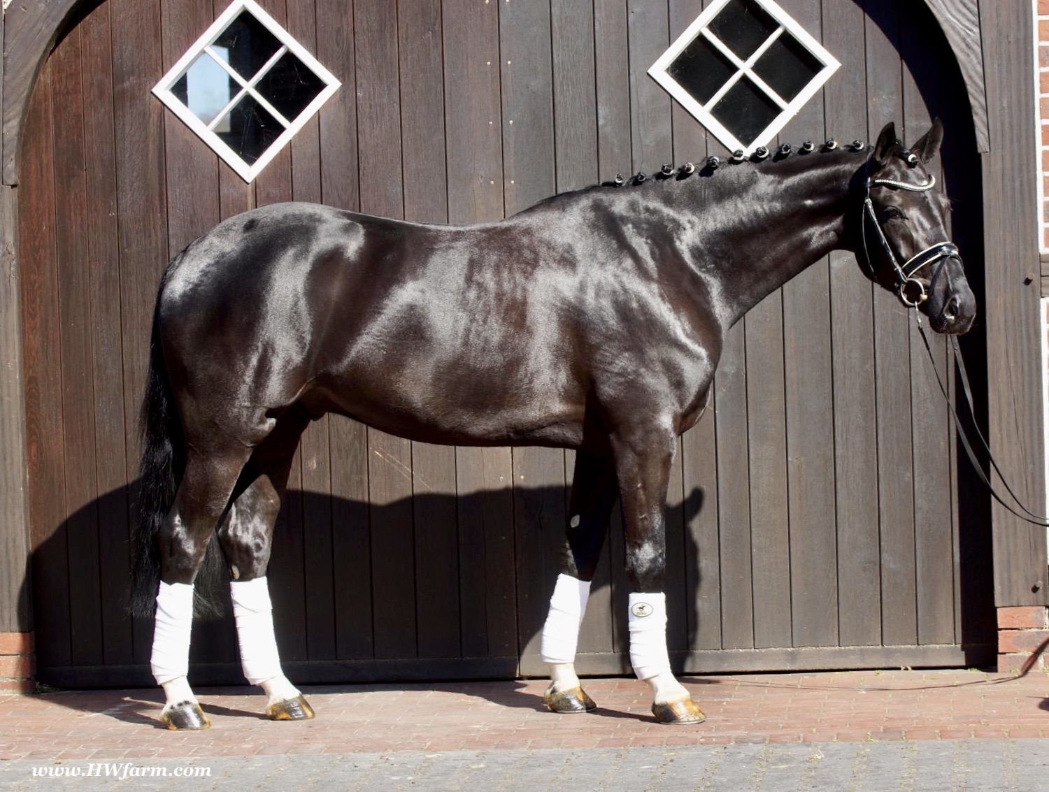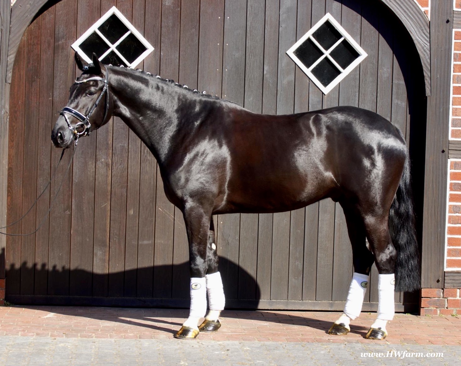 Dante HW, black Westphalian gelding by Dante Weltino/Don Lauredo, born in 2016, standing approximately 167 cm or 16.2 hands. Dante HW was sired by Dante Weltino. All of the characteristics that distinguish a top sire have been united in Dante Weltino. This fabulous mover, the 1st Reserve Champion of the 2009 Oldenburg licensing in Vechta, fulfilled his performance requirements in 2012 by winning the qualifier for the Bundeschampionate in the class for five-year old dressage horses with an outstanding score of 8.3. He then repeated this feat in 2013 by winning the Bremen qualifier for the six-year old dressage horses, but with an even better score of 8.6. Dante Weltino and his rider Therese Nilshagen helped the Swedish team take bronze at the 2017 European Championships in Göteburg and also placed fourth in the individual. In 2018, the duo placed 4th with the Sweidsh team and tenth in the individual at the World Championship in Tyron, USA. In 2019 they went on to help the Swedish Team win bronze at the FEI European Championship in Rotterdam. The Hanoverian Verband approved the sparkling black stallion for breeding in 2012. Since then Dante Weltino's first foals arrived, and everyone has been talking about them. A son named De Supreme won the 2nd Lodbergen Foal Championships and was the most expensive colt at the Vechta Elite Foal Auction. Dante Ferro, the 2011 Lodbergen Champion, was sold as the gavel was knocked-down in Vechta for 29,000 Euros. Another Dante Weltino son named Damenball was sold for 20,000 euros. In 2019 is daughter Atterupgaards Lady Hamilton was named Danish Warmblood Mare of the Year. His sire, Danone I, has won ribbons up to level Intermediate I. Four of his sons were licensed including the second most expensive premium stallion of the Hanoverian licensing who sold for 320,000 euros and the stallion performance test winner, Dankeschön. The dam's sire, Welt Hit II, was listed among the top ten in the 2011 WBFSH's list of the world's best dressage stallions. The granddam, Verb.Pr.St. Riconess, is the dam of the show jumping Bundeschampion and winner of the Badenia Prize, Lumos (by Lordanos) and the Olympic participant St.Pr.A. Riwera OLD (by Welt Hit II). The great granddam Ricarda is the dam of the Oldenburg Champion Mare, St.Pr./El.St. Riconda (by Contender). This is the successful line of Richilda. Dante HW's bloodlines go back to the big names, Danone, De Niro, as well as Donnerhall and Weltmeyer, so many to name, all the good old, strong competition lines, highly sought after in today's sport horses. Dante HW himself, is just like ordered: Amazing looks, movement, talent, he's the total package. He will catch your attention with his beauty and elegance. He is a true eye candy, smart and willing to please. He has three fantastic, rhythmic gaits, with stellar cadence. Dante HW is already working solid at 2nd level, with super steady, always uphill movement. This boy is super impresses with his stunning, free shoulder, sensational trot movement, uphill canter and swings always nicely through his body, with a soft back and an active hindleg. His walk is always rhythmic, no matter if collected or extended walk. Everybody will love this one, the judges and the audience alike will be excited to see him. Dante HW is willing to learn daily, very sweet and with his super work ethic and attitude, a horse that fascinates his rider as well as trainer, every day of the year. He is so much fun! This is a horse, with a very big heart. He's looking for his life partner to go out, have fun and compete. He's just a sweetheart. Dante HW is suitable for an amateur, young rider or professional alike to continue his training and go on from there. He gets along well with other horses, loves human attention, wants to be in your pockets all the time and thrives for his personal grooming time. Loads and bathes, goes in the hot walker and is pleasant all around as well as a super partner. He is ready to go to his new owner and impress with his looks and potential for the upper level. This boy will go his way up the levels with ease and fun, hopefully you will be the one guiding him there. Dante HW will enable you to fulfill your dreams with all his sensational abilities, he will collect all ribbons with ease, high point and more, here we come. The goal of HW Farm is, to offer highly talented young horses in Germany for riders in the USA and all over the world. This young star will go far in the dressage ring, he is your ticket to the top, as well as a superb Young Horse Candidate. X-rays on file! Please inquire for price, check out his video clip!!! Please contact Irene: Irene@HWfarm.com 239-772-7722 (ask for Irene, managing member of HorseSales LLC) We take pride in answering every e-mail right away (at least at the same day) and to return each call. If you don't get a reply - please try again, our spam filter might have gotten in the way?!