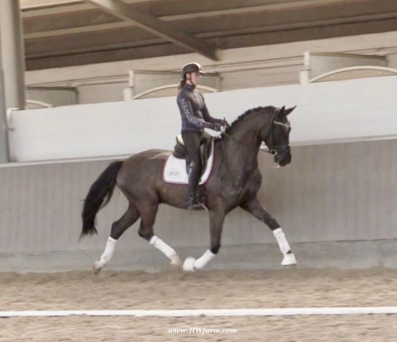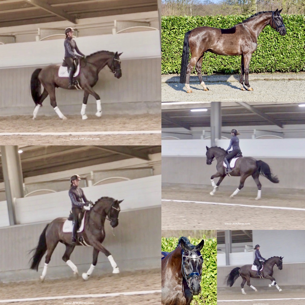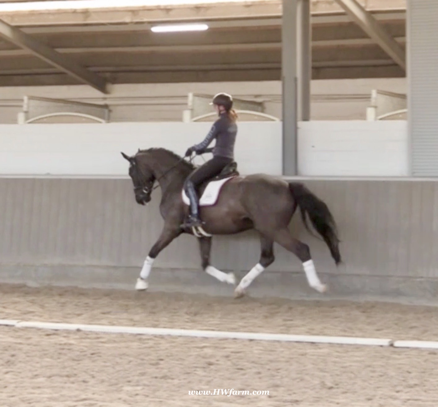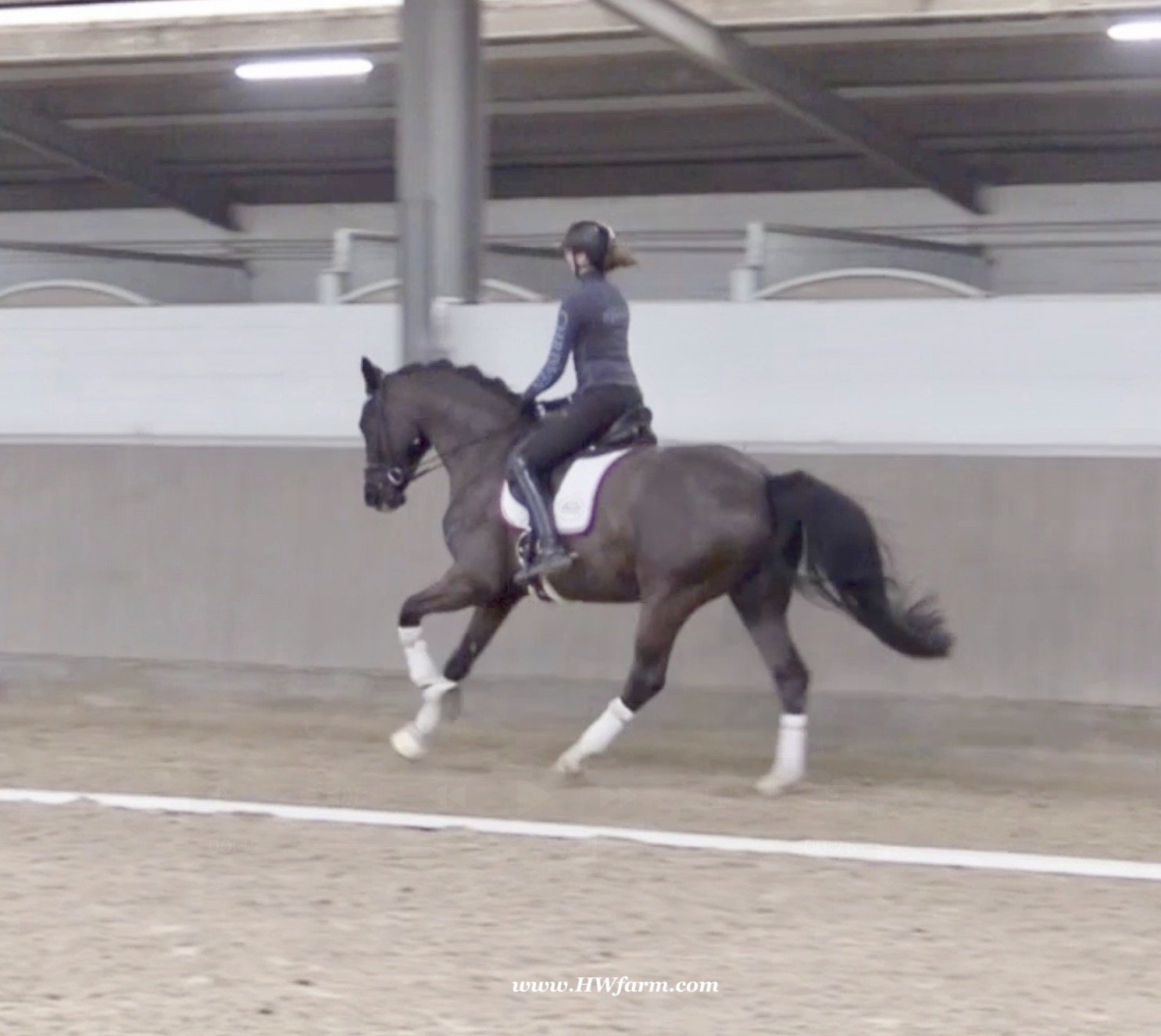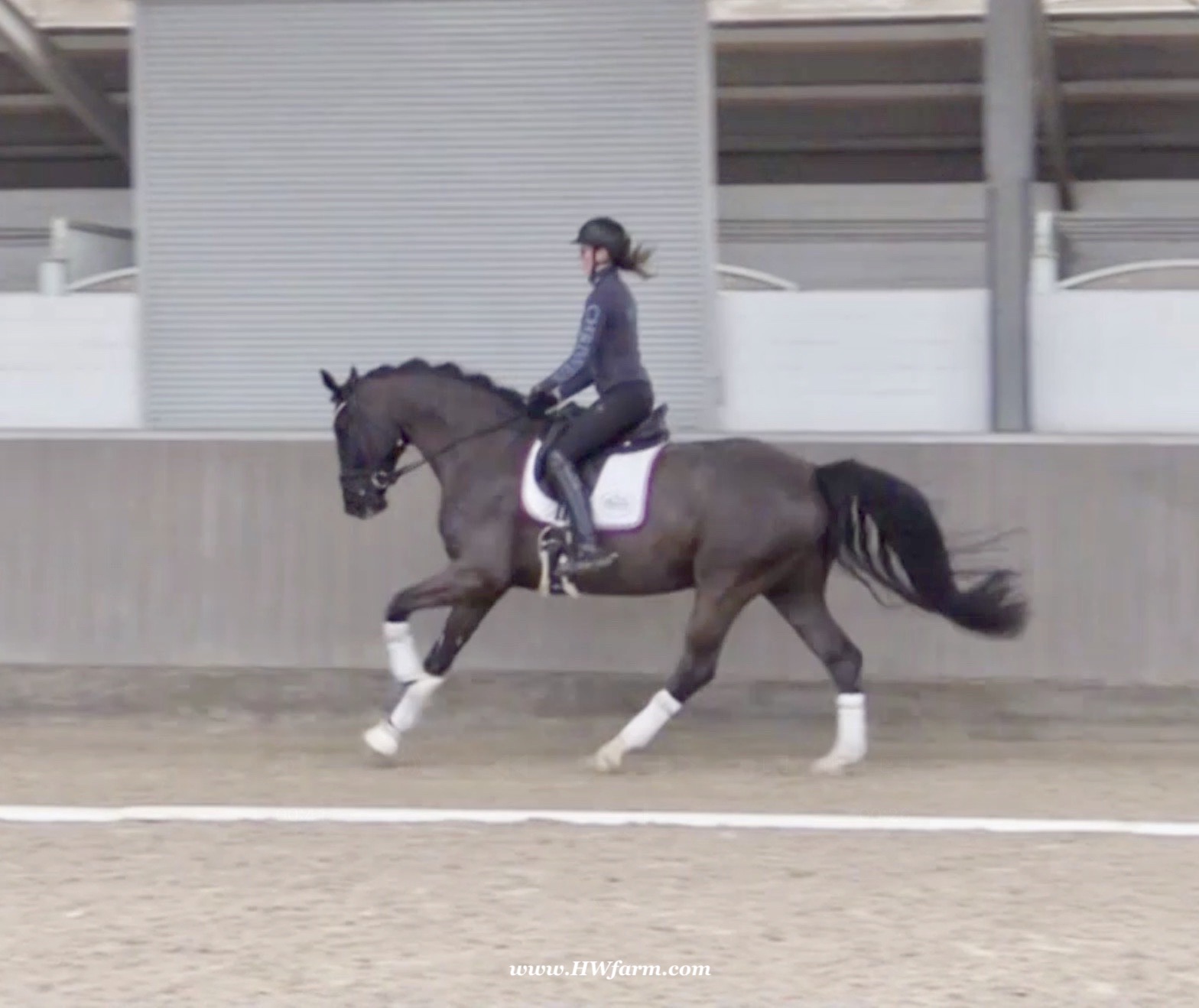 Dark Star HW, black Hanoverian gelding by Vice Bundeschampion Despacito/Hanoverian of the year Rotspon, born in 2021, standing approximately 170 cm or 16.2 hands. Dark Star HW, a clone to his sire and ancestors, in everything we could hope for. Despacito caught the interest of breeders very early on in his career with his stunning appearance and great pedigree. With the clear victory in the Hanoverian Championships in Verden with the dream grade 8.8 and the subsequent win of the silver medal at the Bundeschampionat in Warendorf, he put himself in the spotlight for breeders. As the son of the impressive Don Nobless, out of a dam by Sandro Hit-De Niro-Ehrentusch, his genetics leave nothing to be desired. His love for work and his extremely pleasant nature complete the picture of a stallion, who raises many expectations. This was also confirmed in his 50-day test, which he finished with a very good final score of 8.56. Don Nobless competed at the Bundeschampionat as a five-year-old, and he is now successful at international grand prix under Susan Pape; winning his first grand prix special in January 2017 and since picking up a host of placings at the level with scores over 70% and making his first Nations Cup appearance at the CHIO in Rotterdam. His grand-sire Dancier was champion of the 2004 Hanoverian Stallion Licensing in Verden and the 2005 stallion performance test in Adelheidsdorf; after his performance test, he sold for €330,000 to the state stud at Celle. As a young horse, he was reserve champion of the Hanoverian Young Horse Championships, and was third in the four-year-old Bundeschampionat final. Second dam Donja produced premium mares Selina and Donata, dam Selina is by the great stallion Sandro Hit who was Bundeschampion and World Champion as a six-year-old in 1999, dominating both competitions from start to finish. Sandro Hit's sons and grandsons pass on his excellent genes and their offspring include many top competition and breeding horses. One of the most outstanding examples is Sir Donnerhall, who also tops the FN breeding stallion rating. Sandro Hit's son San Amour won the Hauptprämie title by a wide margin, while his full sister, Victoria, won the Oldenburg Regional Championship. Dark Star HW's dam is by the very famous Rotspon. After years of producing quality offspring, in 2017 Rotspon was awarded 'Hanoverian Stallion of the Year' by the Hanoverian Verband in Verden, Germany. Rotspon is a top quality son of the dressage stallion Rubinstein I. He was the sovereign winner of the Hanoverian stallion performance test in 1998, scoring an excellent 148.82 points in the dressage category. Like his father, Rotspon is a very impressive horse with a great rideability, outstanding movements and a high ability for dressage. He also has a good jumping technique which is above average. He is an elegantly made sire in a noble black coat with a lot of expression and appearance. Rotspon's son, Rosevelt, competed for Team USA at the 2016 Rio Olympics. With his rider Allison Brock, Team USA won Bronze. Rosevelt also won the 2015 Grand Prix in Wellington, FL and did it again one month later at the Grand Prix CD13*. The first crop of offspring by Rotspon were born in the year 2000. The foals have beautiful heads and a good conformation (long sloping shoulder, long well set up neck). They are equipped with a very elastic trot and a ground covering walk, and have been very much in demand. In the 2015, according to the Hanoverian Stallion Book, Rotspon is credited with 888 competition progeny with winnings of €680,105 - 767 dressage placegetters with 80 progeny competing at S level. In the 2016 Hanoverian book, the progeny stands at 913, with winnings of €759,161. Although he has produced nine horses that have won more than €10,000 in the dressage ring, none are stars. His FN breeding value for dressage is 132, for jumping, 72. His Hanoverian values are 126 for dressage and 80 for jumping. He is the sire of 17 licensed sons including Rascalino and Royal Blend. Rotspon offspring qualify for the New England Dressage Association (NEDA) Foal Futurity. Dark Star HW always impresses with incredible beauty and movement. His stallion type (he is a gelding!!) will mesmerize everybody alike and he is dressed in a stunning black coat with just enough chrome. He looks like a clone to his sire, He was born to step in his father's footsteps. He is out of world-famous dressage lines and is equipped with absolutely phenomenal gaits und has many Champions on sire and dam site. Dark Star HW has super fancy, cat like/elastic, swinging movements and knows to get attention with rhythm, balance and always gives his best effort. This stunning horse has all, the looks and the personality a person could ever hope for. Super pretty head, perfect set on neck and superb conformation. His athleticism and gentleman like attitude, is nearly indescribable. This boy is so much fun to ride, with a soft mouth and lots of impulsion. He eagerly works under saddle. He is all concentrated on his job in the dressage arena and with his quick, far reaching hind leg, passage and piaffe will come naturally to him. Dark Star HW is incredible supple and has a ton of air time. He just floats above the ground. With his free shoulder and huge suspension, he swings nicely through his back and is easy to sit. This extremely talented gentleman has definite international potential. This young stunner will go far in the dressage ring, he is your ticket to the top! He was always handled and trained correctly, even as a young stallion in hand, to continue his career under saddle, comes naturally to him. With this horse, you will be the star in FEI classes and at clinics, the judges and onlookers will remember him where ever he goes. This is a stunning horse, that has it all and loves to give it all, used to go in the hot walker, loves his shower and solarium time. Stands for the farrier, loads and appreciates his personal grooming time. Th