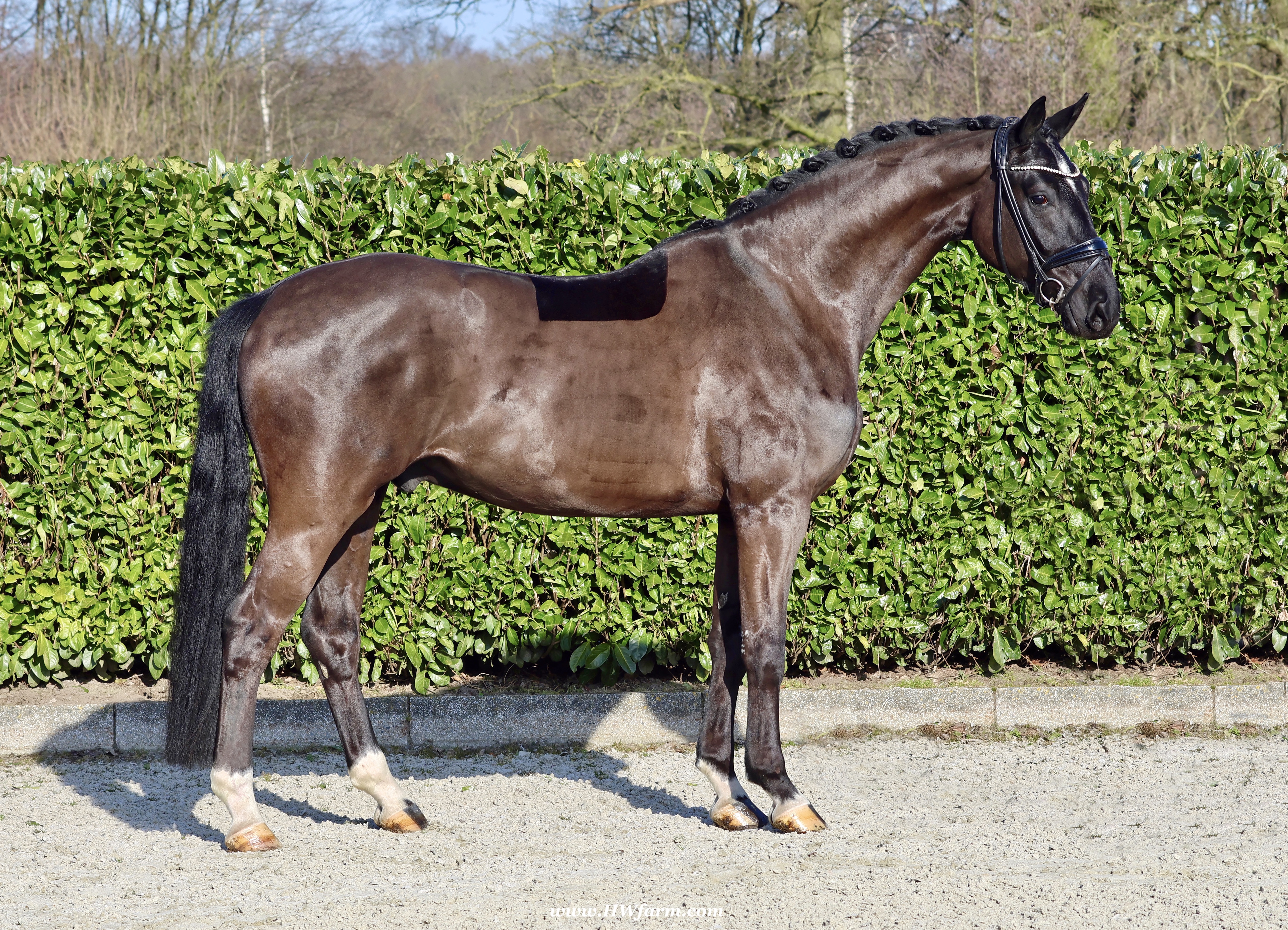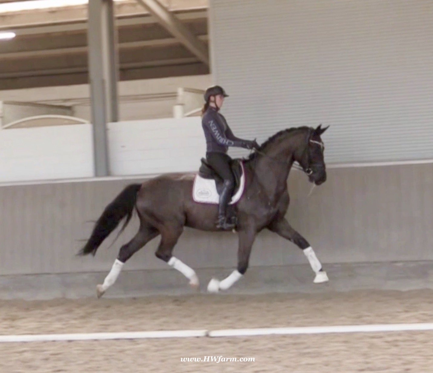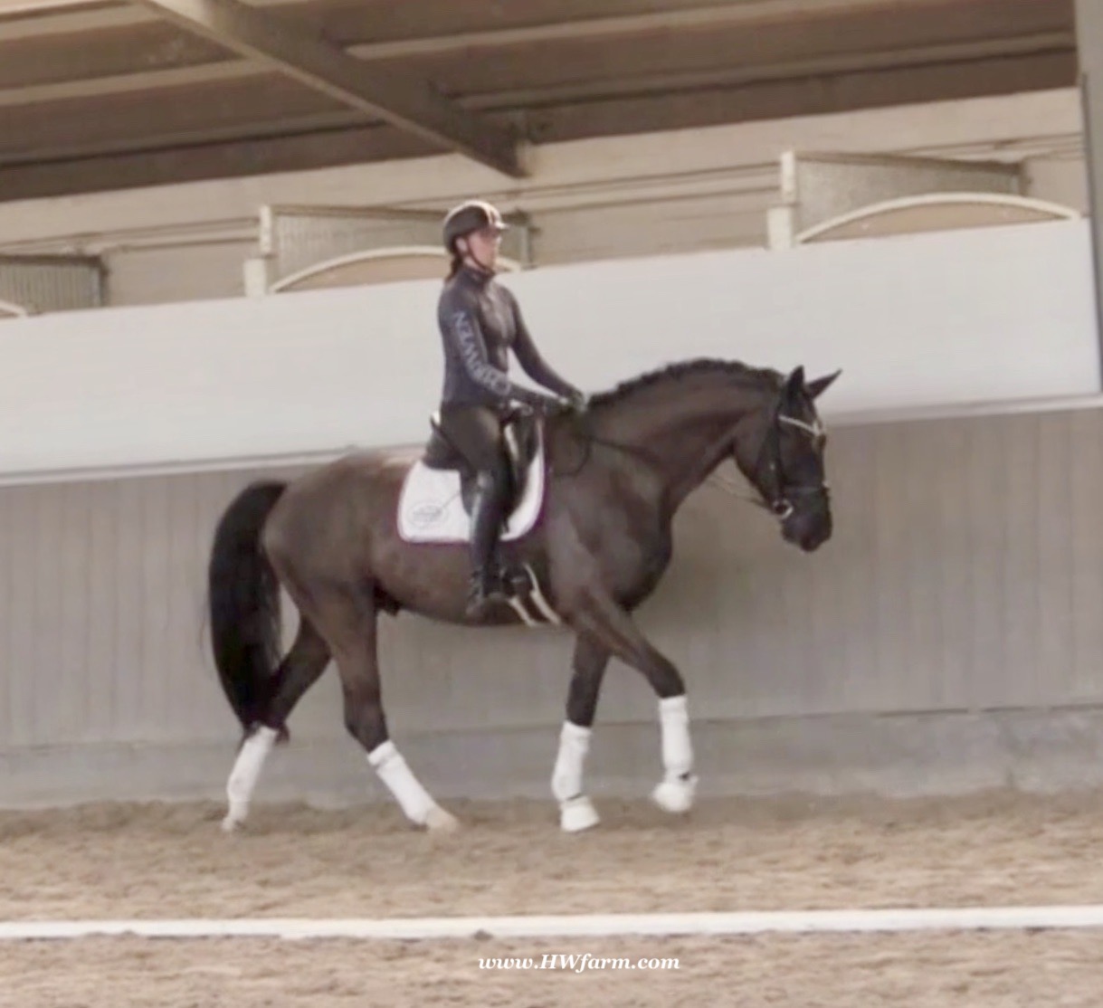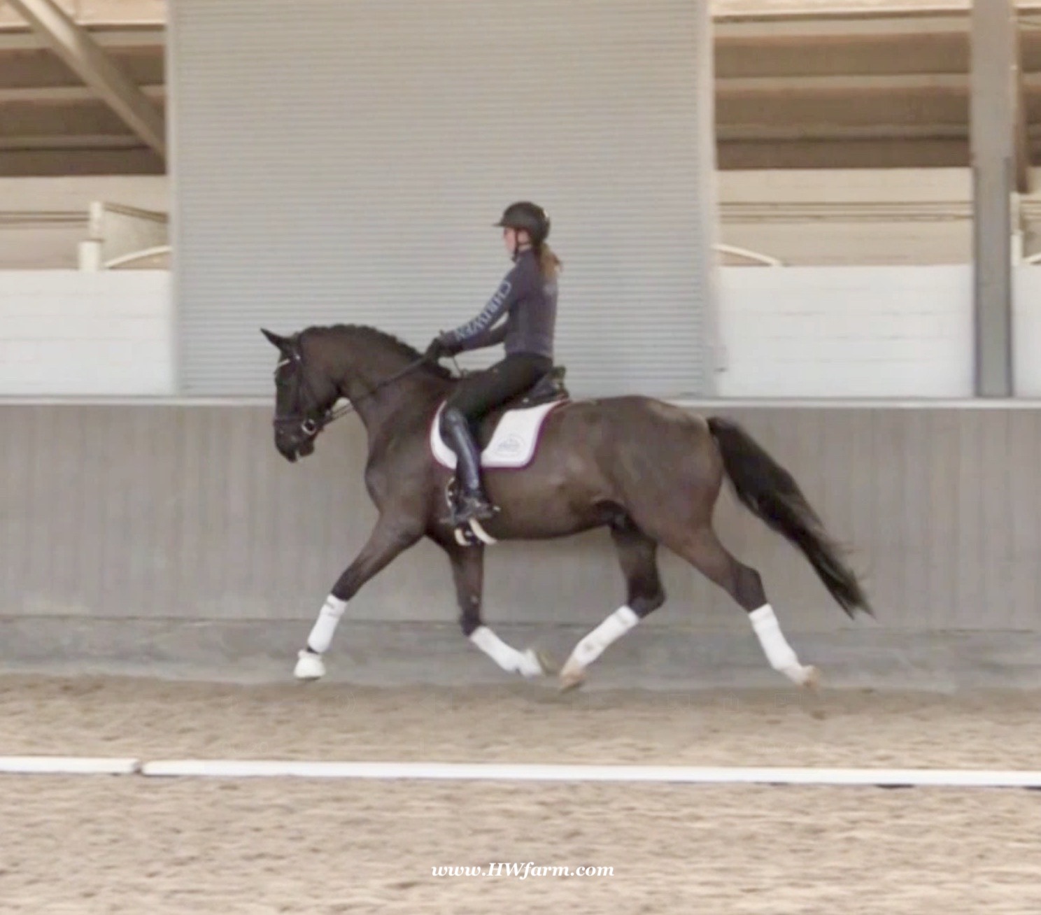Dark Star HW, black Hanoverian gelding by Vice Bundeschampion Despacito/Hanoverian of the year Rotspon, born in 2021, standing approximately 170 cm or 16.2 hands. Dark Star HW, a clone to his sire and ancestors, in everything we could hope for. Despacito caught the interest of breeders very early on in his career with his stunning appearance and great pedigree. With the clear victory in the Hanoverian Championships in Verden with the dream grade 8.8 and the subsequent win of the silver medal at the Bundeschampionat in Warendorf, he put himself in the spotlight for breeders. As the son of the impressive Don Nobless, out of a dam by Sandro Hit-De Niro-Ehrentusch, his genetics leave nothing to be desired. His love for work and his extremely pleasant nature complete the picture of a stallion, who raises many expectations. This was also confirmed in his 50-day test, which he finished with a very good final score of 8.56. Don Nobless competed at the Bundeschampionat as a five-year-old, and he is now successful at international grand prix under Susan Pape; winning his first grand prix special in January 2017 and since picking up a host of placings at the level with scores over 70% and making his first Nations Cup appearance at the CHIO in Rotterdam. His grand-sire Dancier was champion of the 2004 Hanoverian Stallion Licensing in Verden and the 2005 stallion performance test in Adelheidsdorf; after his performance test, he sold for €330,000 to the state stud at Celle. As a young horse, he was reserve champion of the Hanoverian Young Horse Championships, and was third in the four-year-old Bundeschampionat final. Second dam Donja produced premium mares Selina and Donata, dam Selina is by the great stallion Sandro Hit who was Bundeschampion and World Champion as a six-year-old in 1999, dominating both competitions from start to finish. Sandro Hit's sons and grandsons pass on his excellent genes and their offspring include many top competition and breeding horses. One of the most outstanding examples is Sir Donnerhall, who also tops the FN breeding stallion rating. Sandro Hit's son San Amour won the Hauptprämie title by a wide margin, while his full sister, Victoria, won the Oldenburg Regional Championship. Dark Star HW's dam is by the very famous Rotspon. After years of producing quality offspring, in 2017 Rotspon was awarded 'Hanoverian Stallion of the Year' by the Hanoverian Verband in Verden, Germany. Rotspon is a top quality son of the dressage stallion Rubinstein I. He was the sovereign winner of the Hanoverian stallion performance test in 1998, scoring an excellent 148.82 points in the dressage category. Like his father, Rotspon is a very impressive horse with a great rideability, outstanding movements and a high ability for dressage. He also has a good jumping technique which is above average. He is an elegantly made sire in a noble black coat with a lot of expression and appearance. Rotspon's son, Rosevelt, competed for Team USA at the 2016 Rio Olympics. With his rider Allison Brock, Team USA won Bronze. Rosevelt also won the 2015 Grand Prix in Wellington, FL and did it again one month later at the Grand Prix CD13*. The first crop of offspring by Rotspon were born in the year 2000. The foals have beautiful heads and a good conformation (long sloping shoulder, long well set up neck). They are equipped with a very elastic trot and a ground covering walk, and have been very much in demand. In the 2015, according to the Hanoverian Stallion Book, Rotspon is credited with 888 competition progeny with winnings of €680,105 - 767 dressage placegetters with 80 progeny competing at S level. In the 2016 Hanoverian book, the progeny stands at 913, with winnings of €759,161. Although he has produced nine horses that have won more than €10,000 in the dressage ring, none are stars. His FN breeding value for dressage is 132, for jumping, 72. His Hanoverian values are 126 for dressage and 80 for jumping. He is the sire of 17 licensed sons including Rascalino and Royal Blend. Rotspon offspring qualify for the New England Dressage Association (NEDA) Foal Futurity. Dark Star HW always impresses with incredible beauty and movement. His stallion type (he is a gelding!!) will mesmerize everybody alike and he is dressed in a stunning black coat with just enough chrome. He looks like a clone to his sire, He was born to step in his father's footsteps. He is out of world-famous dressage lines and is equipped with absolutely phenomenal gaits und has many Champions on sire and dam site. Dark Star HW has super fancy, cat like/elastic, swinging movements and knows to get attention with rhythm, balance and always gives his best effort. This stunning horse has all, the looks and the personality a person could ever hope for. Super pretty head, perfect set on neck and superb conformation. His athleticism and gentleman like attitude, is nearly indescribable. This boy is so much fun to ride, with a soft mouth and lots of impulsion. He eagerly works under saddle. He is all concentrated on his job in the dressage arena and with his quick, far reaching hind leg, passage and piaffe will come naturally to him. Dark Star HW is incredible supple and has a ton of air time. He just floats above the ground. With his free shoulder and huge suspension, he swings nicely through his back and is easy to sit. This extremely talented gentleman has definite international potential. This young stunner will go far in the dressage ring, he is your ticket to the top! He was always handled and trained correctly, even as a young stallion in hand, to continue his career under saddle, comes naturally to him. With this horse, you will be the star in FEI classes and at clinics, the judges and onlookers will remember him where ever he goes. This is a stunning horse, that has it all and loves to give it all, used to go in the hot walker, loves his shower and solarium time. Stands for the farrier, loads and appreciates his personal grooming time. Th