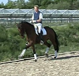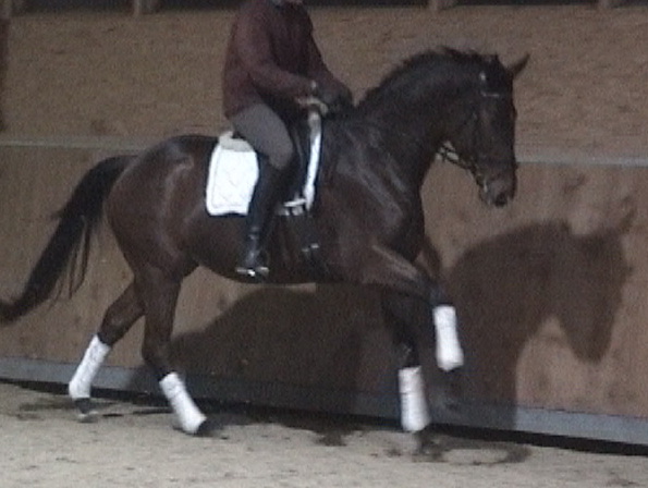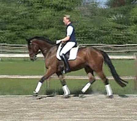 Donicello, bay Trakehner gelding by Sir Shosterkovich x Oglio xx/Habicht, born in 2000, standing 17.1 hands.