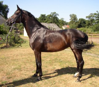 Donna Bella, dark bay, nearly black Hanoverian