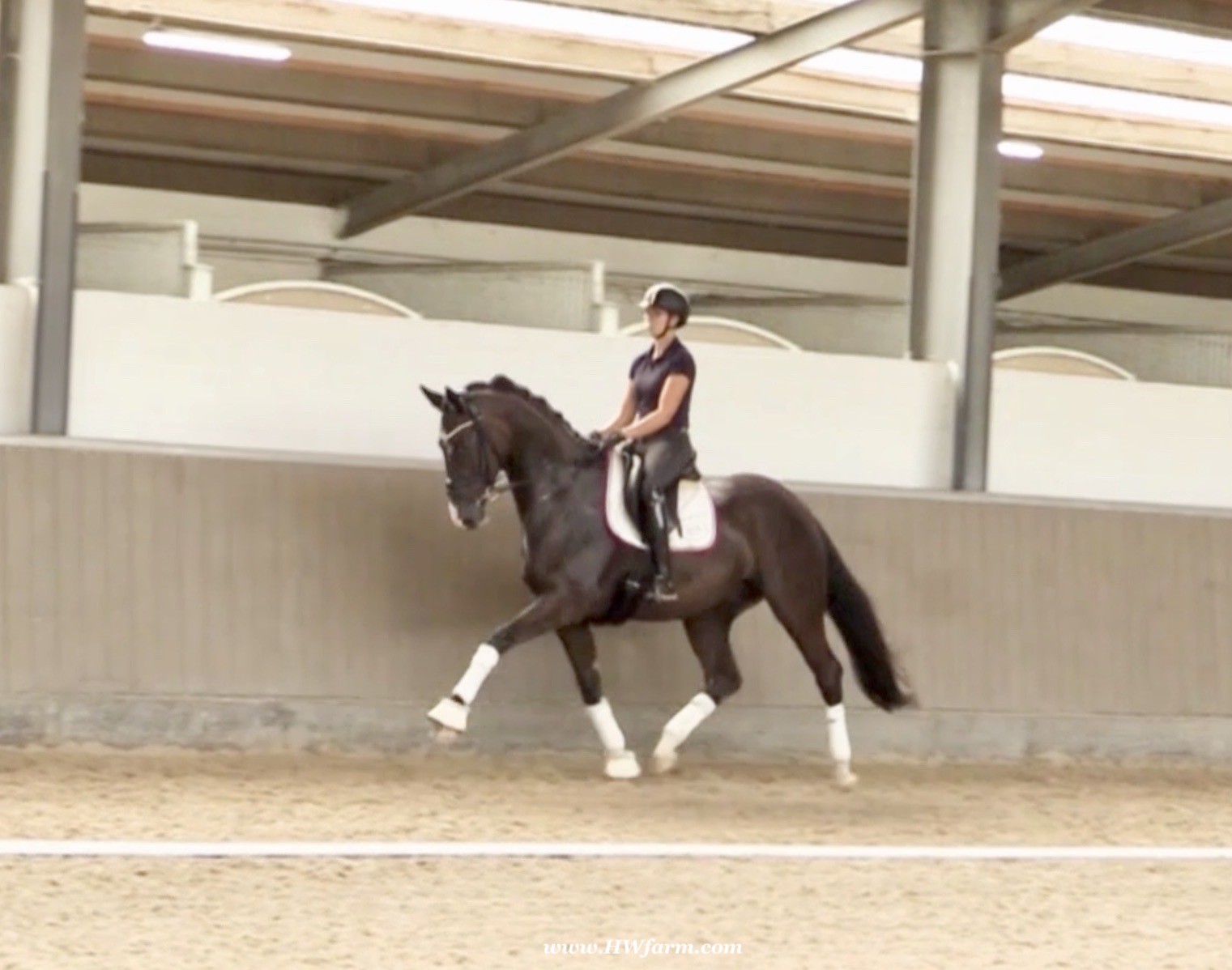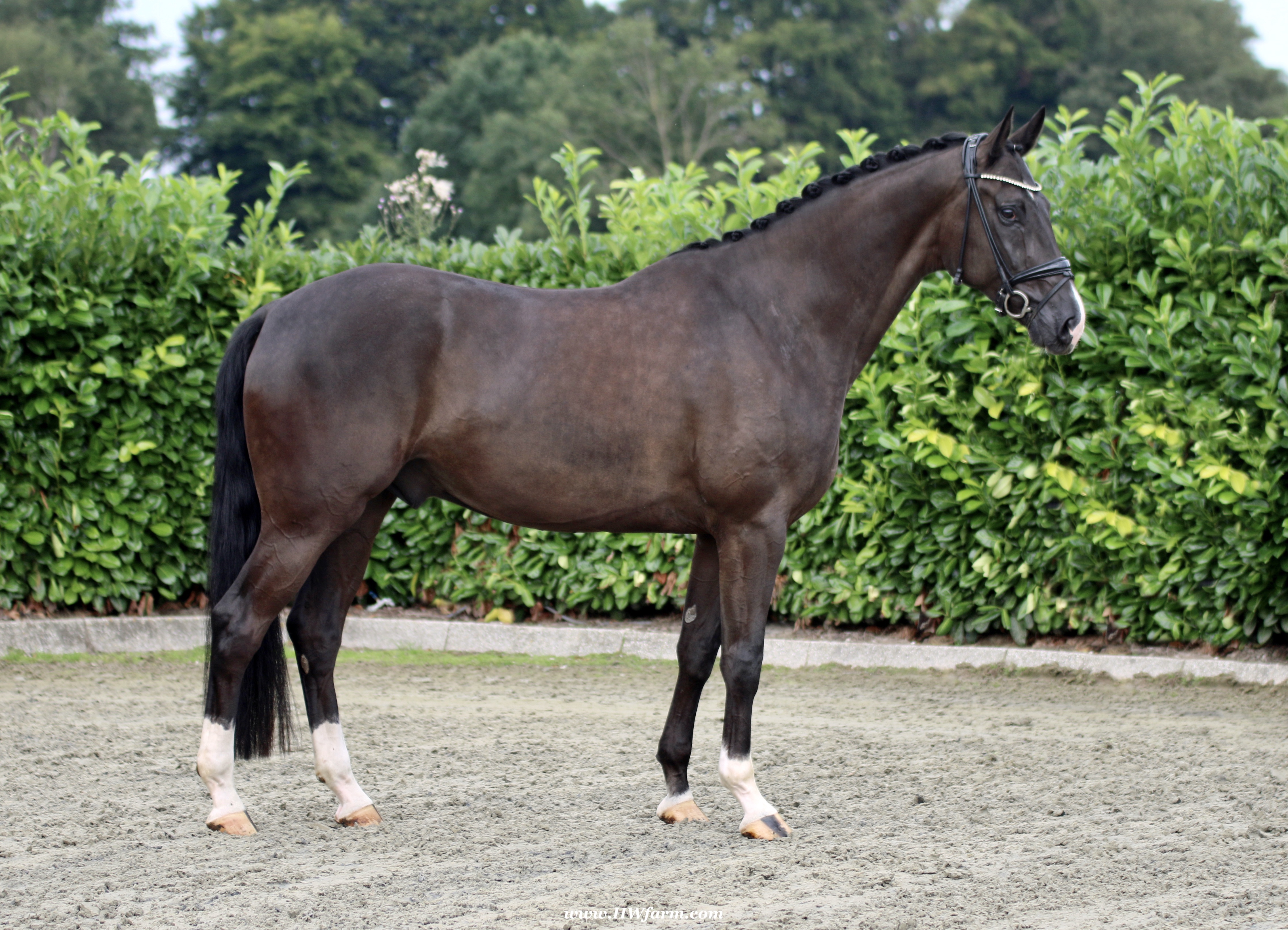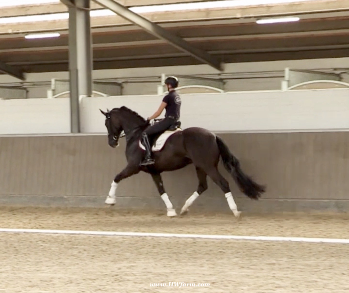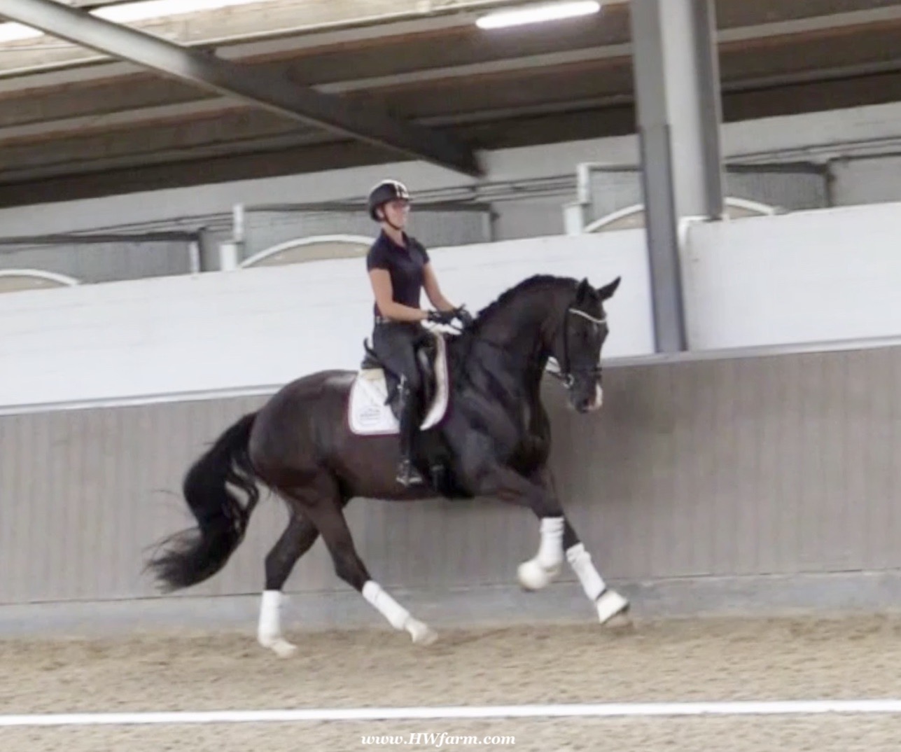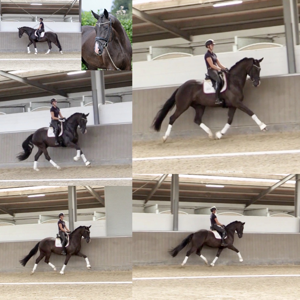 EscaVino HW, black Hanoverian gelding, by Vice World Champion Escamillo/Don Vino, born in 2019, standing approximately 176 cm or 17.1 hands. EscaVino HW is by Escamillo, the silver and bronze medallist at the World Championships for young dressage horses. "What an amazing performance," the judges praised Escamillo's performance in the World Championship final for seven-year-old dressage horses in their commentary, "we love this horse and see a very big future in him." Once again, Escamillo received dream scores at this prestigious meeting of the world's best young dressage horses. 9.5 for trot and perspective, 9.0 for walk and canter, 8.5 for submission - and a fantastic 91 percent and the bronze medal. The year before, Escamillo, ridden by the Spanish rider Manuel Dominguez Bernal, who rides for Helen Langehanenberg's yard, had already received scores of 9.0 and higher in the World Championship's arena, earning him the silver medal in the six-year-olds class. Breeding-wise Escamillo also puts one exclamation mark after the next behind his hereditary power. He has already produced over 30 licensed stallions, among them the Neustadt Champion Stallion Element of Crime, the Hanoverian Premium Stallion and 700,000-euro Stallion Market top price Energy, the Westphalian Reserve Champion Stallions Escaneno, Espléndido MT and Excalibur as well as our stallions Escanto PS, two-time stallion performance test record winner, Expectation PS and Escamour, the stallion performance test winner Eleven HW and the bronze medallist of the Hanoverian Champion-ships, Estupendo. The German and Westphalian Champion Eivissa ridden by Jessica Lynn Thomas/SWE stands out amongst his first sport offspring. She received a 10 for both trot and canter and a 9.5 for rideability and conformation in Warendorf. Embolo, third in the "Westfalen-Wappen" class at the "Turnier der Sieger", achieved the sensational knockdown price of 590,000 euros, the highest price ever achieved by a riding horse at a Westphalian auction. Eyecatcher W won the Austrian Warmblood Championships for three-year-olds in Stadl-Paura/AUT. Escamillo's daughter, Exclusive, won the Herwart van der Decken Show in Verden. Escamillo began his career as premium stallion at his licensing in 2017 in Verden, passed his 14-day test in 2018 with a dressage score of 9.08 and completed his sport test in 2020 with Helen Langehanenberg with a winning score of 9.36. Ridden by the Olympic team silver medallist, he also qualified for the German Championships for young dressage horses as a five-year-old with 9.5. In 2021, with Manuel Dominguez Bernal, he won the intermediate (M) level dres-sage test for young horses in Haftenkamp with a score of 8.8 (also qualifier for the German Championships for six-year-olds). The same year, Escamillo was awarded the Weltmeyer Prize by the Hanoverian Association. His sire, the Westphalian and double German Champion Escolar, was placed in the final of the Burg Cup, the final of the Louisdor Prize and at the German Championships with the Olympic Champion and riding master Hubertus Schmidt/GER. They were part of the German Olympic squad. His dam Verb.Pr.St. Cassila is the full sister of the li-censed stallions Romanist (advanced S* level dressage) and Romeo Niro (intermediate M** level dressage). His grand-sire Rohdiamant was German Champion in 1993 and competed at Grand Prix level with Lisa Wilcox/USA. Around 50 of his sons have been licensed. His most successful offspring include Valentina Truppa's/ITA Olympic partner Eremo del Castegno and Helen Langehanenberg's Responsible OLD. His grand-dam Chantal is the full sister of Dumont/Juliane Brunkhorst/GER and Hartwig Burfeind/GER, licensed stallion and successful in Grand Prix, and her half brother Aquavit (by Argentinus) is successful in competitions for young show jumping horses. De Niro, Landadel and Zeus also appear in the pedigree. His great-grand-dam St.Pr./El.St. Caruge is the full sister of the licensed stallion Laphroaig/Leporello and produced several state premium mares. Her full sister is no other than the German Champion Mare St.Pr./El.St. C-Dur, who produced four licensed stallions. Line of El.St. Cinderella, from which descend the five German Champion full siblings Sir Heinrich OLD, Cindy OLD, Candy OLD, Caty OLD and Casey OLD (all by Sir Donnerhall I), the Grand Prix dressage horse Radondo (by Romanov)/Ashley Holzer/USA, as well as the stallions Zymbal I and II (both by Zeus), First Class I and II (both by Furioso II), Sesostris (by Silvio I), Rubino Rosso (by Rubinstein), Castus I and II (both by Classiker), Stiefelkönig (by Silvano), Grand Marnier (by Galoubet A), Pharaoh (by Parabol), RTL (by Rubinstein), Routinier (by Rohdiamant), Solo Hit (by Sandro Hit), Get Smart (by Granulit), Fortune Hunter (by First Class I), Casanova (by Castro) and Si bon (by Sir Donnerhall I). Closely related to the famous Wendel's German Champion quintet. EscaVino HW's dam sire is Don Vino is a big-shaped and correct riding horse type, with good frame and height. His sire and dam passed on their outstanding dressage qualities to this young stallion, and thus the high expectations were fully met in all respects of this sire during the stallion performance test where he achieved above average marks for all phases of the dressage test. This surely suggests a high rate of pre-potency in Don Vino for dressage. At his performance test Don Vino scored 8 for character, 8 for temperament, 8 for trainability, 8 for conformation, 6.22 for jumping, 8 for rideability, 7.5 for walk, 7.33 for trot, and 7.16 for canter. He is a no-ble stallion with three very good basic gaits. In 2002 Don Vino presented an excellent premiere of foals, from which several foals were admitted to the Hanoverian foal auctions. Two of his offspring are successfully competing at advanced level and his son Dandolo presented captivating performances in the dressage arena at the Warendorf Federal Championships. He has 4 licensed sons,