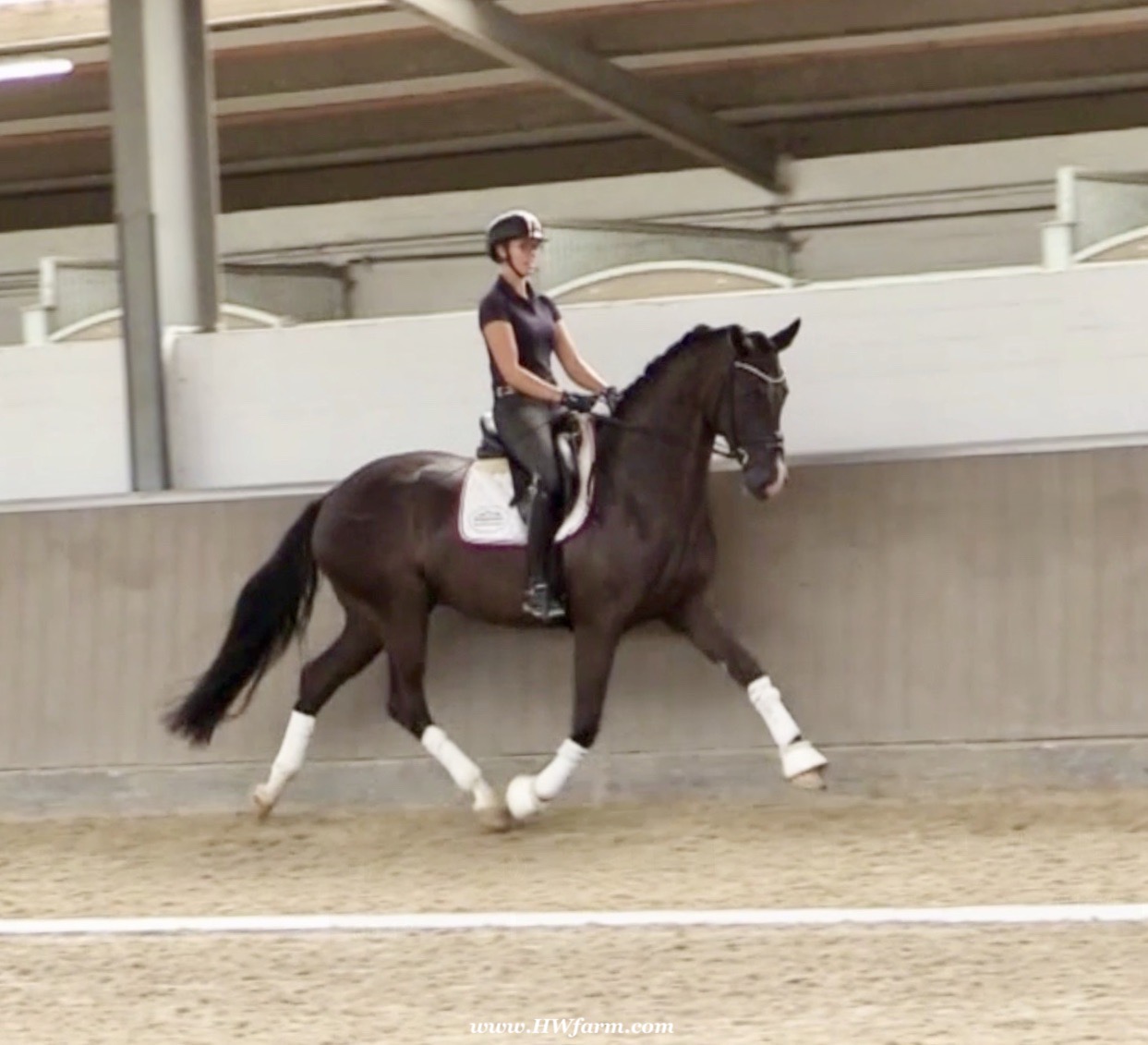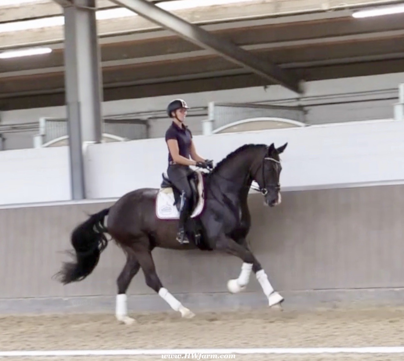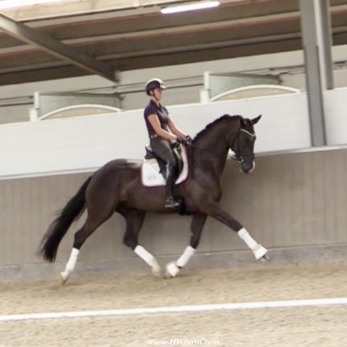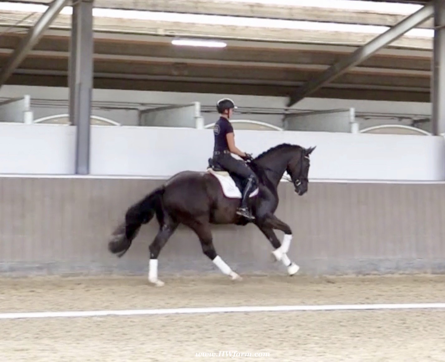 EscaVino HW, black Hanoverian gelding, by Vice World Champion Escamillo/Don Vino, born in 2019, standing approximately 176 cm or 17.1 hands. EscaVino HW is by Escamillo, the silver and bronze medallist at the World Championships for young dressage horses. "What an amazing performance," the judges praised Escamillo's performance in the World Championship final for seven-year-old dressage horses in their commentary, "we love this horse and see a very big future in him." Once again, Escamillo received dream scores at this prestigious meeting of the world's best young dressage horses. 9.5 for trot and perspective, 9.0 for walk and canter, 8.5 for submission - and a fantastic 91 percent and the bronze medal. The year before, Escamillo, ridden by the Spanish rider Manuel Dominguez Bernal, who rides for Helen Langehanenberg's yard, had already received scores of 9.0 and higher in the World Championship's arena, earning him the silver medal in the six-year-olds class. Breeding-wise Escamillo also puts one exclamation mark after the next behind his hereditary power. He has already produced over 30 licensed stallions, among them the Neustadt Champion Stallion Element of Crime, the Hanoverian Premium Stallion and 700,000-euro Stallion Market top price Energy, the Westphalian Reserve Champion Stallions Escaneno, Espléndido MT and Excalibur as well as our stallions Escanto PS, two-time stallion performance test record winner, Expectation PS and Escamour, the stallion performance test winner Eleven HW and the bronze medallist of the Hanoverian Champion-ships, Estupendo. The German and Westphalian Champion Eivissa ridden by Jessica Lynn Thomas/SWE stands out amongst his first sport offspring. She received a 10 for both trot and canter and a 9.5 for rideability and conformation in Warendorf. Embolo, third in the "Westfalen-Wappen" class at the "Turnier der Sieger", achieved the sensational knockdown price of 590,000 euros, the highest price ever achieved by a riding horse at a Westphalian auction. Eyecatcher W won the Austrian Warmblood Championships for three-year-olds in Stadl-Paura/AUT. Escamillo's daughter, Exclusive, won the Herwart van der Decken Show in Verden. Escamillo began his career as premium stallion at his licensing in 2017 in Verden, passed his 14-day test in 2018 with a dressage score of 9.08 and completed his sport test in 2020 with Helen Langehanenberg with a winning score of 9.36. Ridden by the Olympic team silver medallist, he also qualified for the German Championships for young dressage horses as a five-year-old with 9.5. In 2021, with Manuel Dominguez Bernal, he won the intermediate (M) level dres-sage test for young horses in Haftenkamp with a score of 8.8 (also qualifier for the German Championships for six-year-olds). The same year, Escamillo was awarded the Weltmeyer Prize by the Hanoverian Association. His sire, the Westphalian and double German Champion Escolar, was placed in the final of the Burg Cup, the final of the Louisdor Prize and at the German Championships with the Olympic Champion and riding master Hubertus Schmidt/GER. They were part of the German Olympic squad. His dam Verb.Pr.St. Cassila is the full sister of the li-censed stallions Romanist (advanced S* level dressage) and Romeo Niro (intermediate M** level dressage). His grand-sire Rohdiamant was German Champion in 1993 and competed at Grand Prix level with Lisa Wilcox/USA. Around 50 of his sons have been licensed. His most successful offspring include Valentina Truppa's/ITA Olympic partner Eremo del Castegno and Helen Langehanenberg's Responsible OLD. His grand-dam Chantal is the full sister of Dumont/Juliane Brunkhorst/GER and Hartwig Burfeind/GER, licensed stallion and successful in Grand Prix, and her half brother Aquavit (by Argentinus) is successful in competitions for young show jumping horses. De Niro, Landadel and Zeus also appear in the pedigree. His great-grand-dam St.Pr./El.St. Caruge is the full sister of the licensed stallion Laphroaig/Leporello and produced several state premium mares. Her full sister is no other than the German Champion Mare St.Pr./El.St. C-Dur, who produced four licensed stallions. Line of El.St. Cinderella, from which descend the five German Champion full siblings Sir Heinrich OLD, Cindy OLD, Candy OLD, Caty OLD and Casey OLD (all by Sir Donnerhall I), the Grand Prix dressage horse Radondo (by Romanov)/Ashley Holzer/USA, as well as the stallions Zymbal I and II (both by Zeus), First Class I and II (both by Furioso II), Sesostris (by Silvio I), Rubino Rosso (by Rubinstein), Castus I and II (both by Classiker), Stiefelkönig (by Silvano), Grand Marnier (by Galoubet A), Pharaoh (by Parabol), RTL (by Rubinstein), Routinier (by Rohdiamant), Solo Hit (by Sandro Hit), Get Smart (by Granulit), Fortune Hunter (by First Class I), Casanova (by Castro) and Si bon (by Sir Donnerhall I). Closely related to the famous Wendel's German Champion quintet. EscaVino HW's dam sire is Don Vino is a big-shaped and correct riding horse type, with good frame and height. His sire and dam passed on their outstanding dressage qualities to this young stallion, and thus the high expectations were fully met in all respects of this sire during the stallion performance test where he achieved above average marks for all phases of the dressage test. This surely suggests a high rate of pre-potency in Don Vino for dressage. At his performance test Don Vino scored 8 for character, 8 for temperament, 8 for trainability, 8 for conformation, 6.22 for jumping, 8 for rideability, 7.5 for walk, 7.33 for trot, and 7.16 for canter. He is a no-ble stallion with three very good basic gaits. In 2002 Don Vino presented an excellent premiere of foals, from which several foals were admitted to the Hanoverian foal auctions. Two of his offspring are successfully competing at advanced level and his son Dandolo presented captivating performances in the dressage arena at the Warendorf Federal Championships. He has 4 licensed sons,