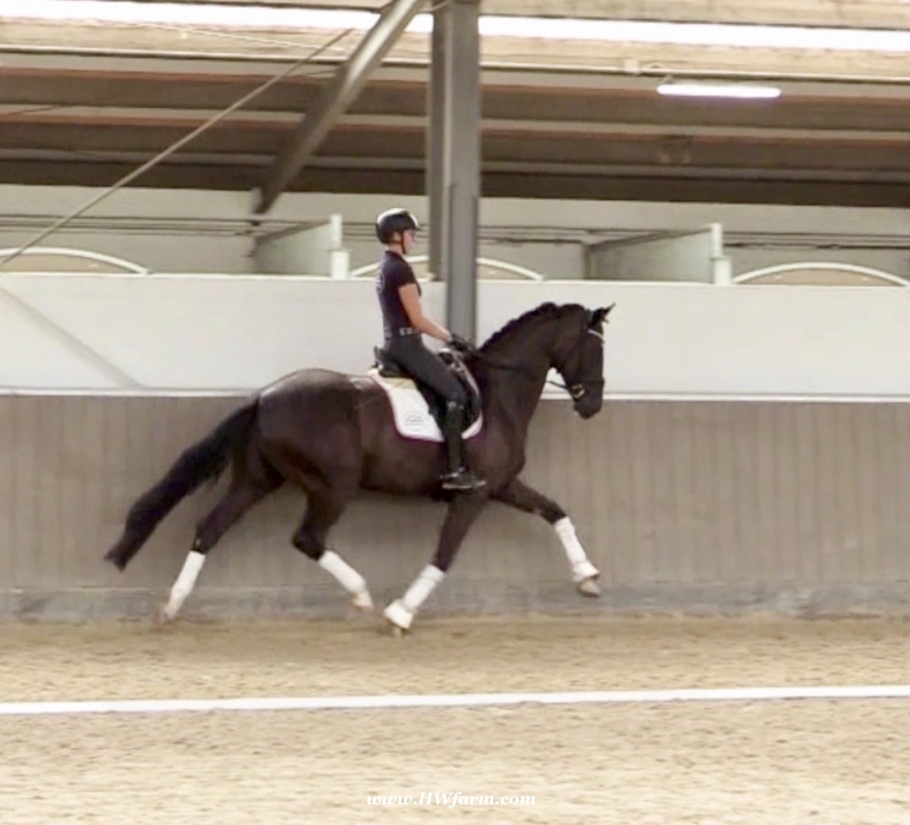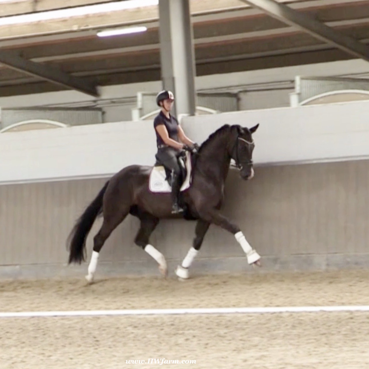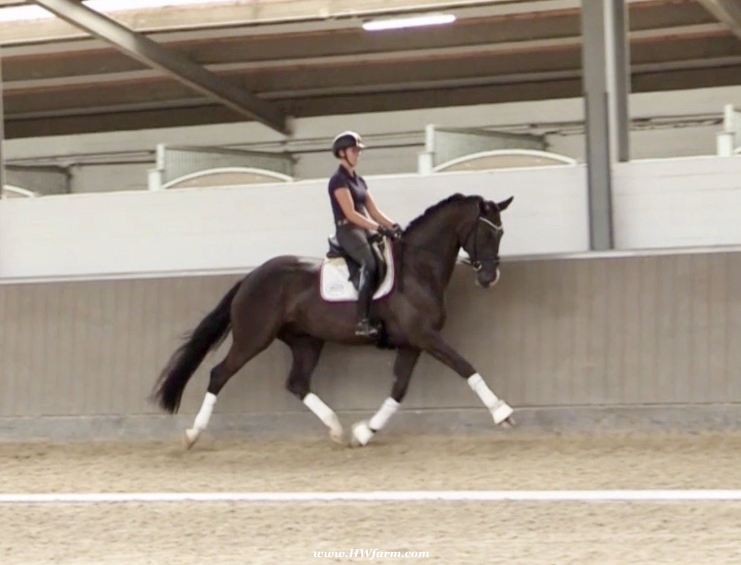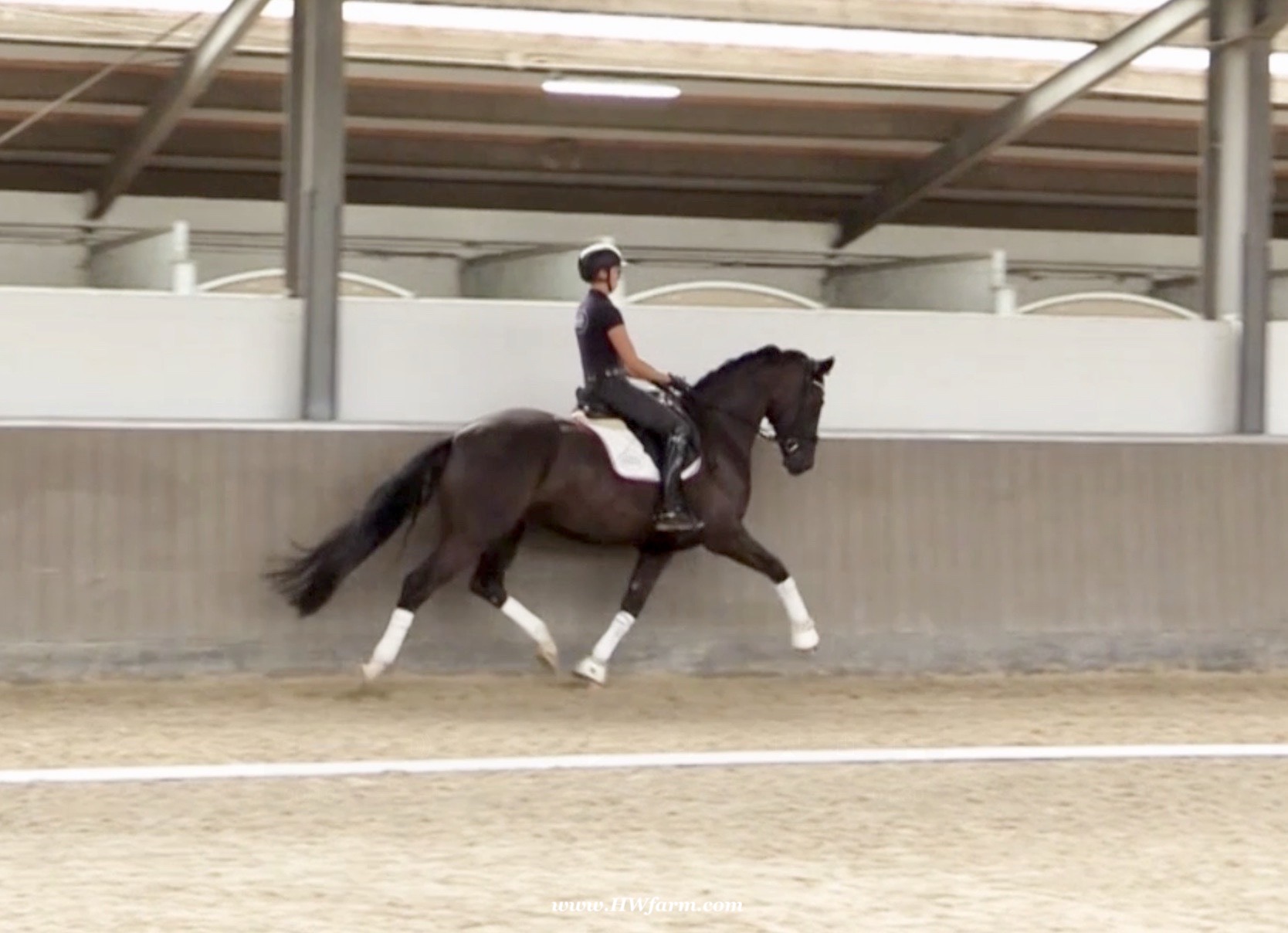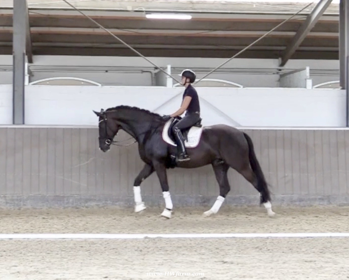 EscaVino HW, black Hanoverian gelding, by Vice World Champion Escamillo/Don Vino, born in 2019, standing approximately 176 cm or 17.1 hands. EscaVino HW is by Escamillo, the silver and bronze medallist at the World Championships for young dressage horses. "What an amazing performance," the judges praised Escamillo's performance in the World Championship final for seven-year-old dressage horses in their commentary, "we love this horse and see a very big future in him." Once again, Escamillo received dream scores at this prestigious meeting of the world's best young dressage horses. 9.5 for trot and perspective, 9.0 for walk and canter, 8.5 for submission - and a fantastic 91 percent and the bronze medal. The year before, Escamillo, ridden by the Spanish rider Manuel Dominguez Bernal, who rides for Helen Langehanenberg's yard, had already received scores of 9.0 and higher in the World Championship's arena, earning him the silver medal in the six-year-olds class. Breeding-wise Escamillo also puts one exclamation mark after the next behind his hereditary power. He has already produced over 30 licensed stallions, among them the Neustadt Champion Stallion Element of Crime, the Hanoverian Premium Stallion and 700,000-euro Stallion Market top price Energy, the Westphalian Reserve Champion Stallions Escaneno, Espléndido MT and Excalibur as well as our stallions Escanto PS, two-time stallion performance test record winner, Expectation PS and Escamour, the stallion performance test winner Eleven HW and the bronze medallist of the Hanoverian Champion-ships, Estupendo. The German and Westphalian Champion Eivissa ridden by Jessica Lynn Thomas/SWE stands out amongst his first sport offspring. She received a 10 for both trot and canter and a 9.5 for rideability and conformation in Warendorf. Embolo, third in the "Westfalen-Wappen" class at the "Turnier der Sieger", achieved the sensational knockdown price of 590,000 euros, the highest price ever achieved by a riding horse at a Westphalian auction. Eyecatcher W won the Austrian Warmblood Championships for three-year-olds in Stadl-Paura/AUT. Escamillo's daughter, Exclusive, won the Herwart van der Decken Show in Verden. Escamillo began his career as premium stallion at his licensing in 2017 in Verden, passed his 14-day test in 2018 with a dressage score of 9.08 and completed his sport test in 2020 with Helen Langehanenberg with a winning score of 9.36. Ridden by the Olympic team silver medallist, he also qualified for the German Championships for young dressage horses as a five-year-old with 9.5. In 2021, with Manuel Dominguez Bernal, he won the intermediate (M) level dres-sage test for young horses in Haftenkamp with a score of 8.8 (also qualifier for the German Championships for six-year-olds). The same year, Escamillo was awarded the Weltmeyer Prize by the Hanoverian Association. His sire, the Westphalian and double German Champion Escolar, was placed in the final of the Burg Cup, the final of the Louisdor Prize and at the German Championships with the Olympic Champion and riding master Hubertus Schmidt/GER. They were part of the German Olympic squad. His dam Verb.Pr.St. Cassila is the full sister of the li-censed stallions Romanist (advanced S* level dressage) and Romeo Niro (intermediate M** level dressage). His grand-sire Rohdiamant was German Champion in 1993 and competed at Grand Prix level with Lisa Wilcox/USA. Around 50 of his sons have been licensed. His most successful offspring include Valentina Truppa's/ITA Olympic partner Eremo del Castegno and Helen Langehanenberg's Responsible OLD. His grand-dam Chantal is the full sister of Dumont/Juliane Brunkhorst/GER and Hartwig Burfeind/GER, licensed stallion and successful in Grand Prix, and her half brother Aquavit (by Argentinus) is successful in competitions for young show jumping horses. De Niro, Landadel and Zeus also appear in the pedigree. His great-grand-dam St.Pr./El.St. Caruge is the full sister of the licensed stallion Laphroaig/Leporello and produced several state premium mares. Her full sister is no other than the German Champion Mare St.Pr./El.St. C-Dur, who produced four licensed stallions. Line of El.St. Cinderella, from which descend the five German Champion full siblings Sir Heinrich OLD, Cindy OLD, Candy OLD, Caty OLD and Casey OLD (all by Sir Donnerhall I), the Grand Prix dressage horse Radondo (by Romanov)/Ashley Holzer/USA, as well as the stallions Zymbal I and II (both by Zeus), First Class I and II (both by Furioso II), Sesostris (by Silvio I), Rubino Rosso (by Rubinstein), Castus I and II (both by Classiker), Stiefelkönig (by Silvano), Grand Marnier (by Galoubet A), Pharaoh (by Parabol), RTL (by Rubinstein), Routinier (by Rohdiamant), Solo Hit (by Sandro Hit), Get Smart (by Granulit), Fortune Hunter (by First Class I), Casanova (by Castro) and Si bon (by Sir Donnerhall I). Closely related to the famous Wendel's German Champion quintet. EscaVino HW's dam sire is Don Vino is a big-shaped and correct riding horse type, with good frame and height. His sire and dam passed on their outstanding dressage qualities to this young stallion, and thus the high expectations were fully met in all respects of this sire during the stallion performance test where he achieved above average marks for all phases of the dressage test. This surely suggests a high rate of pre-potency in Don Vino for dressage. At his performance test Don Vino scored 8 for character, 8 for temperament, 8 for trainability, 8 for conformation, 6.22 for jumping, 8 for rideability, 7.5 for walk, 7.33 for trot, and 7.16 for canter. He is a no-ble stallion with three very good basic gaits. In 2002 Don Vino presented an excellent premiere of foals, from which several foals were admitted to the Hanoverian foal auctions. Two of his offspring are successfully competing at advanced level and his son Dandolo presented captivating performances in the dressage arena at the Warendorf Federal Championships. He has 4 licensed sons,