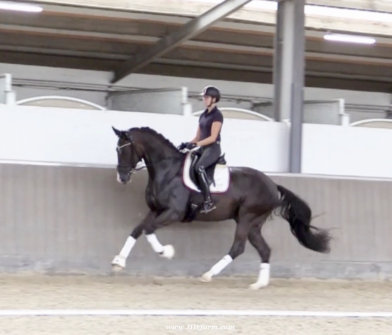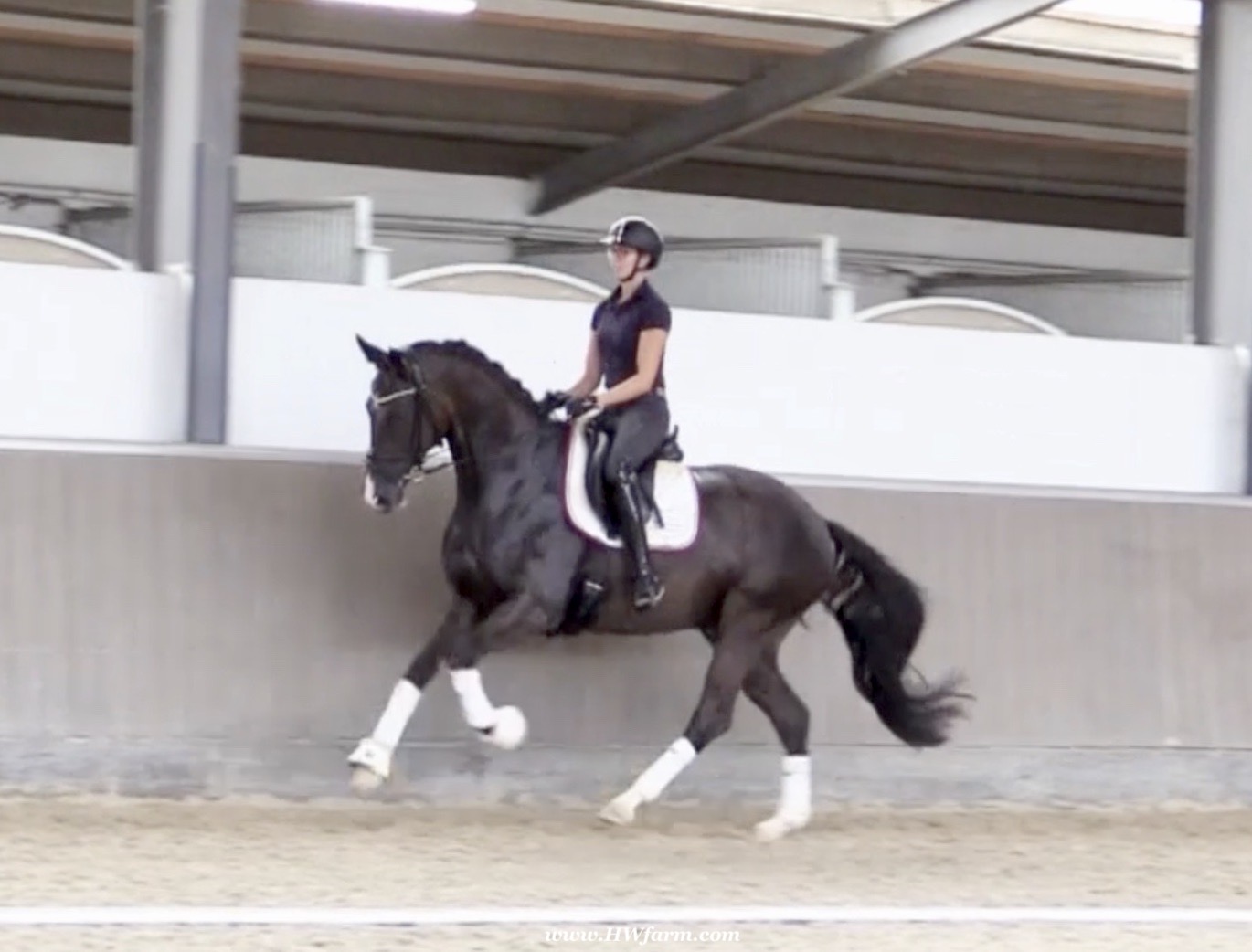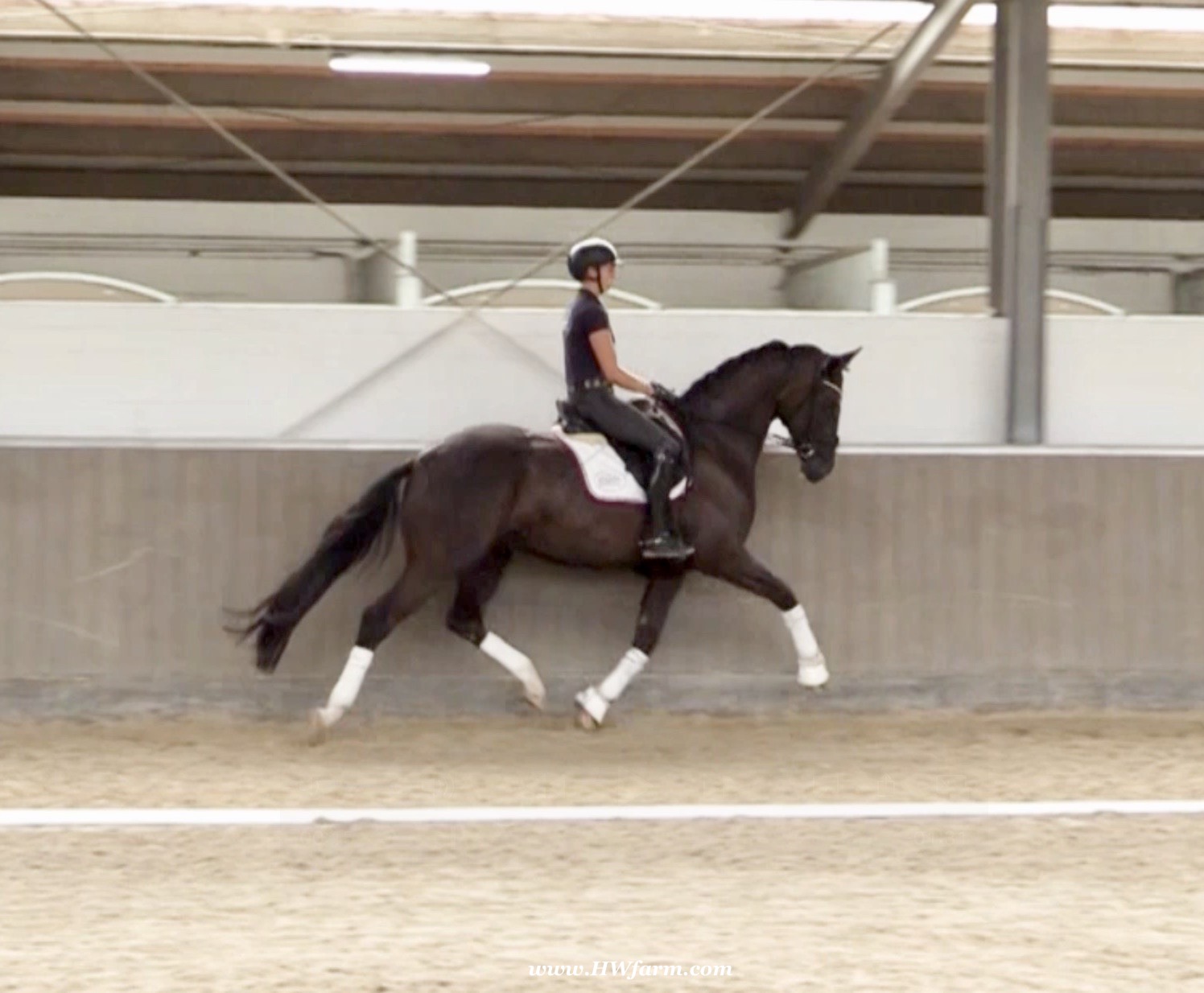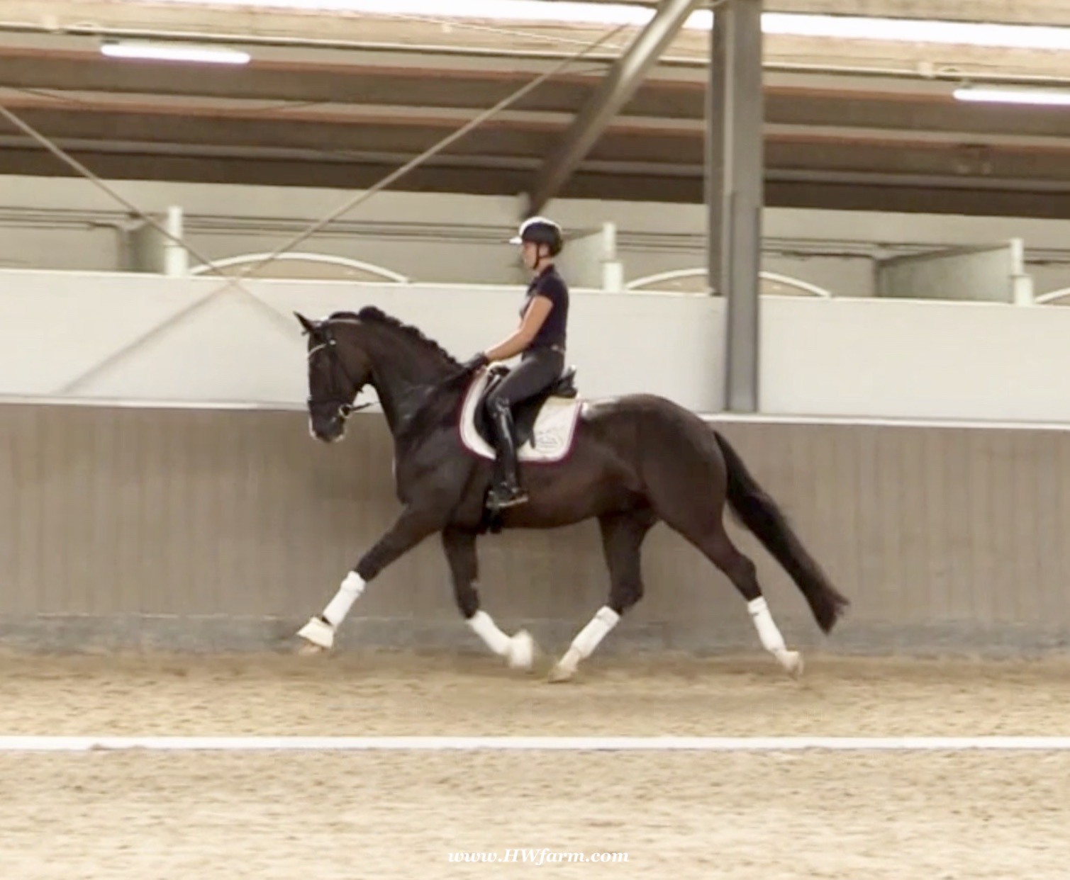 EscaVino HW, black Hanoverian gelding, by Vice World Champion Escamillo/Don Vino, born in 2019, standing approximately 176 cm or 17.1 hands. EscaVino HW is by Escamillo, the silver and bronze medallist at the World Championships for young dressage horses. "What an amazing performance," the judges praised Escamillo's performance in the World Championship final for seven-year-old dressage horses in their commentary, "we love this horse and see a very big future in him." Once again, Escamillo received dream scores at this prestigious meeting of the world's best young dressage horses. 9.5 for trot and perspective, 9.0 for walk and canter, 8.5 for submission - and a fantastic 91 percent and the bronze medal. The year before, Escamillo, ridden by the Spanish rider Manuel Dominguez Bernal, who rides for Helen Langehanenberg's yard, had already received scores of 9.0 and higher in the World Championship's arena, earning him the silver medal in the six-year-olds class. Breeding-wise Escamillo also puts one exclamation mark after the next behind his hereditary power. He has already produced over 30 licensed stallions, among them the Neustadt Champion Stallion Element of Crime, the Hanoverian Premium Stallion and 700,000-euro Stallion Market top price Energy, the Westphalian Reserve Champion Stallions Escaneno, Espléndido MT and Excalibur as well as our stallions Escanto PS, two-time stallion performance test record winner, Expectation PS and Escamour, the stallion performance test winner Eleven HW and the bronze medallist of the Hanoverian Champion-ships, Estupendo. The German and Westphalian Champion Eivissa ridden by Jessica Lynn Thomas/SWE stands out amongst his first sport offspring. She received a 10 for both trot and canter and a 9.5 for rideability and conformation in Warendorf. Embolo, third in the "Westfalen-Wappen" class at the "Turnier der Sieger", achieved the sensational knockdown price of 590,000 euros, the highest price ever achieved by a riding horse at a Westphalian auction. Eyecatcher W won the Austrian Warmblood Championships for three-year-olds in Stadl-Paura/AUT. Escamillo's daughter, Exclusive, won the Herwart van der Decken Show in Verden. Escamillo began his career as premium stallion at his licensing in 2017 in Verden, passed his 14-day test in 2018 with a dressage score of 9.08 and completed his sport test in 2020 with Helen Langehanenberg with a winning score of 9.36. Ridden by the Olympic team silver medallist, he also qualified for the German Championships for young dressage horses as a five-year-old with 9.5. In 2021, with Manuel Dominguez Bernal, he won the intermediate (M) level dres-sage test for young horses in Haftenkamp with a score of 8.8 (also qualifier for the German Championships for six-year-olds). The same year, Escamillo was awarded the Weltmeyer Prize by the Hanoverian Association. His sire, the Westphalian and double German Champion Escolar, was placed in the final of the Burg Cup, the final of the Louisdor Prize and at the German Championships with the Olympic Champion and riding master Hubertus Schmidt/GER. They were part of the German Olympic squad. His dam Verb.Pr.St. Cassila is the full sister of the li-censed stallions Romanist (advanced S* level dressage) and Romeo Niro (intermediate M** level dressage). His grand-sire Rohdiamant was German Champion in 1993 and competed at Grand Prix level with Lisa Wilcox/USA. Around 50 of his sons have been licensed. His most successful offspring include Valentina Truppa's/ITA Olympic partner Eremo del Castegno and Helen Langehanenberg's Responsible OLD. His grand-dam Chantal is the full sister of Dumont/Juliane Brunkhorst/GER and Hartwig Burfeind/GER, licensed stallion and successful in Grand Prix, and her half brother Aquavit (by Argentinus) is successful in competitions for young show jumping horses. De Niro, Landadel and Zeus also appear in the pedigree. His great-grand-dam St.Pr./El.St. Caruge is the full sister of the licensed stallion Laphroaig/Leporello and produced several state premium mares. Her full sister is no other than the German Champion Mare St.Pr./El.St. C-Dur, who produced four licensed stallions. Line of El.St. Cinderella, from which descend the five German Champion full siblings Sir Heinrich OLD, Cindy OLD, Candy OLD, Caty OLD and Casey OLD (all by Sir Donnerhall I), the Grand Prix dressage horse Radondo (by Romanov)/Ashley Holzer/USA, as well as the stallions Zymbal I and II (both by Zeus), First Class I and II (both by Furioso II), Sesostris (by Silvio I), Rubino Rosso (by Rubinstein), Castus I and II (both by Classiker), Stiefelkönig (by Silvano), Grand Marnier (by Galoubet A), Pharaoh (by Parabol), RTL (by Rubinstein), Routinier (by Rohdiamant), Solo Hit (by Sandro Hit), Get Smart (by Granulit), Fortune Hunter (by First Class I), Casanova (by Castro) and Si bon (by Sir Donnerhall I). Closely related to the famous Wendel's German Champion quintet. EscaVino HW's dam sire is Don Vino is a big-shaped and correct riding horse type, with good frame and height. His sire and dam passed on their outstanding dressage qualities to this young stallion, and thus the high expectations were fully met in all respects of this sire during the stallion performance test where he achieved above average marks for all phases of the dressage test. This surely suggests a high rate of pre-potency in Don Vino for dressage. At his performance test Don Vino scored 8 for character, 8 for temperament, 8 for trainability, 8 for conformation, 6.22 for jumping, 8 for rideability, 7.5 for walk, 7.33 for trot, and 7.16 for canter. He is a no-ble stallion with three very good basic gaits. In 2002 Don Vino presented an excellent premiere of foals, from which several foals were admitted to the Hanoverian foal auctions. Two of his offspring are successfully competing at advanced level and his son Dandolo presented captivating performances in the dressage arena at the Warendorf Federal Championships. He has 4 licensed sons,