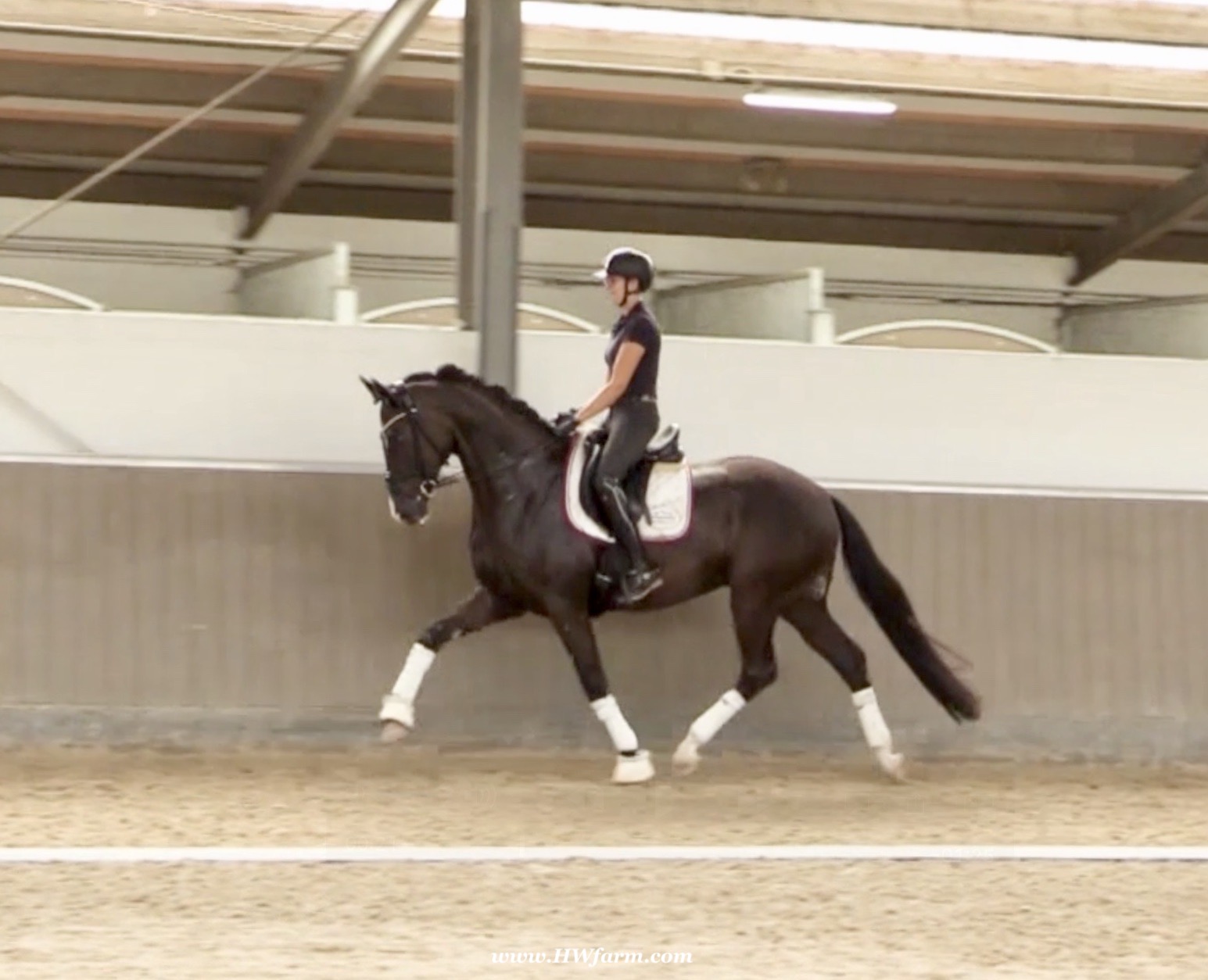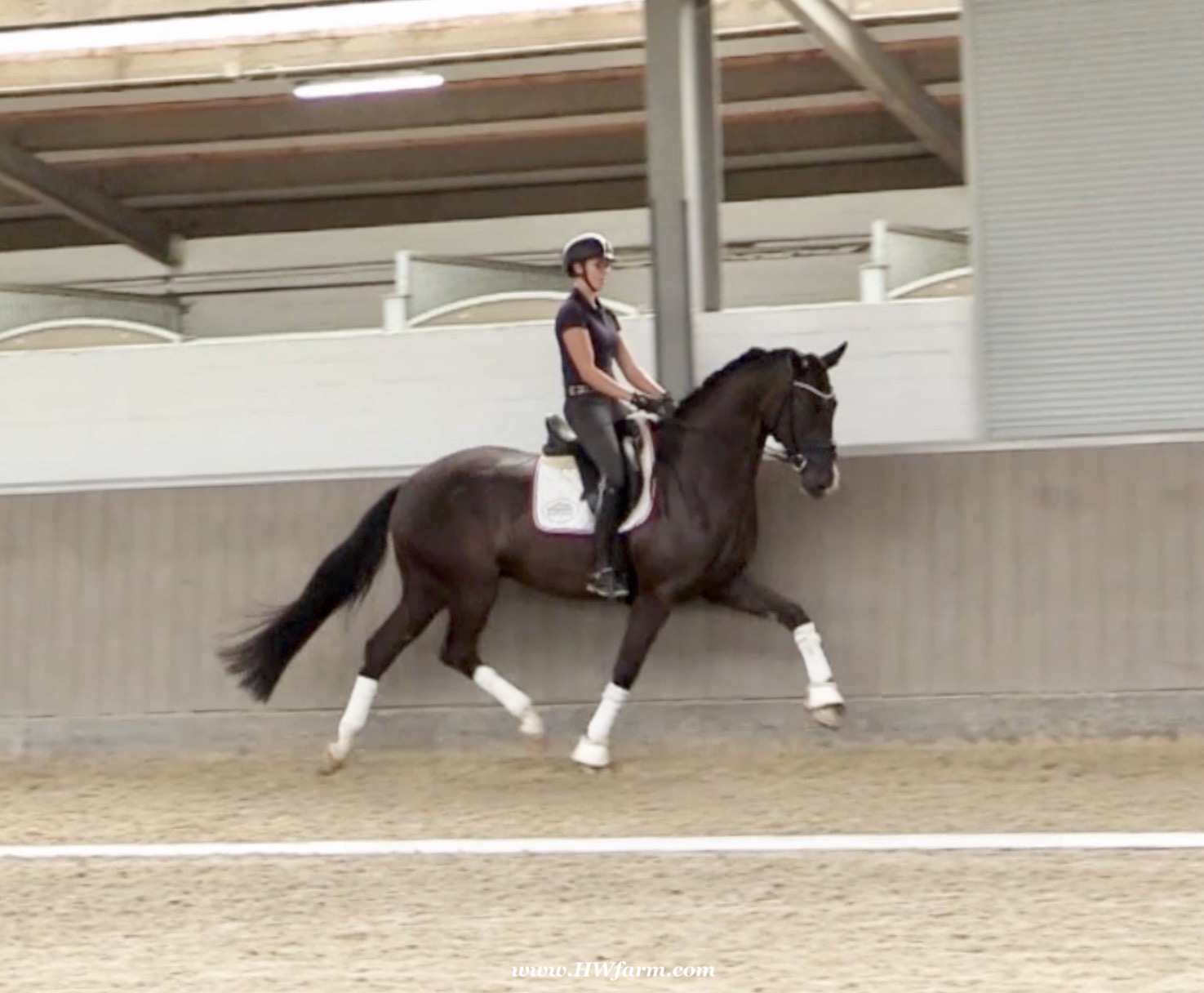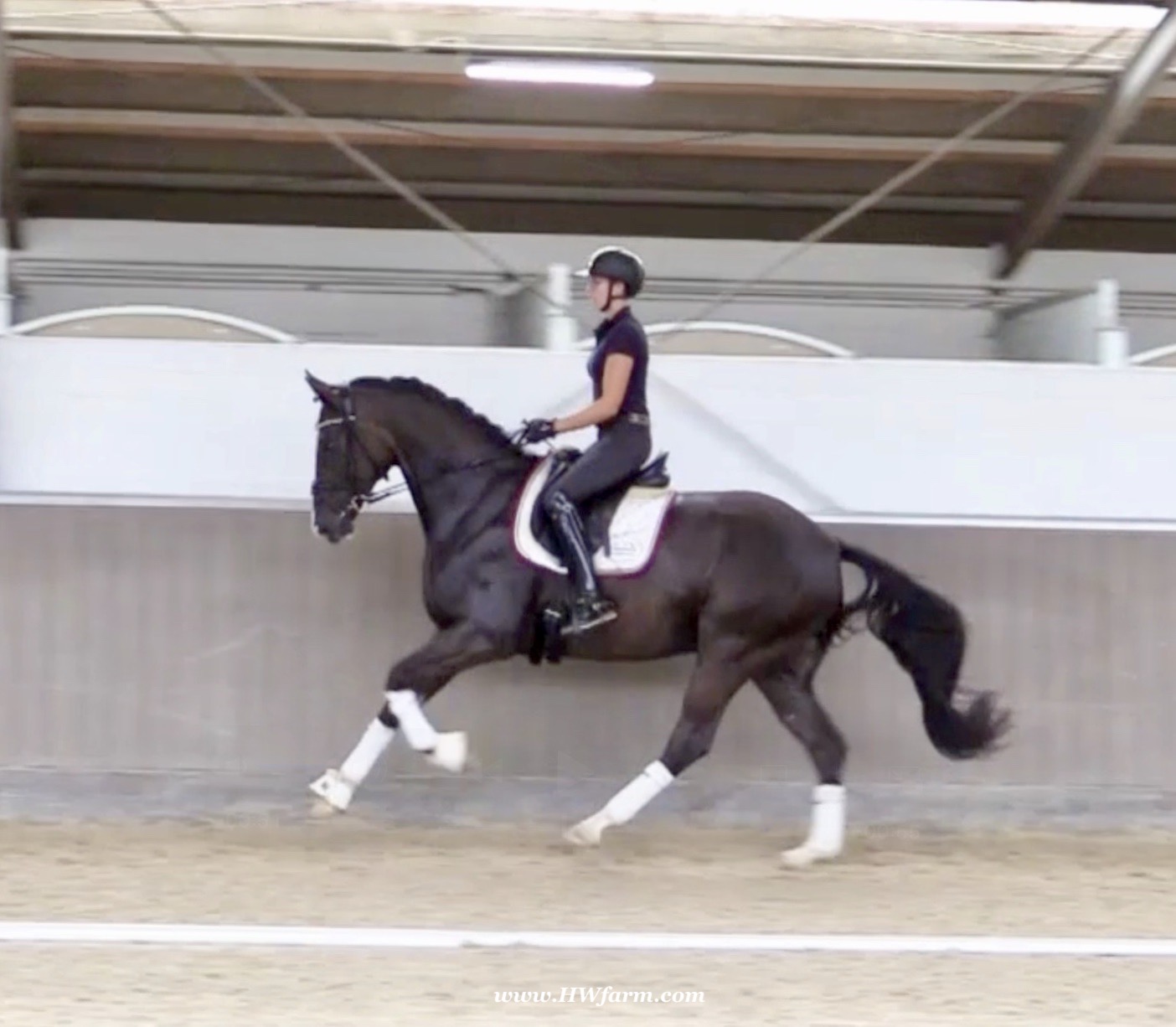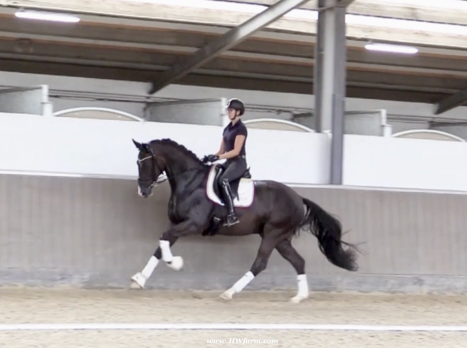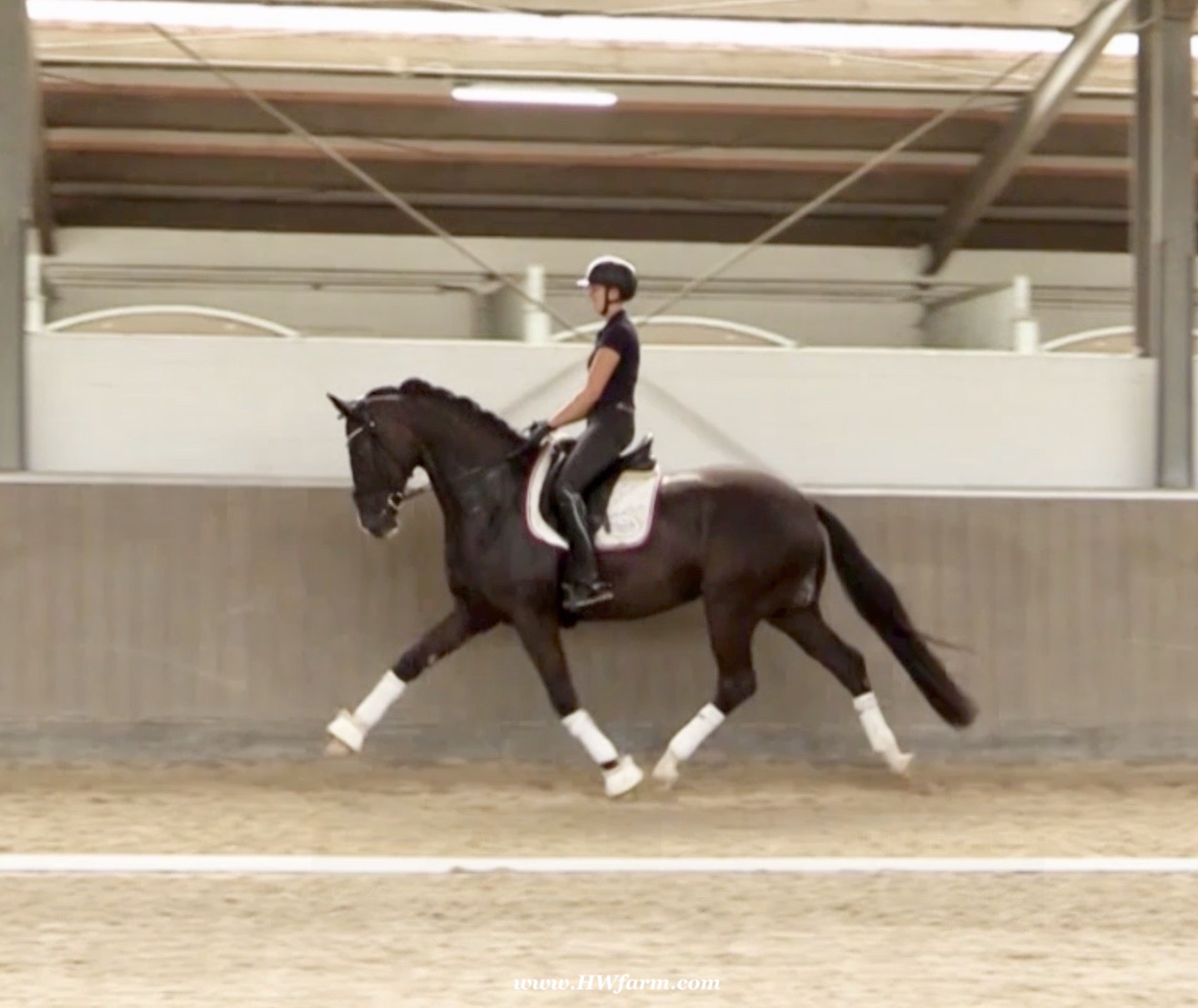 EscaVino HW, black Hanoverian gelding, by Vice World Champion Escamillo/Don Vino, born in 2019, standing approximately 176 cm or 17.1 hands. EscaVino HW is by Escamillo, the silver and bronze medallist at the World Championships for young dressage horses. "What an amazing performance," the judges praised Escamillo's performance in the World Championship final for seven-year-old dressage horses in their commentary, "we love this horse and see a very big future in him." Once again, Escamillo received dream scores at this prestigious meeting of the world's best young dressage horses. 9.5 for trot and perspective, 9.0 for walk and canter, 8.5 for submission - and a fantastic 91 percent and the bronze medal. The year before, Escamillo, ridden by the Spanish rider Manuel Dominguez Bernal, who rides for Helen Langehanenberg's yard, had already received scores of 9.0 and higher in the World Championship's arena, earning him the silver medal in the six-year-olds class. Breeding-wise Escamillo also puts one exclamation mark after the next behind his hereditary power. He has already produced over 30 licensed stallions, among them the Neustadt Champion Stallion Element of Crime, the Hanoverian Premium Stallion and 700,000-euro Stallion Market top price Energy, the Westphalian Reserve Champion Stallions Escaneno, Espléndido MT and Excalibur as well as our stallions Escanto PS, two-time stallion performance test record winner, Expectation PS and Escamour, the stallion performance test winner Eleven HW and the bronze medallist of the Hanoverian Champion-ships, Estupendo. The German and Westphalian Champion Eivissa ridden by Jessica Lynn Thomas/SWE stands out amongst his first sport offspring. She received a 10 for both trot and canter and a 9.5 for rideability and conformation in Warendorf. Embolo, third in the "Westfalen-Wappen" class at the "Turnier der Sieger", achieved the sensational knockdown price of 590,000 euros, the highest price ever achieved by a riding horse at a Westphalian auction. Eyecatcher W won the Austrian Warmblood Championships for three-year-olds in Stadl-Paura/AUT. Escamillo's daughter, Exclusive, won the Herwart van der Decken Show in Verden. Escamillo began his career as premium stallion at his licensing in 2017 in Verden, passed his 14-day test in 2018 with a dressage score of 9.08 and completed his sport test in 2020 with Helen Langehanenberg with a winning score of 9.36. Ridden by the Olympic team silver medallist, he also qualified for the German Championships for young dressage horses as a five-year-old with 9.5. In 2021, with Manuel Dominguez Bernal, he won the intermediate (M) level dres-sage test for young horses in Haftenkamp with a score of 8.8 (also qualifier for the German Championships for six-year-olds). The same year, Escamillo was awarded the Weltmeyer Prize by the Hanoverian Association. His sire, the Westphalian and double German Champion Escolar, was placed in the final of the Burg Cup, the final of the Louisdor Prize and at the German Championships with the Olympic Champion and riding master Hubertus Schmidt/GER. They were part of the German Olympic squad. His dam Verb.Pr.St. Cassila is the full sister of the li-censed stallions Romanist (advanced S* level dressage) and Romeo Niro (intermediate M** level dressage). His grand-sire Rohdiamant was German Champion in 1993 and competed at Grand Prix level with Lisa Wilcox/USA. Around 50 of his sons have been licensed. His most successful offspring include Valentina Truppa's/ITA Olympic partner Eremo del Castegno and Helen Langehanenberg's Responsible OLD. His grand-dam Chantal is the full sister of Dumont/Juliane Brunkhorst/GER and Hartwig Burfeind/GER, licensed stallion and successful in Grand Prix, and her half brother Aquavit (by Argentinus) is successful in competitions for young show jumping horses. De Niro, Landadel and Zeus also appear in the pedigree. His great-grand-dam St.Pr./El.St. Caruge is the full sister of the licensed stallion Laphroaig/Leporello and produced several state premium mares. Her full sister is no other than the German Champion Mare St.Pr./El.St. C-Dur, who produced four licensed stallions. Line of El.St. Cinderella, from which descend the five German Champion full siblings Sir Heinrich OLD, Cindy OLD, Candy OLD, Caty OLD and Casey OLD (all by Sir Donnerhall I), the Grand Prix dressage horse Radondo (by Romanov)/Ashley Holzer/USA, as well as the stallions Zymbal I and II (both by Zeus), First Class I and II (both by Furioso II), Sesostris (by Silvio I), Rubino Rosso (by Rubinstein), Castus I and II (both by Classiker), Stiefelkönig (by Silvano), Grand Marnier (by Galoubet A), Pharaoh (by Parabol), RTL (by Rubinstein), Routinier (by Rohdiamant), Solo Hit (by Sandro Hit), Get Smart (by Granulit), Fortune Hunter (by First Class I), Casanova (by Castro) and Si bon (by Sir Donnerhall I). Closely related to the famous Wendel's German Champion quintet. EscaVino HW's dam sire is Don Vino is a big-shaped and correct riding horse type, with good frame and height. His sire and dam passed on their outstanding dressage qualities to this young stallion, and thus the high expectations were fully met in all respects of this sire during the stallion performance test where he achieved above average marks for all phases of the dressage test. This surely suggests a high rate of pre-potency in Don Vino for dressage. At his performance test Don Vino scored 8 for character, 8 for temperament, 8 for trainability, 8 for conformation, 6.22 for jumping, 8 for rideability, 7.5 for walk, 7.33 for trot, and 7.16 for canter. He is a no-ble stallion with three very good basic gaits. In 2002 Don Vino presented an excellent premiere of foals, from which several foals were admitted to the Hanoverian foal auctions. Two of his offspring are successfully competing at advanced level and his son Dandolo presented captivating performances in the dressage arena at the Warendorf Federal Championships. He has 4 licensed sons,