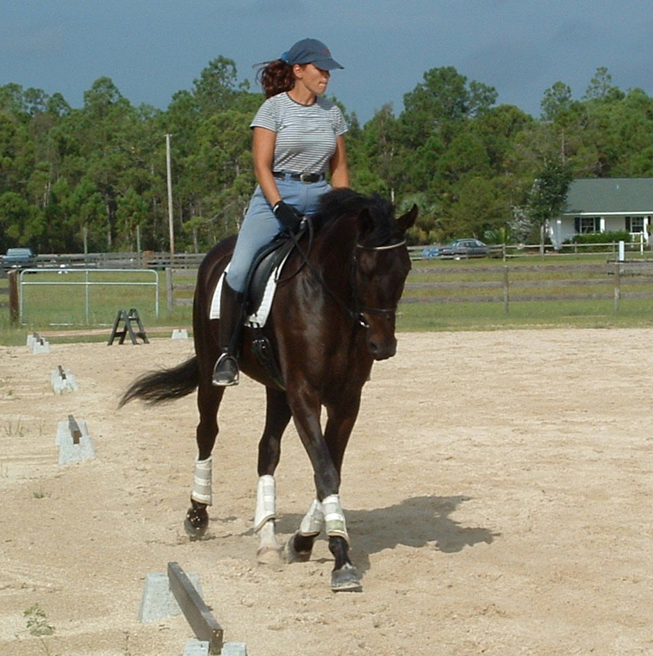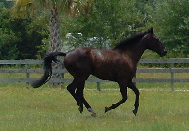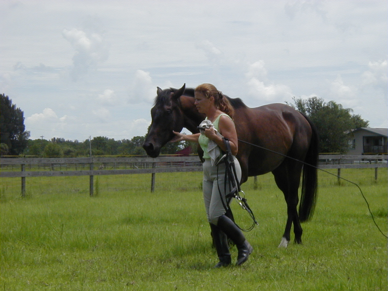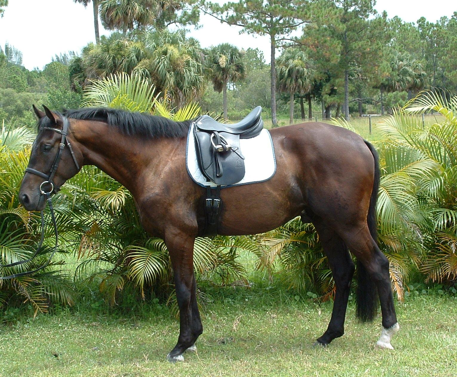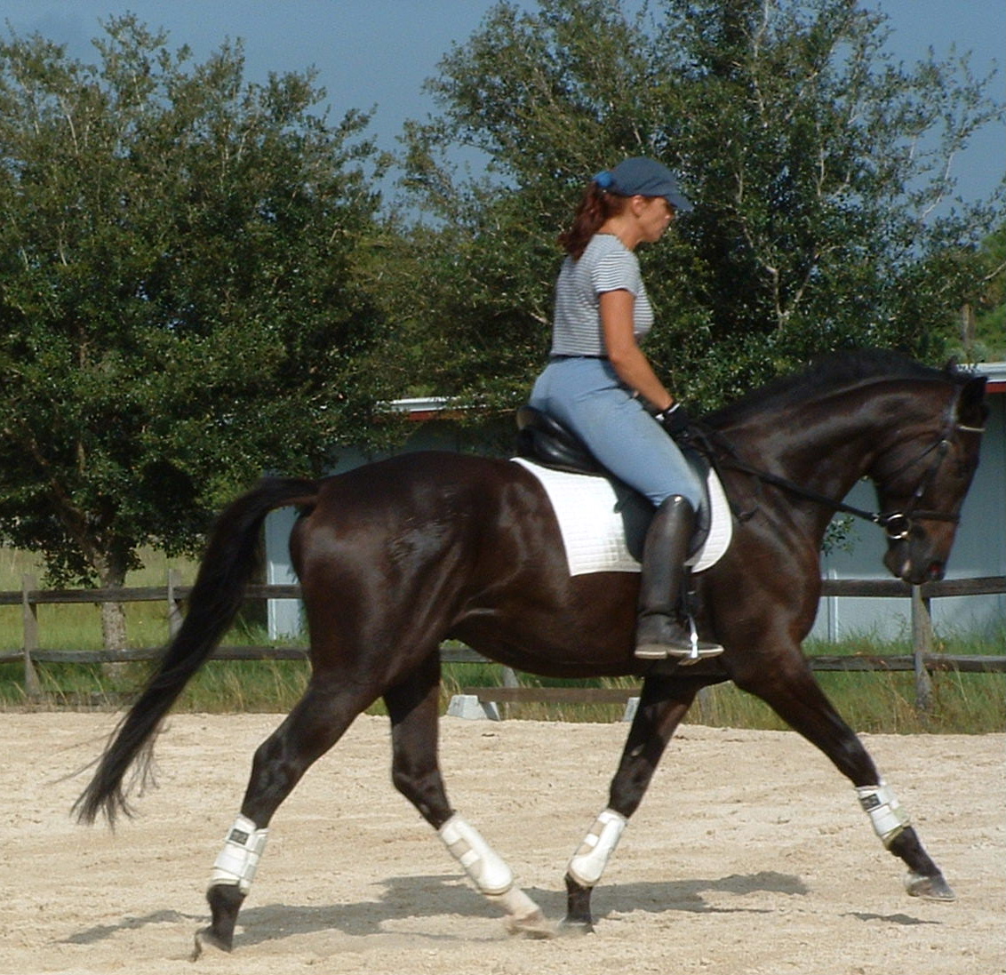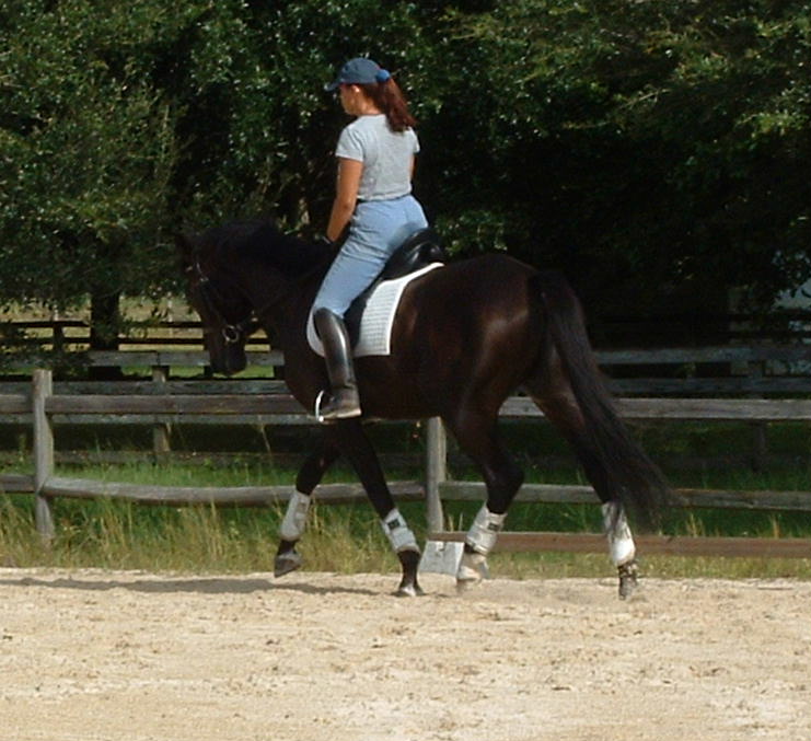 This handsome young Hanoverian gelding is the perfect combination of stellar good looks and incredible uphill movement. Falki currently stands 16.2 and has a few good growing years left. At just 4 years old (born Feb. 2, 2000), this dark bay Falkland/Prince Thatch son is already demonstrating the athletic prowess of his father with the sensitivity of his dam's sire. He was born with the natural balance in the canter that will take you straight to the FEI levels plus his expressive trot will make a statement of it's own. Falki clips, bathes, loads, and stands for the blacksmith. He also loves to have his face rubbed with a towel after work!