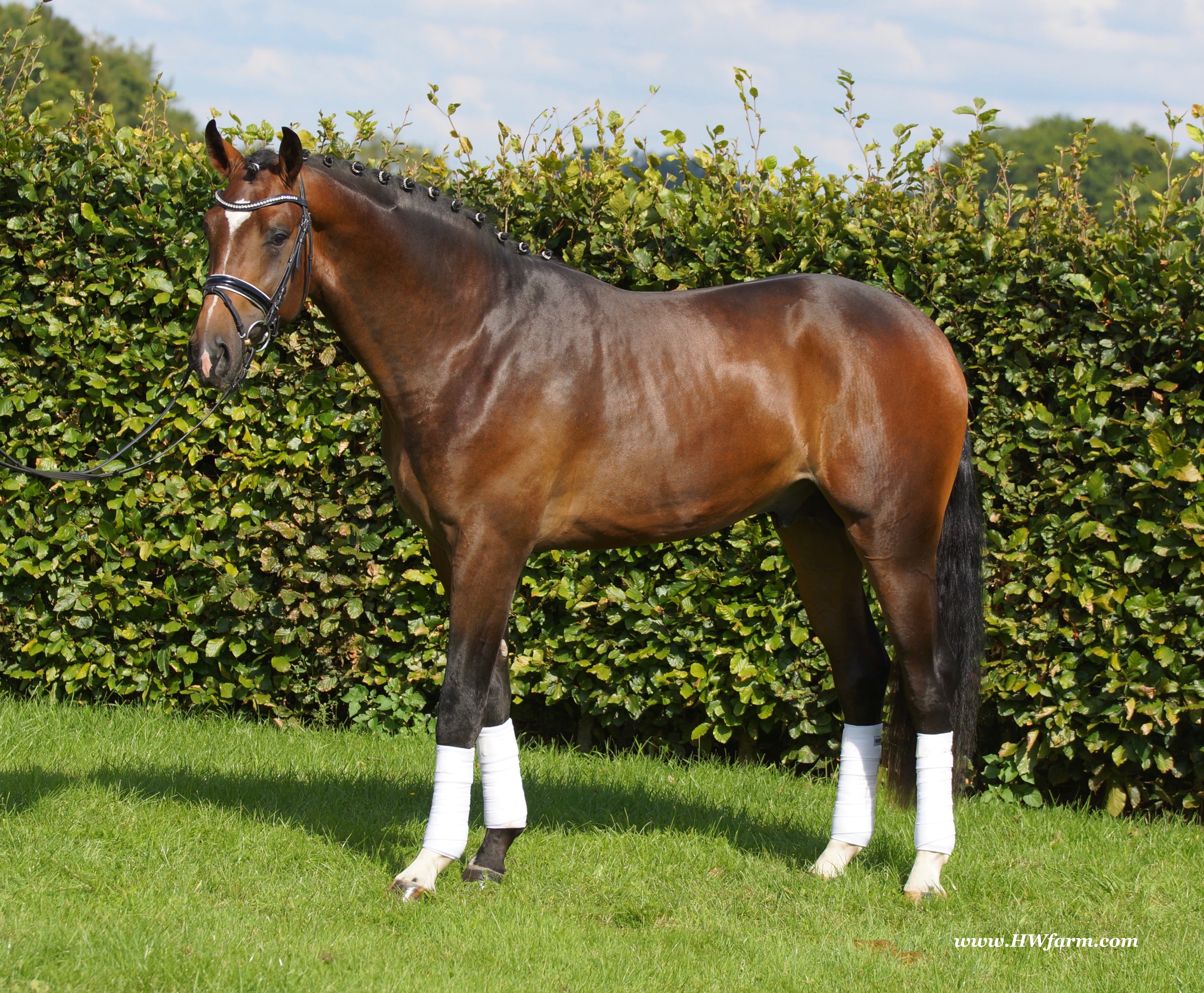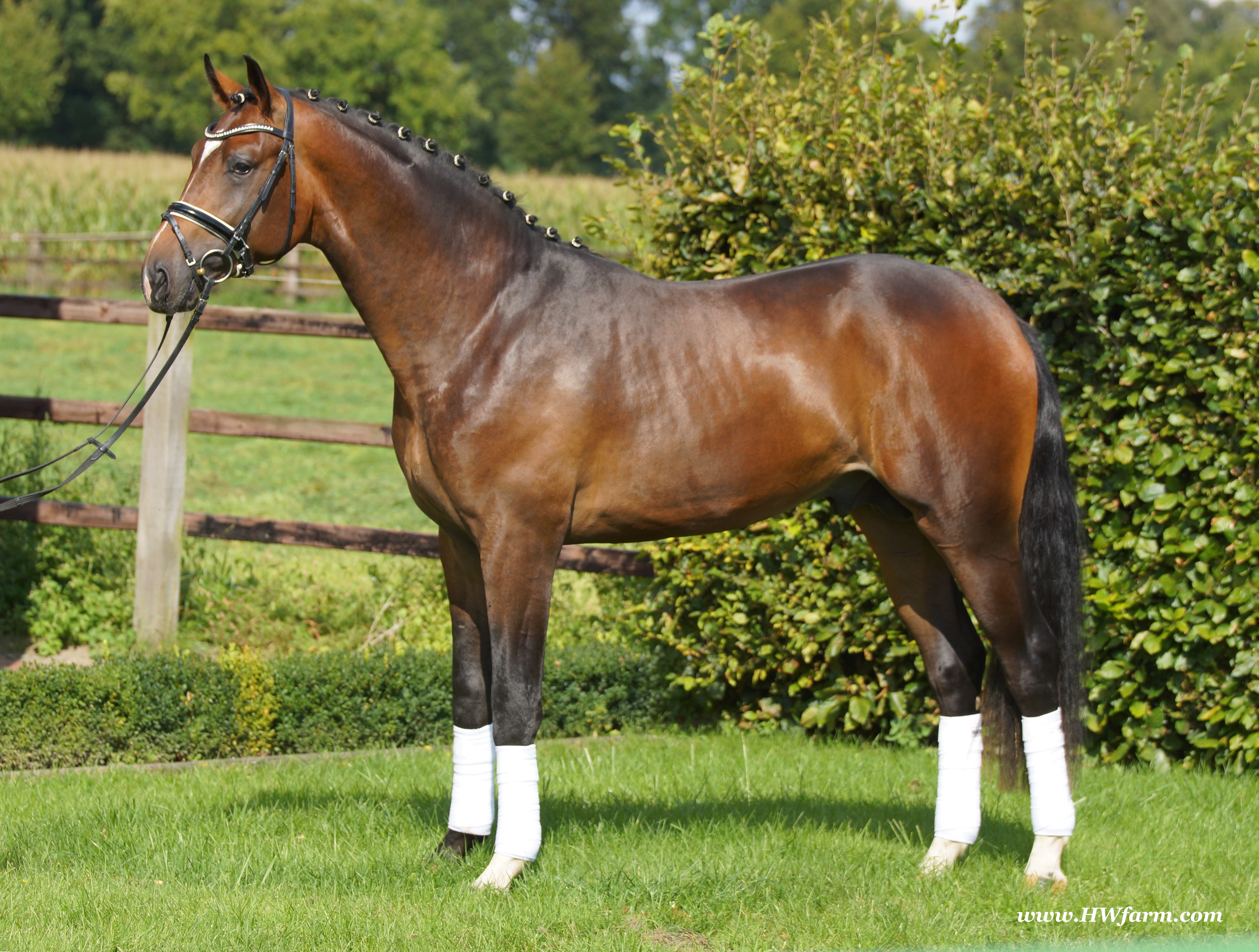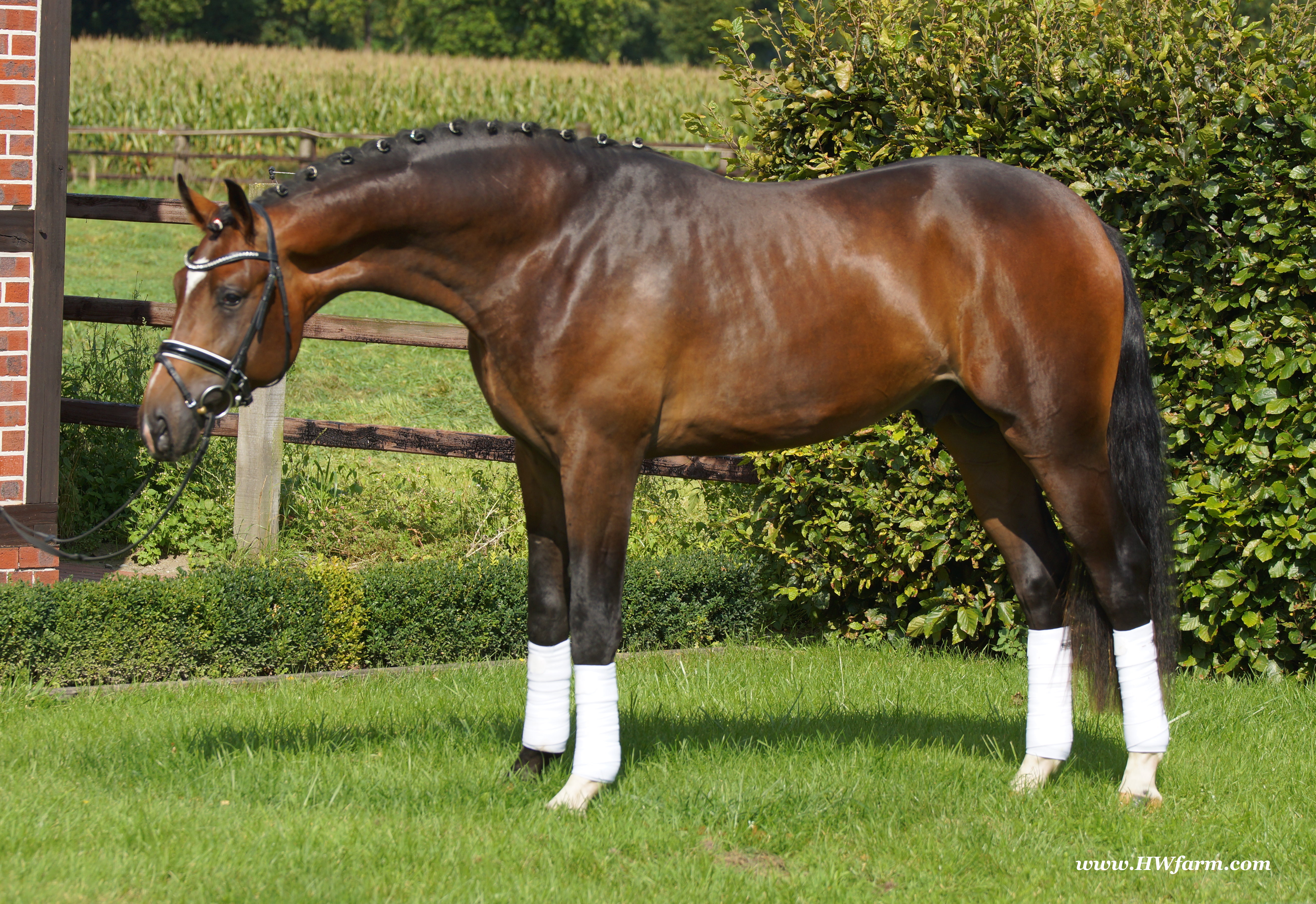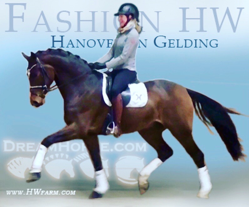BundesChampion son Fashion HW, bay Rhineland gelding by the powerful and dynamic BundesChampion Franziskus/Flatley, born in 2013, standing approximately 173 cm or 17 hands. Fashion HW, is a totally cool charmer and has the best bloodlines, his sire is the premium stallion Franziskus, he impressed the spectators at the Westphalian licensing in 2010. He has a brilliant type, a perfect frame as well as a harmonious and correct exterior. His basic gaits are perfect: He walks with diligence and beat, he trots with impulsion and forward thrust and he canters uphill. Franziskus was already very good as a foal. He won the qualification to the German foal-championships. In 2011 Franziskus absolved the 30-days-test in Münster-Handorf successfully: He got a score of 9.0 for trot, canter and rideability in the training and 9.5 for his character. The test rider gave him even 9.5 points for rideability. Continuing his life of success, Franziskus soon became Bundeschampion of the 4-year-old riding stallions with top marks when he was presented by both his own and by foreign riders in 2012. The Olympic rider Ingrid Klimke began riding Franziskus at the end of 2013 and was victorious with him in his first dressage class for young horses, at "M-level" (the highest class 6-year-olds can compete in Germany). I Franziskus is victorious in dressage tests of KL S ** and has been 15 licensed sons. 2015 and 2016, victorious in dressage horse Kl. S ** Inter I under Ingrid Klimke and was a finalist in the Nuernberg Burgpokals/cup. Franziskus' sire Fidertanz began his career by winning the Westphalian licensing and the 30-days-test in Neustadt/Dosse. He was runner up at the "Bundeschampionat" and was the main premium award winner in 2006. Since then, Fidertanz has placed in many advanced dressage classes. His dam, Antara, has also produced the licensed stallion Dementi, who is successful in advanced dressage competitions as well. His Dam's sire, Alabaster, was "Bundeschampion" of young dressage horses. In the third and fourth generation, there are the international sport horses, and important stallions, Rubinstein I and Grundstein I. The basis of the dam line is the Irish thoroughbred mare Daffy Toban xx (by Go Tobann xx-Mustang xx, family 2). That line produced the sires Count on Me, Grafenstein and Winston hervor, as well as the international sport horses Grand Giraud (Alexandra Simons-de Ridder) and Calman, who won the Grand Prix of Nörten-Hardenberg with Rolf Moormann. Franziskus' sire, Fidertanz, started his phenomenal career in the year 2004 as NRW-Champion Stallion in Münster-Handorf. In 2005, Fidertanz won his 30-day-test in Neustadt/Dosse with excellent results, and became Vice Bundeschampion with a top score of 9.5 in test-riding. In the year 2006, Fidertanz won the High Premium award for dressage-stallions at the Oldenburg-licensing in Vechta. In the meantime, Fidertanz has been trained up to the advanced level in dressage. Franziskus' dam, Antara, produced with De Niro the licensed stallion Dementi, who is successful at the advanced dressage S Level. The dam's sire is the former Bundeschampion of German Dressage Horses, Alabaster. The third and fourth generation of the pedigree is refined by the internationally successful top-stallions Rubinstein I and Grundstein I. The dam line is based on the Irish thoroughbred-mare Daffy Toban xx (v. Go Tabann xx-Mustang xx-Flamenco xx etc,, thoroughbred-familiy 2). Some of the stallions out of this line (which is followed by the breeding-familiy Albers since the mid 1970's) are e.g. Count on Me (PB Denmark), Grafenstein (PB Oldenburg, State Stud Redefin and Marbach), Winston (PB Hannover, State Stud Celle), as well as the international sport horses Grand Giraud/Alexandra Simons-de Ridder and Calman, who won the "Goldene Peitsche" in Nörten-Hardenberg under the saddle of Rolf Moormann. Ingrid Klimke and Franziskus: Fashion HW's dam sire is Isabelle Werth's previous mount Flatley. The Rhinelander licensed stallion Flatley has been sold to Angelina and Heiko Graf in 2013 and made his successful return to the show ring with his new rider Meike Lang at S- and Intermediaire II level at a regional show in Kreuth, Germany. Flatley is a 2004 born Rhinelander, bred by Judith and Johannes Gielessen and sired by Furst Piccolo x Ehrensold x Dilettant. He was licensed in 2006 at the Westfalian Stallion Licensing and did his stallion performance test in Neustadt/Dosse, finishing on a dressage score of 8.44. His first offspring is now competing and Flatley has already produced one licensed son and six State Premium mares. Flatley was originally owned by Tobias Schult, who put the horse in training with Isabell Werth. The bay stallion was initially campaigned by Werth's assistant trainer Matthias Bouten. In 2011 Werth took over the ride and qualified the 7-year old for the Nurnberger Burgpokal finals for developing Prix St Georges horses. At the finals in Frankfurt, the pair finished second. In 2012, Bouten climbed back into the saddle but after his departure from Werth's yard in 2013 Isabell showed the horse twice at Grand Prix level. Lang and Flatley won an S-level test last weekend in Kreuth and finished second in the Intermediaire II Isabelle Werth and Flatley: Flatley is by the famous Fürst Piccolo, a 100 Day Performance Test Winner! Fürst Piccolo's sire Fidermark was the vice champion of the NRW approvals in 1994 and won the Warendorf state stallion performance test with a big margin in 1995. Further successes followed in 1996. He dominated the "Optimum of Westphalian Riding Horses" sovereignty in Munster . He also became the Buneschampion in his home town of Warendorf . He then went on to win the LVM stallion championship in Munster Handorf. He has had many wins in the Prix St George and Intermediaire I under Marlies Van Baalen and he is trained by Johann Hinnemann. In 2003 he made his debut successfully at Grand Prix. His first foal crops produced sensational foals. Th