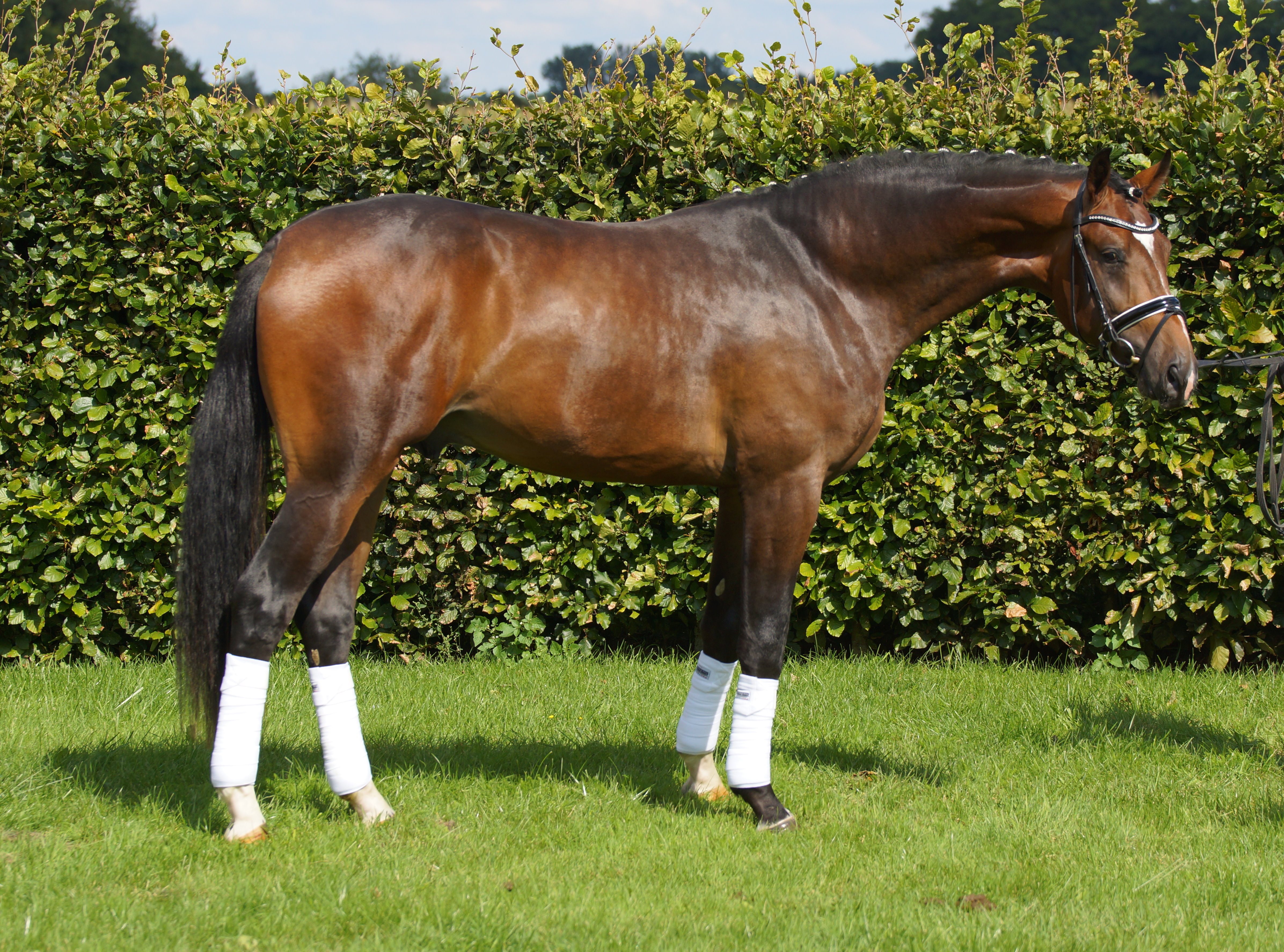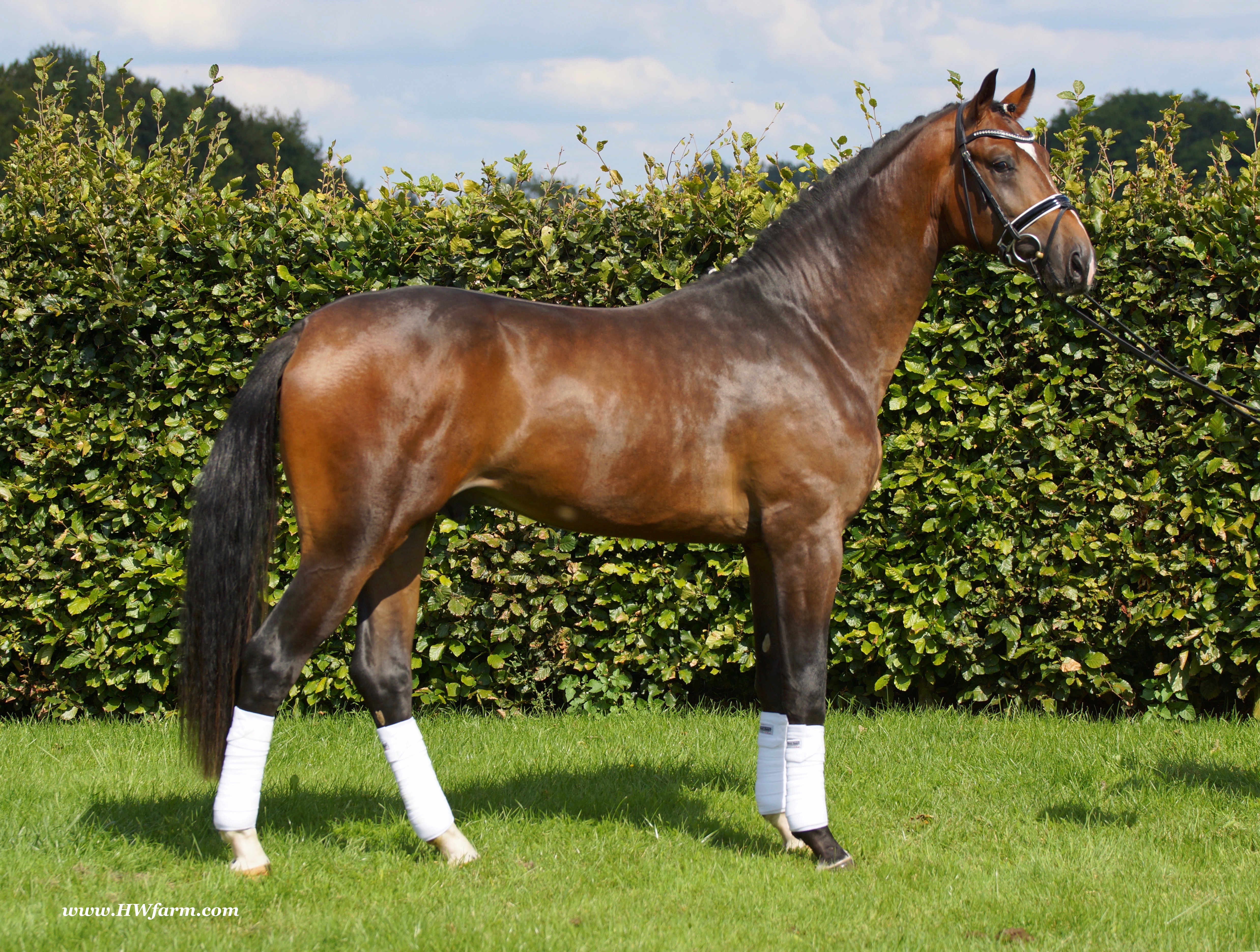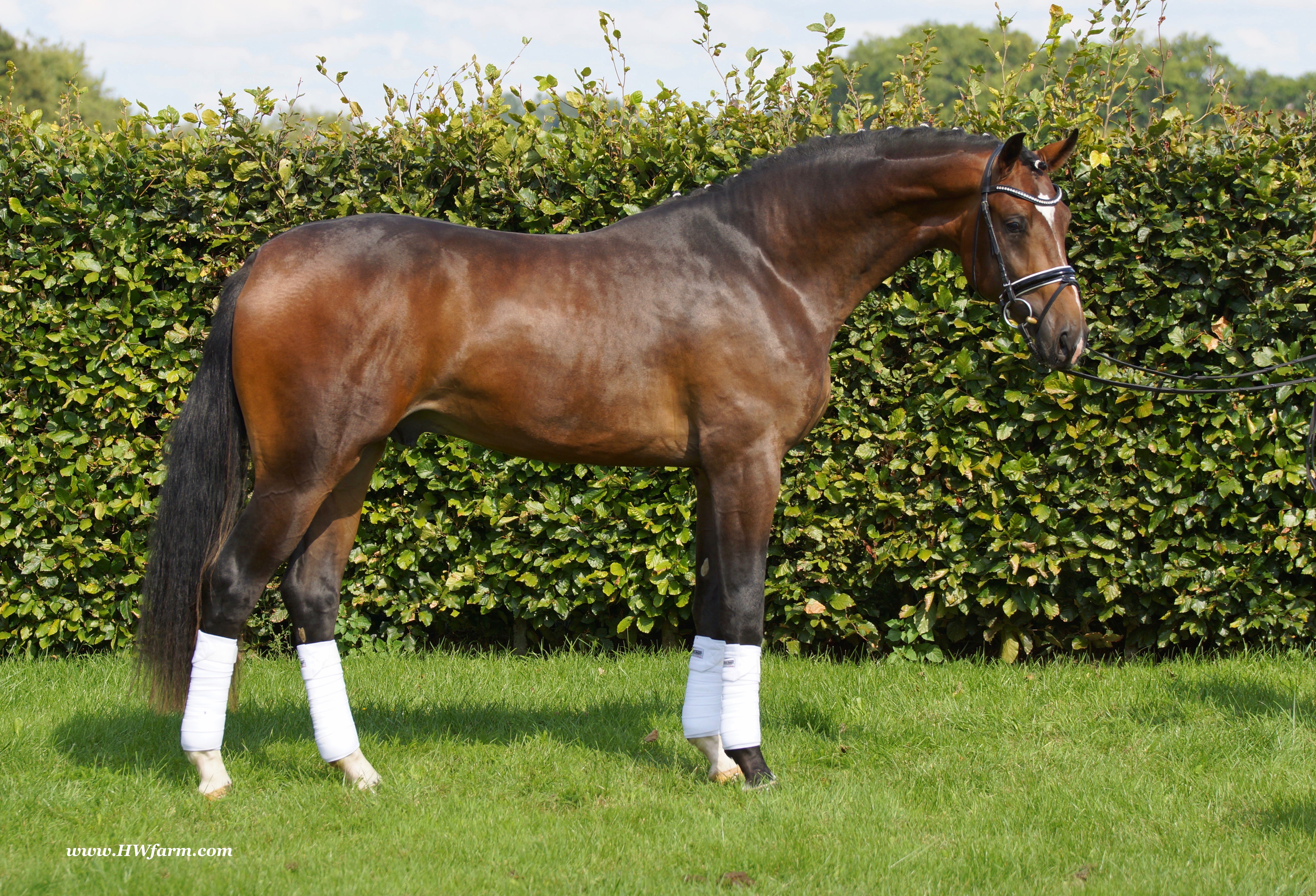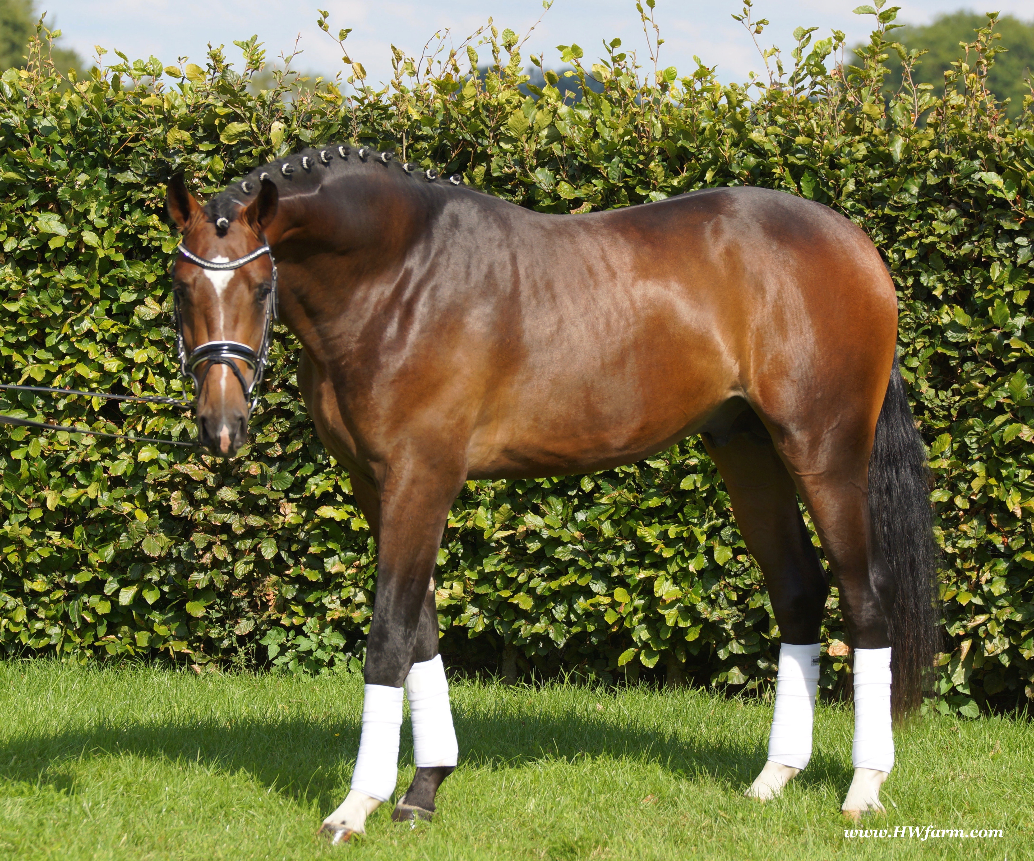 BundesChampion son Fashion HW, bay Rhineland gelding by the powerful and dynamic BundesChampion Franziskus/Flatley, born in 2013, standing approximately 173 cm or 17 hands. Fashion HW, is a totally cool charmer and has the best bloodlines, his sire is the premium stallion Franziskus, he impressed the spectators at the Westphalian licensing in 2010. He has a brilliant type, a perfect frame as well as a harmonious and correct exterior. His basic gaits are perfect: He walks with diligence and beat, he trots with impulsion and forward thrust and he canters uphill. Franziskus was already very good as a foal. He won the qualification to the German foal-championships. In 2011 Franziskus absolved the 30-days-test in Münster-Handorf successfully: He got a score of 9.0 for trot, canter and rideability in the training and 9.5 for his character. The test rider gave him even 9.5 points for rideability. Continuing his life of success, Franziskus soon became Bundeschampion of the 4-year-old riding stallions with top marks when he was presented by both his own and by foreign riders in 2012. The Olympic rider Ingrid Klimke began riding Franziskus at the end of 2013 and was victorious with him in his first dressage class for young horses, at "M-level" (the highest class 6-year-olds can compete in Germany). I Franziskus is victorious in dressage tests of KL S ** and has been 15 licensed sons. 2015 and 2016, victorious in dressage horse Kl. S ** Inter I under Ingrid Klimke and was a finalist in the Nuernberg Burgpokals/cup. Franziskus' sire Fidertanz began his career by winning the Westphalian licensing and the 30-days-test in Neustadt/Dosse. He was runner up at the "Bundeschampionat" and was the main premium award winner in 2006. Since then, Fidertanz has placed in many advanced dressage classes. His dam, Antara, has also produced the licensed stallion Dementi, who is successful in advanced dressage competitions as well. His Dam's sire, Alabaster, was "Bundeschampion" of young dressage horses. In the third and fourth generation, there are the international sport horses, and important stallions, Rubinstein I and Grundstein I. The basis of the dam line is the Irish thoroughbred mare Daffy Toban xx (by Go Tobann xx-Mustang xx, family 2). That line produced the sires Count on Me, Grafenstein and Winston hervor, as well as the international sport horses Grand Giraud (Alexandra Simons-de Ridder) and Calman, who won the Grand Prix of Nörten-Hardenberg with Rolf Moormann. Franziskus' sire, Fidertanz, started his phenomenal career in the year 2004 as NRW-Champion Stallion in Münster-Handorf. In 2005, Fidertanz won his 30-day-test in Neustadt/Dosse with excellent results, and became Vice Bundeschampion with a top score of 9.5 in test-riding. In the year 2006, Fidertanz won the High Premium award for dressage-stallions at the Oldenburg-licensing in Vechta. In the meantime, Fidertanz has been trained up to the advanced level in dressage. Franziskus' dam, Antara, produced with De Niro the licensed stallion Dementi, who is successful at the advanced dressage S Level. The dam's sire is the former Bundeschampion of German Dressage Horses, Alabaster. The third and fourth generation of the pedigree is refined by the internationally successful top-stallions Rubinstein I and Grundstein I. The dam line is based on the Irish thoroughbred-mare Daffy Toban xx (v. Go Tabann xx-Mustang xx-Flamenco xx etc,, thoroughbred-familiy 2). Some of the stallions out of this line (which is followed by the breeding-familiy Albers since the mid 1970's) are e.g. Count on Me (PB Denmark), Grafenstein (PB Oldenburg, State Stud Redefin and Marbach), Winston (PB Hannover, State Stud Celle), as well as the international sport horses Grand Giraud/Alexandra Simons-de Ridder and Calman, who won the "Goldene Peitsche" in Nörten-Hardenberg under the saddle of Rolf Moormann. Ingrid Klimke and Franziskus: Fashion HW's dam sire is Isabelle Werth's previous mount Flatley. The Rhinelander licensed stallion Flatley has been sold to Angelina and Heiko Graf in 2013 and made his successful return to the show ring with his new rider Meike Lang at S- and Intermediaire II level at a regional show in Kreuth, Germany. Flatley is a 2004 born Rhinelander, bred by Judith and Johannes Gielessen and sired by Furst Piccolo x Ehrensold x Dilettant. He was licensed in 2006 at the Westfalian Stallion Licensing and did his stallion performance test in Neustadt/Dosse, finishing on a dressage score of 8.44. His first offspring is now competing and Flatley has already produced one licensed son and six State Premium mares. Flatley was originally owned by Tobias Schult, who put the horse in training with Isabell Werth. The bay stallion was initially campaigned by Werth's assistant trainer Matthias Bouten. In 2011 Werth took over the ride and qualified the 7-year old for the Nurnberger Burgpokal finals for developing Prix St Georges horses. At the finals in Frankfurt, the pair finished second. In 2012, Bouten climbed back into the saddle but after his departure from Werth's yard in 2013 Isabell showed the horse twice at Grand Prix level. Lang and Flatley won an S-level test last weekend in Kreuth and finished second in the Intermediaire II Isabelle Werth and Flatley: Flatley is by the famous Fürst Piccolo, a 100 Day Performance Test Winner! Fürst Piccolo's sire Fidermark was the vice champion of the NRW approvals in 1994 and won the Warendorf state stallion performance test with a big margin in 1995. Further successes followed in 1996. He dominated the "Optimum of Westphalian Riding Horses" sovereignty in Munster . He also became the Buneschampion in his home town of Warendorf . He then went on to win the LVM stallion championship in Munster Handorf. He has had many wins in the Prix St George and Intermediaire I under Marlies Van Baalen and he is trained by Johann Hinnemann. In 2003 he made his debut successfully at Grand Prix. His first foal crops produced sensational foals. Th