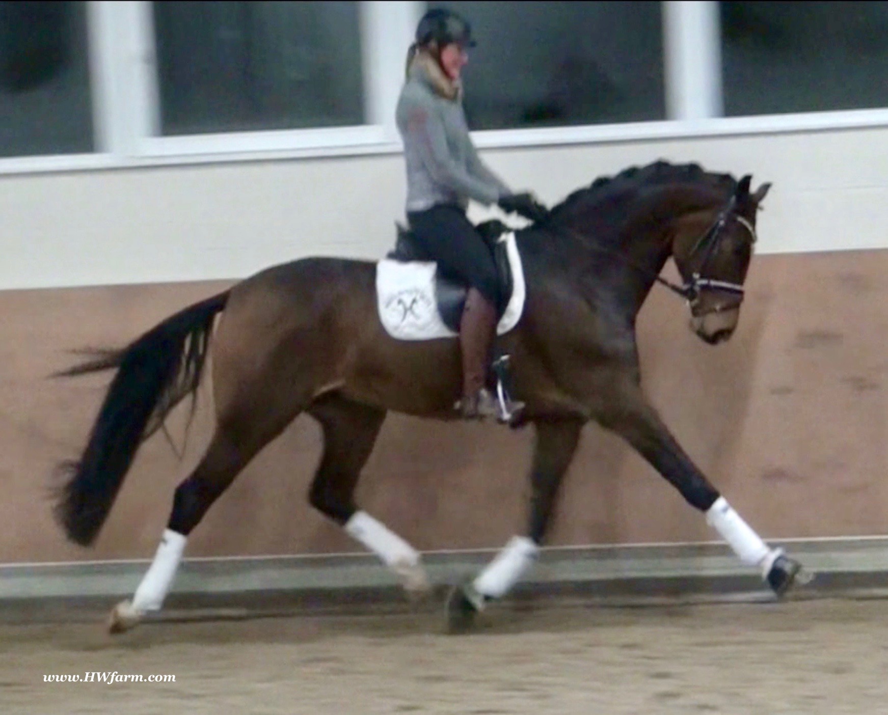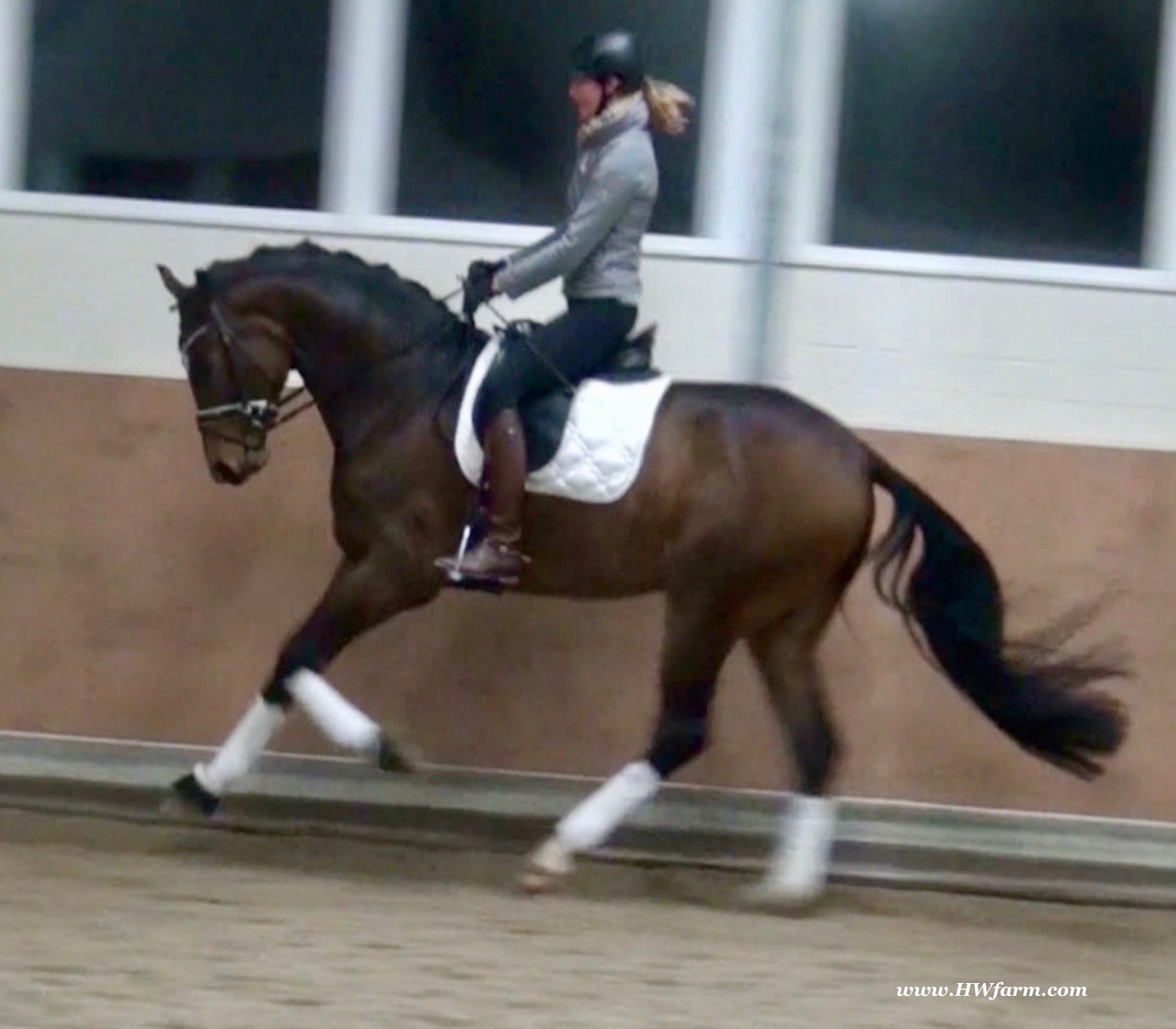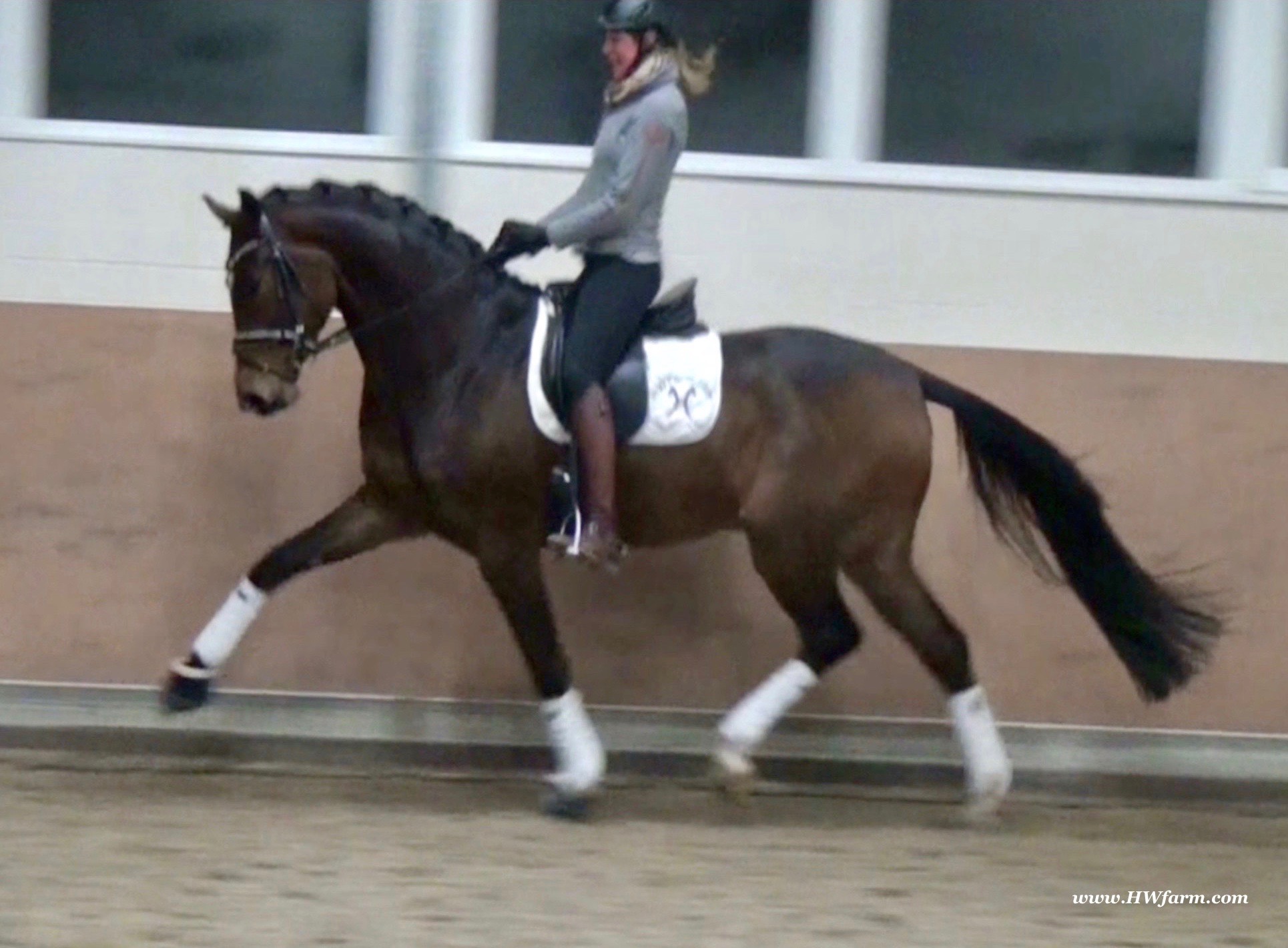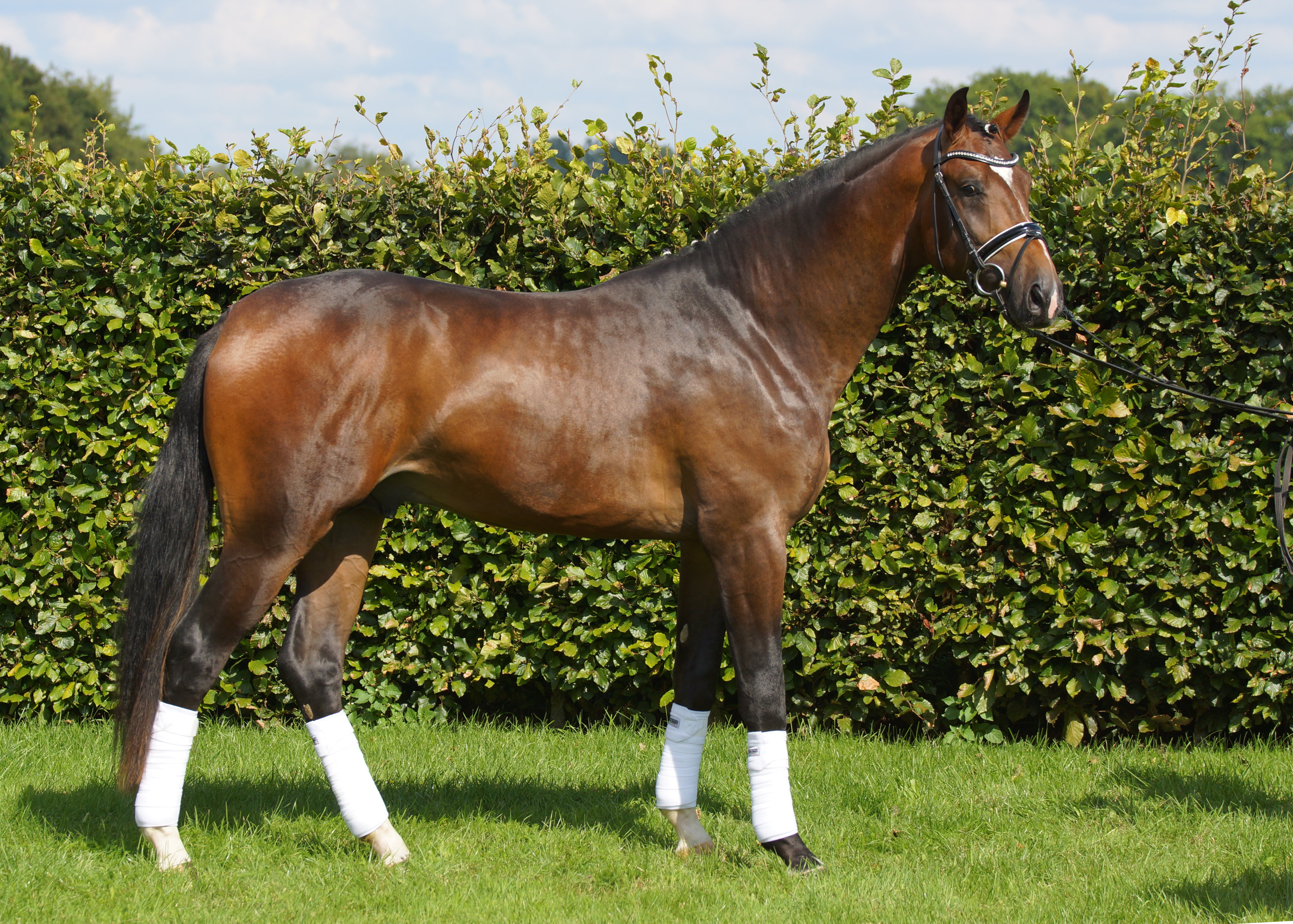 BundesChampion son Fashion HW, bay Rhineland gelding by the powerful and dynamic BundesChampion Franziskus/Flatley, born in 2013, standing approximately 173 cm or 17 hands. Fashion HW, is a totally cool charmer and has the best bloodlines, his sire is the premium stallion Franziskus, he impressed the spectators at the Westphalian licensing in 2010. He has a brilliant type, a perfect frame as well as a harmonious and correct exterior. His basic gaits are perfect: He walks with diligence and beat, he trots with impulsion and forward thrust and he canters uphill. Franziskus was already very good as a foal. He won the qualification to the German foal-championships. In 2011 Franziskus absolved the 30-days-test in Münster-Handorf successfully: He got a score of 9.0 for trot, canter and rideability in the training and 9.5 for his character. The test rider gave him even 9.5 points for rideability. Continuing his life of success, Franziskus soon became Bundeschampion of the 4-year-old riding stallions with top marks when he was presented by both his own and by foreign riders in 2012. The Olympic rider Ingrid Klimke began riding Franziskus at the end of 2013 and was victorious with him in his first dressage class for young horses, at "M-level" (the highest class 6-year-olds can compete in Germany). I Franziskus is victorious in dressage tests of KL S ** and has been 15 licensed sons. 2015 and 2016, victorious in dressage horse Kl. S ** Inter I under Ingrid Klimke and was a finalist in the Nuernberg Burgpokals/cup. Franziskus' sire Fidertanz began his career by winning the Westphalian licensing and the 30-days-test in Neustadt/Dosse. He was runner up at the "Bundeschampionat" and was the main premium award winner in 2006. Since then, Fidertanz has placed in many advanced dressage classes. His dam, Antara, has also produced the licensed stallion Dementi, who is successful in advanced dressage competitions as well. His Dam's sire, Alabaster, was "Bundeschampion" of young dressage horses. In the third and fourth generation, there are the international sport horses, and important stallions, Rubinstein I and Grundstein I. The basis of the dam line is the Irish thoroughbred mare Daffy Toban xx (by Go Tobann xx-Mustang xx, family 2). That line produced the sires Count on Me, Grafenstein and Winston hervor, as well as the international sport horses Grand Giraud (Alexandra Simons-de Ridder) and Calman, who won the Grand Prix of Nörten-Hardenberg with Rolf Moormann. Franziskus' sire, Fidertanz, started his phenomenal career in the year 2004 as NRW-Champion Stallion in Münster-Handorf. In 2005, Fidertanz won his 30-day-test in Neustadt/Dosse with excellent results, and became Vice Bundeschampion with a top score of 9.5 in test-riding. In the year 2006, Fidertanz won the High Premium award for dressage-stallions at the Oldenburg-licensing in Vechta. In the meantime, Fidertanz has been trained up to the advanced level in dressage. Franziskus' dam, Antara, produced with De Niro the licensed stallion Dementi, who is successful at the advanced dressage S Level. The dam's sire is the former Bundeschampion of German Dressage Horses, Alabaster. The third and fourth generation of the pedigree is refined by the internationally successful top-stallions Rubinstein I and Grundstein I. The dam line is based on the Irish thoroughbred-mare Daffy Toban xx (v. Go Tabann xx-Mustang xx-Flamenco xx etc,, thoroughbred-familiy 2). Some of the stallions out of this line (which is followed by the breeding-familiy Albers since the mid 1970's) are e.g. Count on Me (PB Denmark), Grafenstein (PB Oldenburg, State Stud Redefin and Marbach), Winston (PB Hannover, State Stud Celle), as well as the international sport horses Grand Giraud/Alexandra Simons-de Ridder and Calman, who won the "Goldene Peitsche" in Nörten-Hardenberg under the saddle of Rolf Moormann. Ingrid Klimke and Franziskus: Fashion HW's dam sire is Isabelle Werth's previous mount Flatley. The Rhinelander licensed stallion Flatley has been sold to Angelina and Heiko Graf in 2013 and made his successful return to the show ring with his new rider Meike Lang at S- and Intermediaire II level at a regional show in Kreuth, Germany. Flatley is a 2004 born Rhinelander, bred by Judith and Johannes Gielessen and sired by Furst Piccolo x Ehrensold x Dilettant. He was licensed in 2006 at the Westfalian Stallion Licensing and did his stallion performance test in Neustadt/Dosse, finishing on a dressage score of 8.44. His first offspring is now competing and Flatley has already produced one licensed son and six State Premium mares. Flatley was originally owned by Tobias Schult, who put the horse in training with Isabell Werth. The bay stallion was initially campaigned by Werth's assistant trainer Matthias Bouten. In 2011 Werth took over the ride and qualified the 7-year old for the Nurnberger Burgpokal finals for developing Prix St Georges horses. At the finals in Frankfurt, the pair finished second. In 2012, Bouten climbed back into the saddle but after his departure from Werth's yard in 2013 Isabell showed the horse twice at Grand Prix level. Lang and Flatley won an S-level test last weekend in Kreuth and finished second in the Intermediaire II Isabelle Werth and Flatley: Flatley is by the famous Fürst Piccolo, a 100 Day Performance Test Winner! Fürst Piccolo's sire Fidermark was the vice champion of the NRW approvals in 1994 and won the Warendorf state stallion performance test with a big margin in 1995. Further successes followed in 1996. He dominated the "Optimum of Westphalian Riding Horses" sovereignty in Munster . He also became the Buneschampion in his home town of Warendorf . He then went on to win the LVM stallion championship in Munster Handorf. He has had many wins in the Prix St George and Intermediaire I under Marlies Van Baalen and he is trained by Johann Hinnemann. In 2003 he made his debut successfully at Grand Prix. His first foal crops produced sensational foals. Th