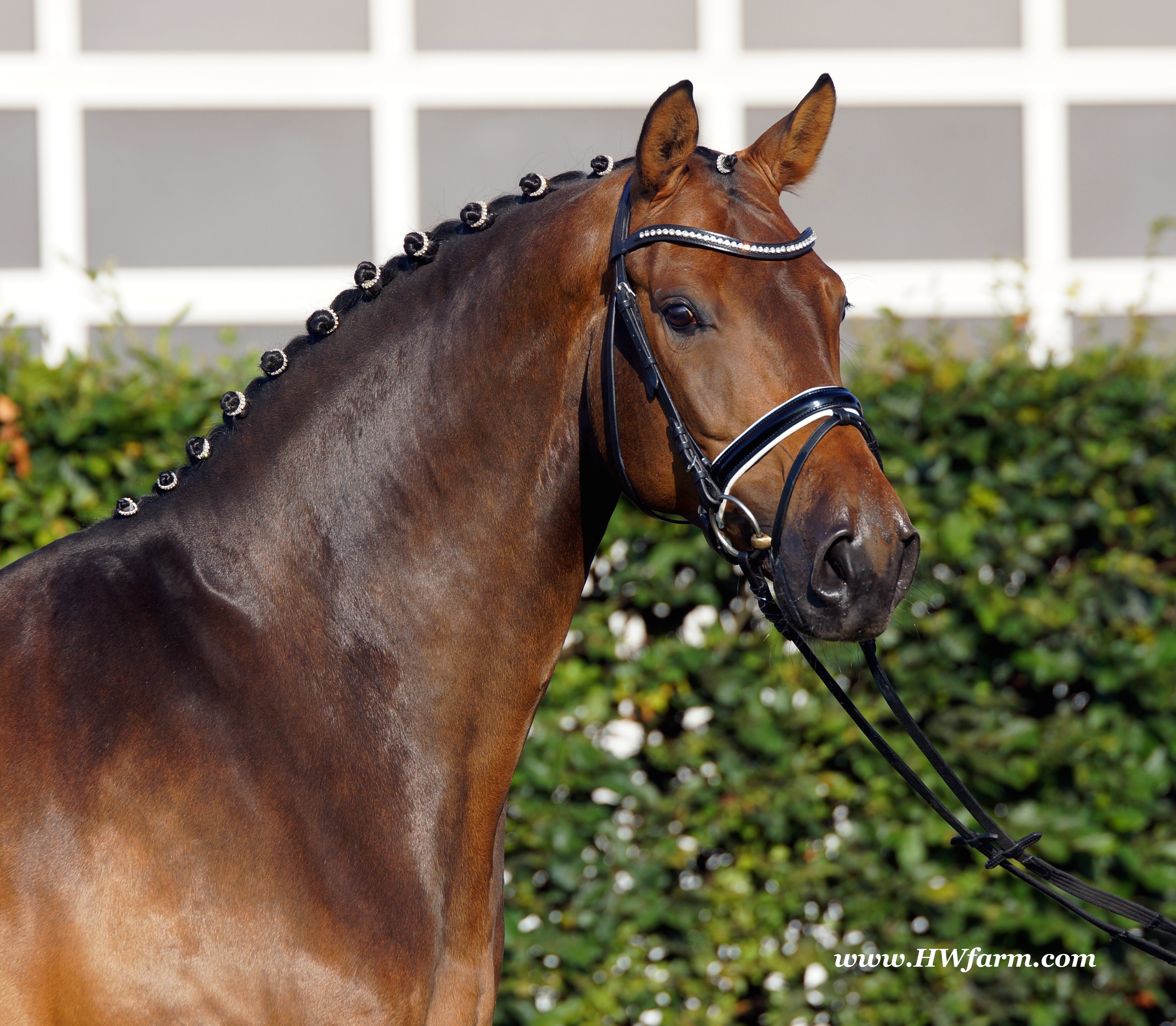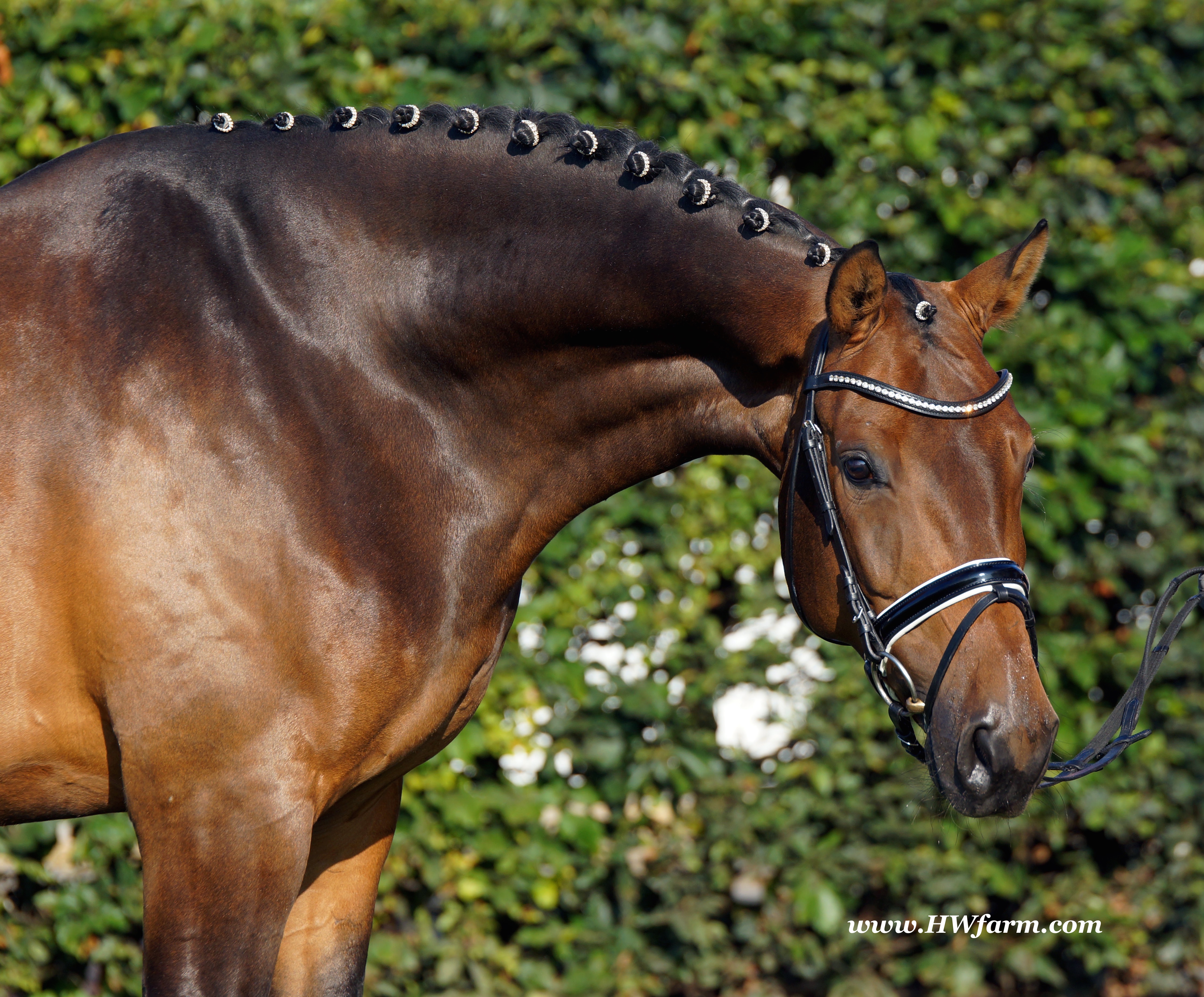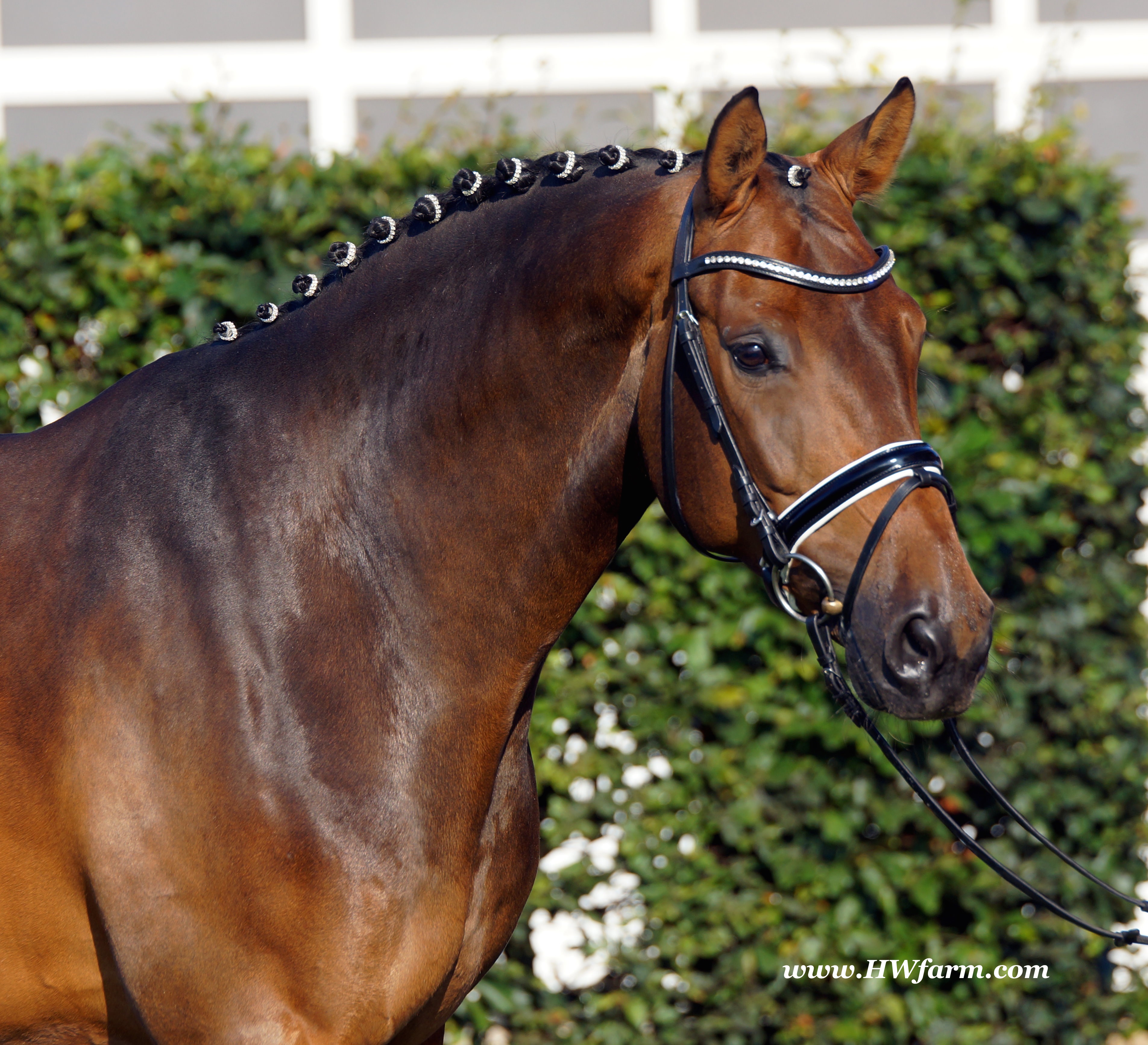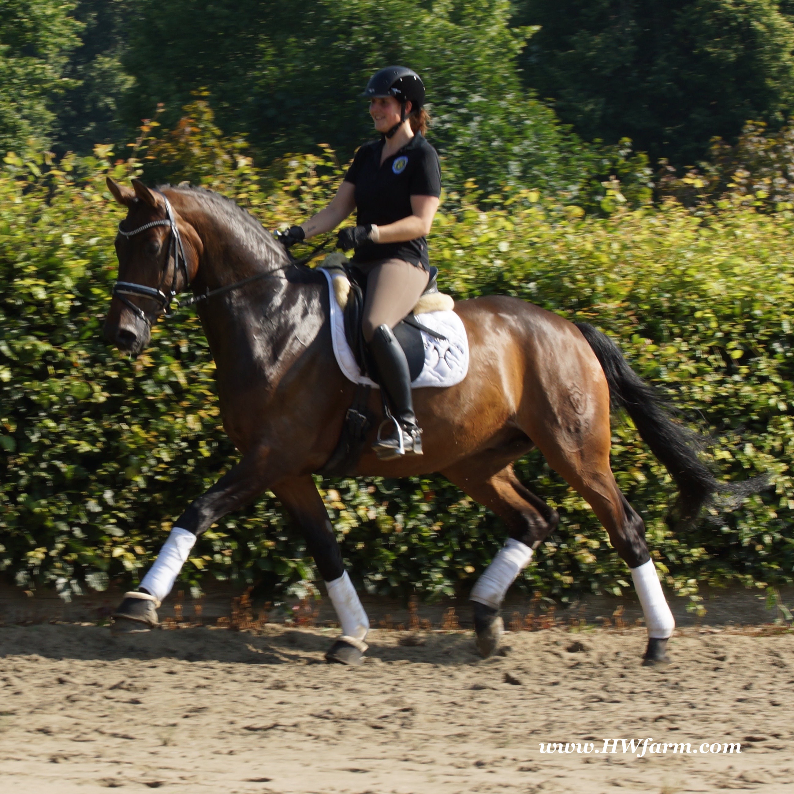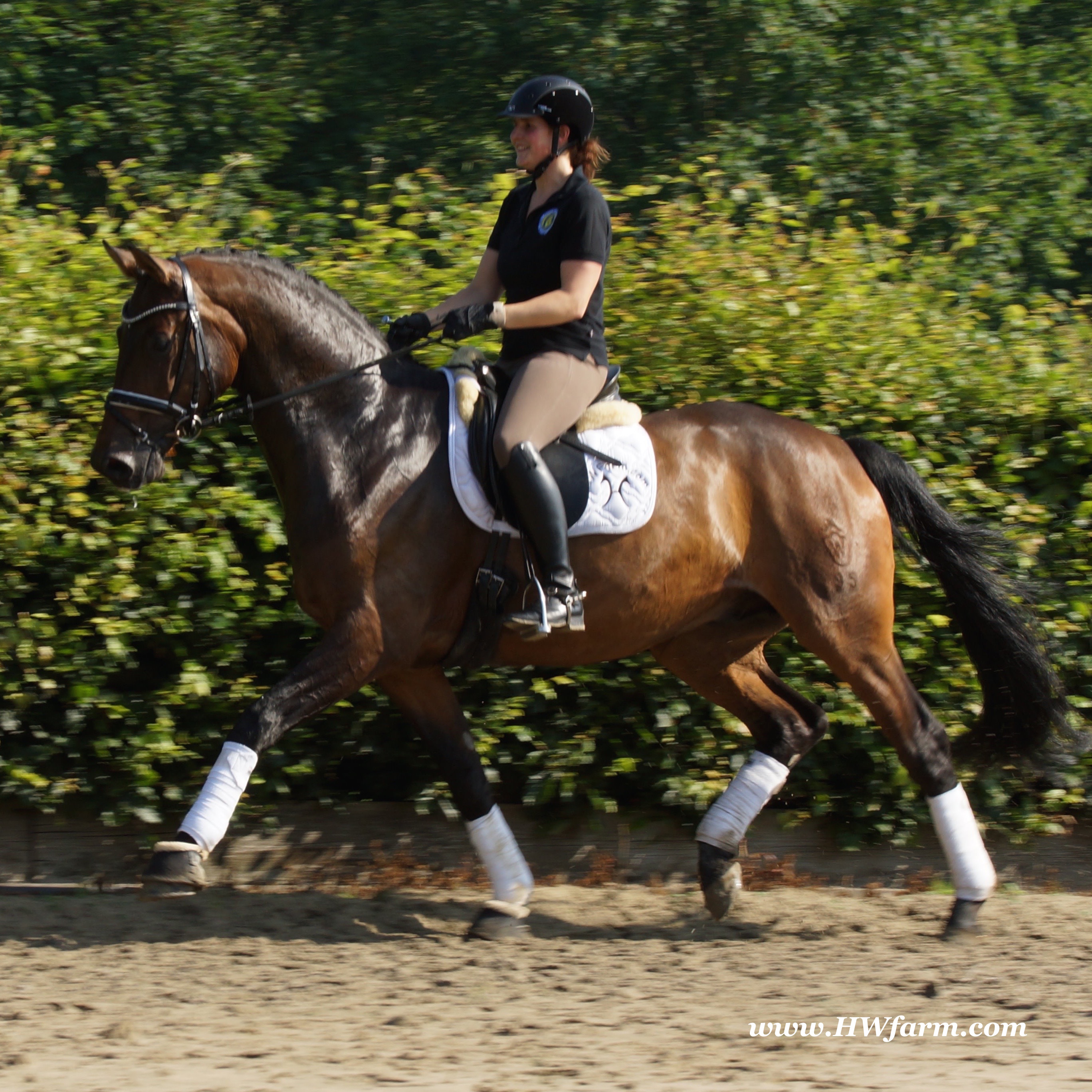 | Fendi HW, bay Westphalian gelding by Flovino/Ferragamo, born in 2009, standing approximately 172 cm or 16.3 hands. Fendi HW's sire is Flovino. He carries the famous Florestan blood and was second Reserve Champion at the 2004 NRW stallion approvals. He placed 1st in dressage at his performance test receiving a score of 136.52 points. He has had success in tests for young dressage since then. Flovino is a highly requested breeding stallion due to the number of foals that have qualified for the German foul championships, and the premium foals selected for auctions. Flovino is a full brother to the 2000 NRW champion stallion, Future. Flovino’s sire Florestan was born in 1986 and as a foal he impressed all with his type, expression and basic gaits. Temperament and character were highlights of this young colt.. Very lucrative offers were declined from USA, and Florestan was sold to the Westphalen State Stud who had put first option on him as a foal. From the Nordrhein Westphalen State Stud he has influenced warmblood breeding immensely. Florestan has clearly stamped a dynasty of performance and breeding horses. In 1988 Florestan was the undisputed winner of the Rheinland Licensing. He fulfilled expectations by Winning the Performance Test in Warendorf in 1989. He acheived a total index of 129.02. His critics were silenced after his first foal crops proved his reproducing powers. His foals all replicated their sire's excellent traits. Progeny from those first years impressed so much that Florestan was moved to the main breeding station in Warendorf. Florestan and his progeny are well known all over the world. To name a few, the Bundeschampions, Fidermark, Ferrara S, French Kiss, the World Dressage Champion, Fürst Heinrich, Florencio, 3rd place World Dressage Championship finals in Las Vegas, Floriano,the best horse in the finale of the German Dressage Derby, Florianus, Stallion Licensing Champions, Future (NRW) and French Kiss (Baden-Württemberg), Oldenburger Main Premium Winner, Fürst Heinrich and Florencio. Bavarian Main Premium Winner Florestano, the Performance Test Champions Faveur, Fidermark, Fielmann, and Freestyle, NRW winning mare Fiedergirl, top priced stallion from the Hanoverian Licensing 2006, First Dance and Westphalia Reserve Champion and NRW Auction top price, Fleur Rubin. These are just some of his progeny and their achievements.. Florestan showed very early that he could create his own stallion line and strengthen and continue the line from his ancestors. This is evident in his sons and grand sons. Florestan has delivered since 1993 at least one Licensed son each year and many of those were honored as Premium Stallions. In 2000, there were 15 sons at the NRW Licensing. Ten sons were licensed with the stallion, Future being Champion. Others included Fürst Heinrich, Floresco, Fielman and Floriano. Other associations have had their share of Florestan sons also. Fürstenreich, Fit for fun, and Florencio in Oldenburg, French Kiss in Baden-Württemberg, Florestano and Florentano in Bavaria, and First Dance in Hanover. Florestan progeny have always done well in competition and in 2003 Fürst Heinrich was World Dressage Champion as a 5 year old. In 2004 Florencio was World Dressage Champion as a 5 year old and French Kiss was World Dressage Champion as a 6 year old. In 2004 Florestan progeny dominated the NRW Licensing. The first three premium placing were by Florestan sons and Florestan himself.. Champion Stallion was Fidertanz (Fidermark), Reserve Champion was Fürst Grandios (Fürst Heinrich), 2nd Reserve Flovino (by Florestan). Nine sons in total were NRW Licensed that year and a further 13 stallions by Florestan sons and grand sons were also licensed. In 2006 Hanoverian licensed Stallion, First Dance sold for 400,000EU. Florestan's pedigree shows a successful combination from various bloodstreams coming together. His sire, Fidelio originated through Hanoverian breeding and was sired by Furioso II. Fidelio consistently produced very correct rideable horses with the desired movement and temperament. Florestan's dam, St.Pr.St. Raute was 3 year old Rheinland Champion Mare and was awarded State Premium. She fulfilled all expectations being a successful show and broodmare. She won her class at the Bundes Mare Show in Verden in 1983 and in 1986 at the State Mare Show she was also a winner, a big honour at this show as all top mares from other associations compete against each other. She wrote breeding history when she produced Florestan 1 and his siblings, including 3 sisters who were all honored with State Premium status. St.Pr.St. Wachtel by World Champ, St.Pr.St. Palucca by Paretti and St.Pr.St. Wapita by World Champ. Full brother Florestan II was Licensed and also stood at Warendorf stud. Two other progeny by St.Pt.St. Raute are with Robert Dover, dressage rider in USA. Florestan's sister St.Pr.St.Wachtel was the mother of three State Premium Mares, St.Pr.St. Phantasie, by Paretti, St.Pr.St. Dollnitz by Don Bedo I and St.Pr.St. Fayette by Feinsinn. Well known for his hereditary transmission, Florestan has a Dressage Breeding Index of 146 with 99% accuracy (2006). Over 100 sons have been Licensed and 190 mares awarded State Premium. 1620 offspring are registered as competition horses with combined winnings of over 1,500,000EU. Florestan not only produces top sons but also top mares for breeding and sport. His progeny are also consistently producing top quality. In Westphalia, Florestan or Florestan progeny have produced 6 times in 8 years, the Champion Mare. Florestan features as the Dam's Sire of hundreds of Licensed Stallions, Premium Mares and successful competition horses. Along with his achievements as a Sire, this makes him one of the most Influential Sires in Warmblood history. Fendi HW's dam is by the famous Ferragamo. He Was reserve champion of the 1992 licensing in Munster-Handorf and reserve champion stallion at his performance test in Warendorf. He received 135.96