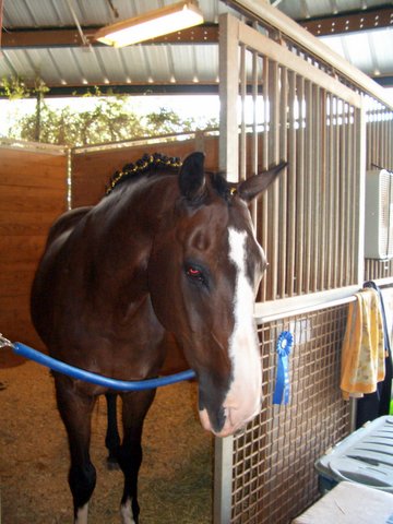 is the same gentleman at horse shows as he is at home. This dark bay beauty is