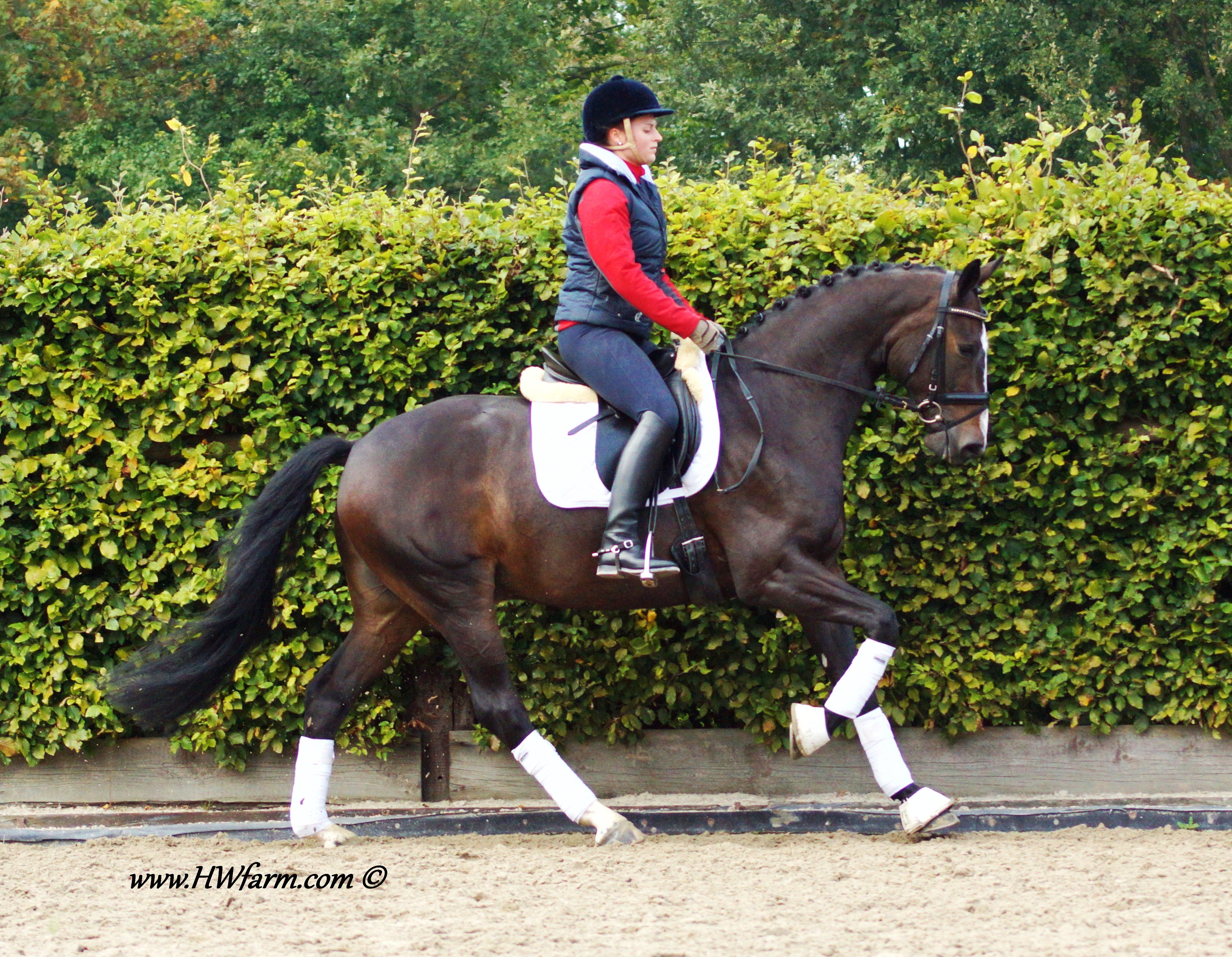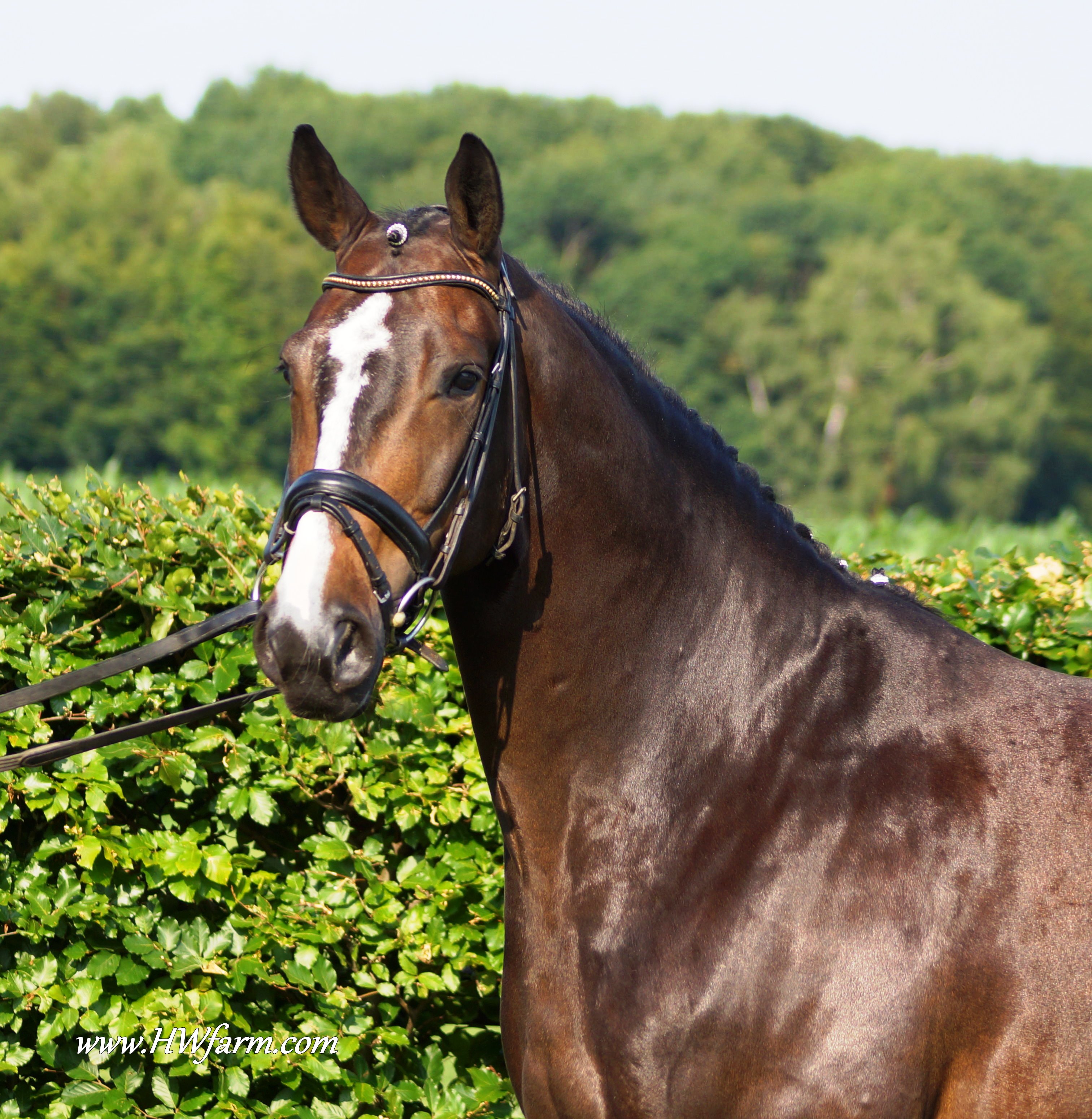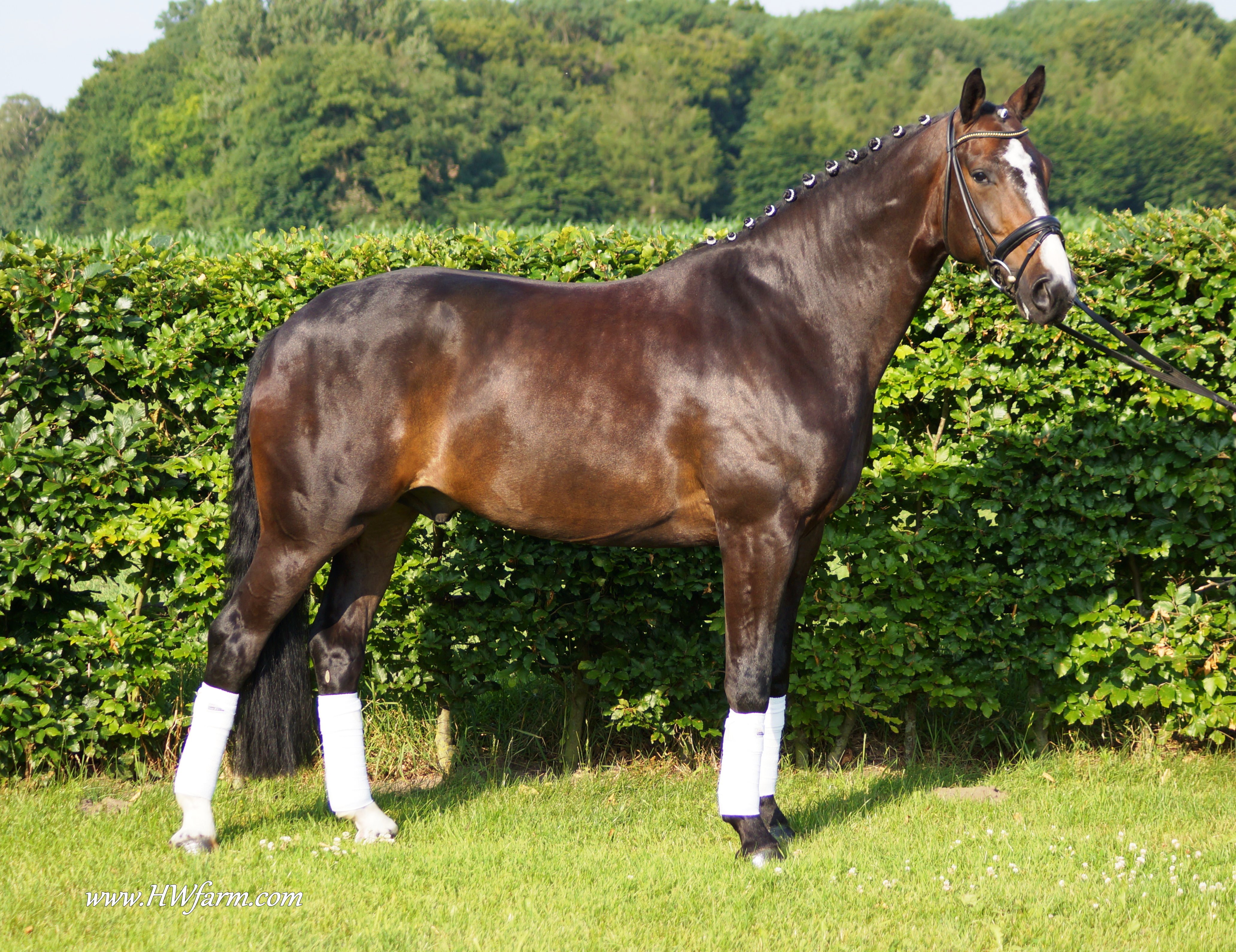 Festival HW, bay Rhineland gelding by Flatley/Grosso Z, born 2008, standing approximately 164 cm or 16.1 hands. Festival HW is a young star who knows how to impress due to his type, movement and character. His sire Flatley is owned by Isabell Werth, she had discovered him as a foal. This fascinating stallion was, with Isabell Werth was in the saddle, highly successful at the International Dressage Show. In previous years, Flatley had put his exceptional skills to the test already: In 2008 he was nominated for the VTV Championships at the NRW main in Munster. In 2009, he qualified for the National Championships. "He has good approaches to serious lessons, is willing to work and has a great character," says Isabell Werth. His first foal crop brought the former state champion and one approved son. His foals have been decorated several times with gold and achieved top prices at auctions. The first offspring under saddle are already victorious in young horse tests. The competition genes are in the blood, Flatley is by the famous Fürst Piccolo, a 100 Day Performance Test Winner! Fürst Piccolo's sire Fidermark was the vice champion of the NRW approvals in 1994 and won the Warendorf state stallion performance test with a big margin in 1995. Further successes followed in 1996. He dominated the "Optimum of Westphalian Riding Horses" sovereignty in Munster . He also became the Buneschampion in his home town of Warendorf . He then went on to win the LVM stallion championship in Munster Handorf. He has had many wins in the Prix St George and Intermediaire I under Marlies Van Baalen and he is trained by Johann Hinnemann. In 2003 he made his debut successfully at Grand Prix. His first foal crops produced sensational foals. They dominated the Westphalian Foal shows and the NRW elite foal auctions. In 1998 his first approved son Fein Sinn won the 100 day test, the first of several including the impressive moving Fürst Piccolo. He has over 15 licensed sons and many state premium mares to his credit already. He is a sire who will dominate German breeding for many years to come. He is ranked highly on the FN breeding values list. The dam sire Mephistopheles, a son of the Trakehner Mackensen derives from a Romadour II mare, establishing a blood connection to the paternal side via Rheingold. Mephistopheles sired the performance test winner Jacquare. Rembrandt in the third generation was a performance test winner with Trakehner blood. Fürst Piccolo was a premium stallion at the NRW main approval in 1999 and won the 100 day test in 2000 with high scores. He is an amazing moving stallion and his first few foal crops have dominated the Westphalian elite foal auctions.